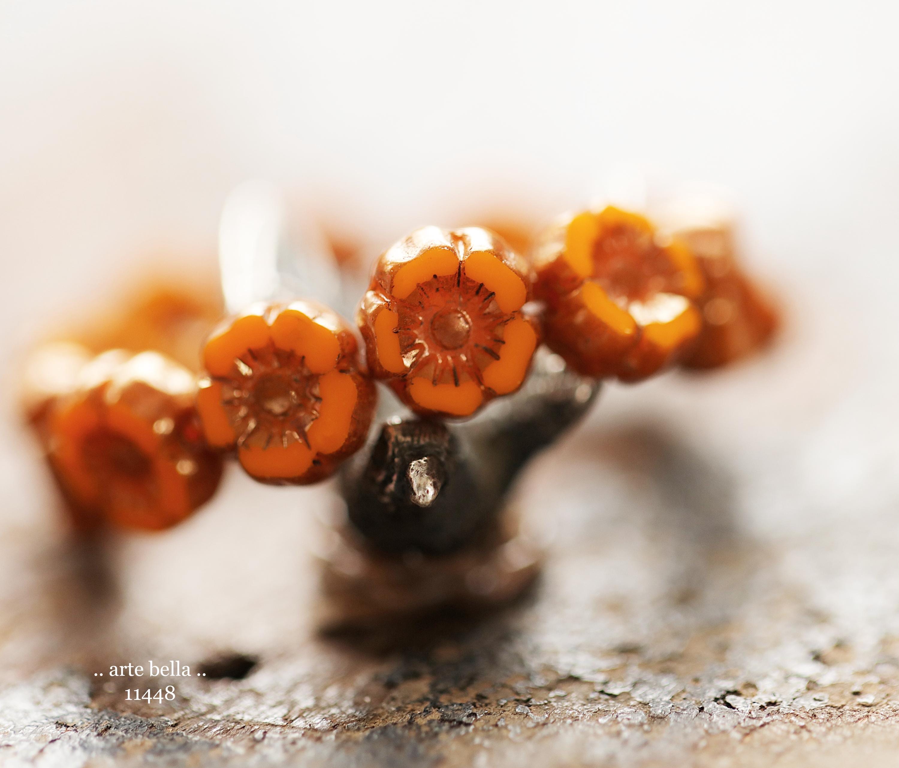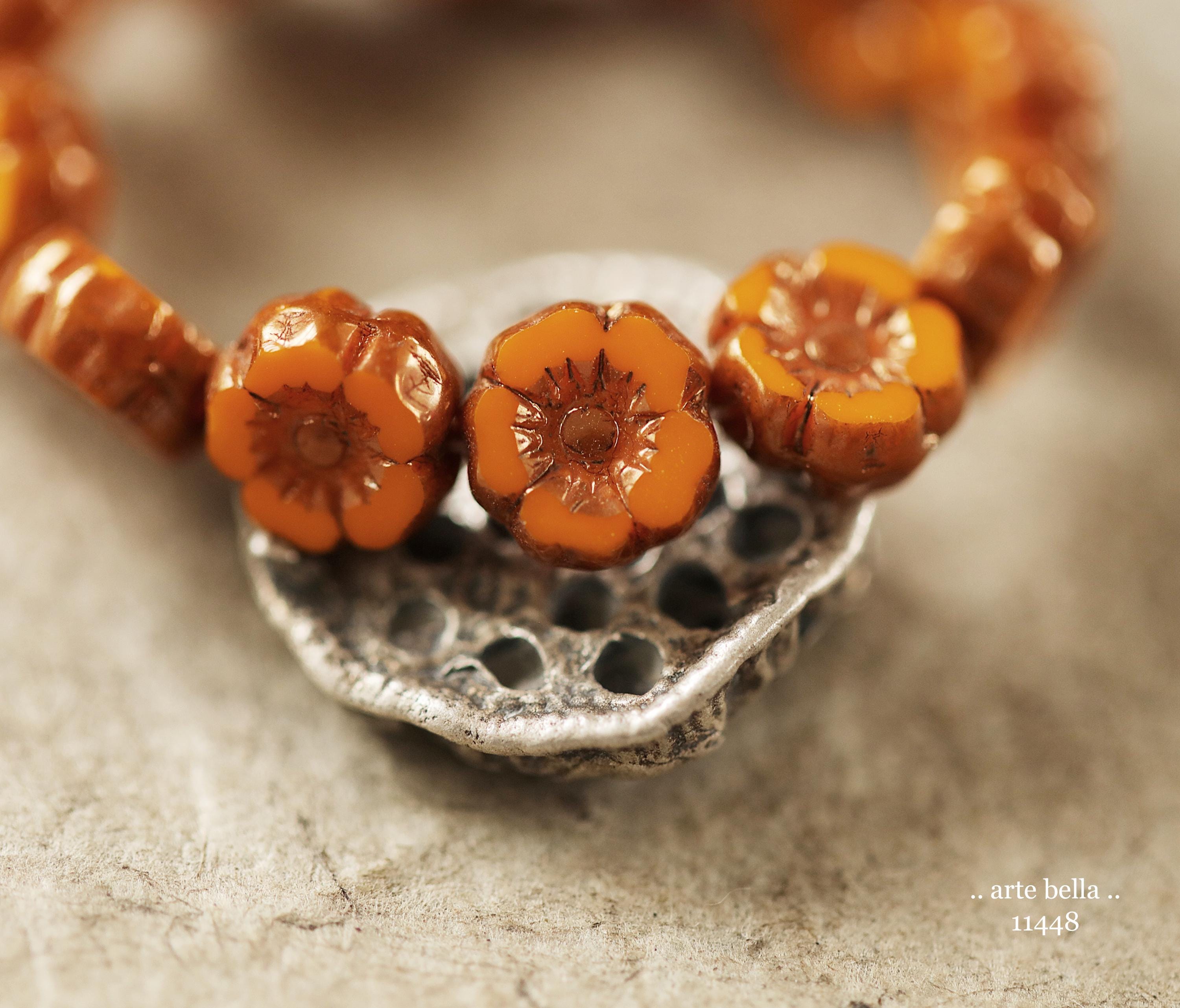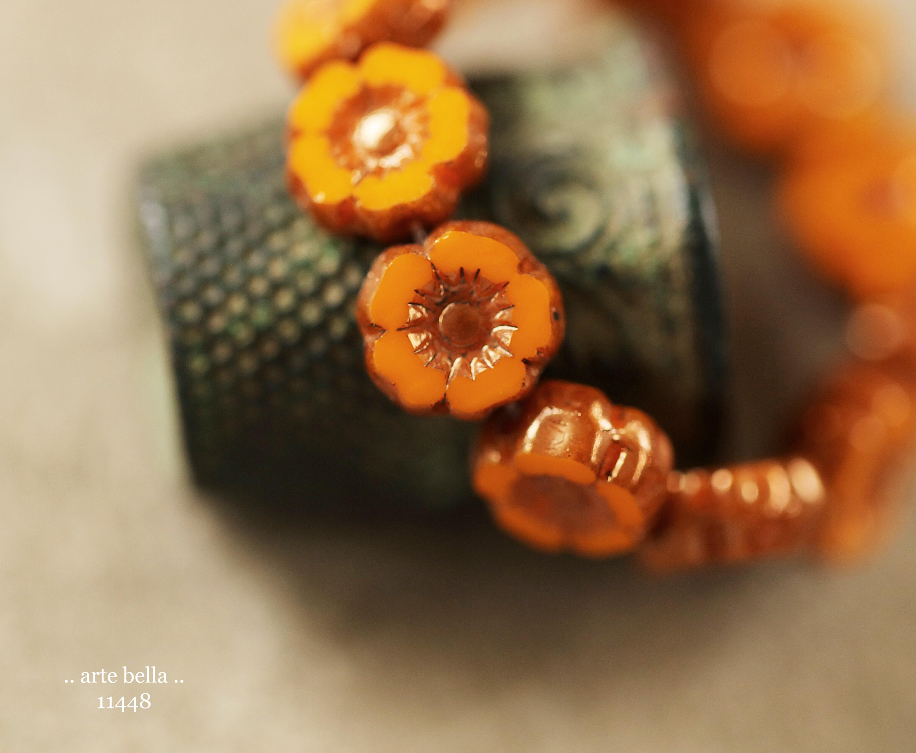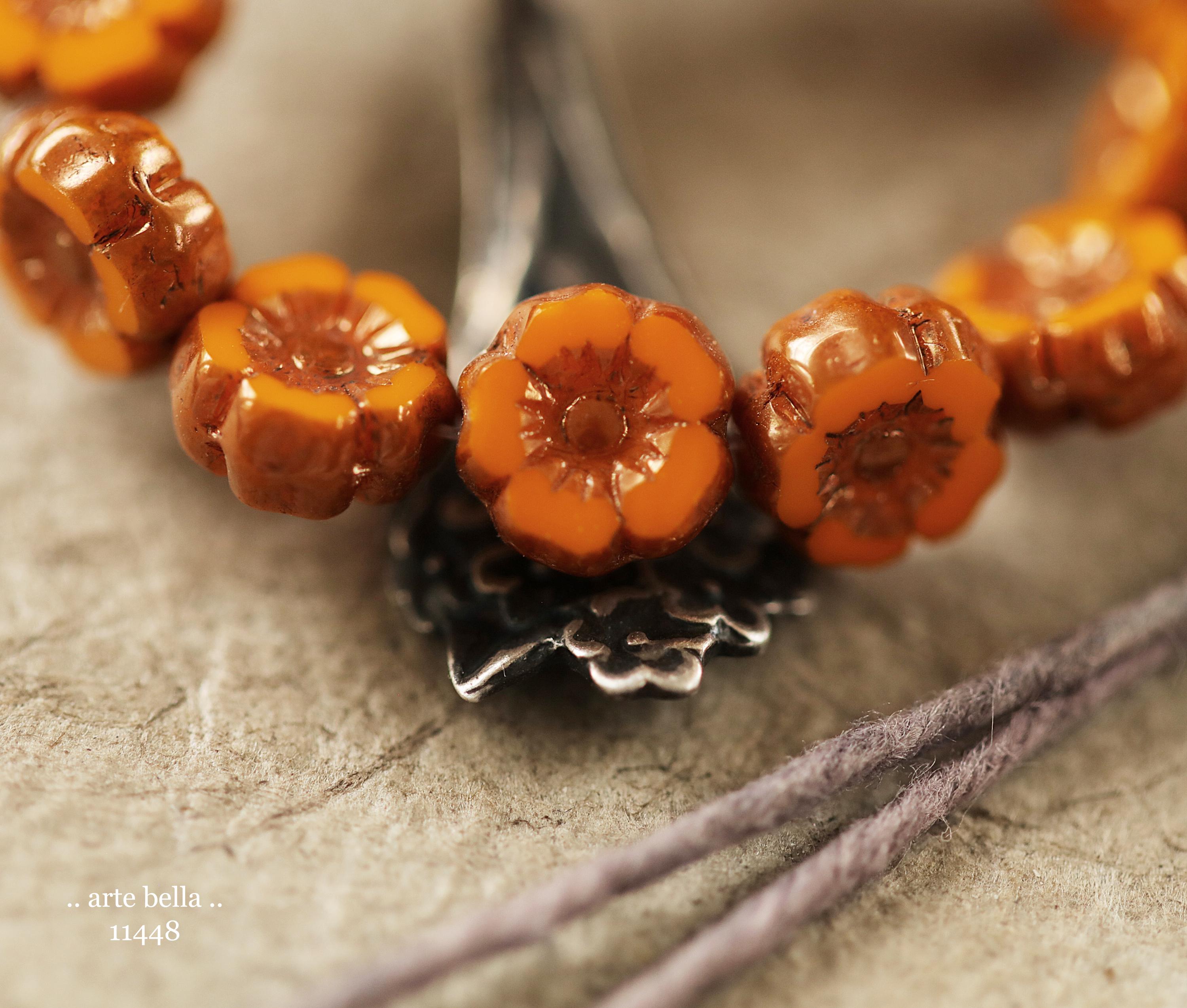 New .. BRONZED PUMPKIN PANSY 7mm .. 12 Premium Czech Glass Petite Hibiscus Flower Beads (11448-st) .. jewelry supplies