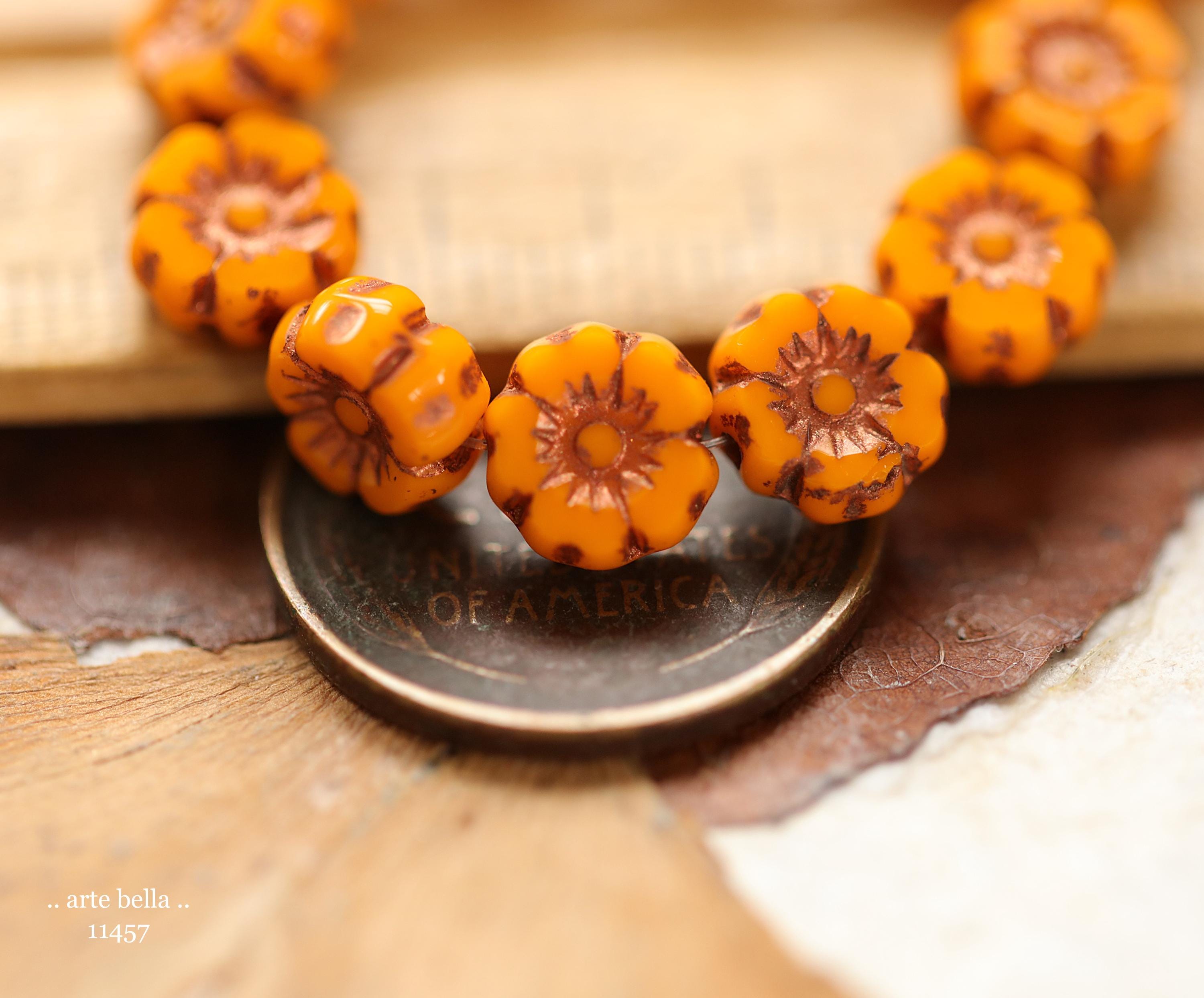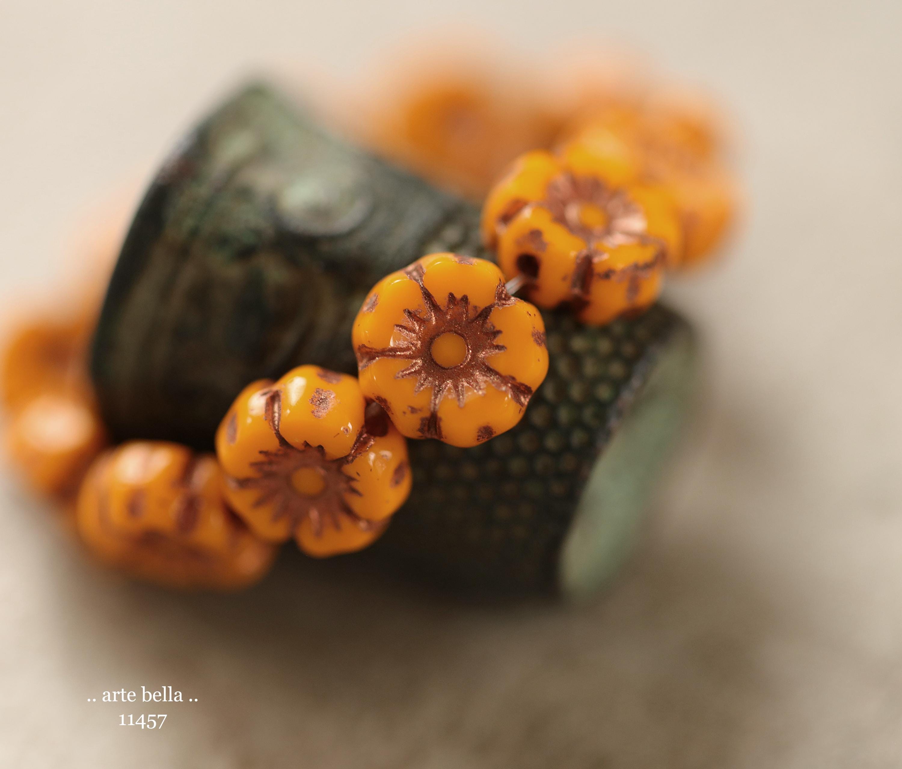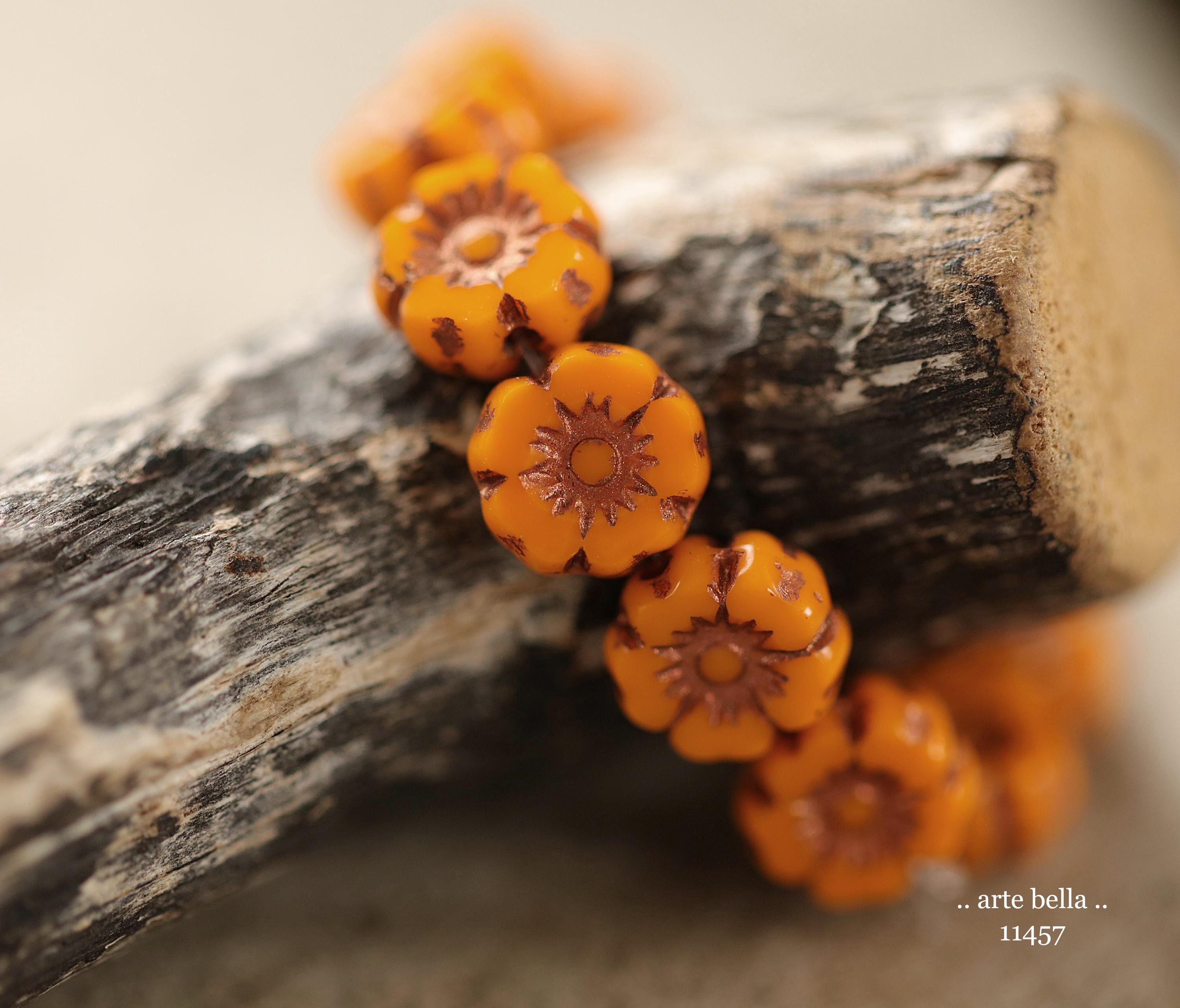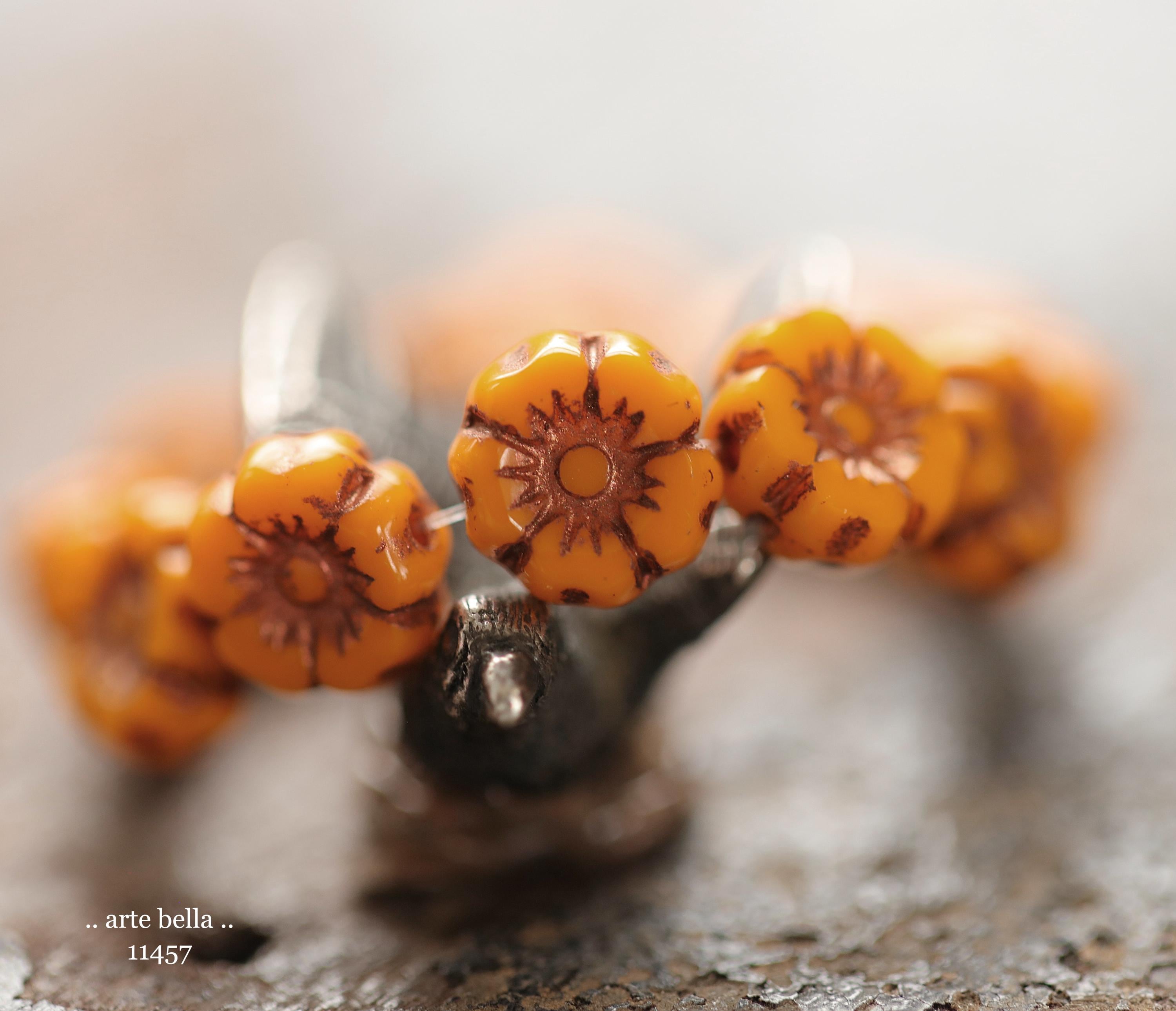New .. BRONZED COREOPSIS 7mm .. 12 Premium Czech Glass Petite Hibiscus Flower Beads (11457-st) .. jewelry supplies