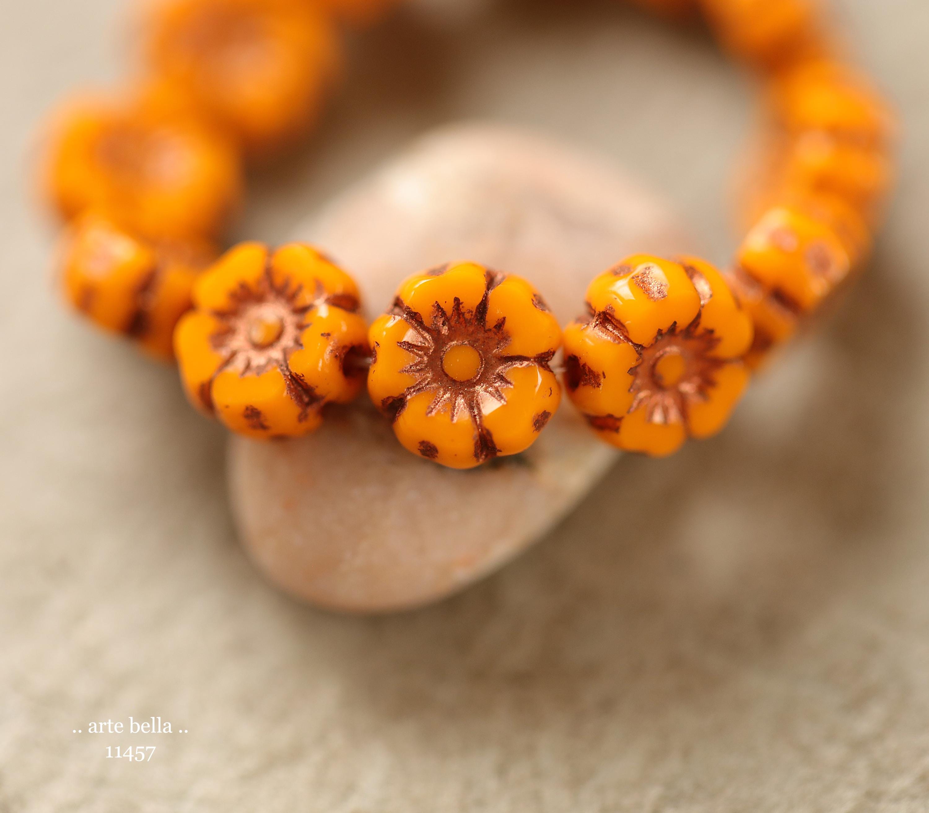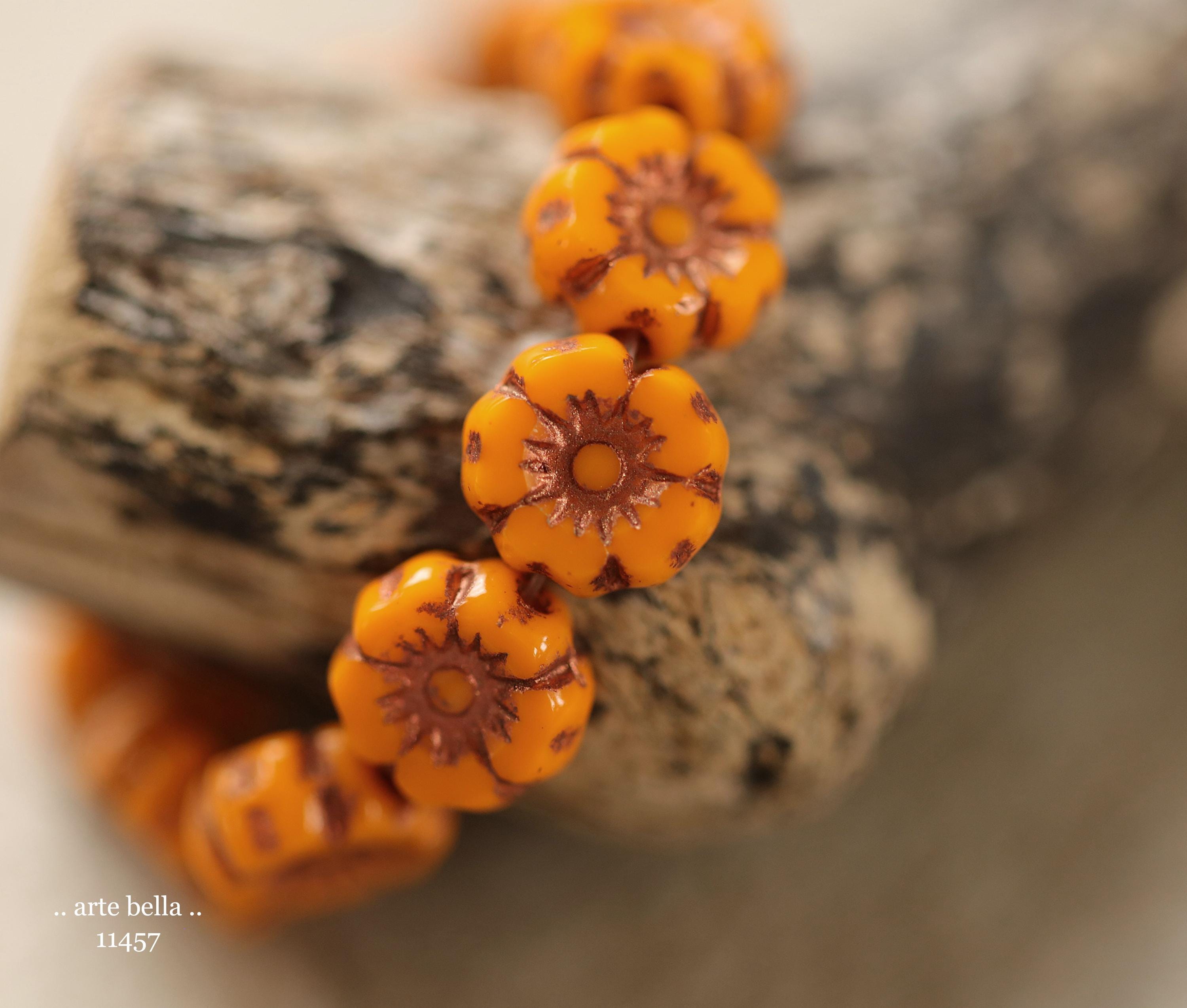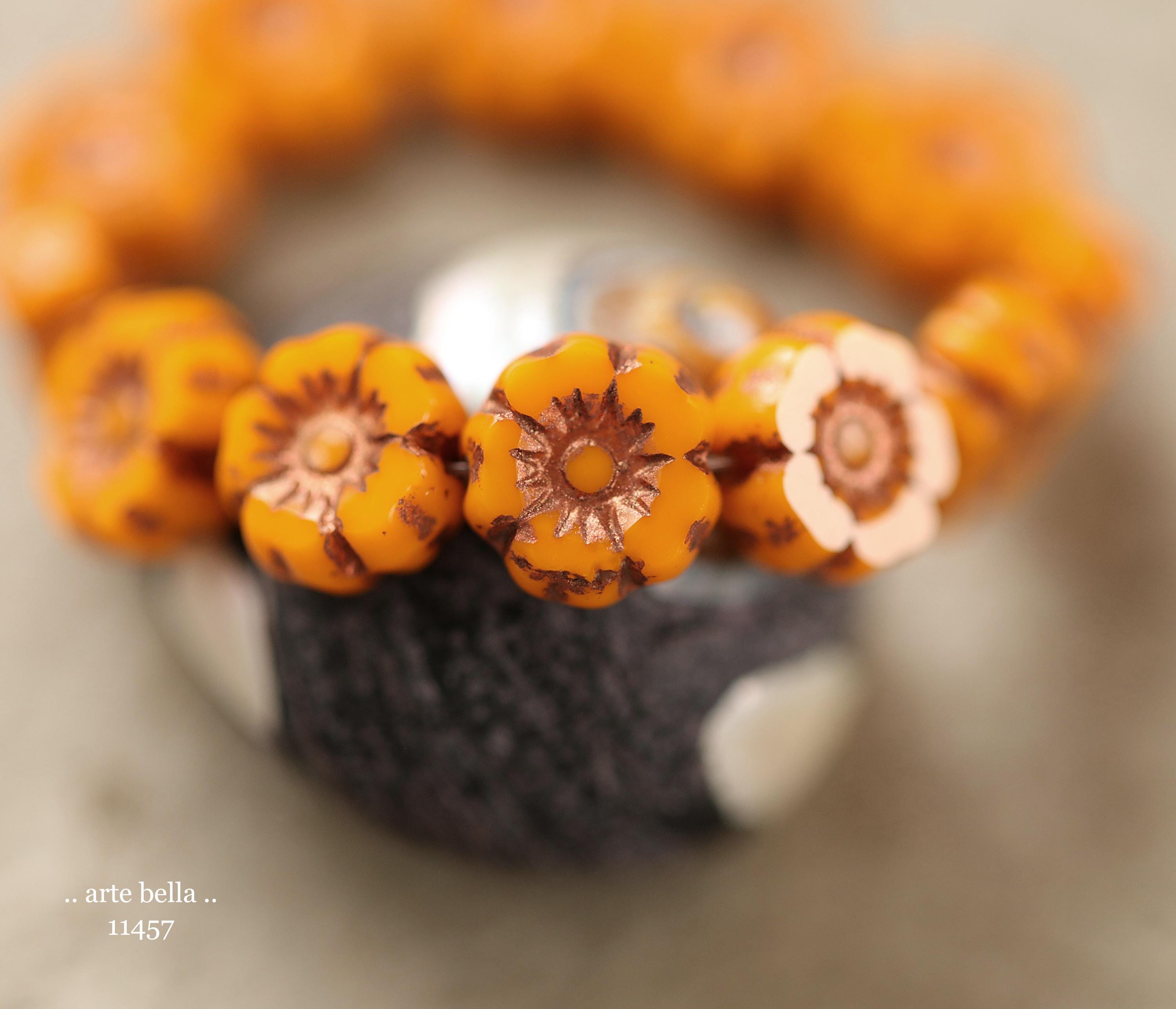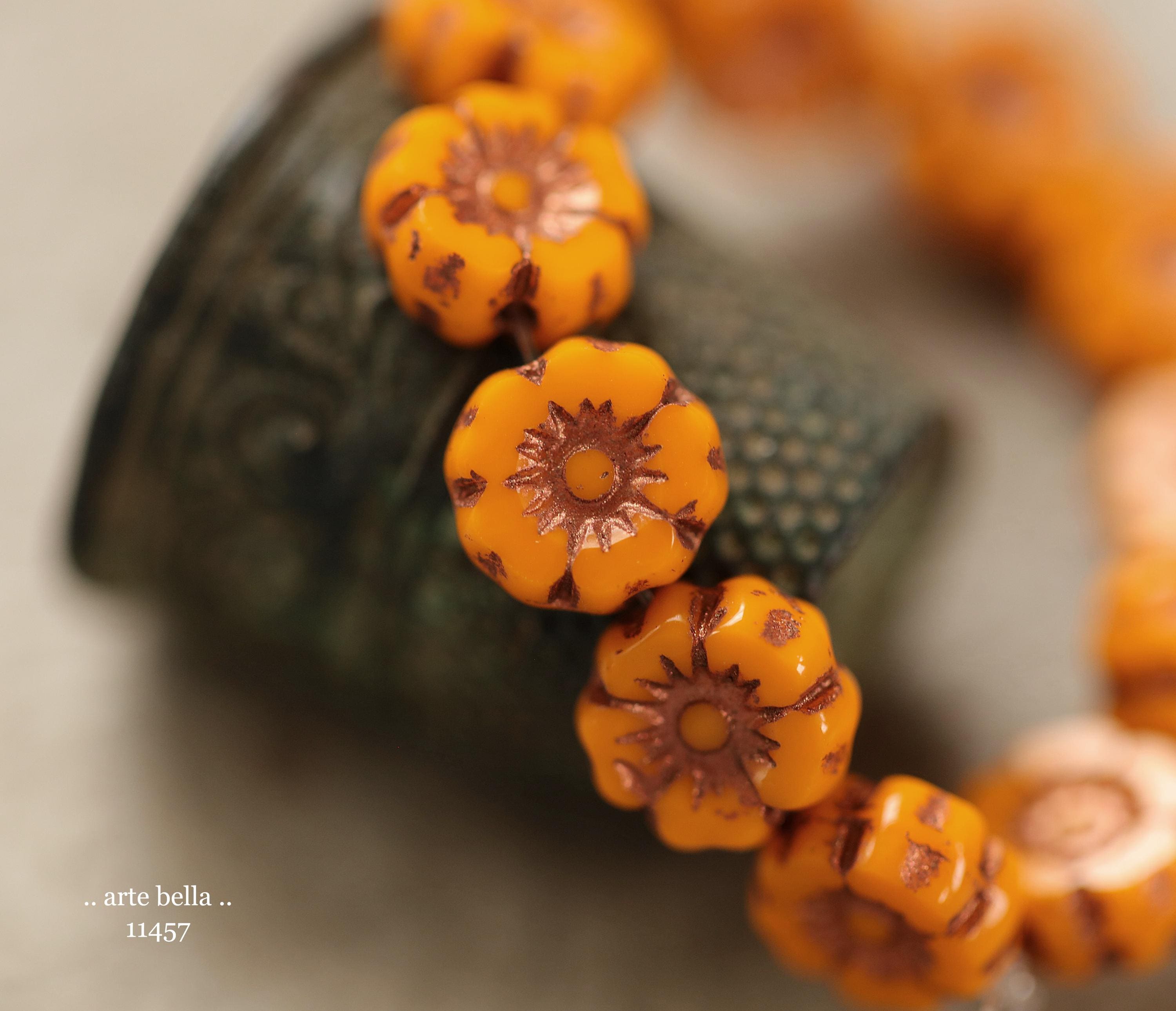 New .. BRONZED COREOPSIS 7mm .. 12 Premium Czech Glass Petite Hibiscus Flower Beads (11457-st) .. jewelry supplies