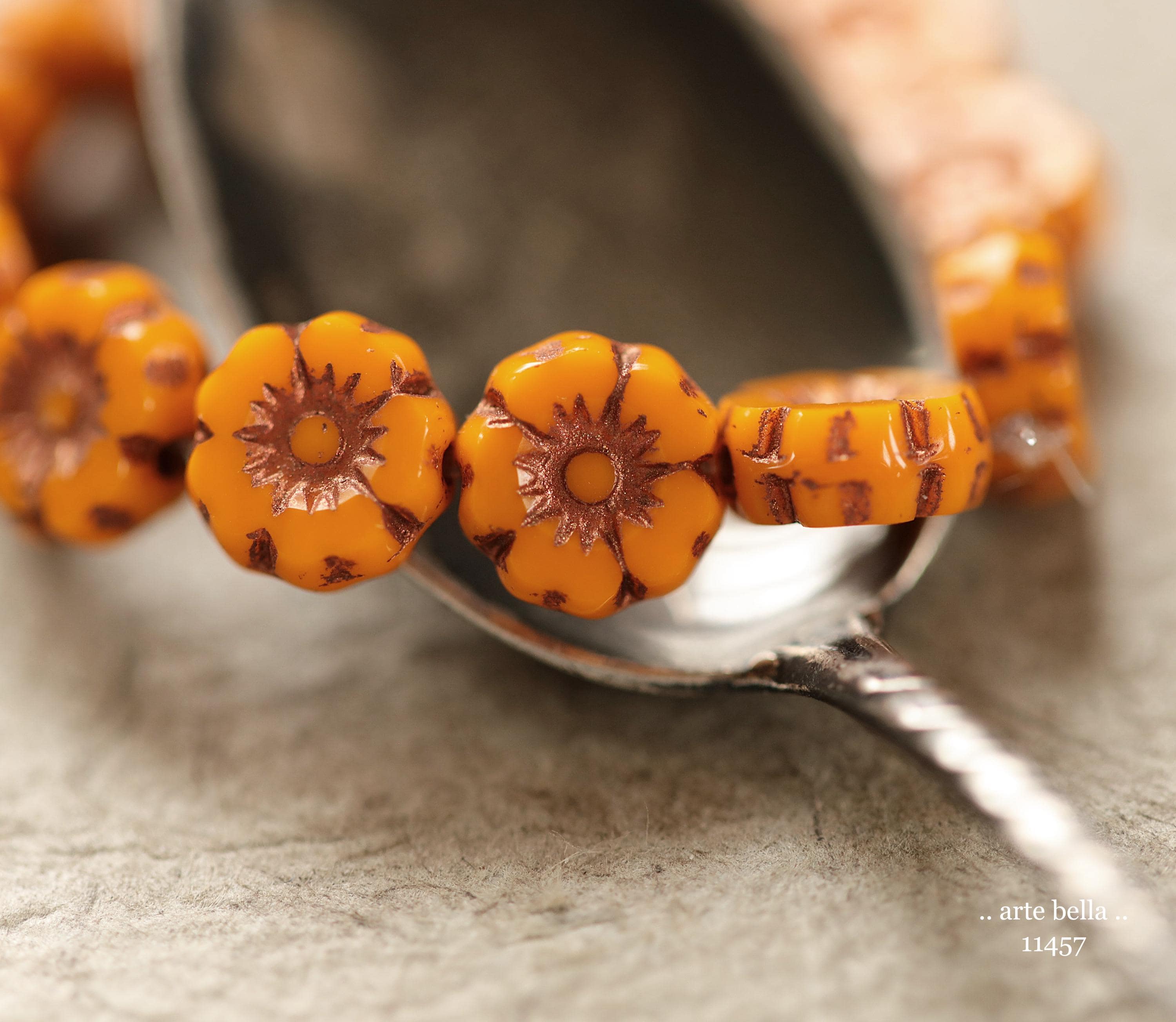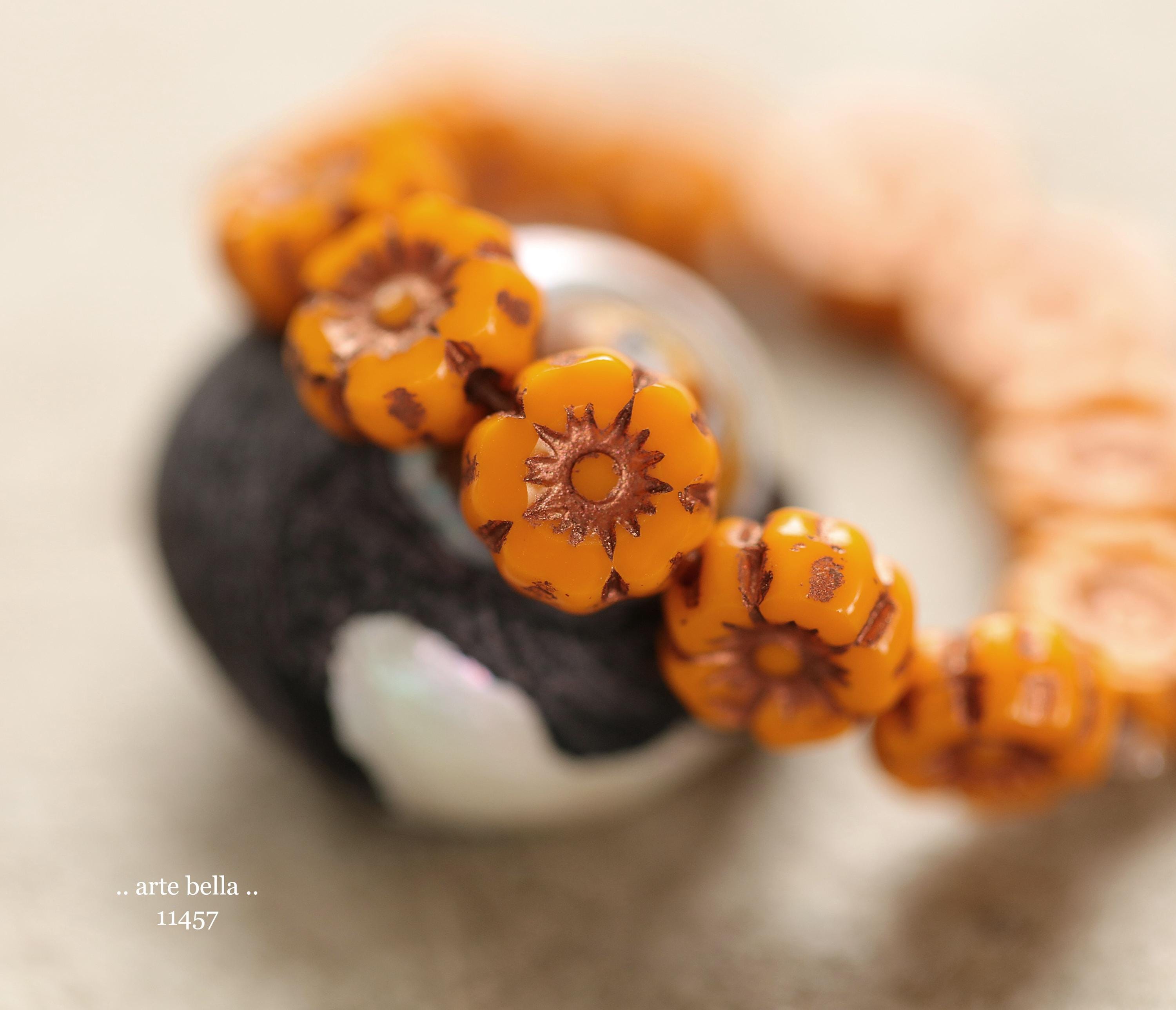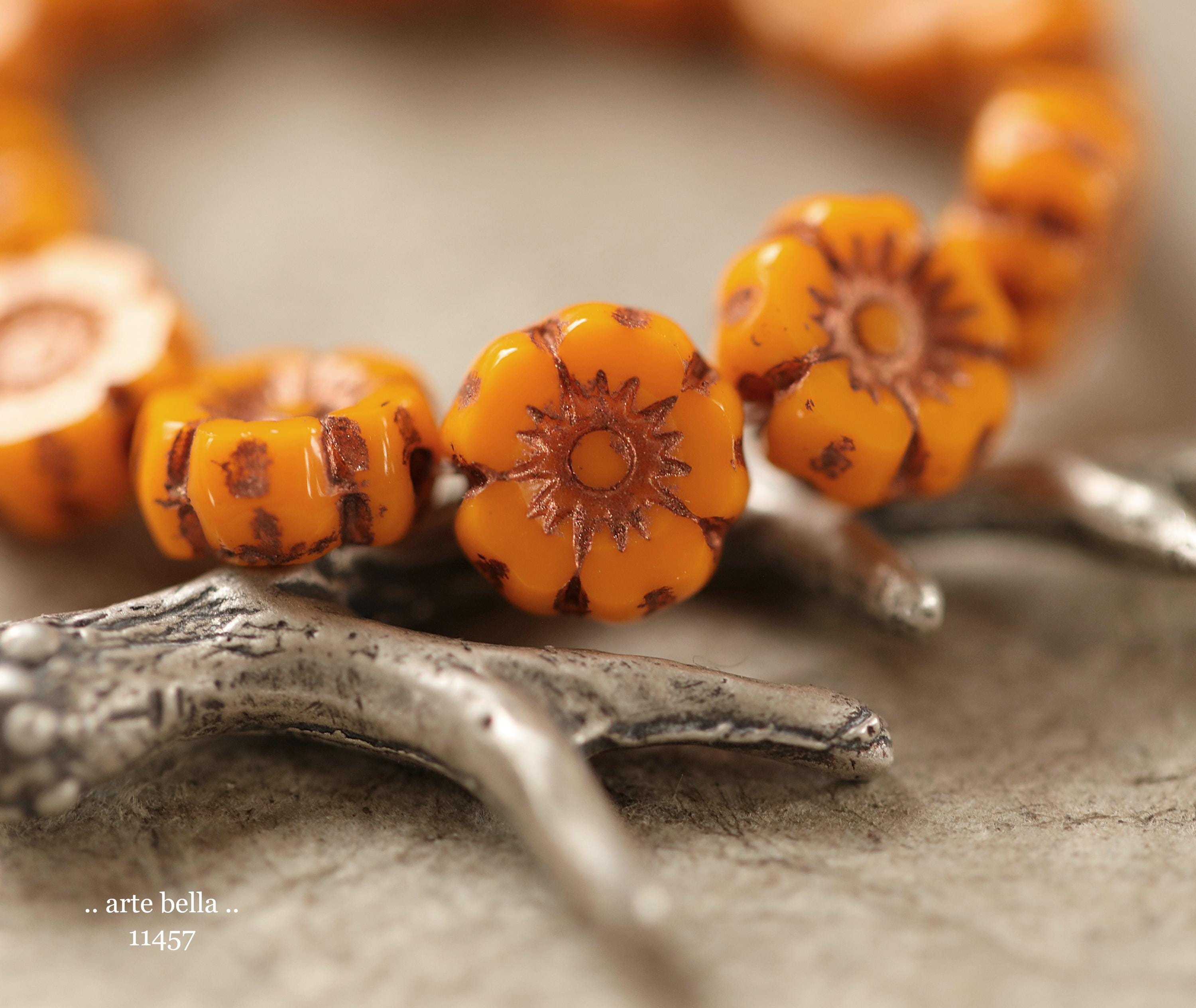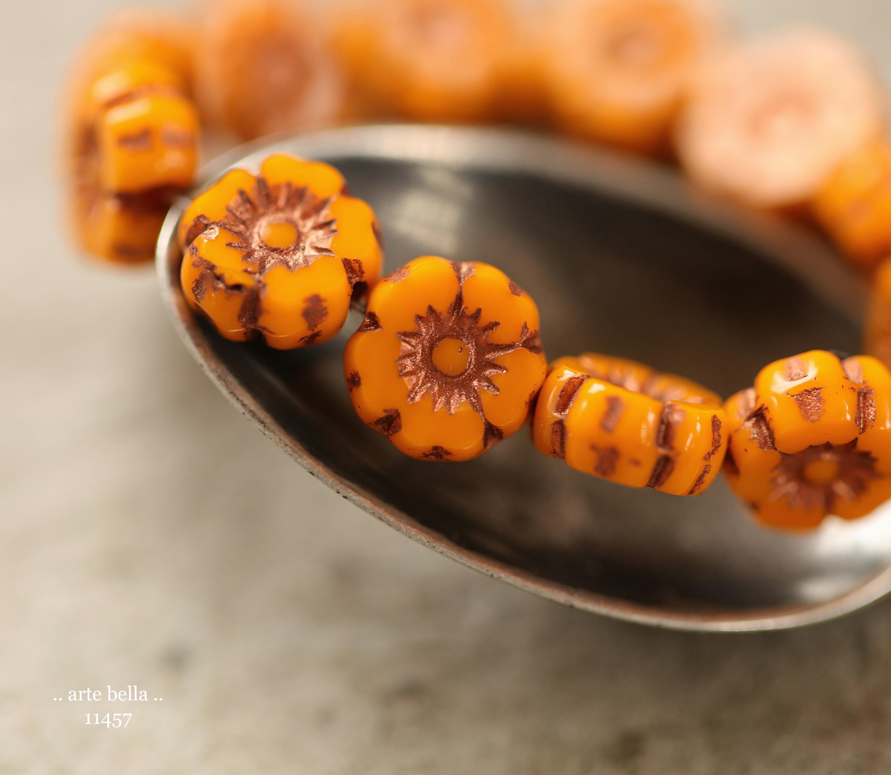 New .. BRONZED COREOPSIS 7mm .. 12 Premium Czech Glass Petite Hibiscus Flower Beads (11457-st) .. jewelry supplies