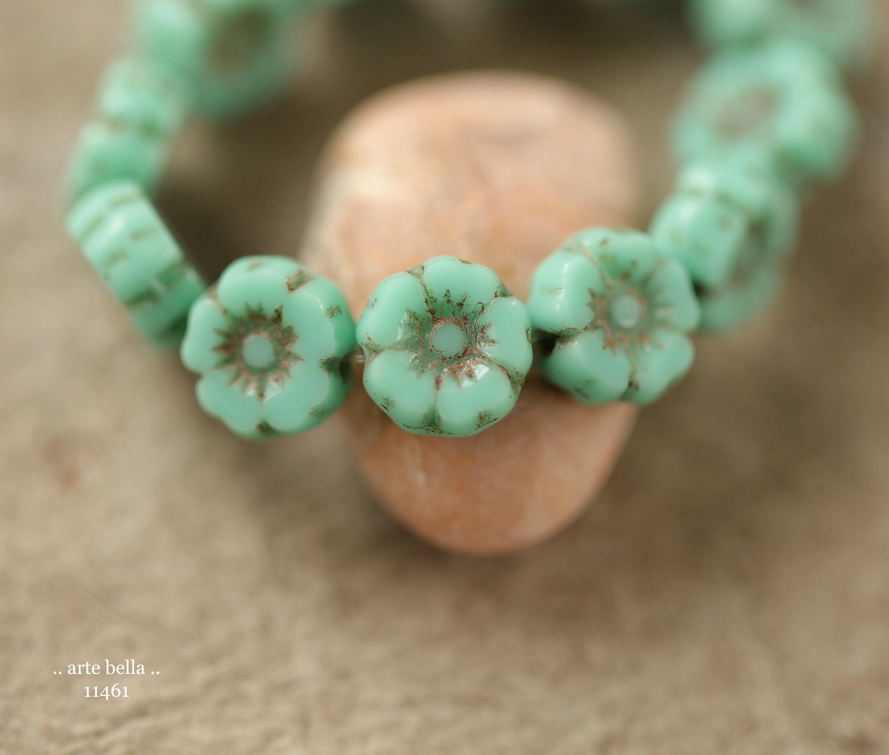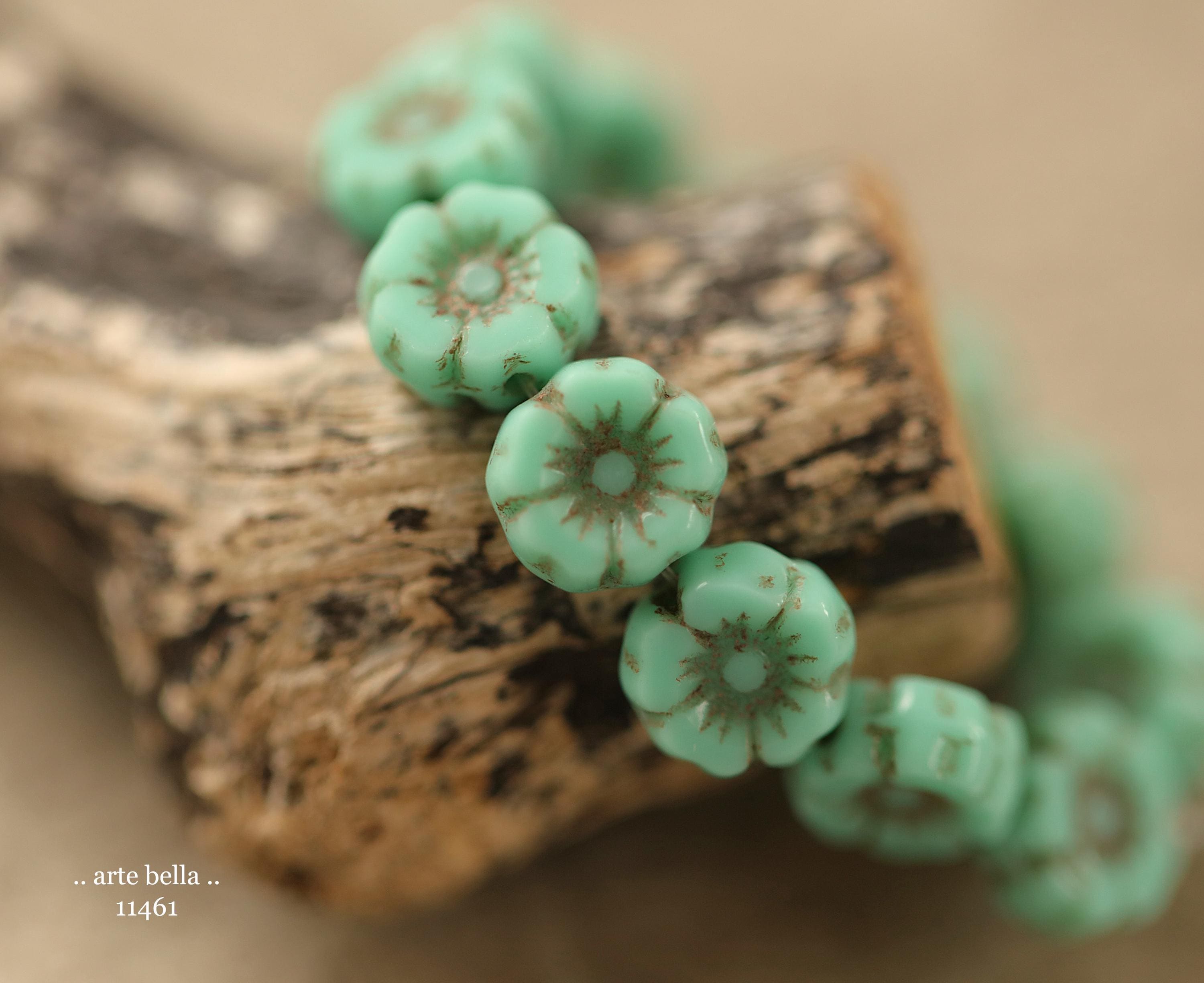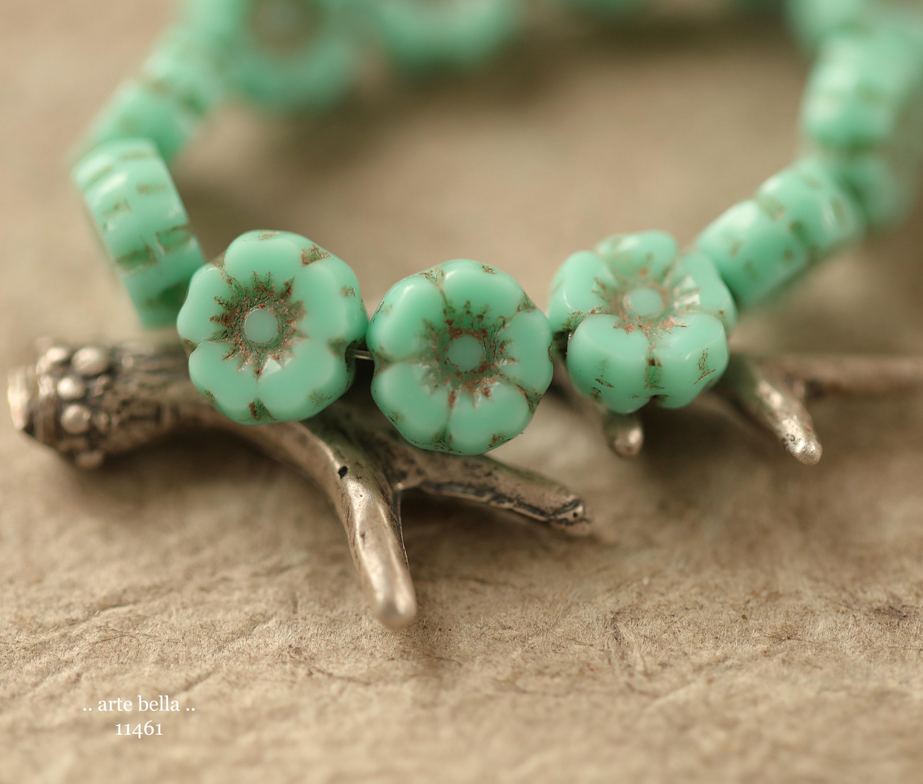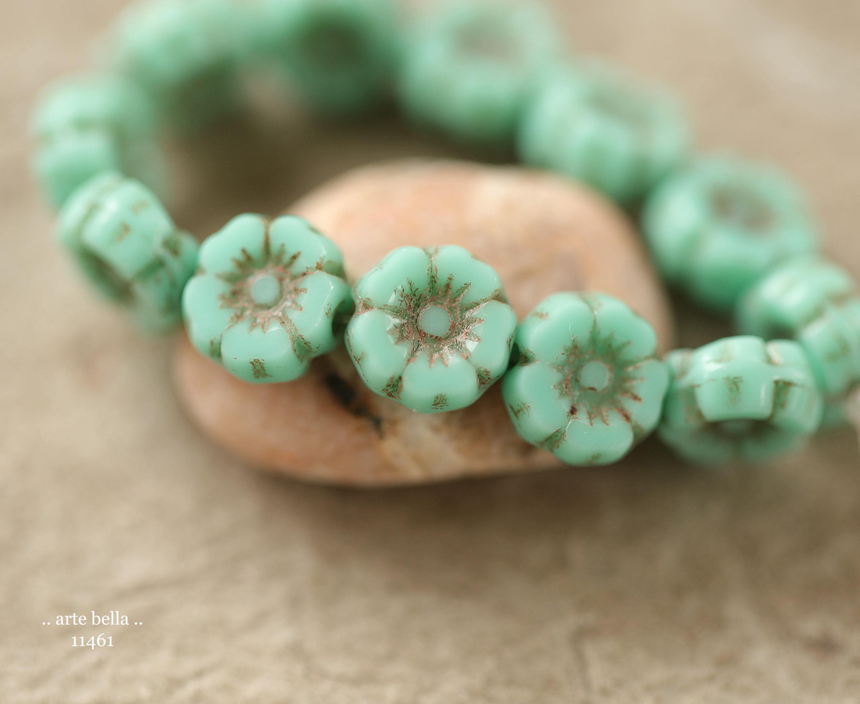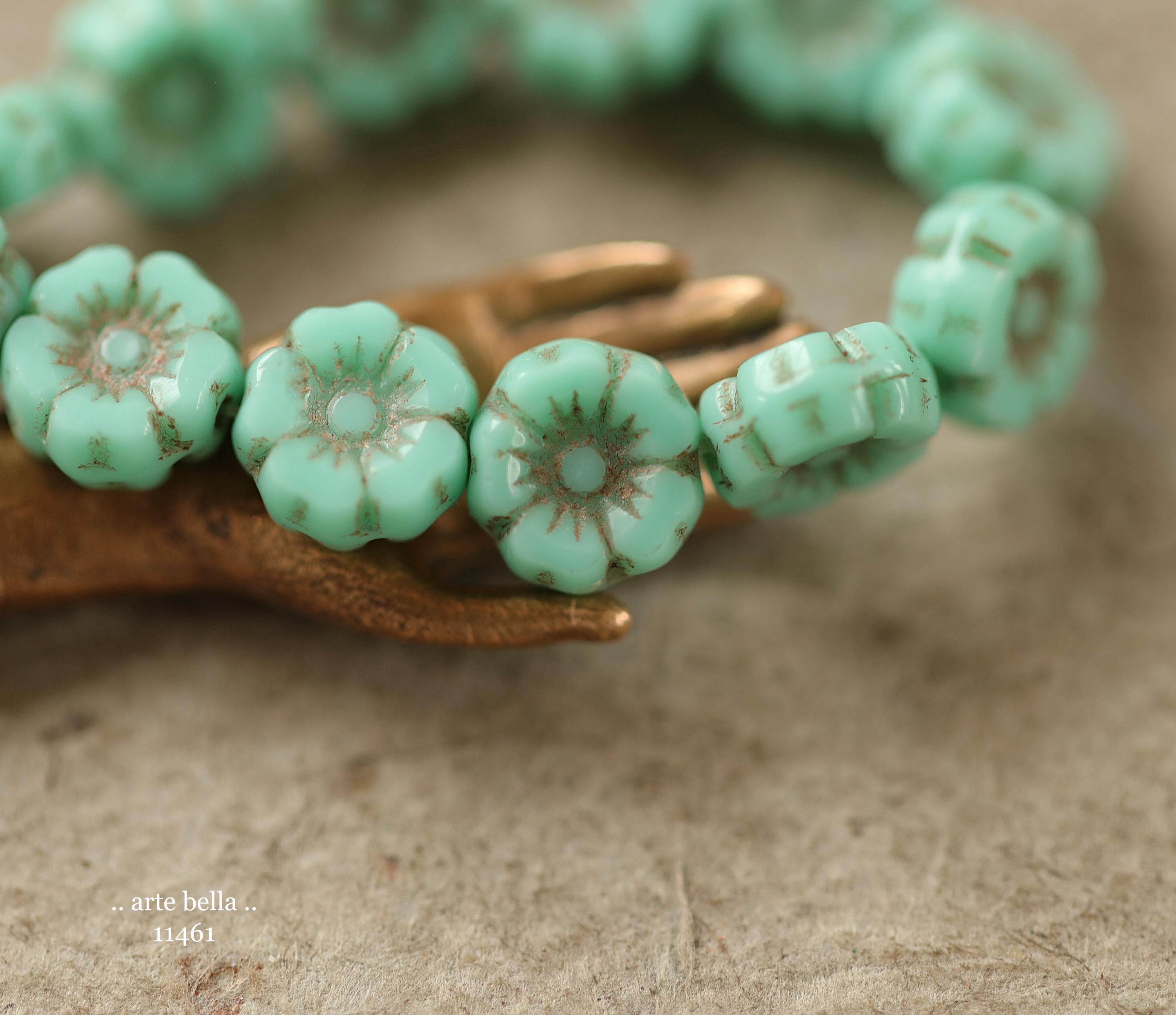 New .. TURQUOISE PANSY 7mm .. 12 Premium Czech Glass Petite Hibiscus Flower Beads (11461-st) .. jewelry supplies