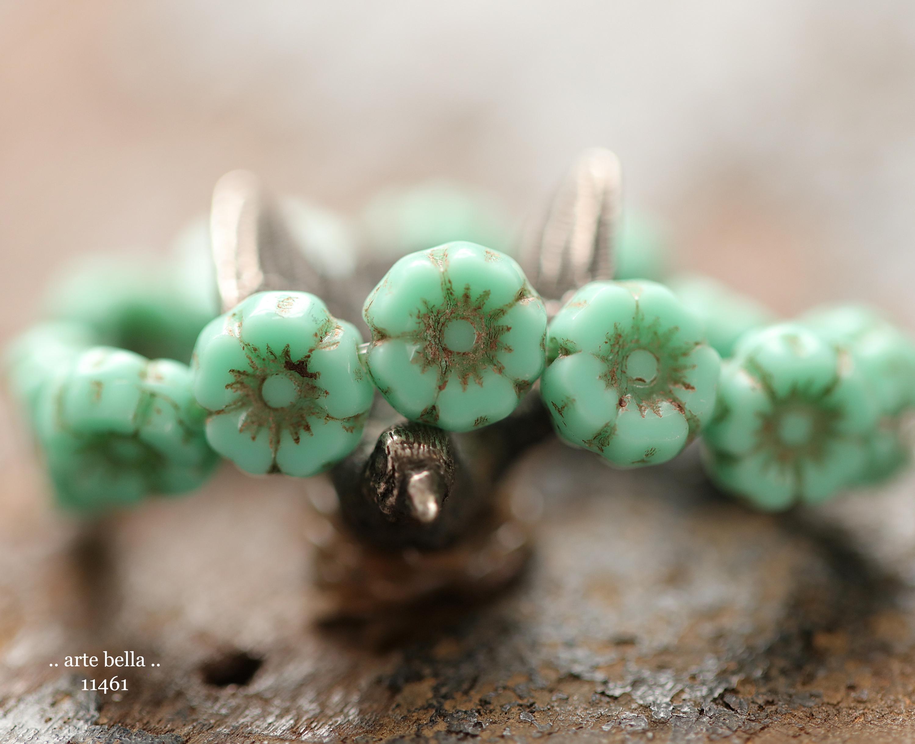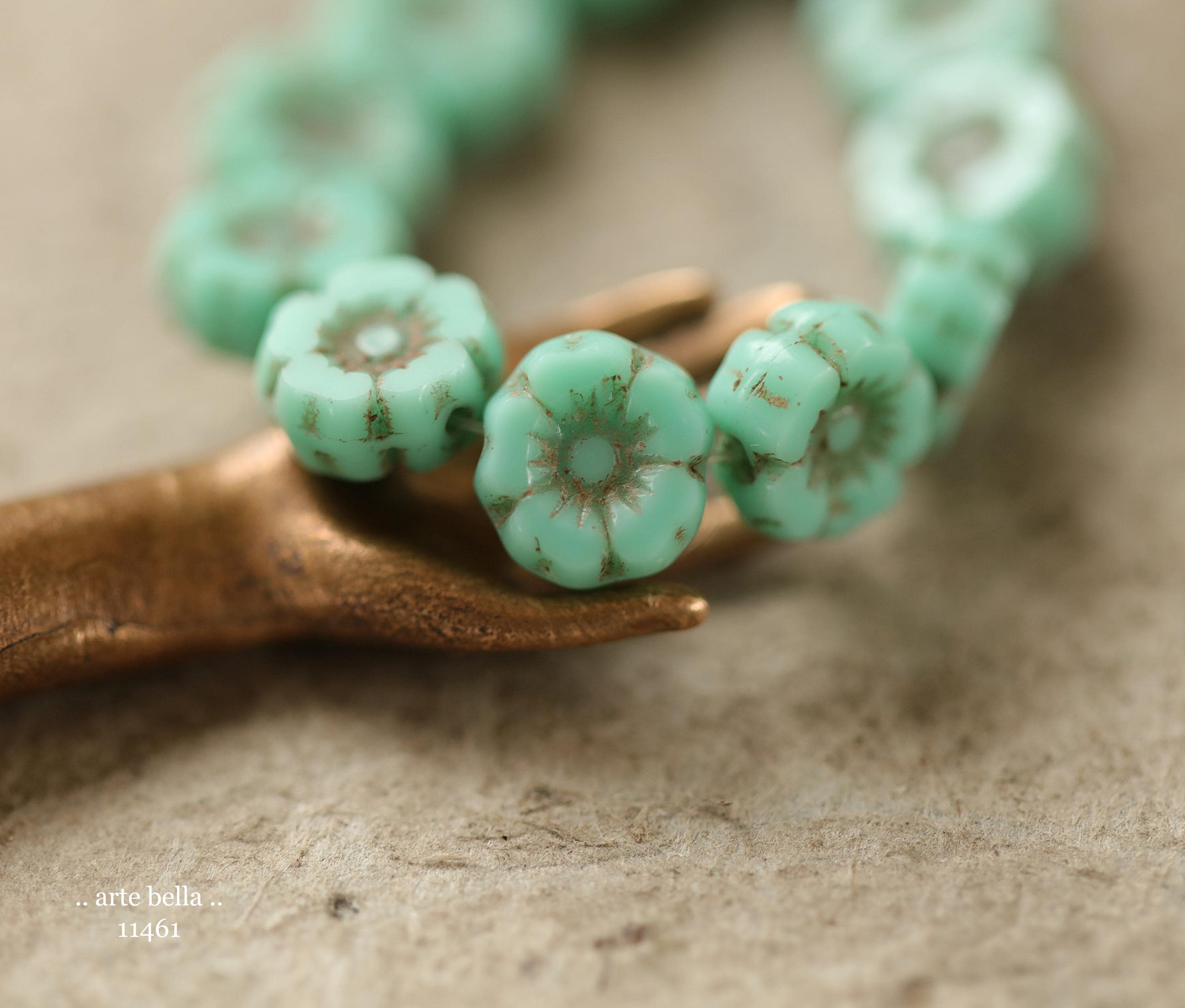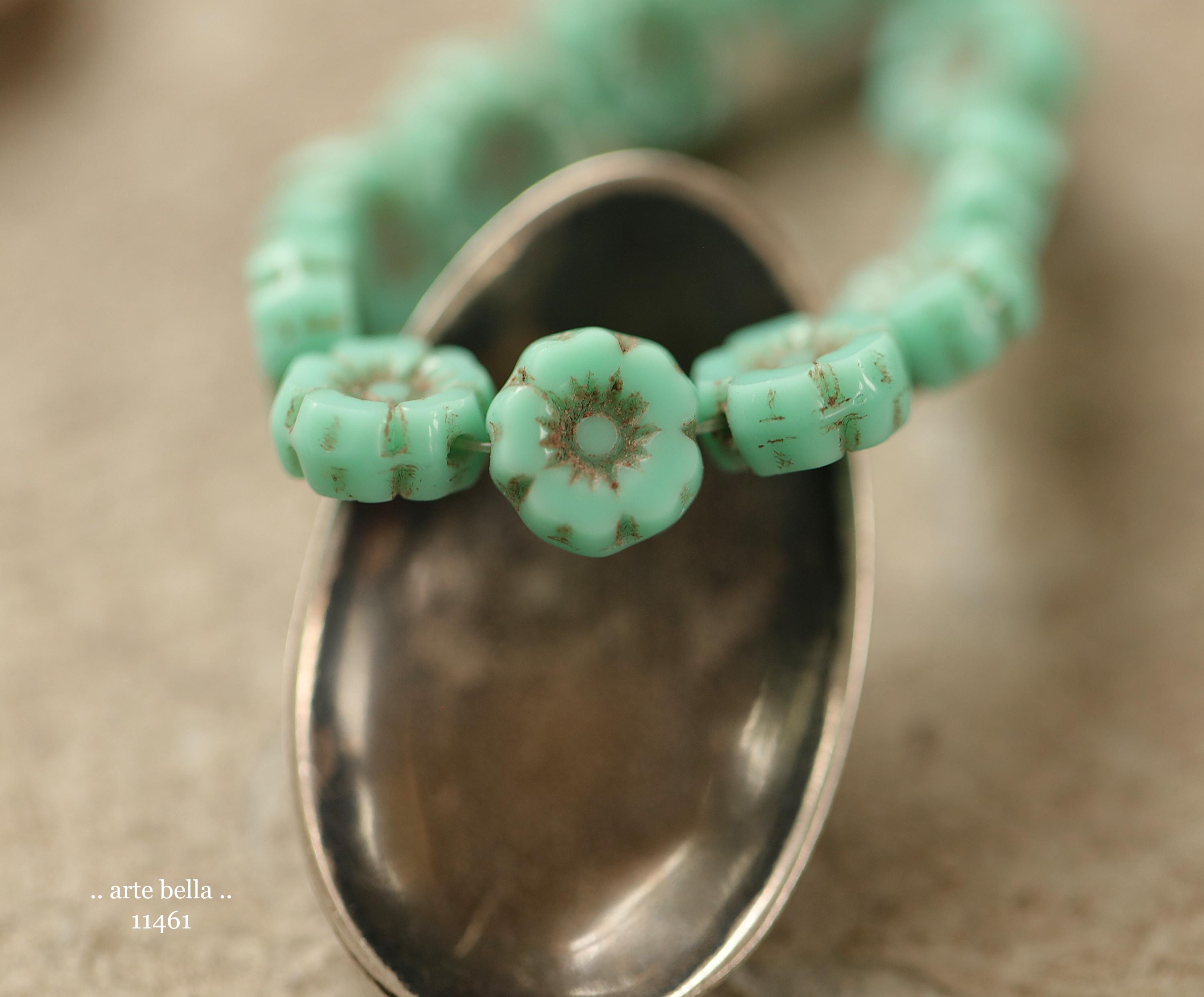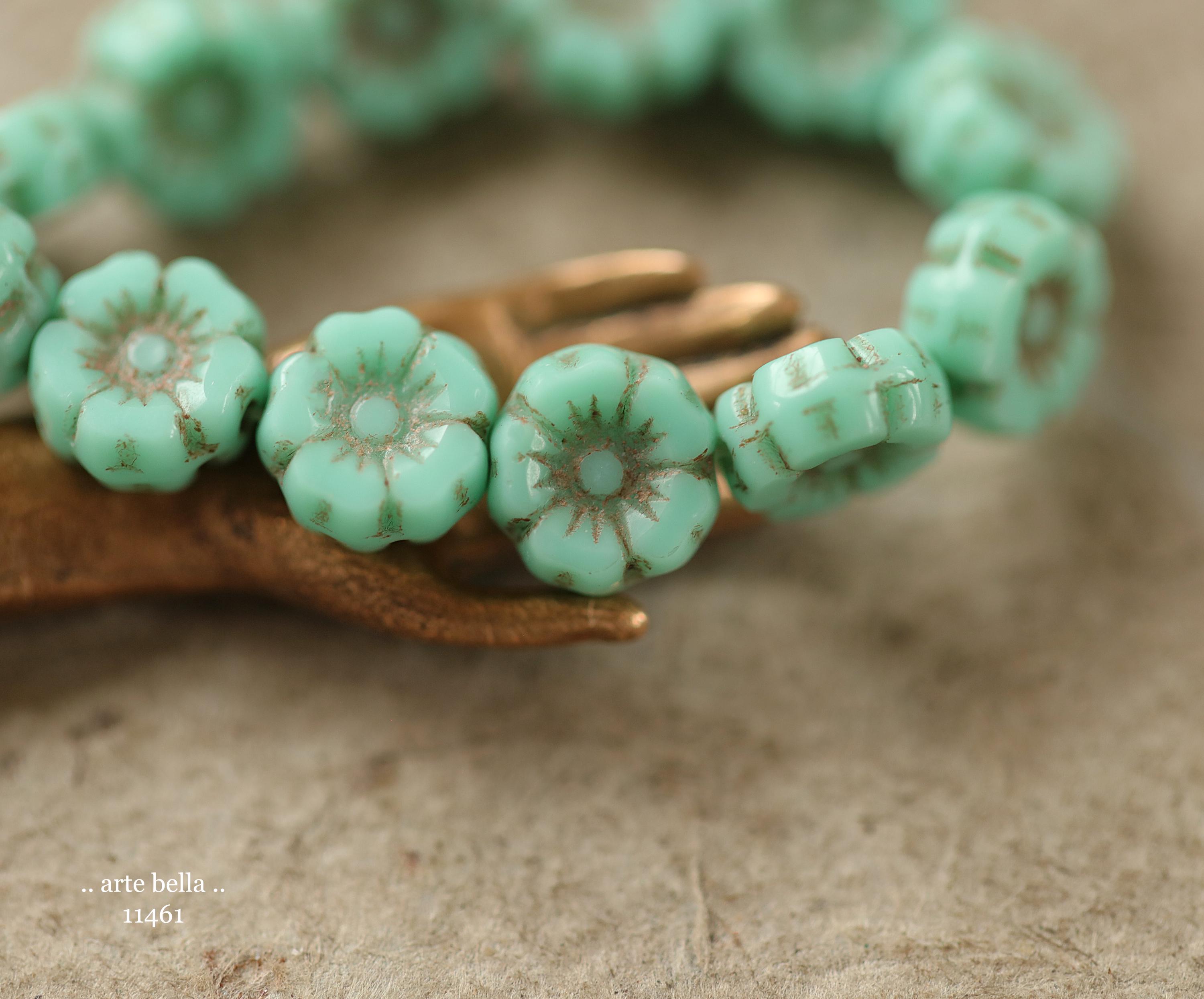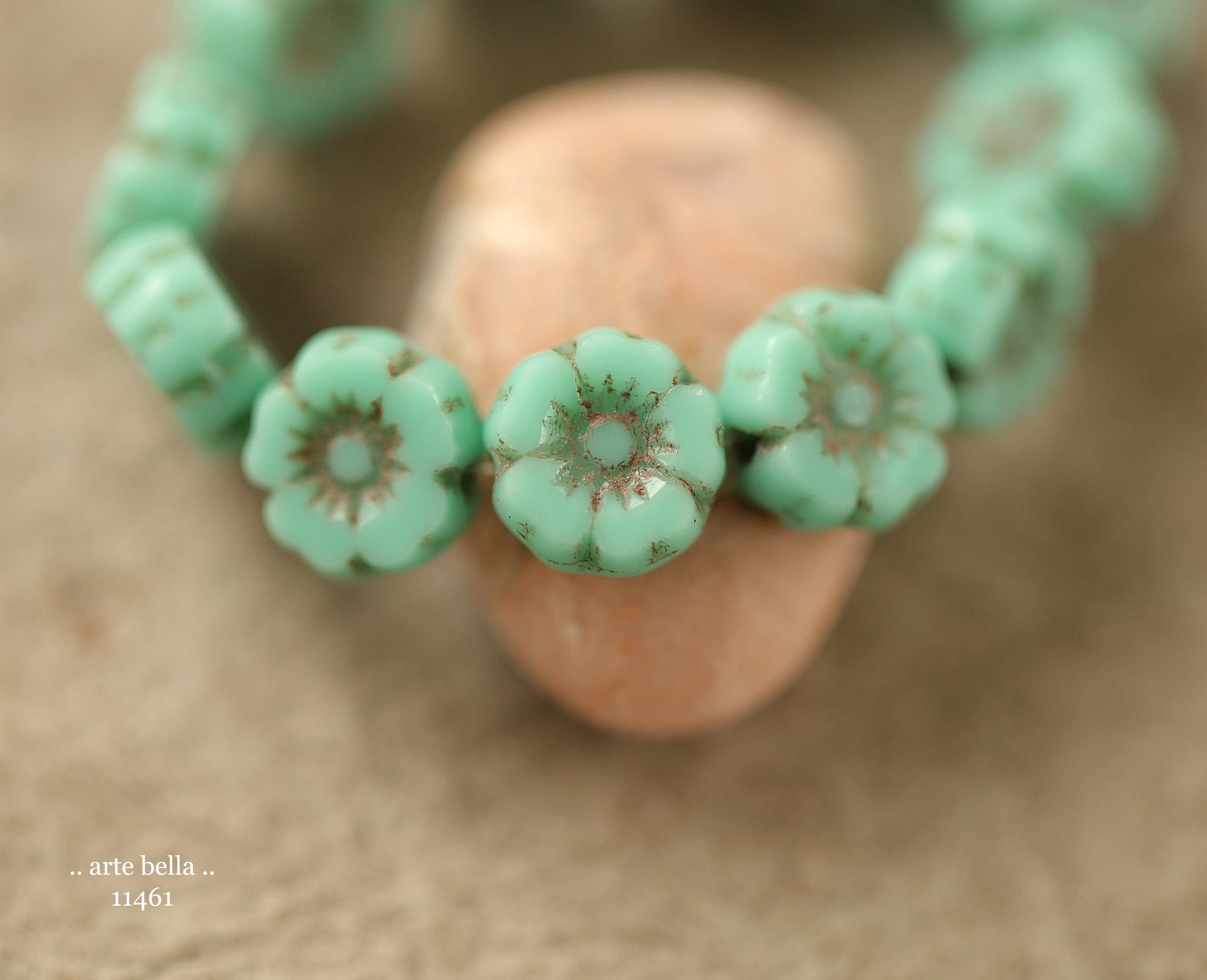 New .. TURQUOISE PANSY 7mm .. 12 Premium Czech Glass Petite Hibiscus Flower Beads (11461-st) .. jewelry supplies
