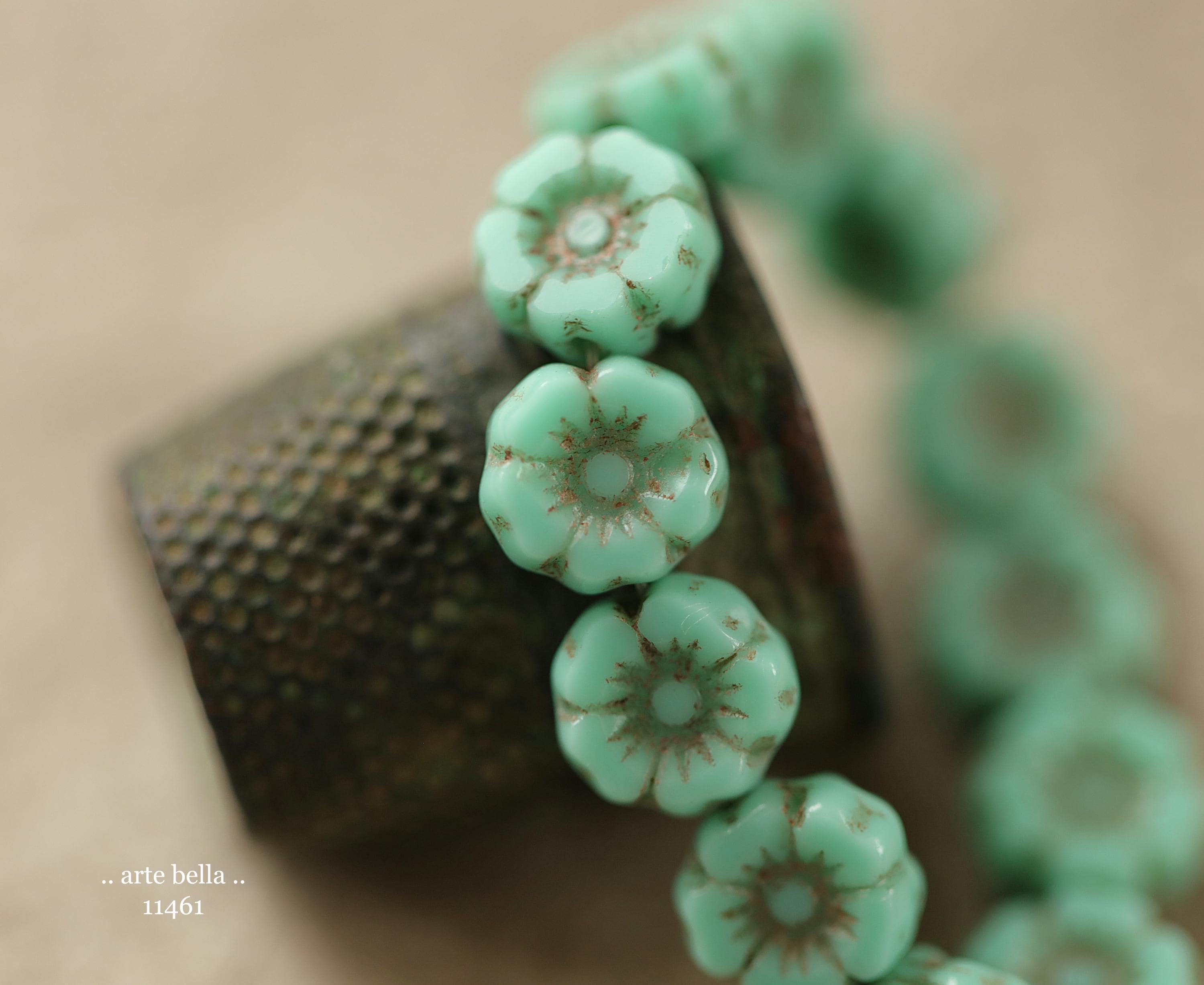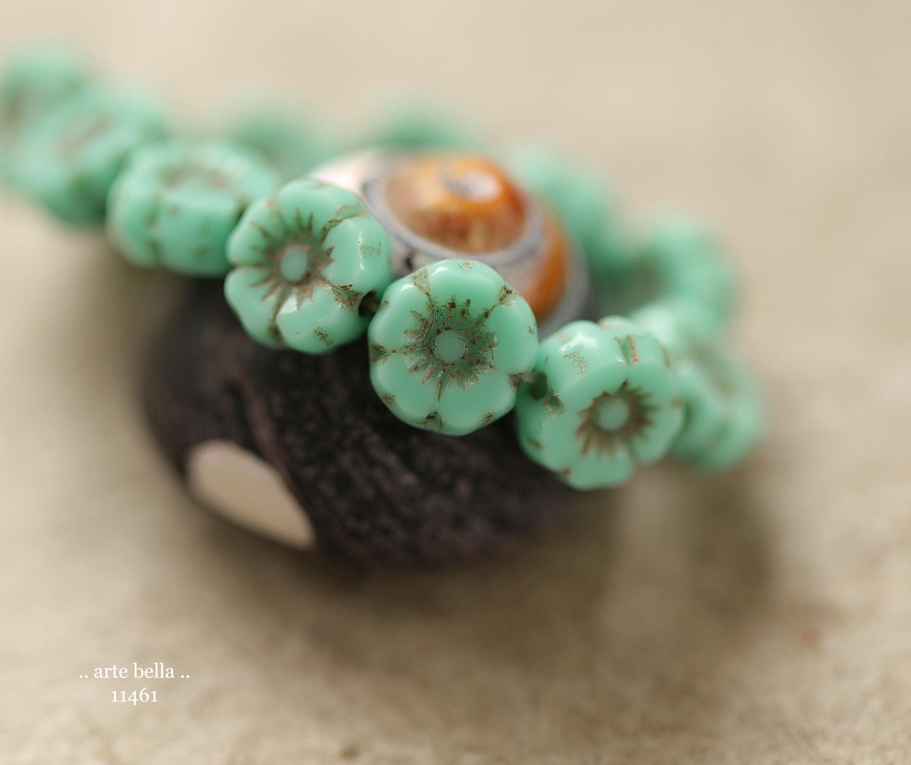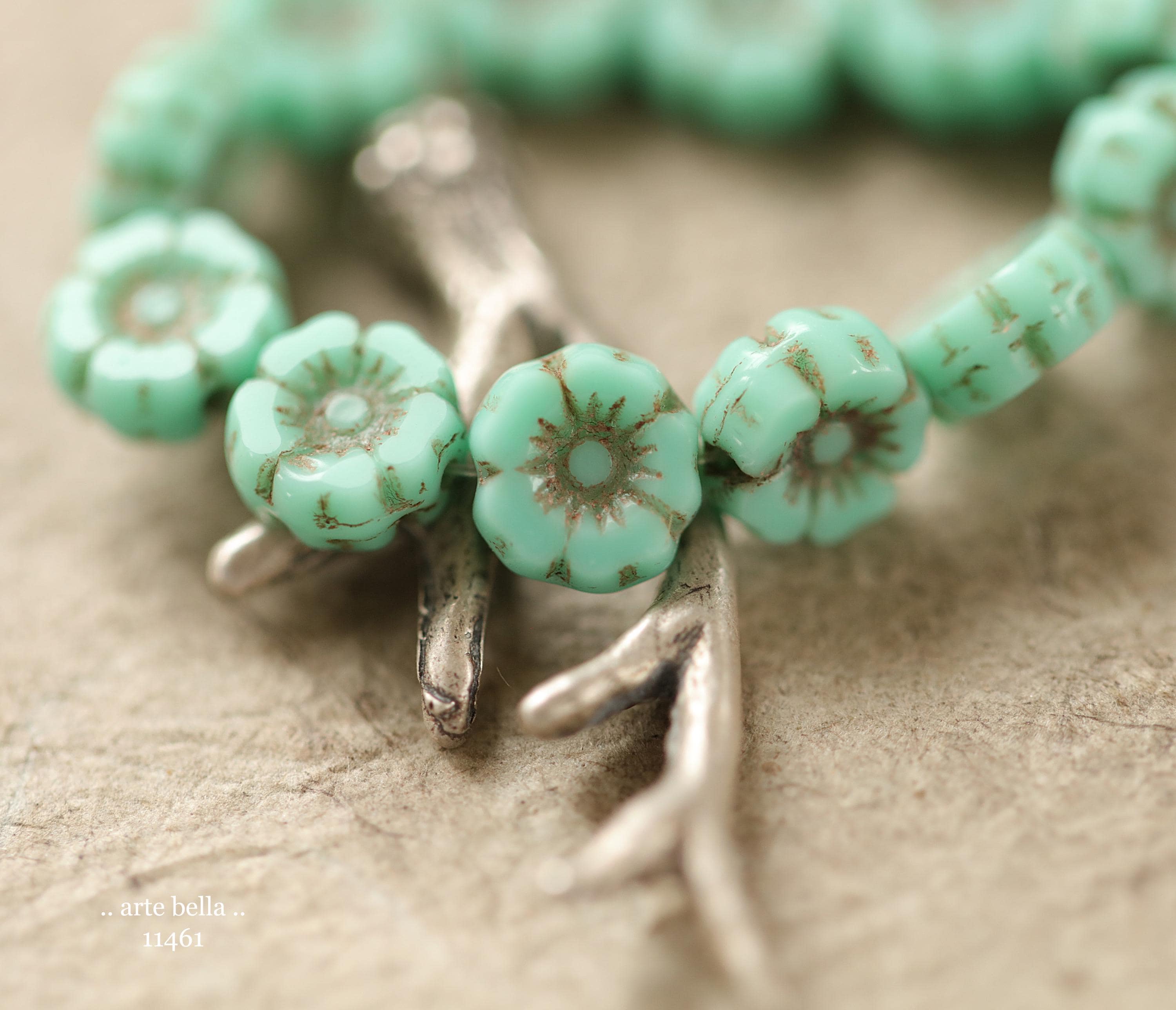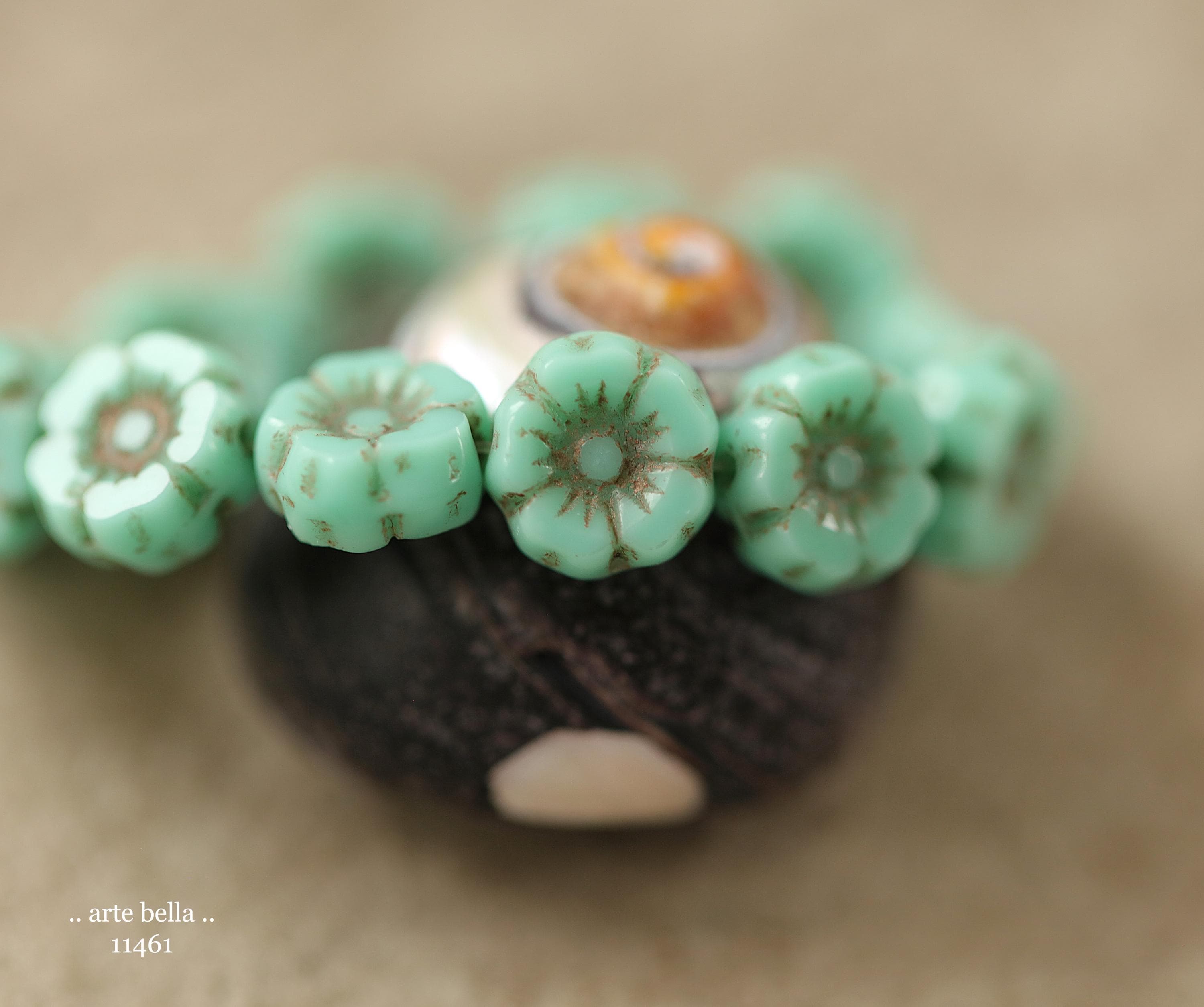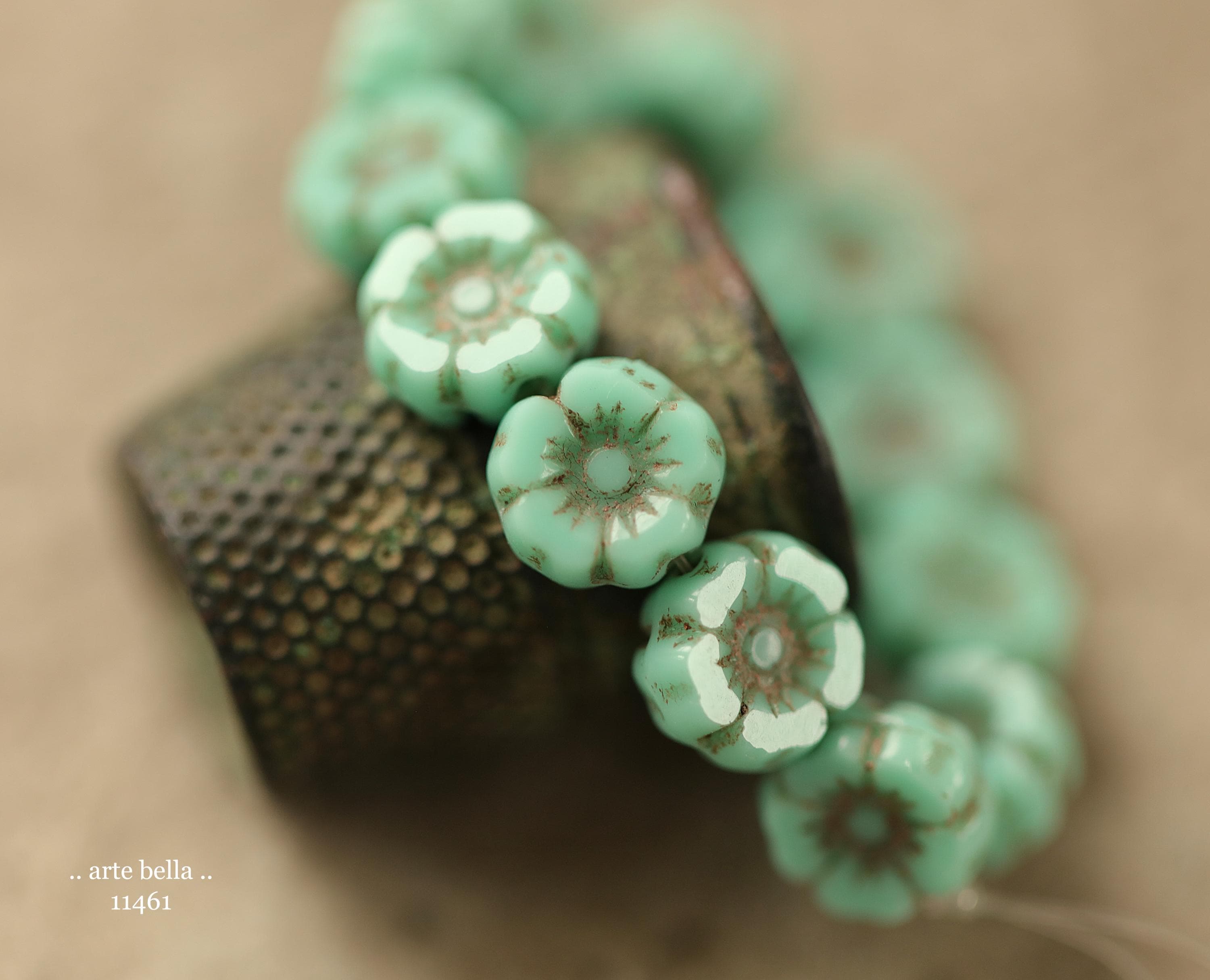 New .. TURQUOISE PANSY 7mm .. 12 Premium Czech Glass Petite Hibiscus Flower Beads (11461-st) .. jewelry supplies