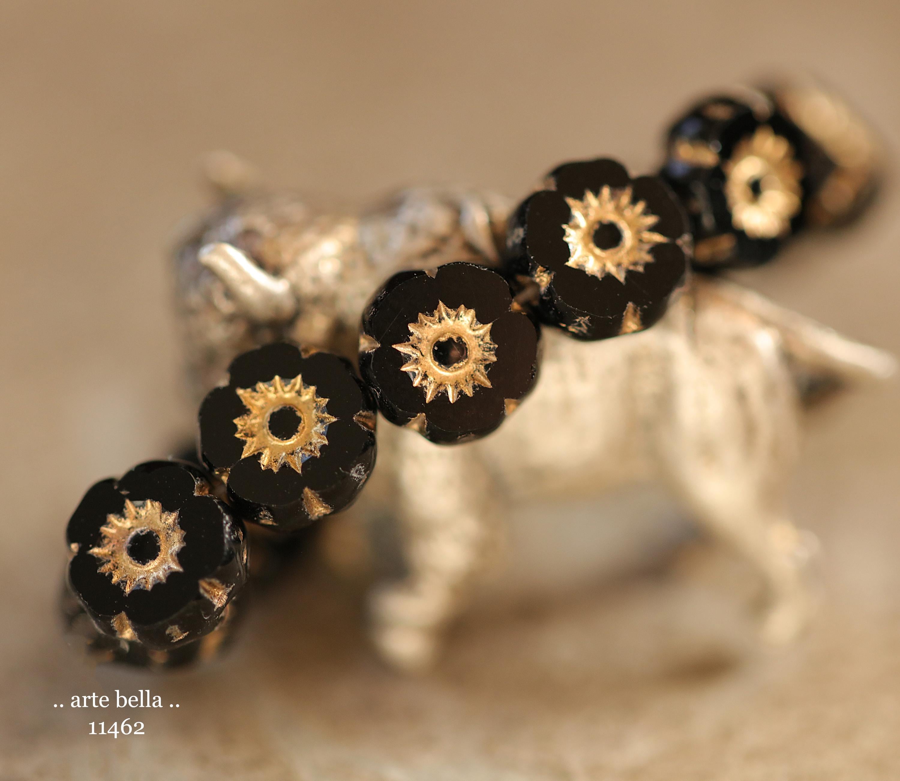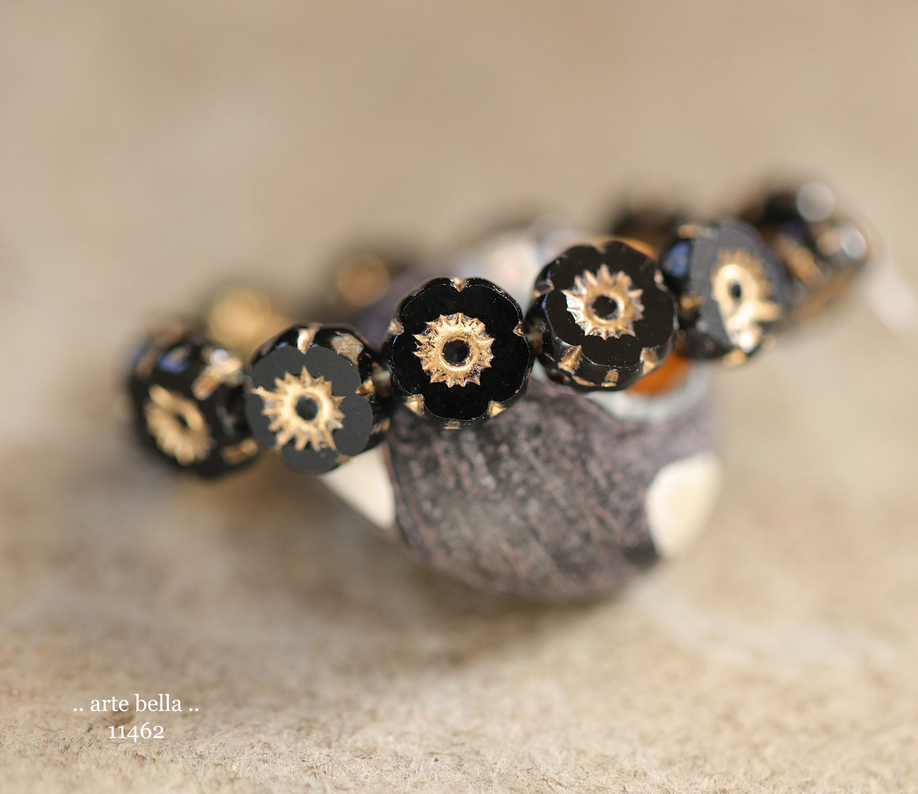 New .. GOLDEN TWILIGHT PANSY 7mm .. 12 Premium Czech Glass Petite Hibiscus Flower Bead Mix (11462-st) .. jewelry supplies