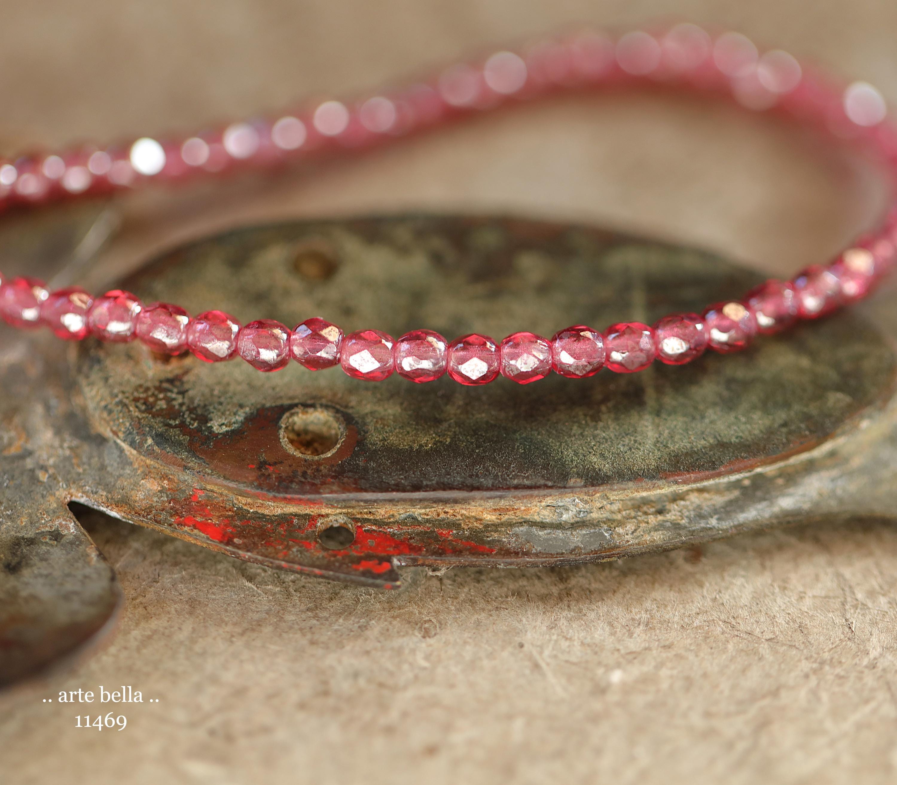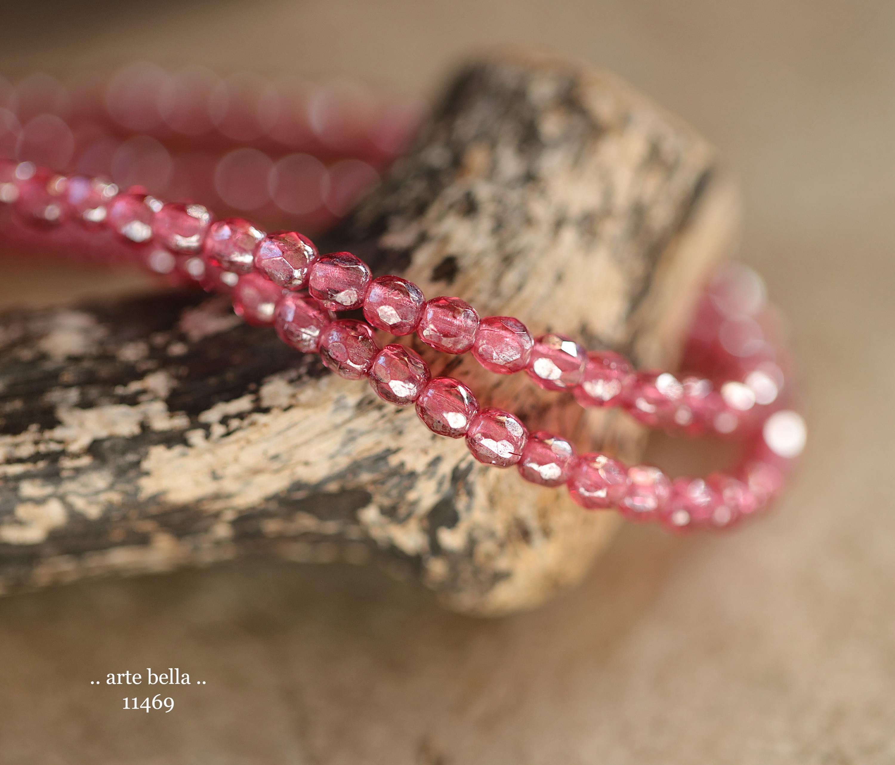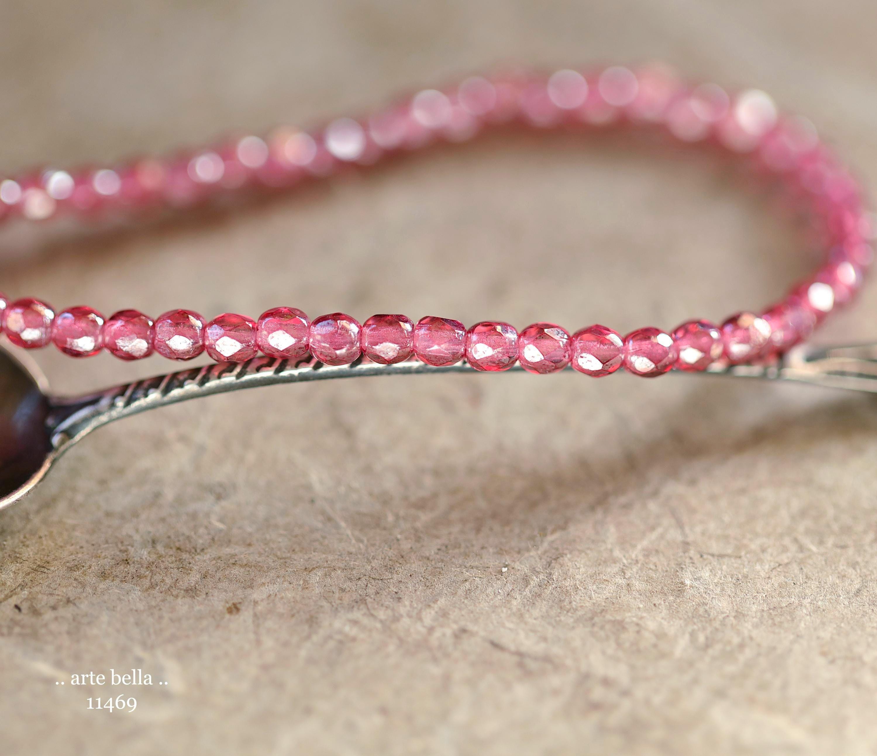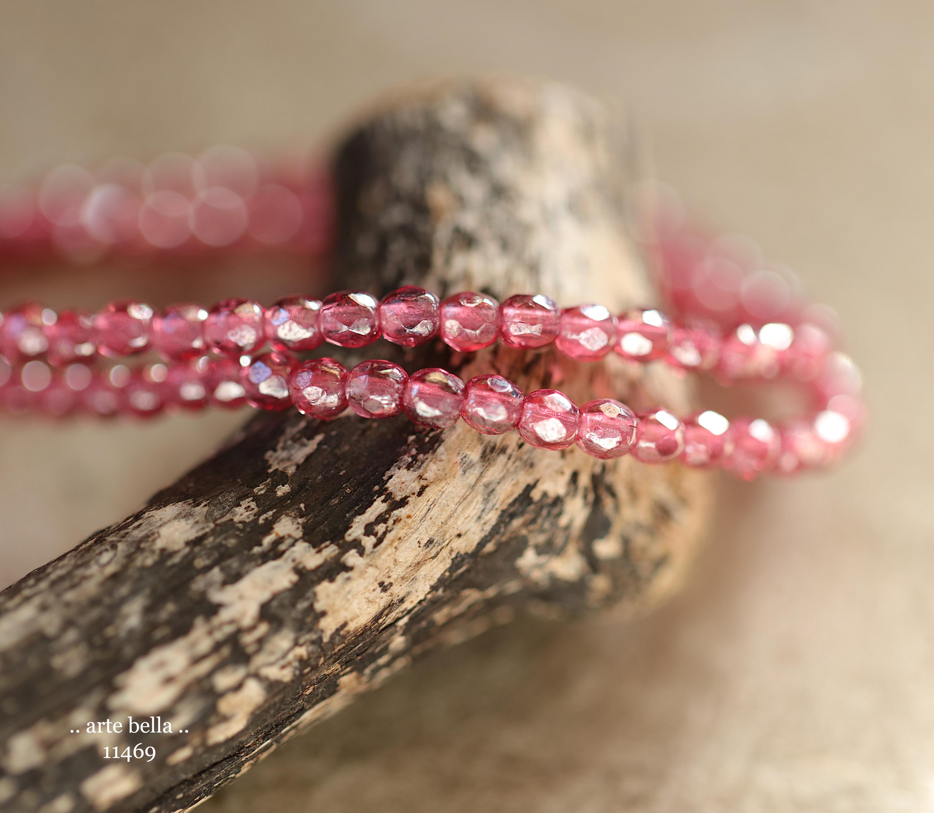 New .. SILVERED FUCHSIA BITS .. 50 Premium Czech Glass Faceted Round Beads 3mm (11469-st) .. jewelry supplies
