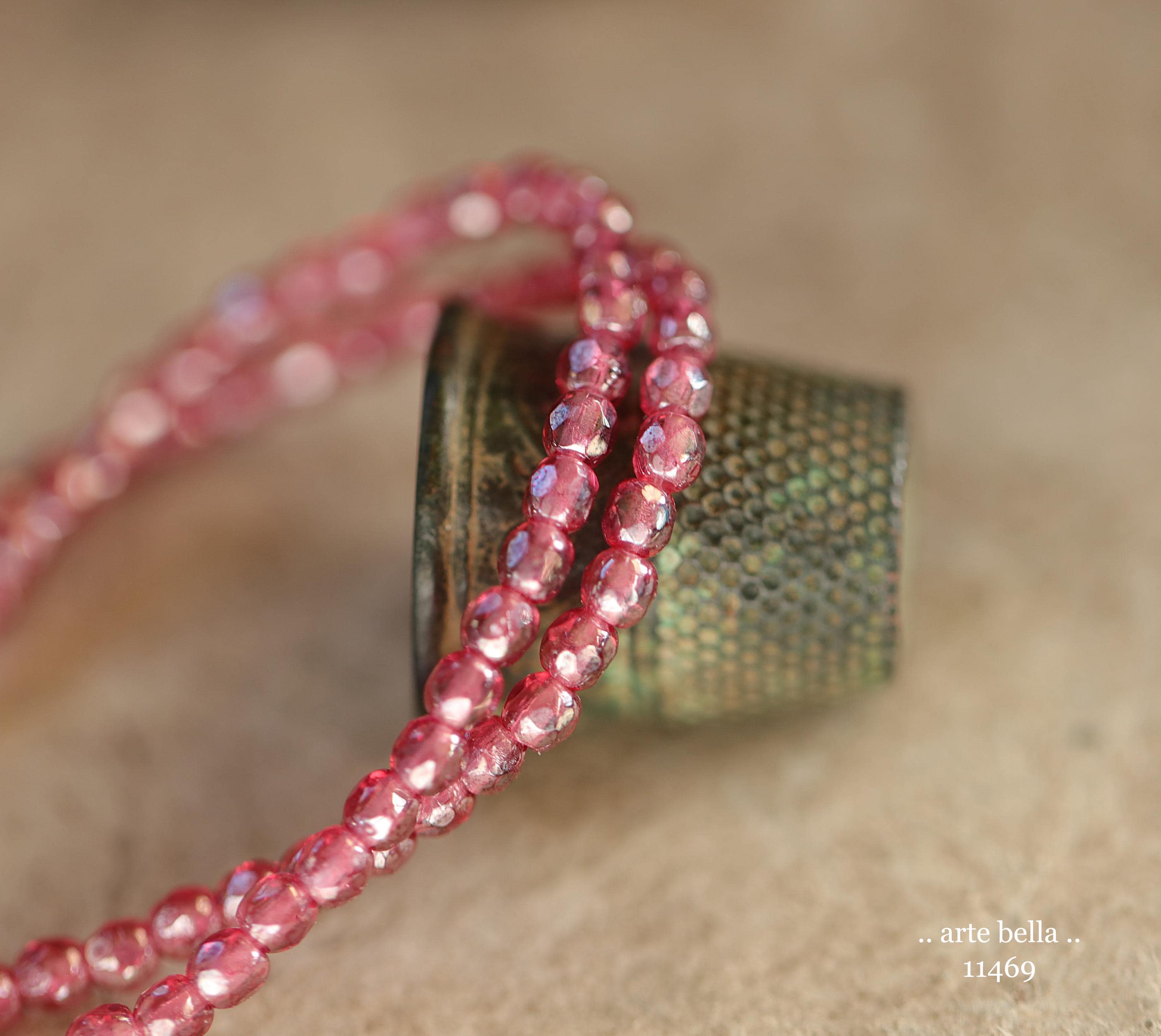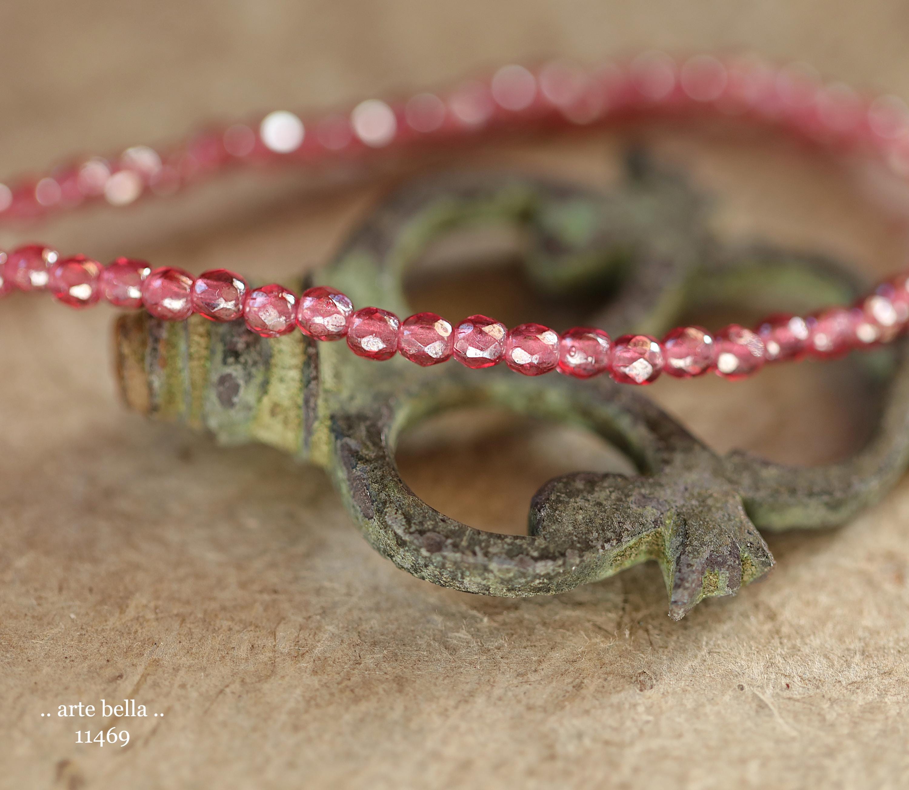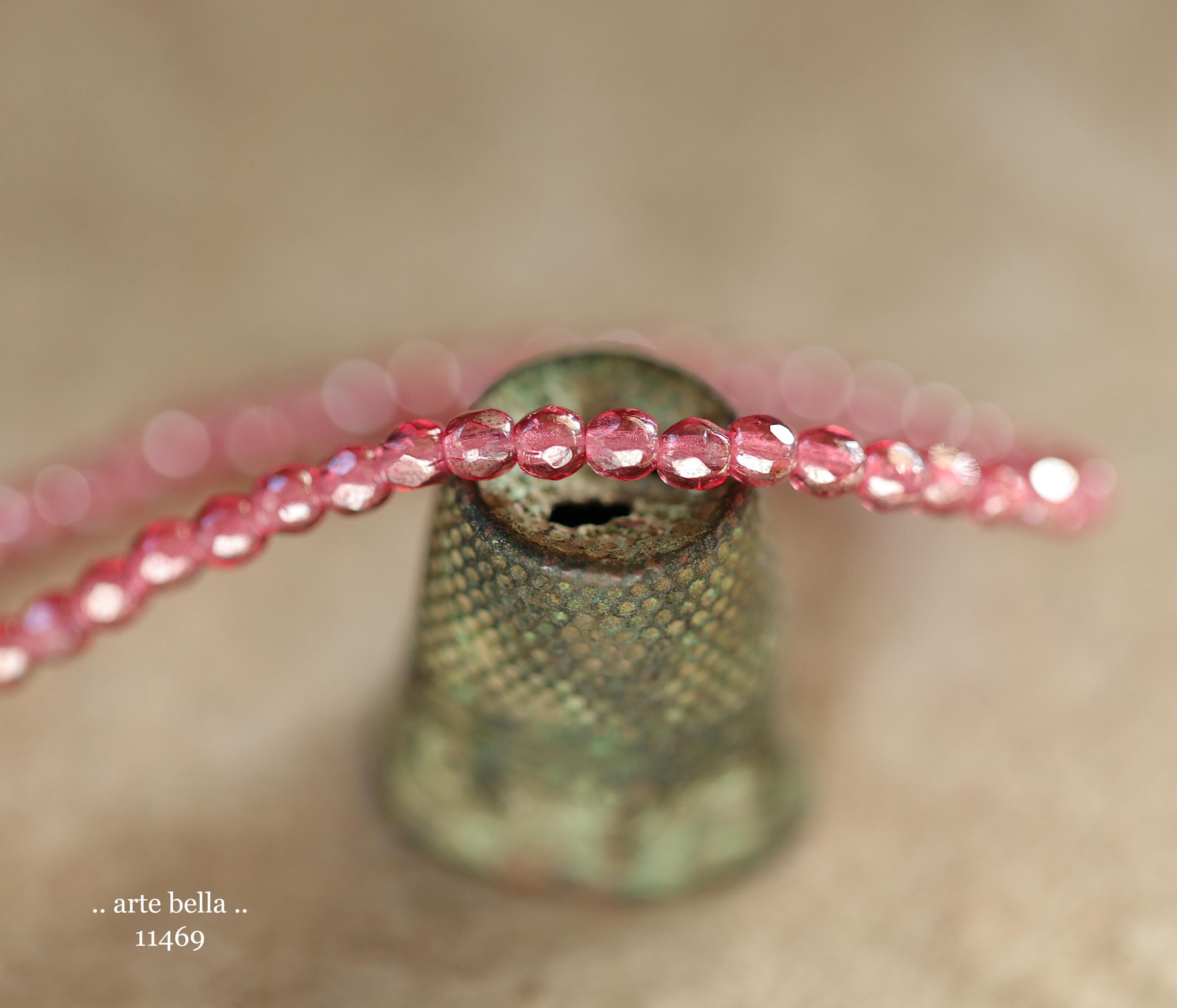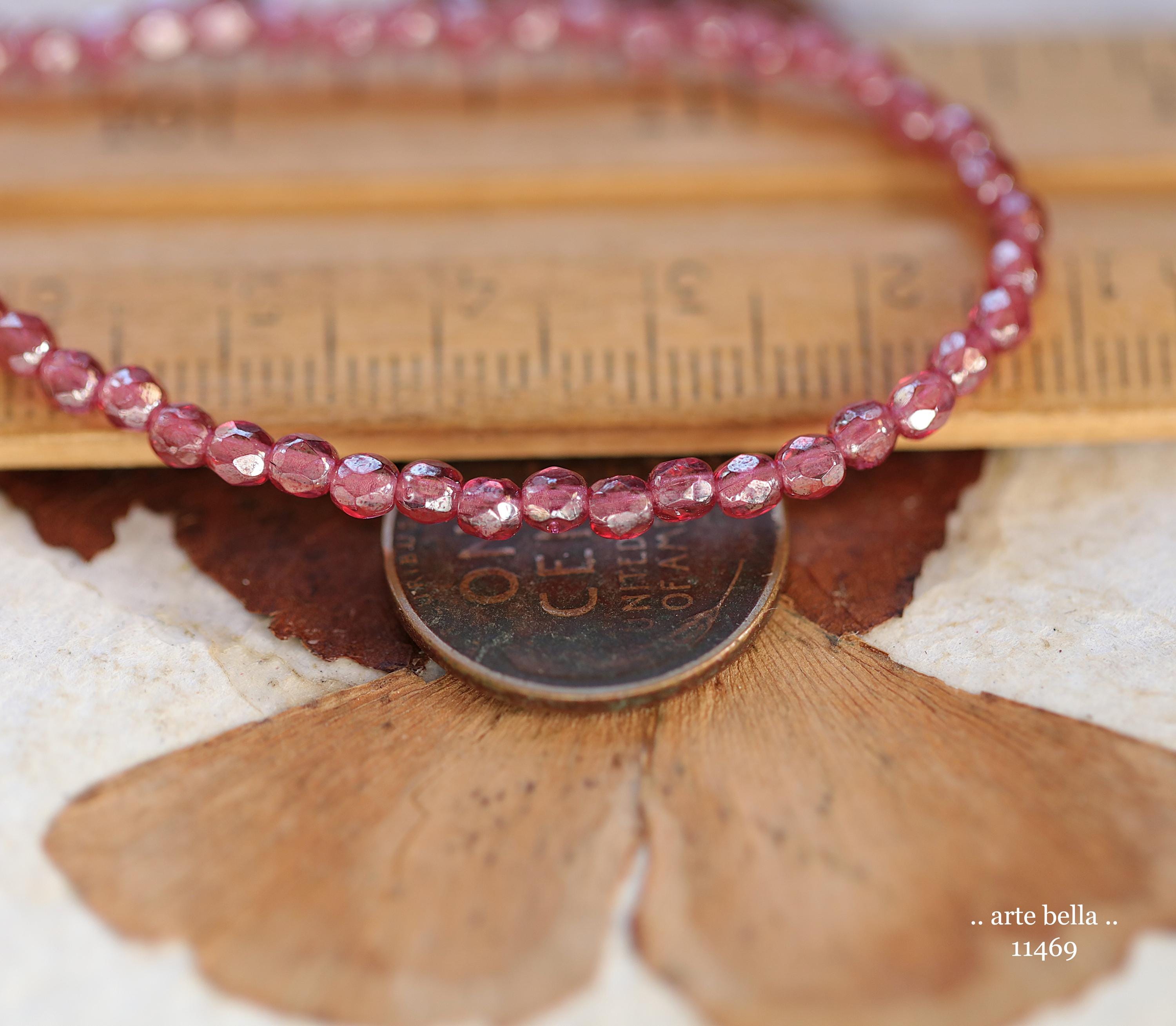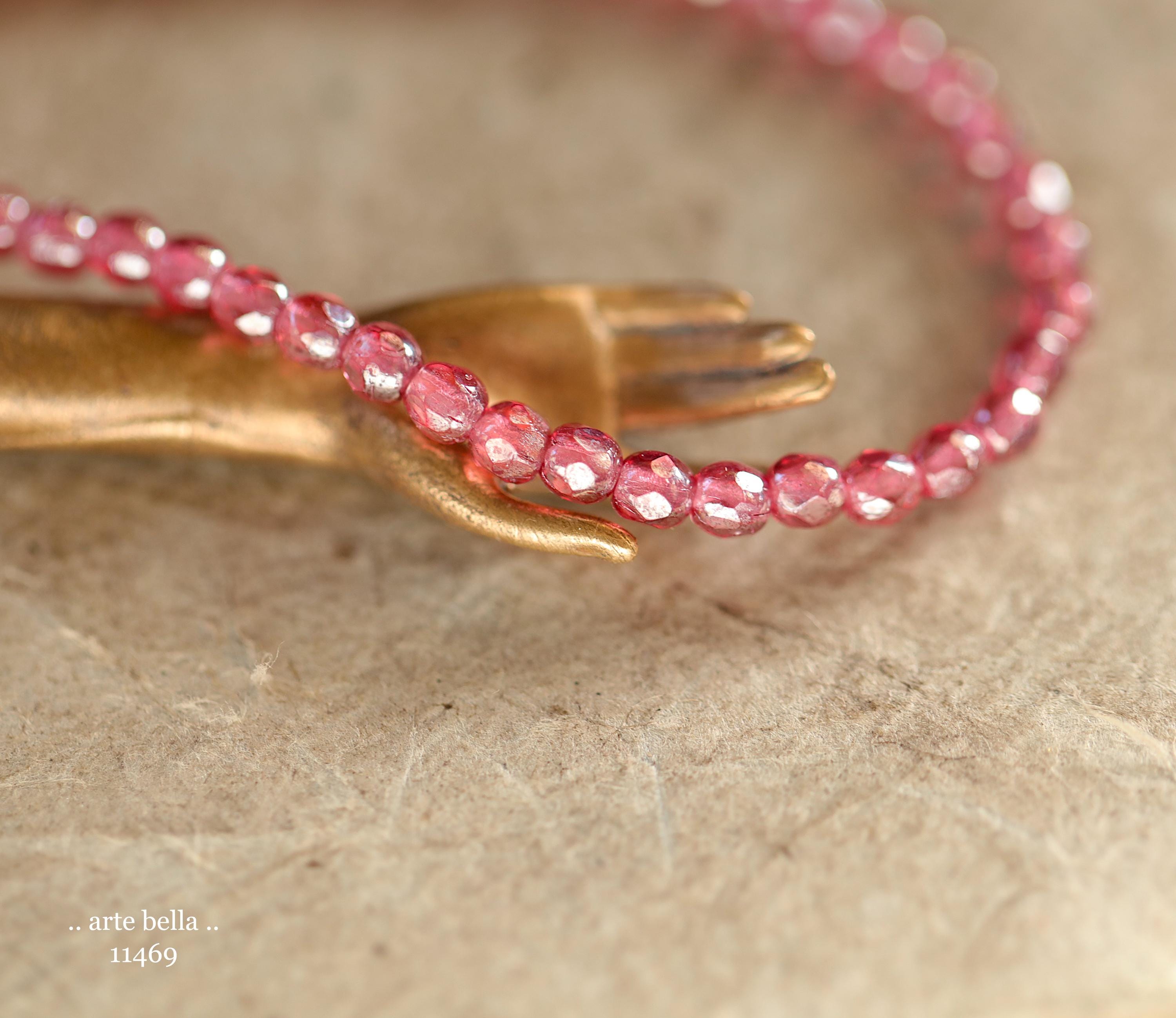 New .. SILVERED FUCHSIA BITS .. 50 Premium Czech Glass Faceted Round Beads 3mm (11469-st) .. jewelry supplies