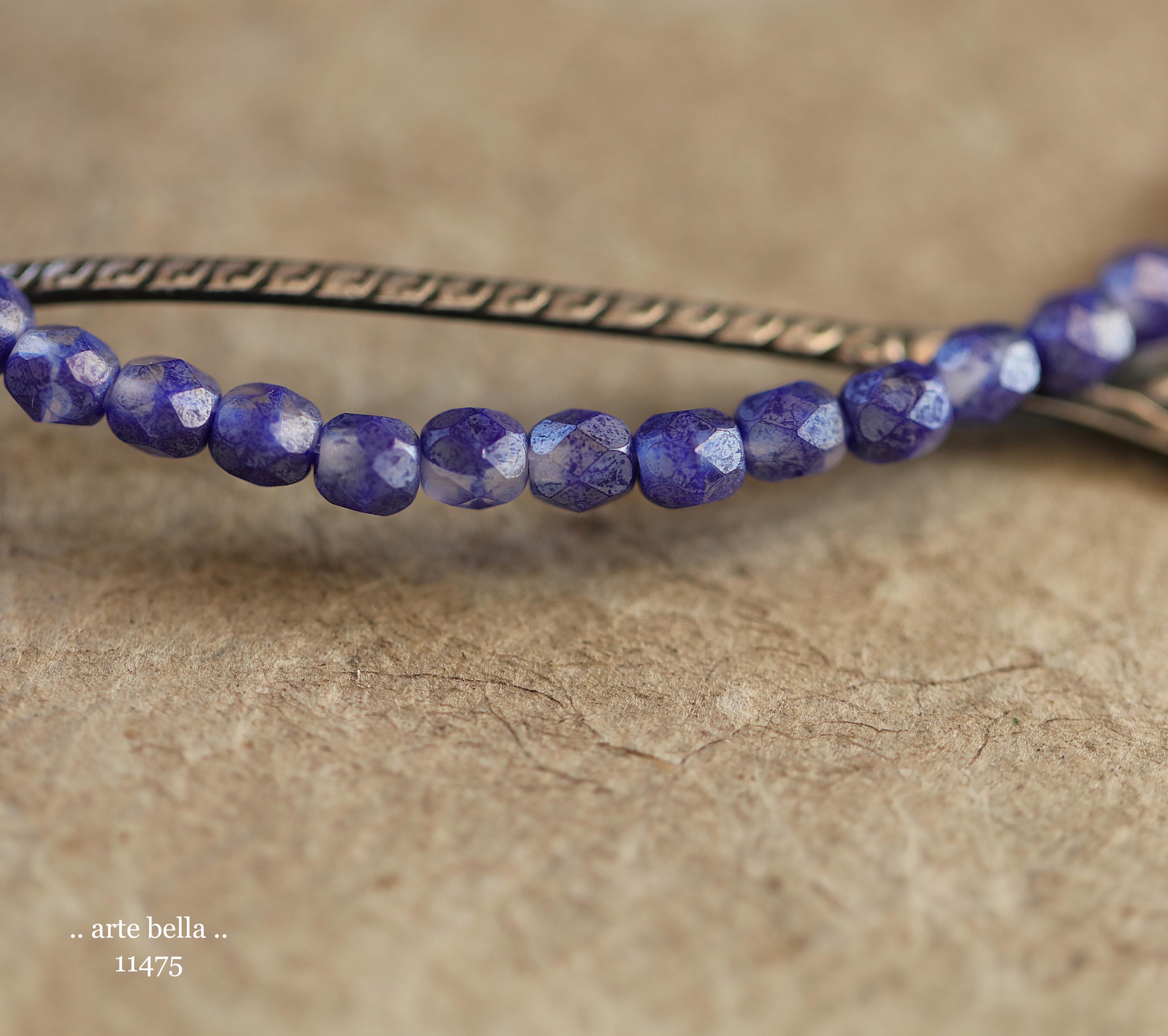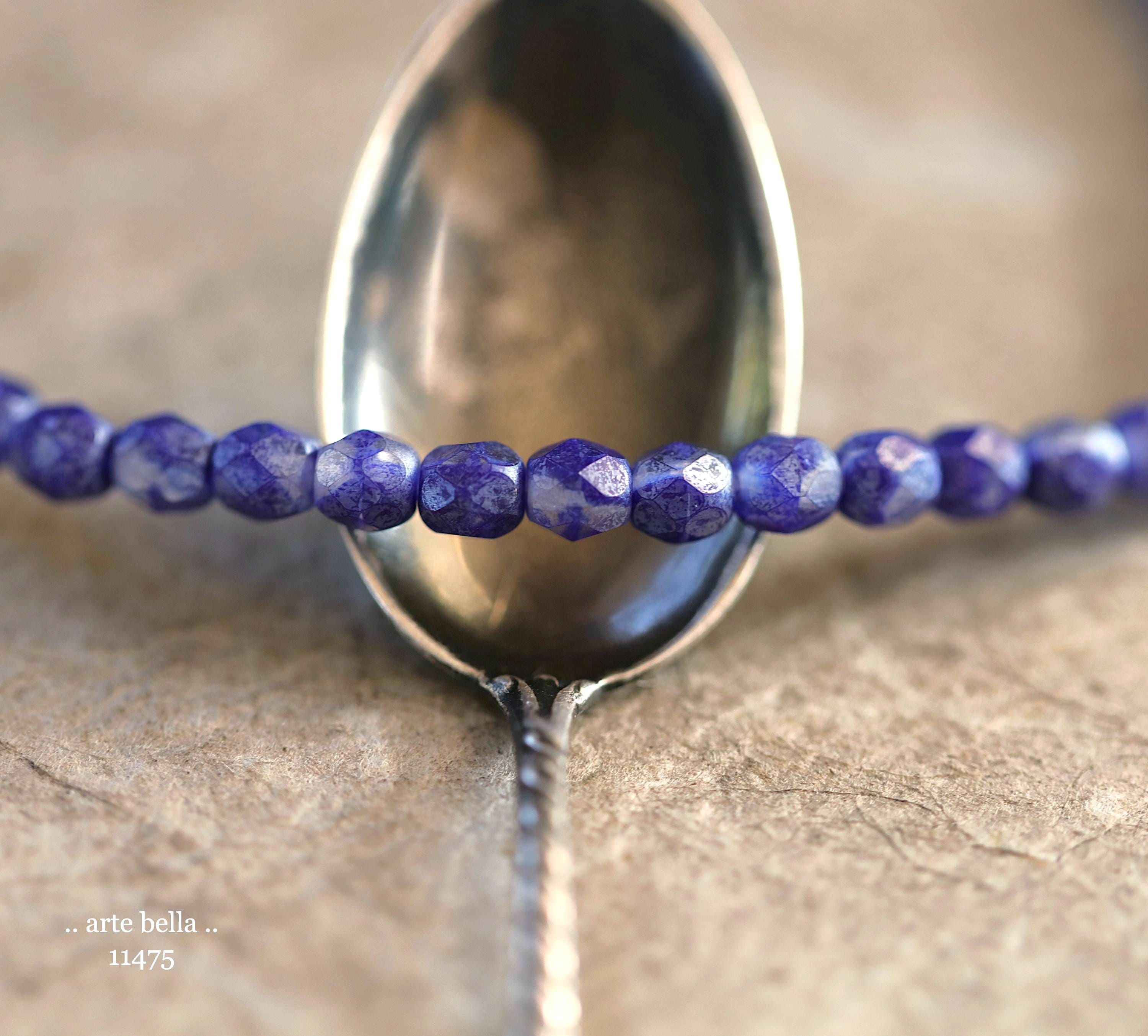 New .. SILVERED INDIGO TOTS .. 50 Premium Matte Czech Glass Faceted Round Beads 4mm (11475-st) .. jewelry supplies