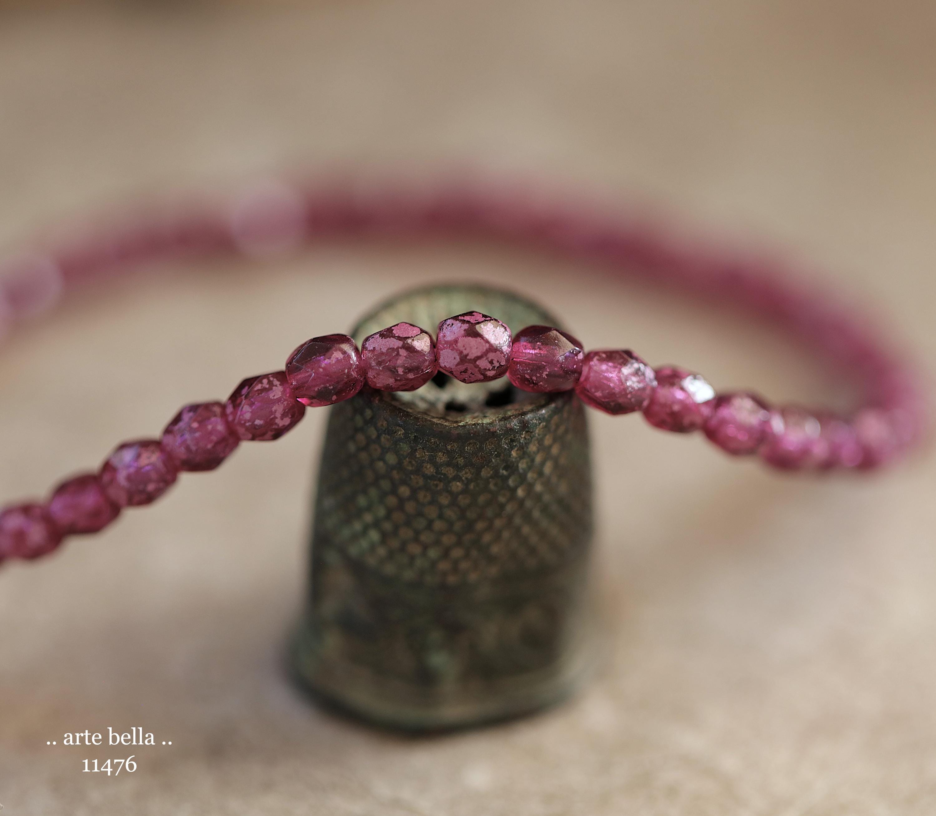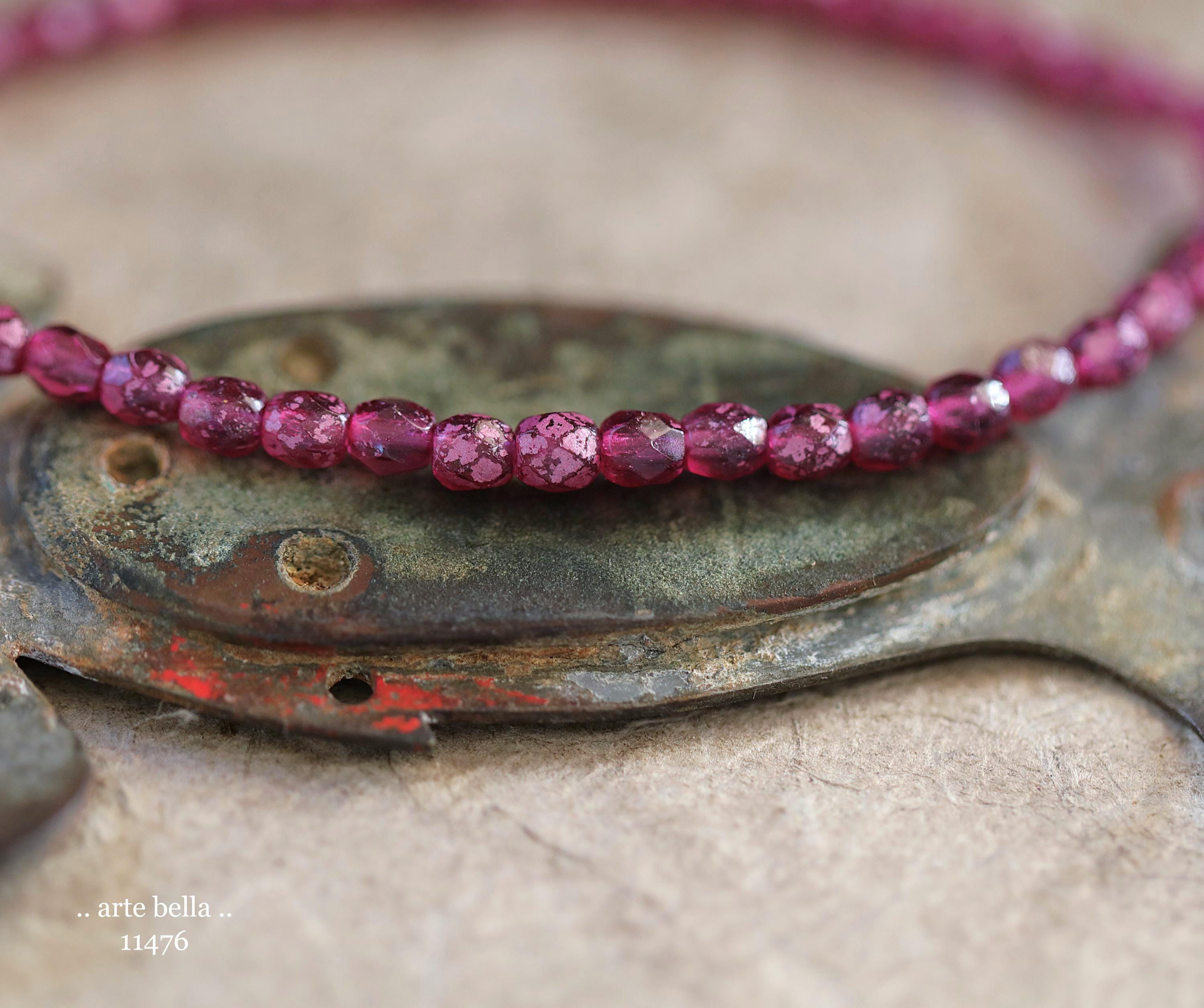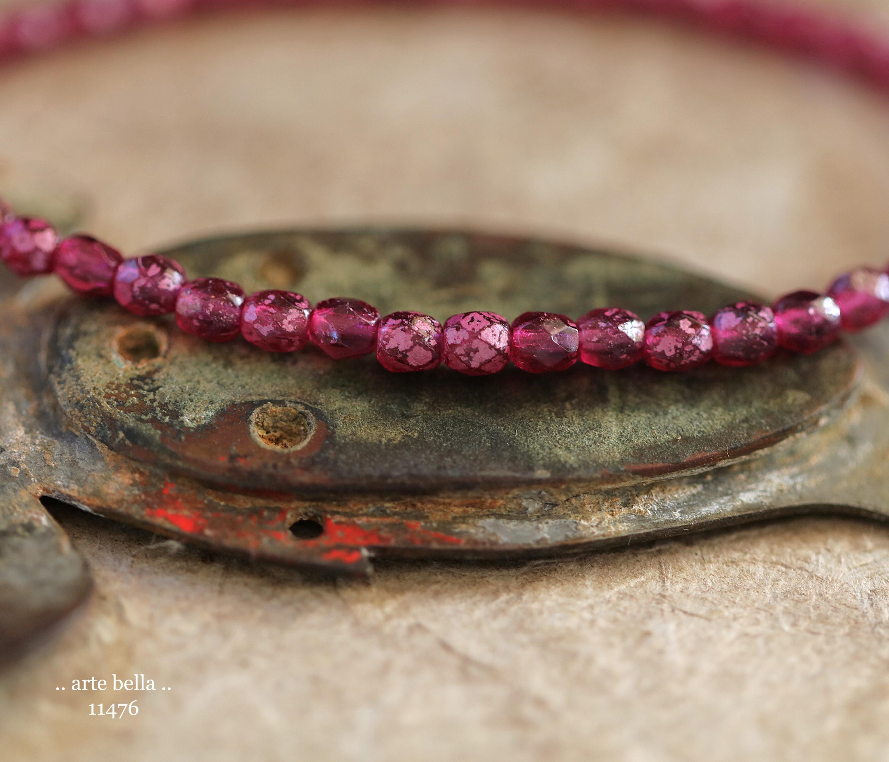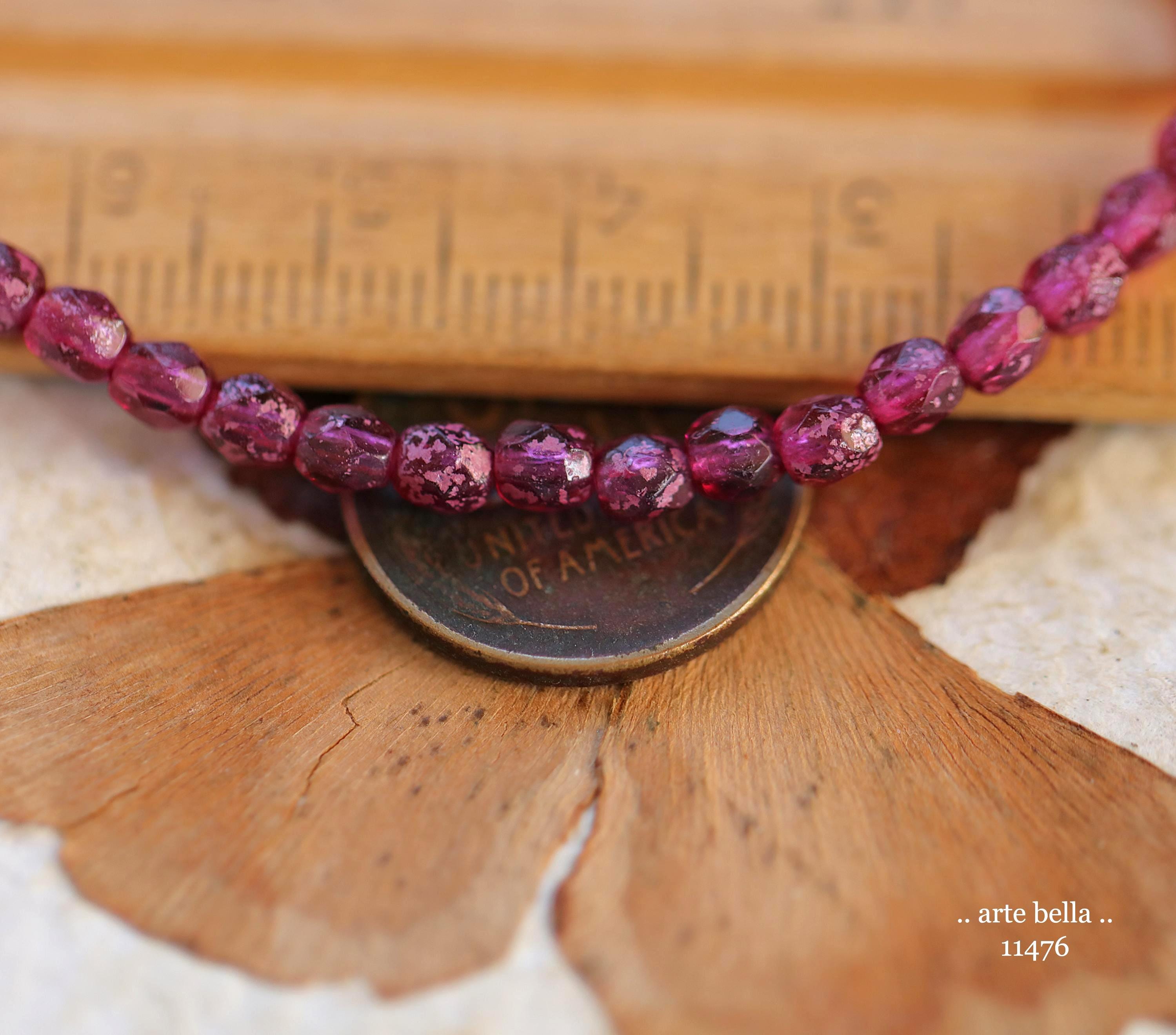 New .. BOYSENBERRY TOTS .. 50 Rustic Czech Glass Faceted Round Beads 4mm (11476-st) .. jewelry supplies