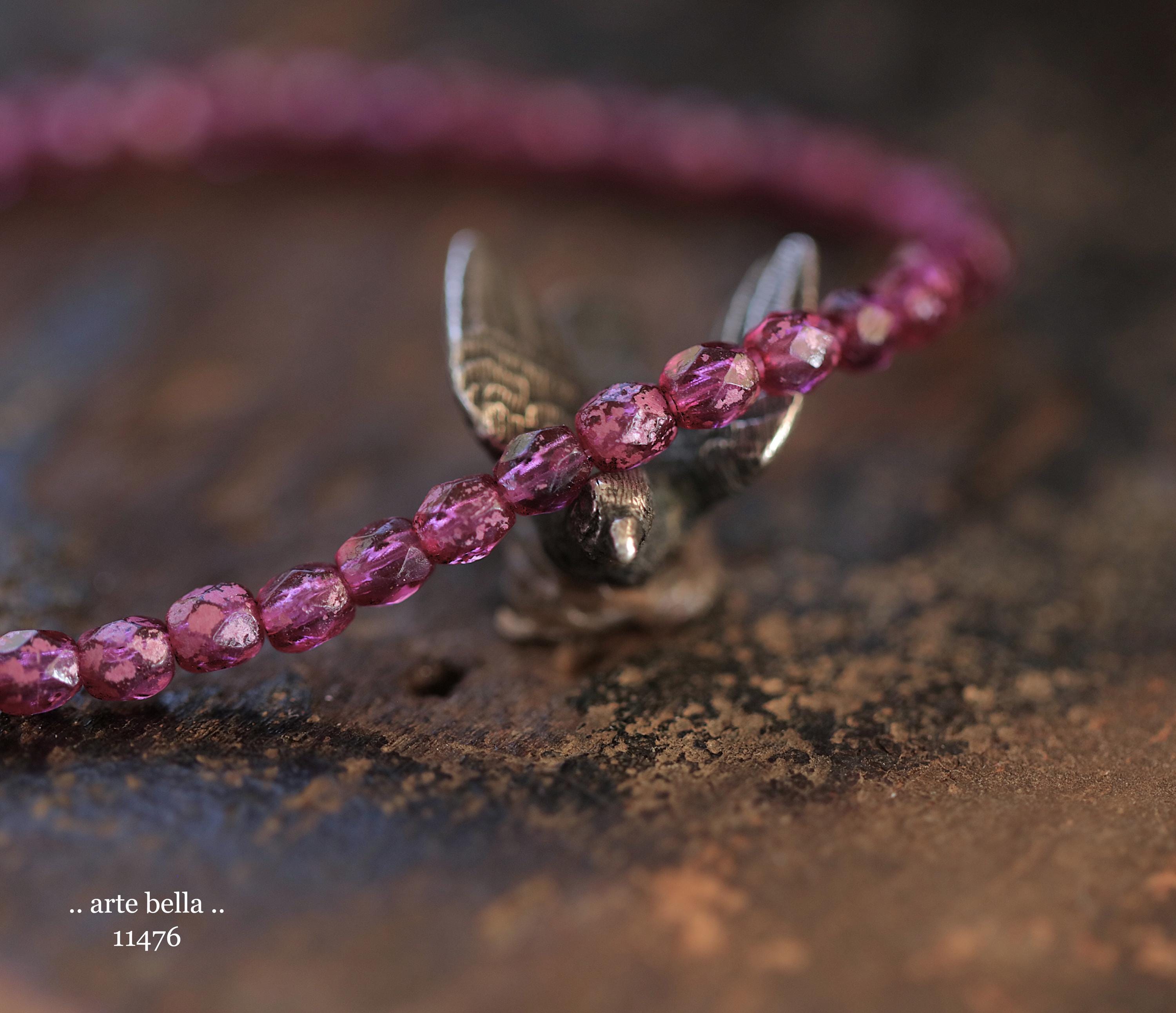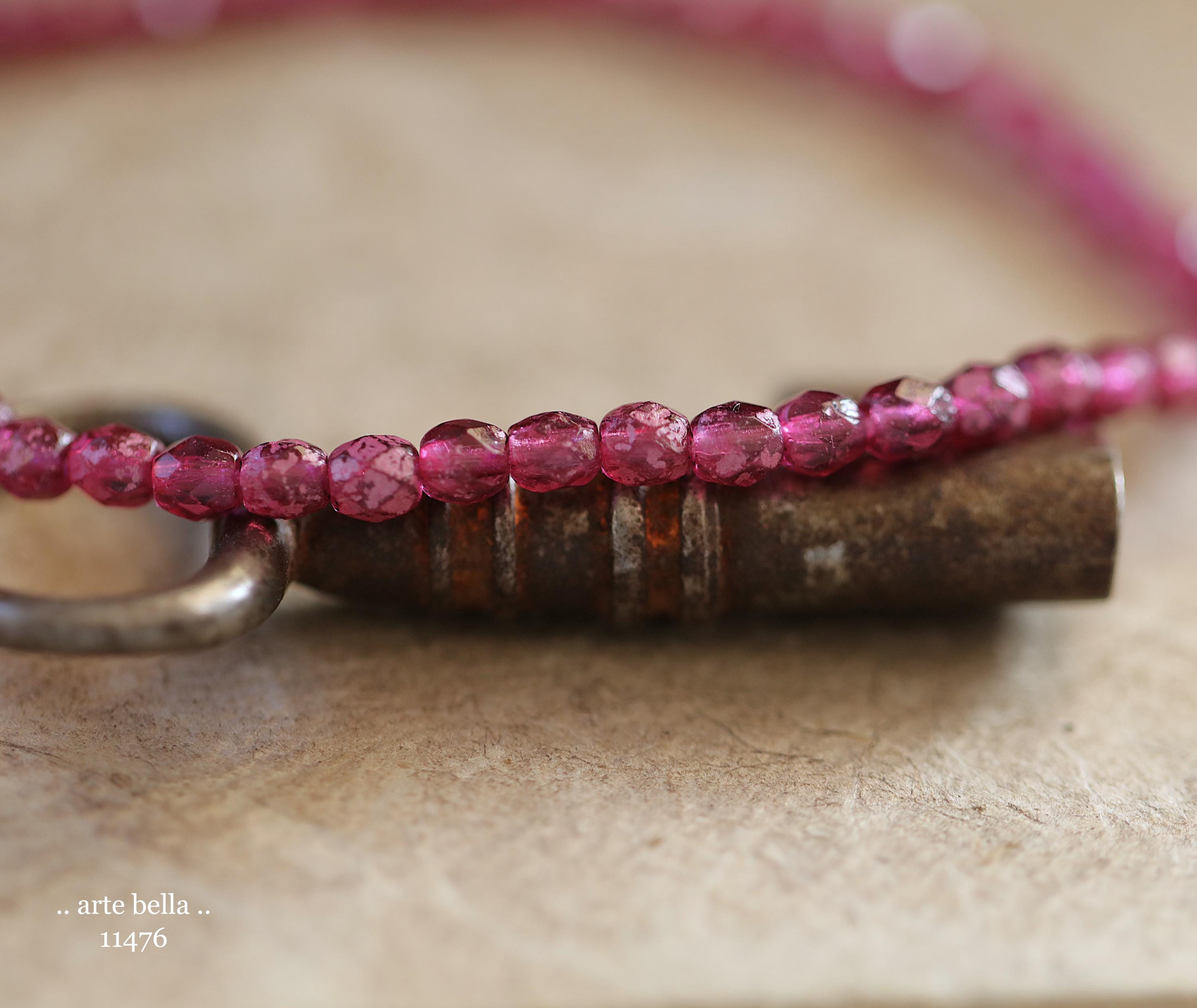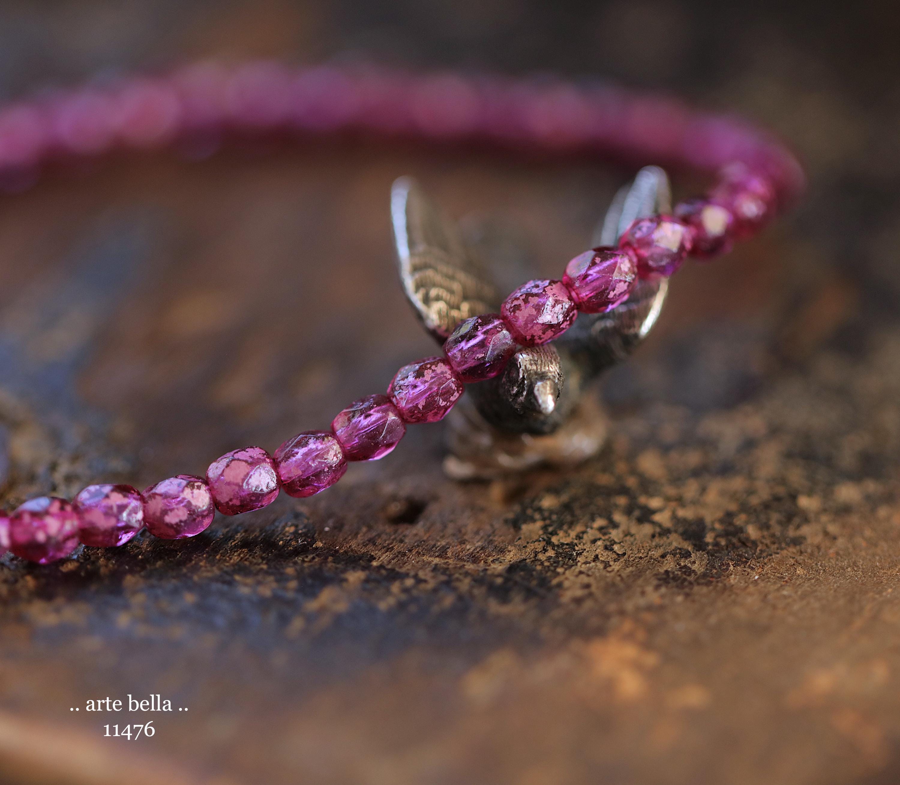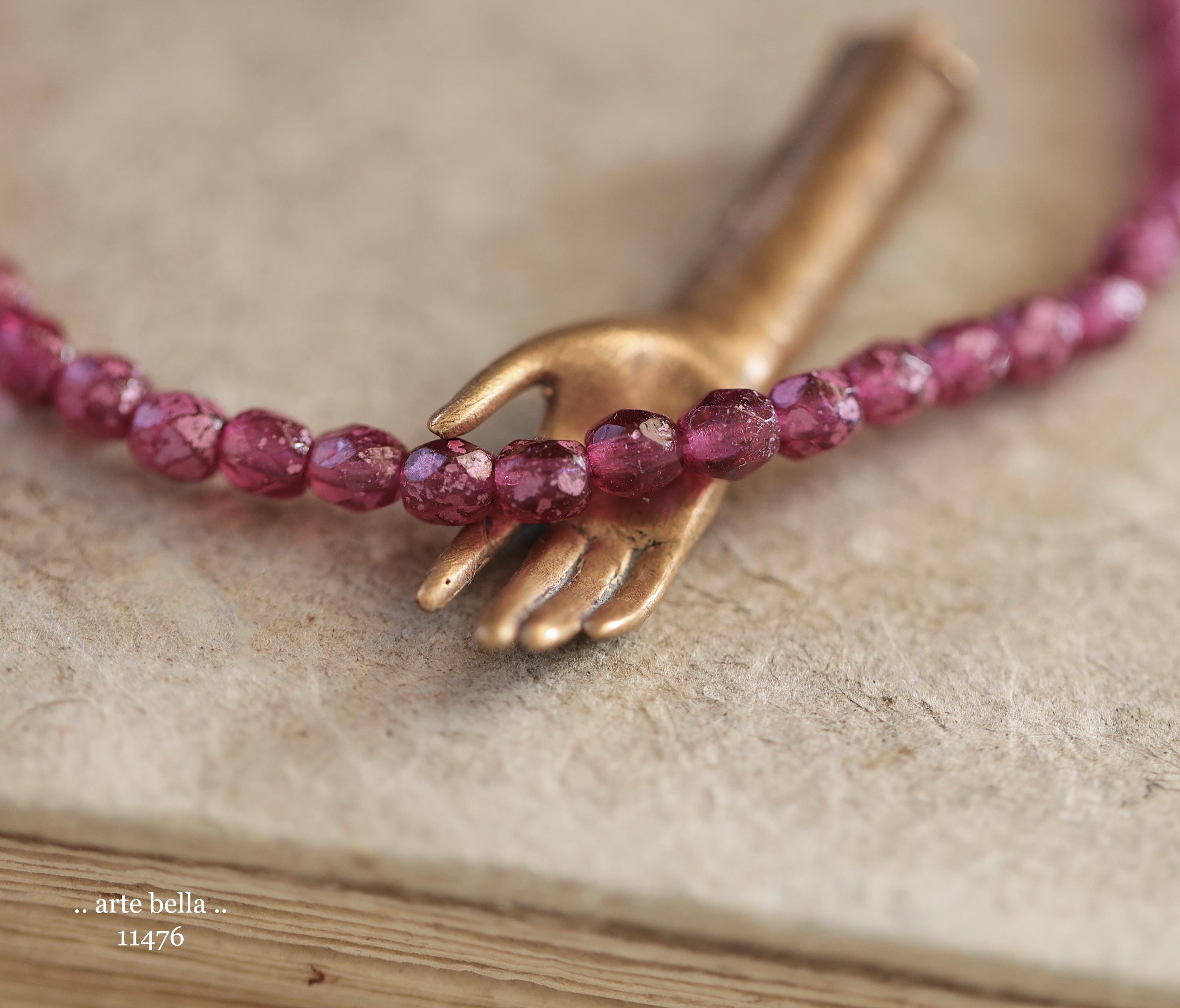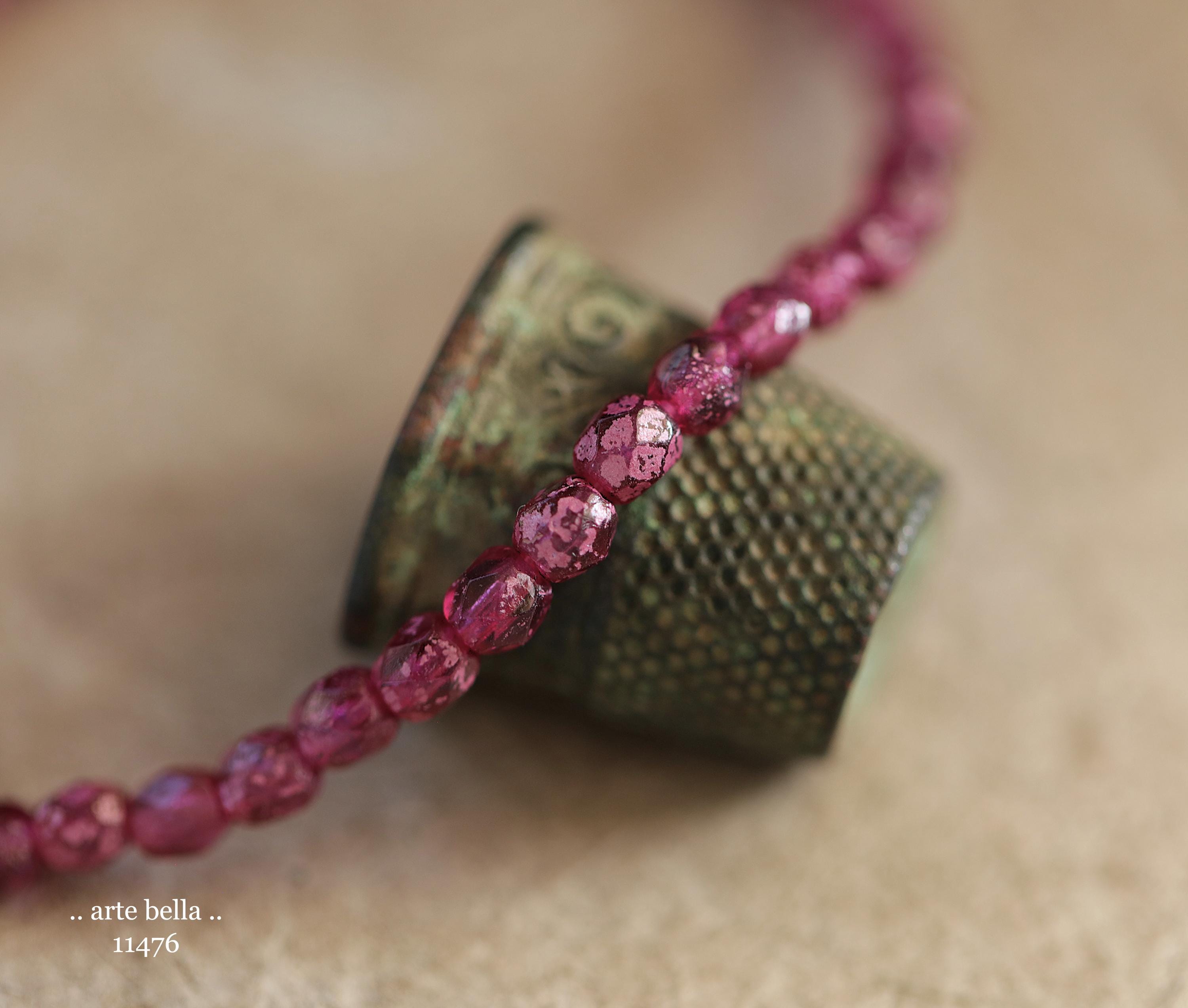 New .. BOYSENBERRY TOTS .. 50 Rustic Czech Glass Faceted Round Beads 4mm (11476-st) .. jewelry supplies