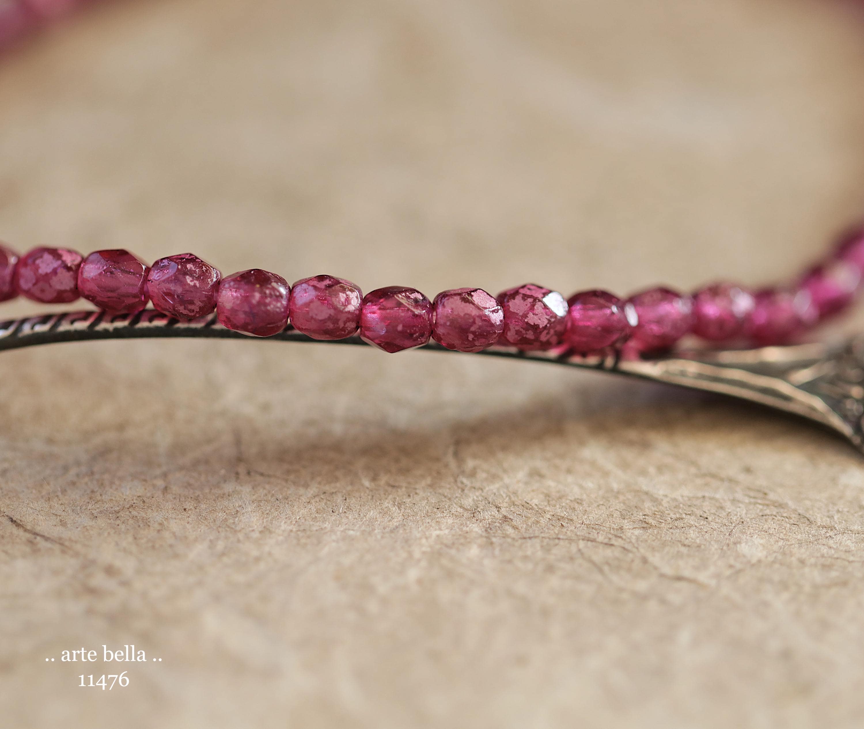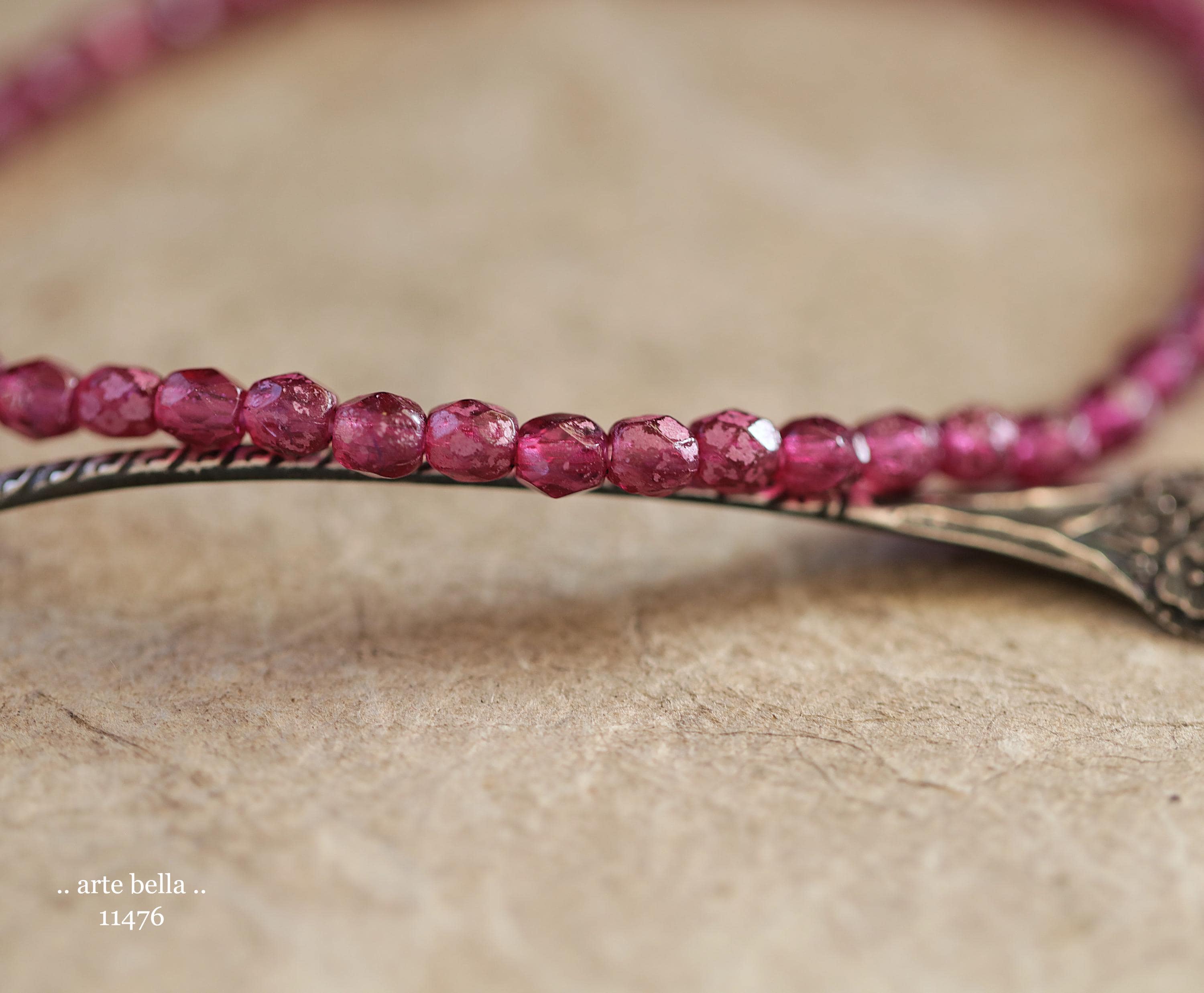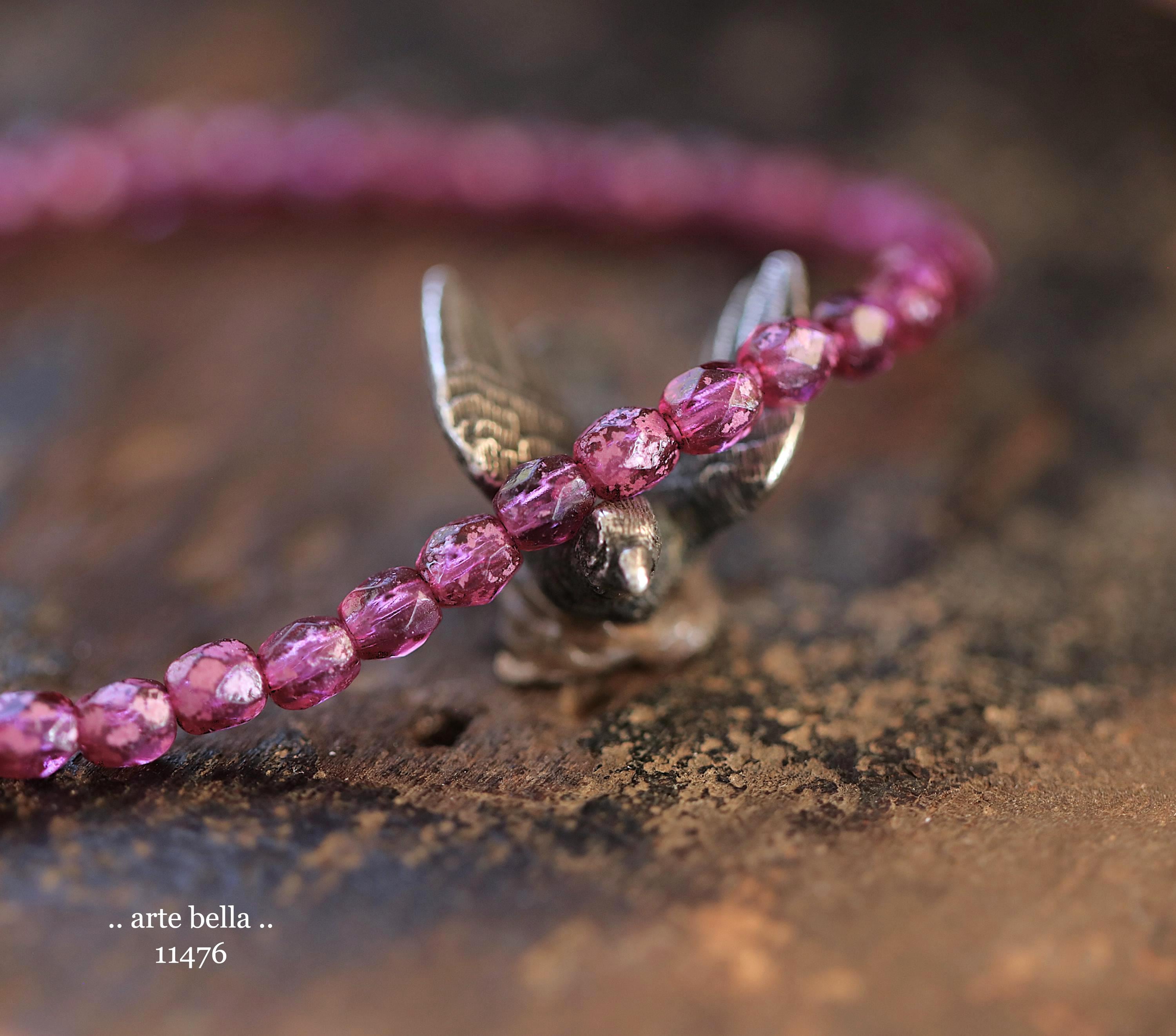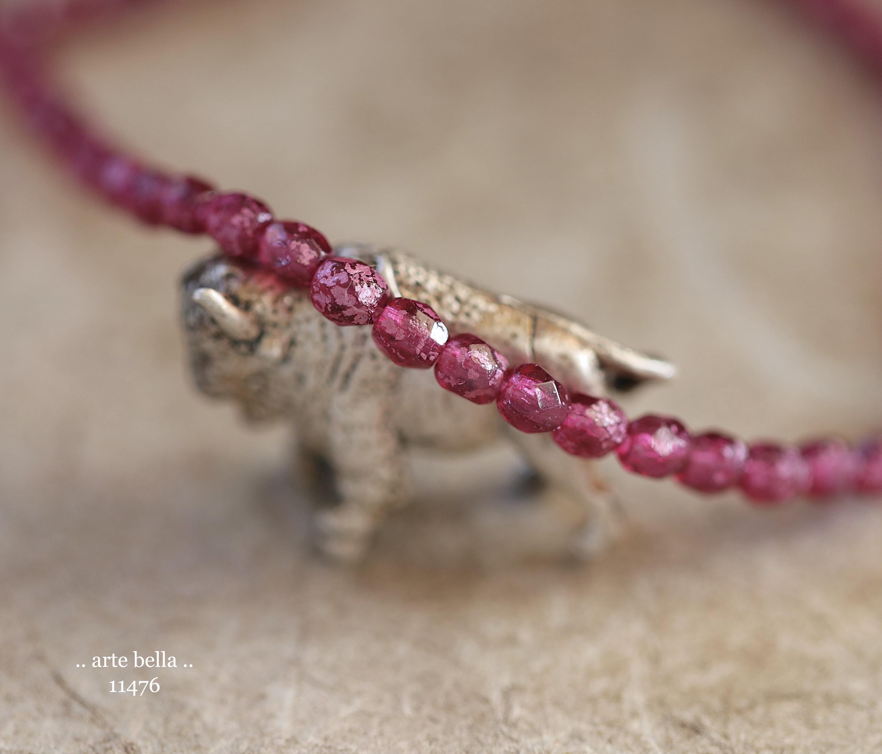New .. BOYSENBERRY TOTS .. 50 Rustic Czech Glass Faceted Round Beads 4mm (11476-st) .. jewelry supplies
