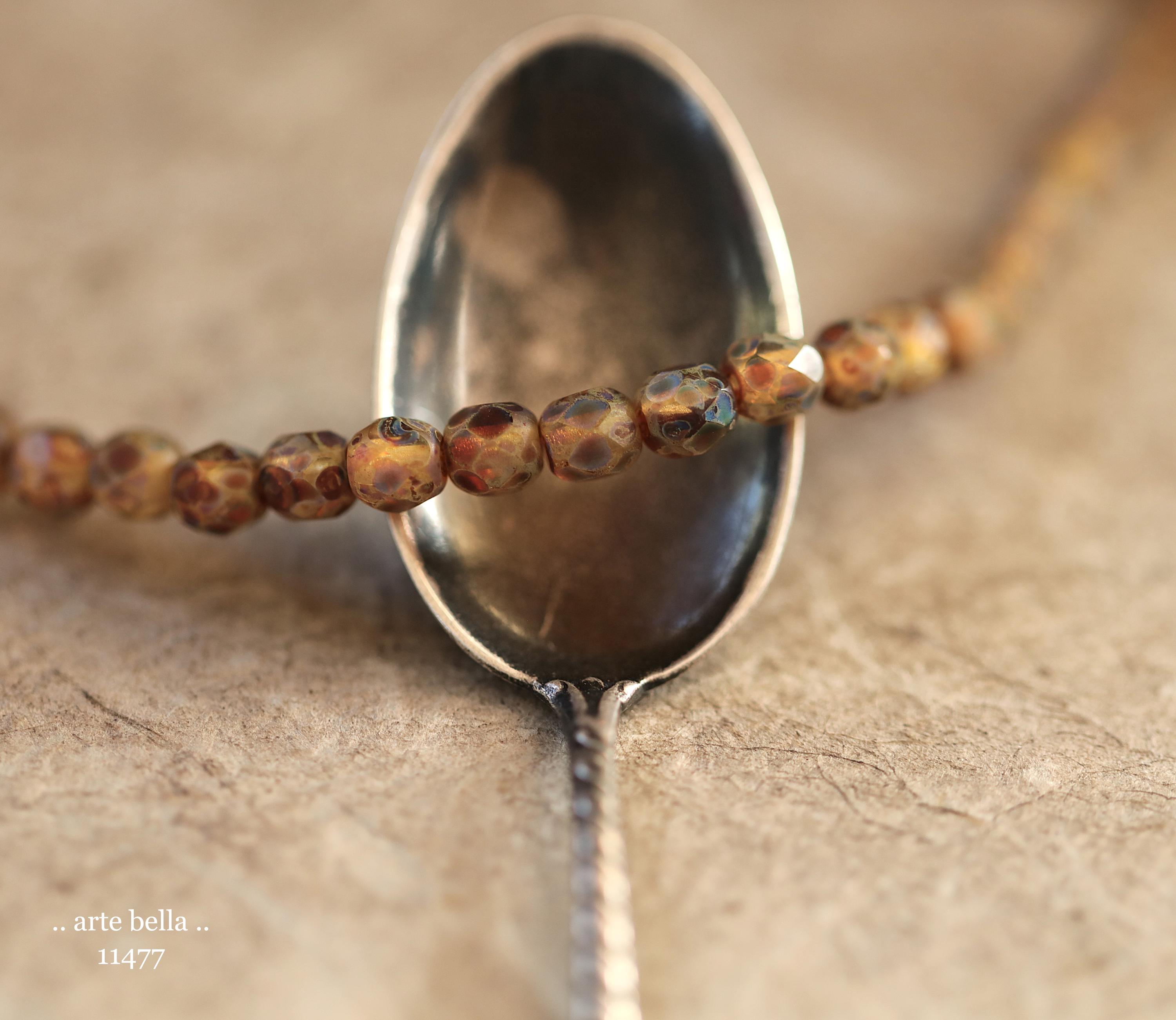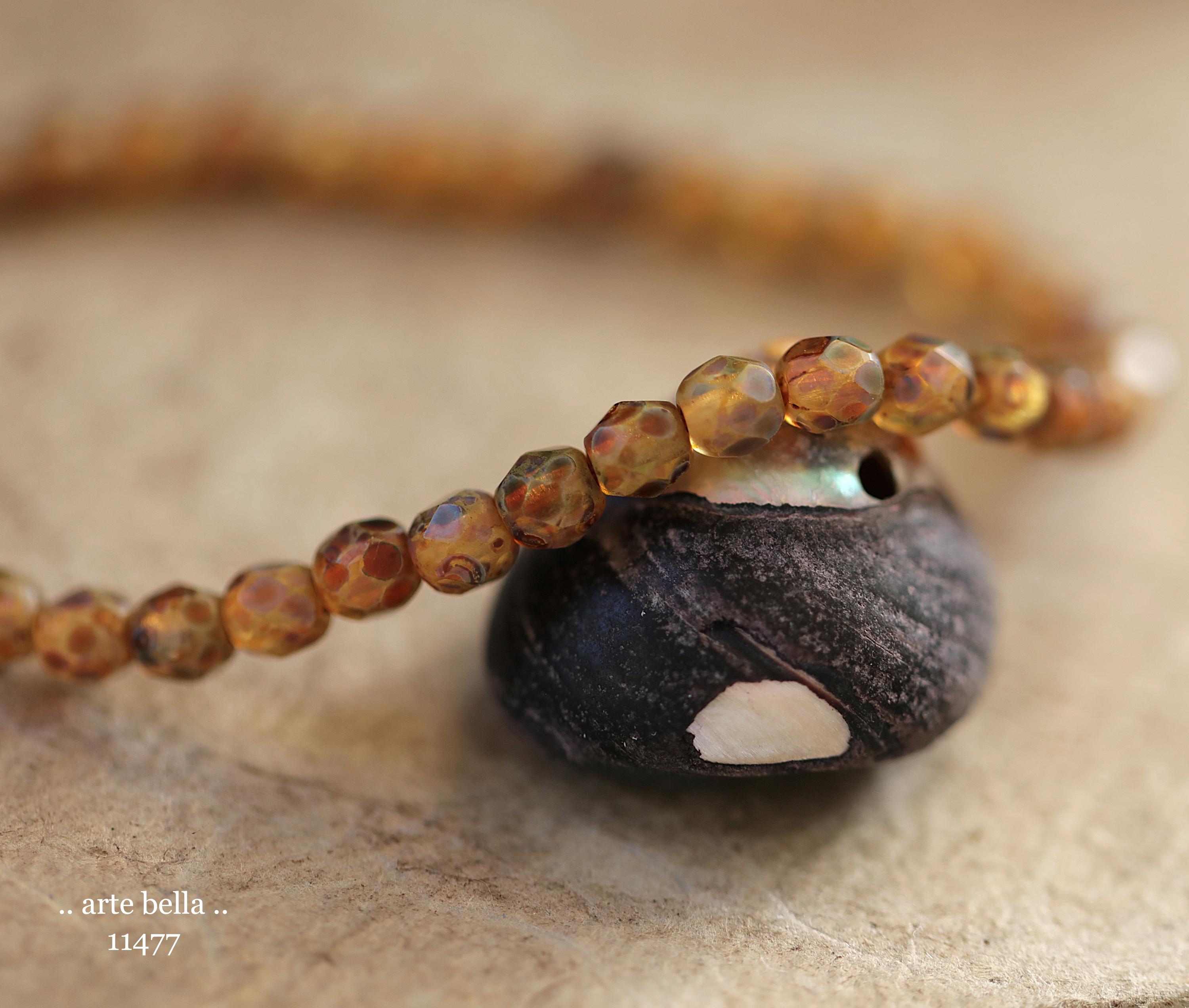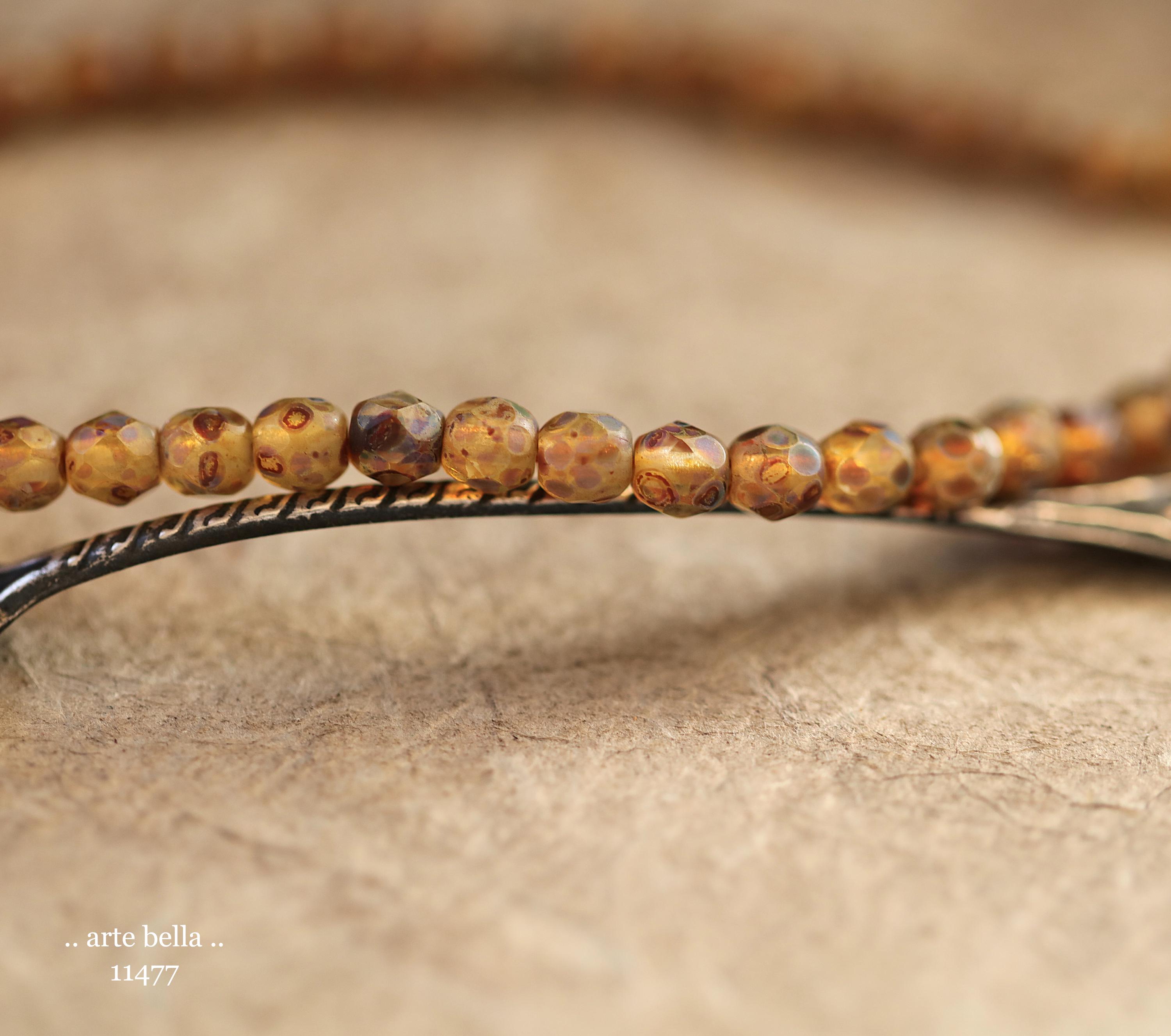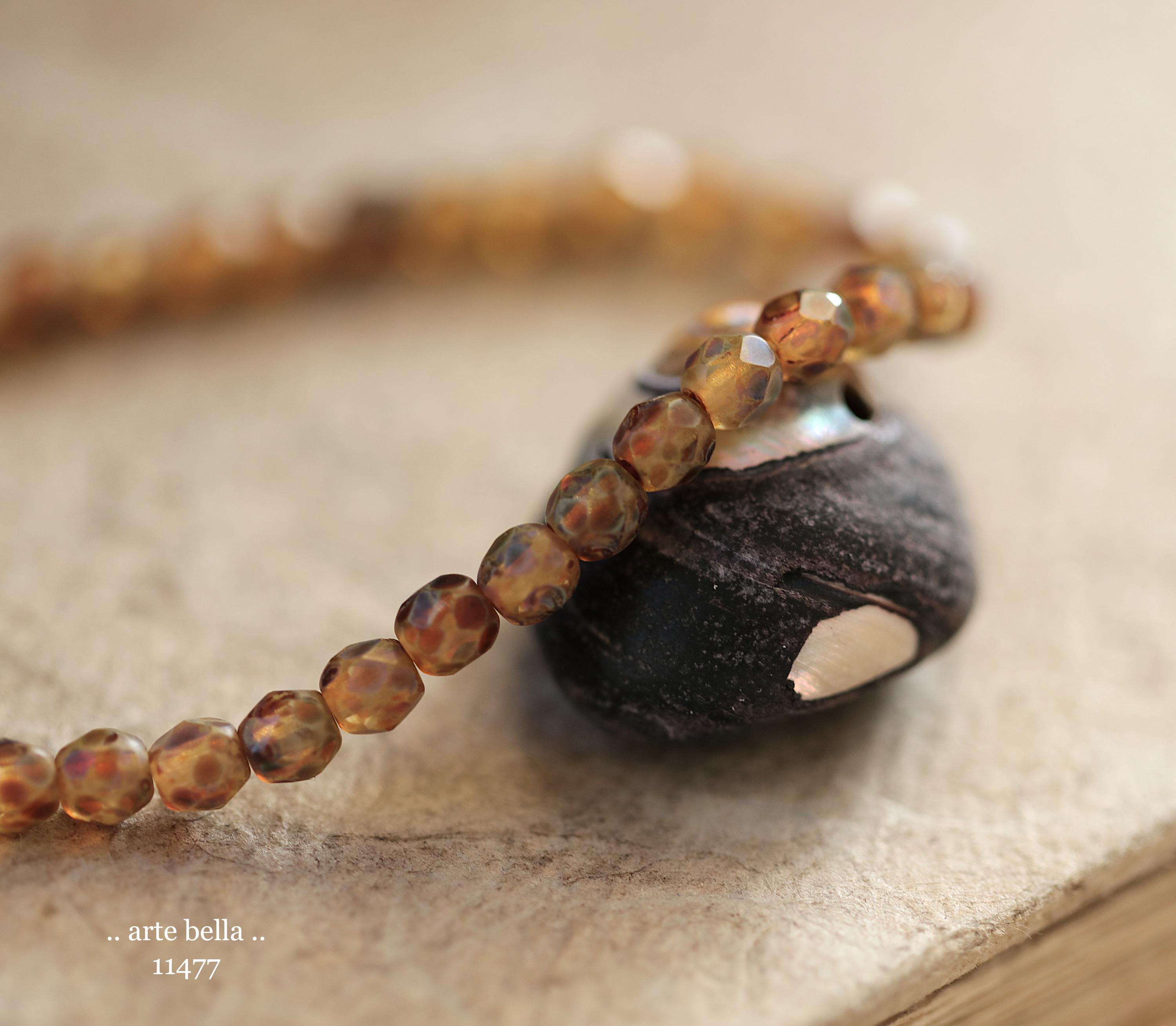New .. EARTHY AMBER TOTS .. 50 Matte Picasso Czech Glass Faceted Round Beads 4mm (11477-st) .. jewelry supplies