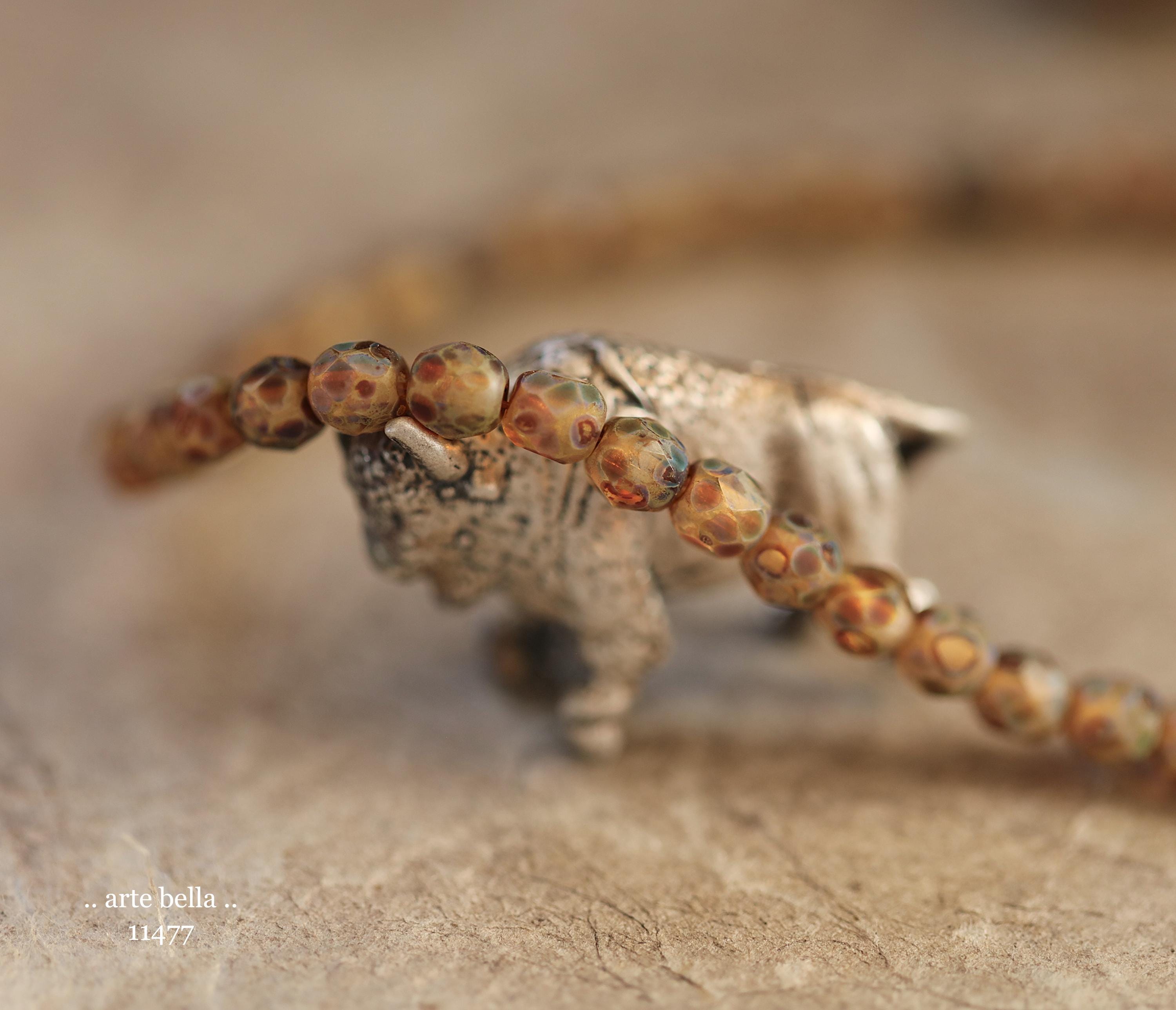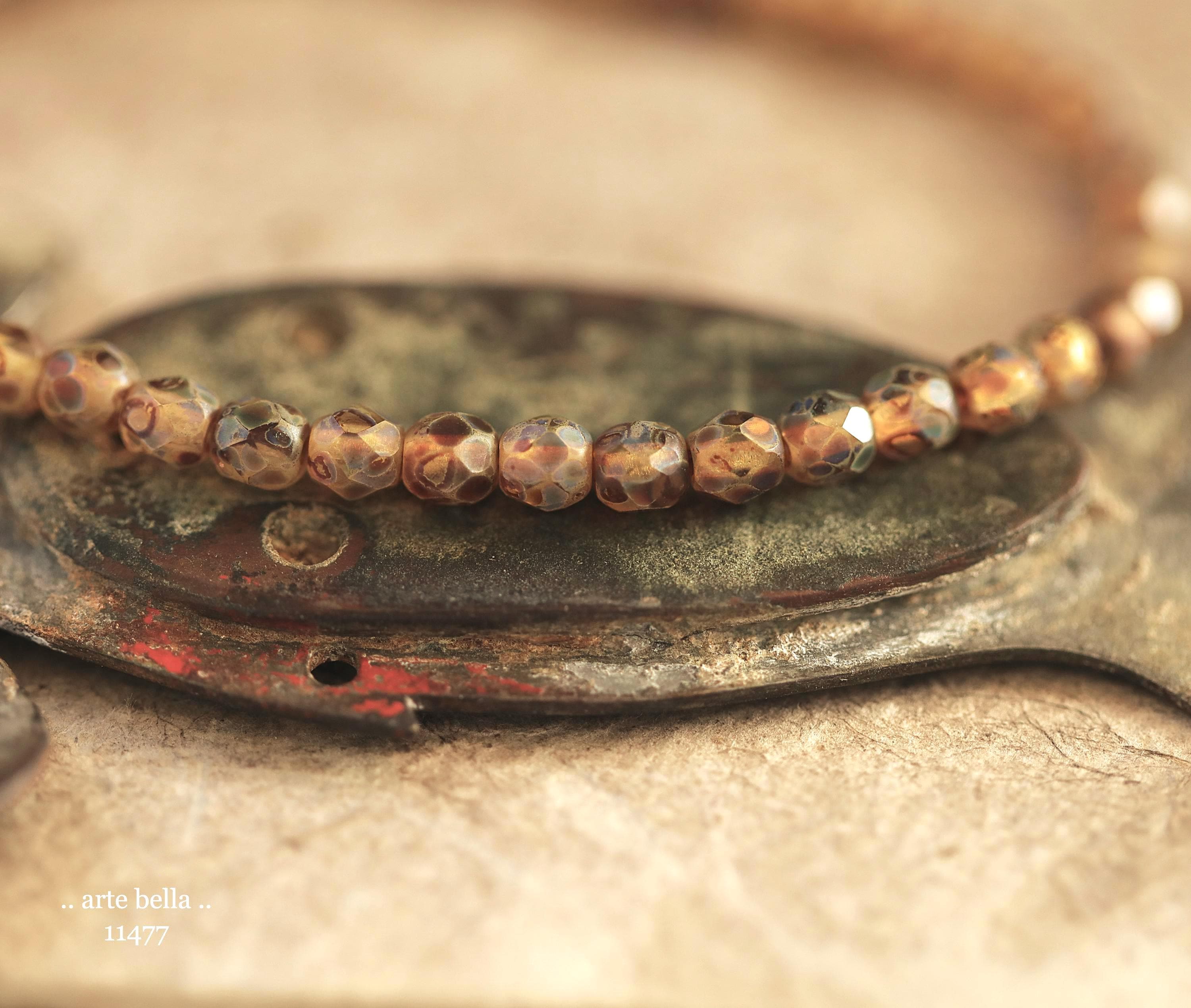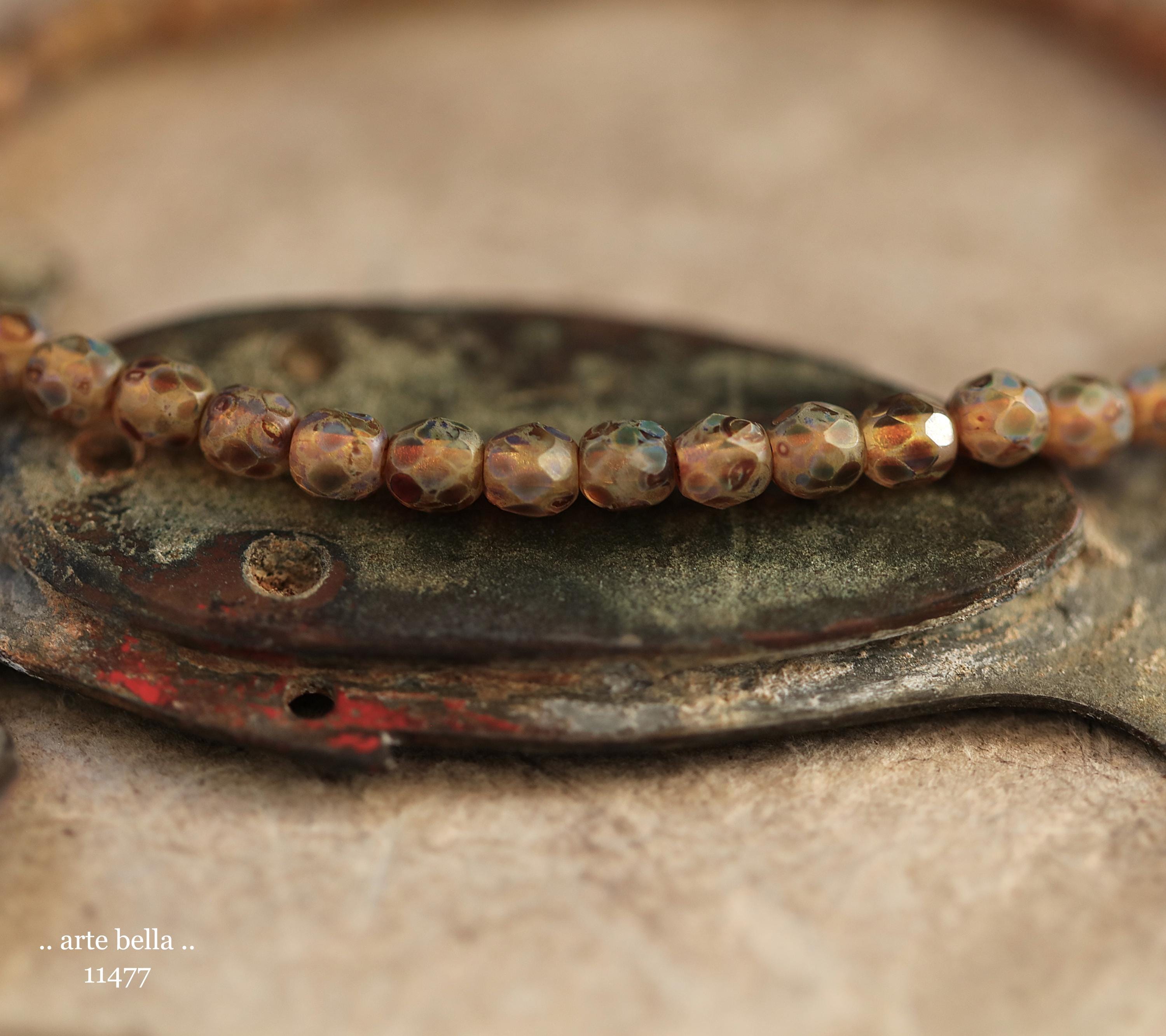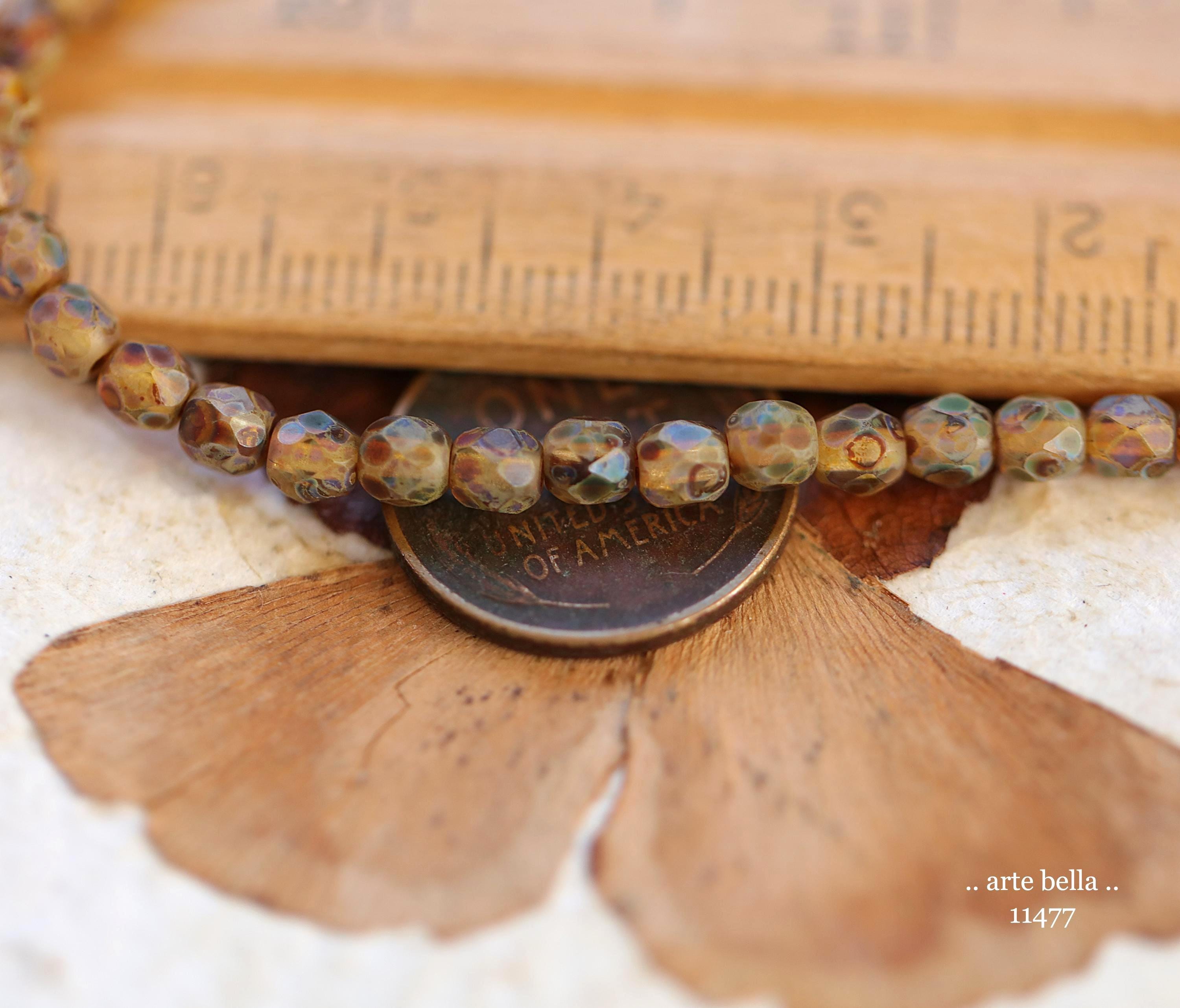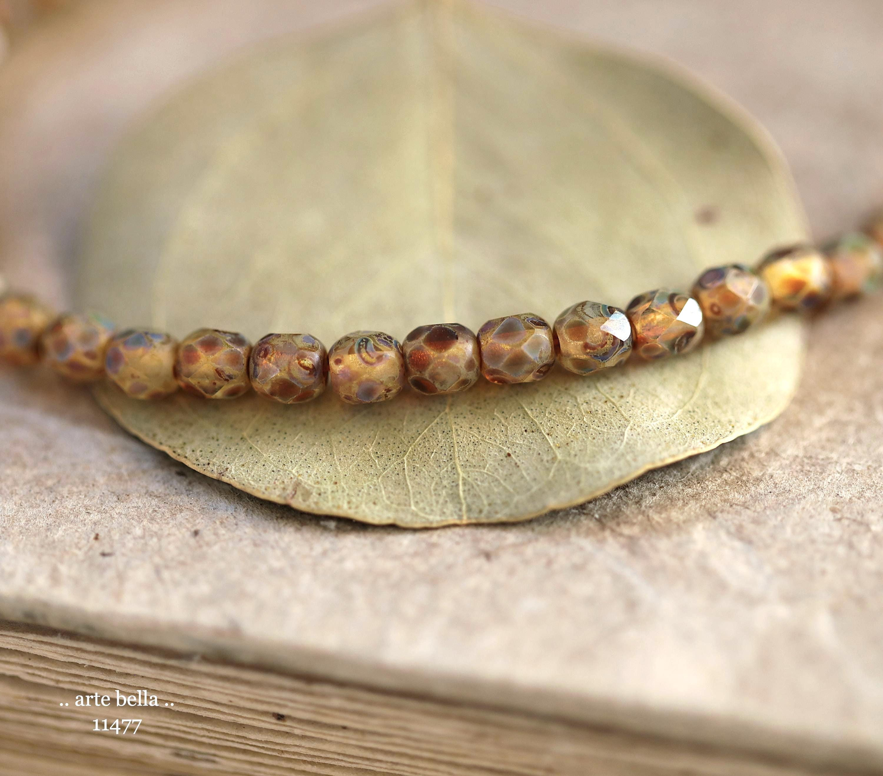 New .. EARTHY AMBER TOTS .. 50 Matte Picasso Czech Glass Faceted Round Beads 4mm (11477-st) .. jewelry supplies