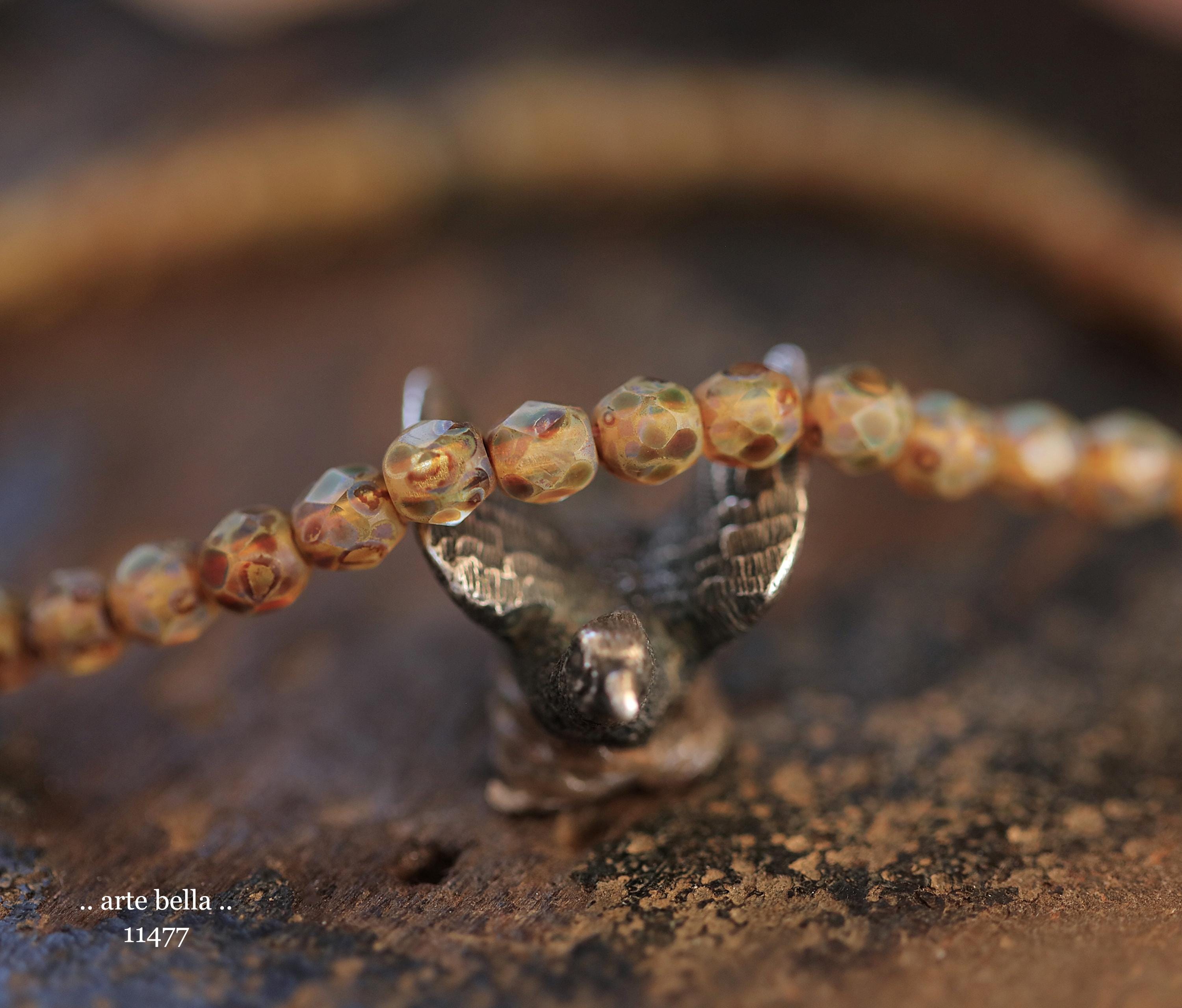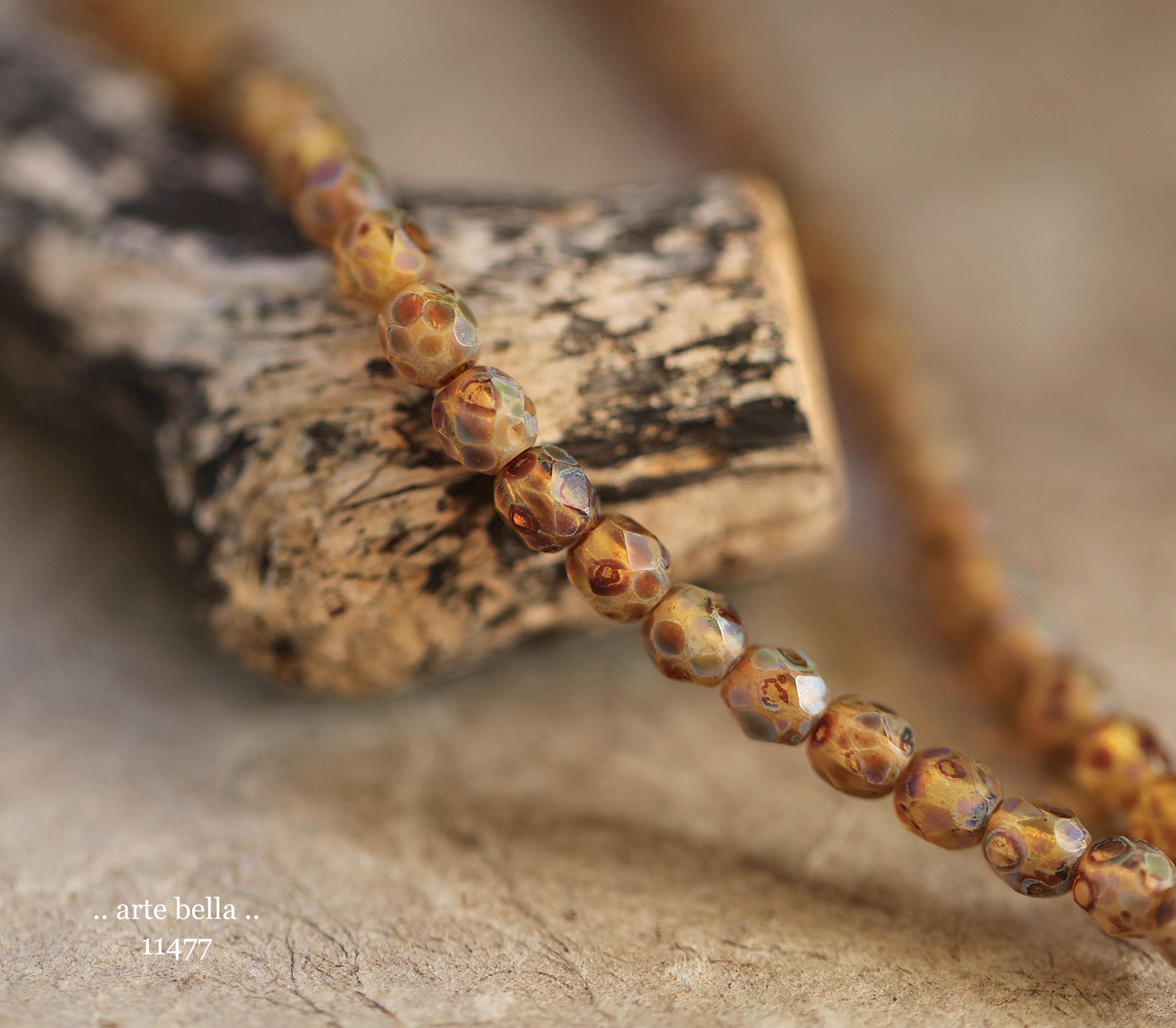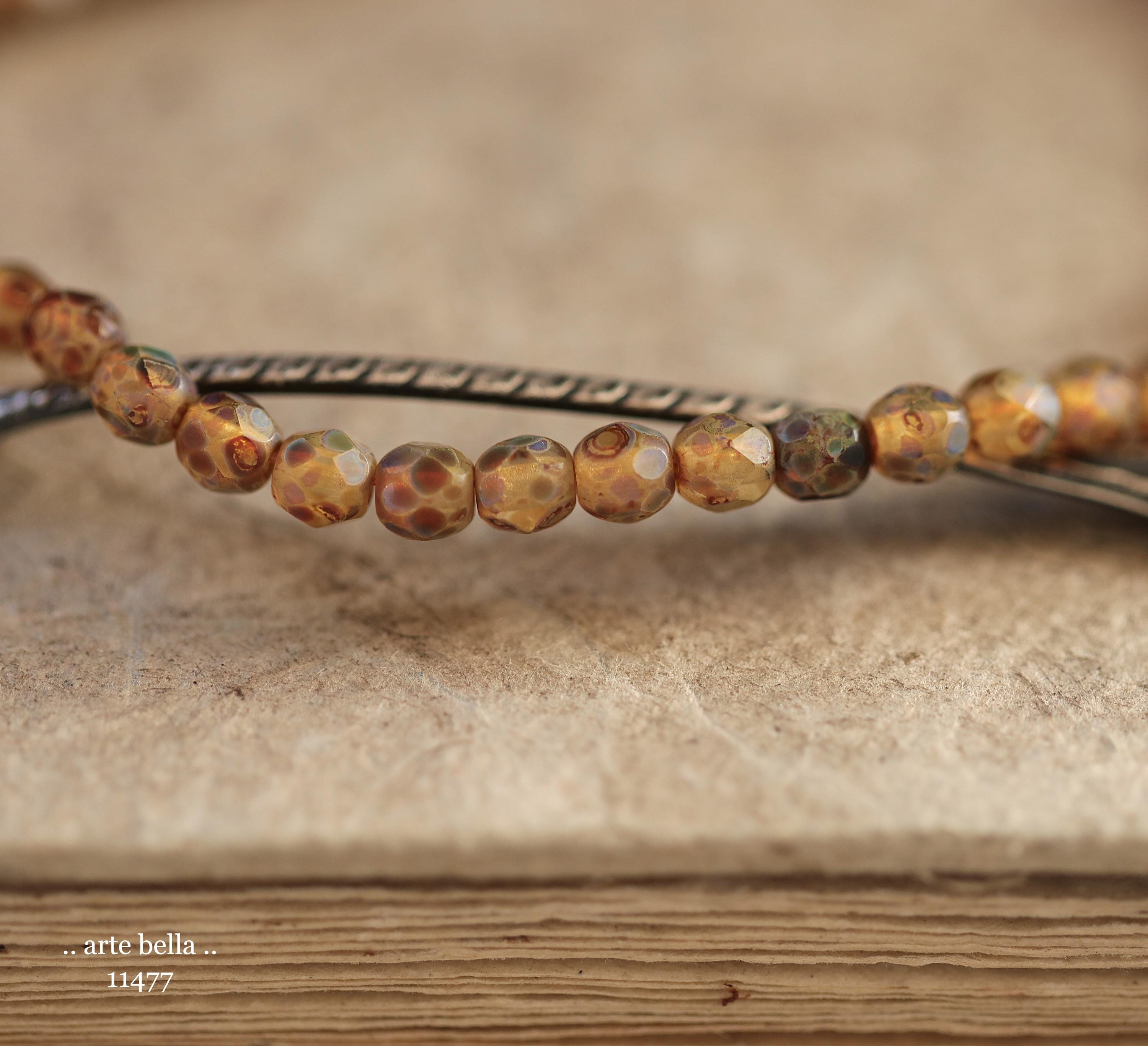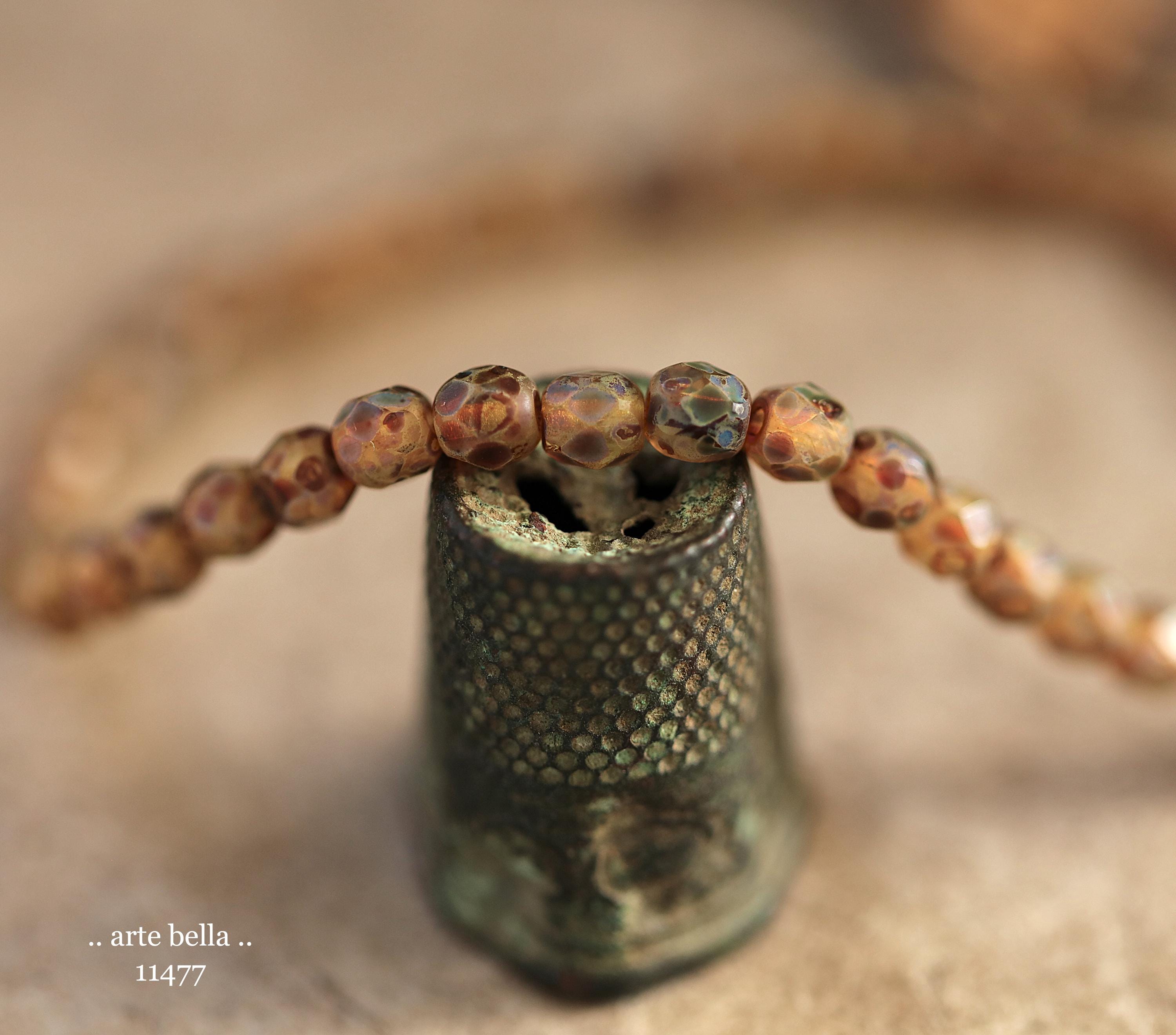 New .. EARTHY AMBER TOTS .. 50 Matte Picasso Czech Glass Faceted Round Beads 4mm (11477-st) .. jewelry supplies