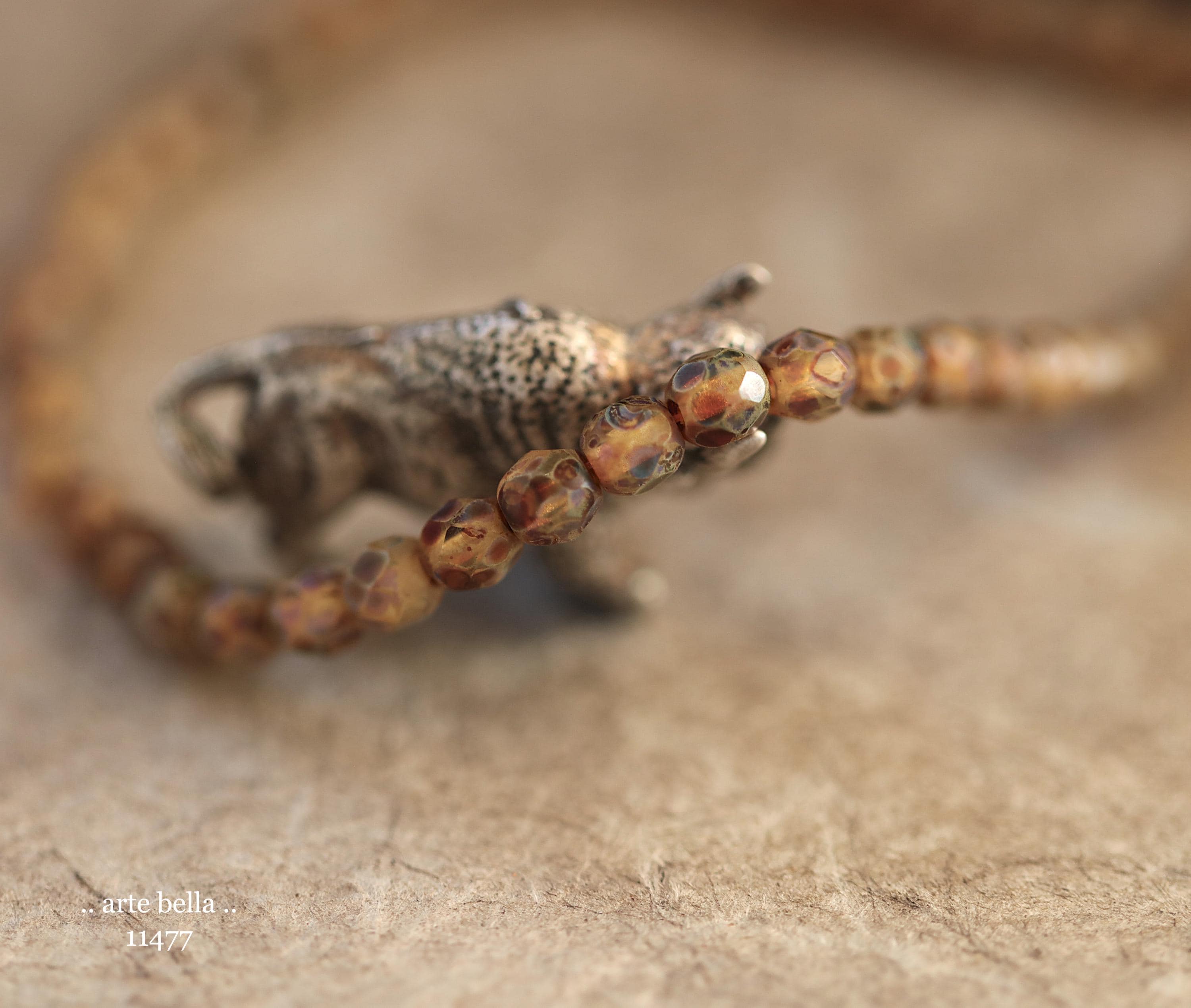 Petite faceted rounds in golden amber glass with an earthy matte Picasso finish.