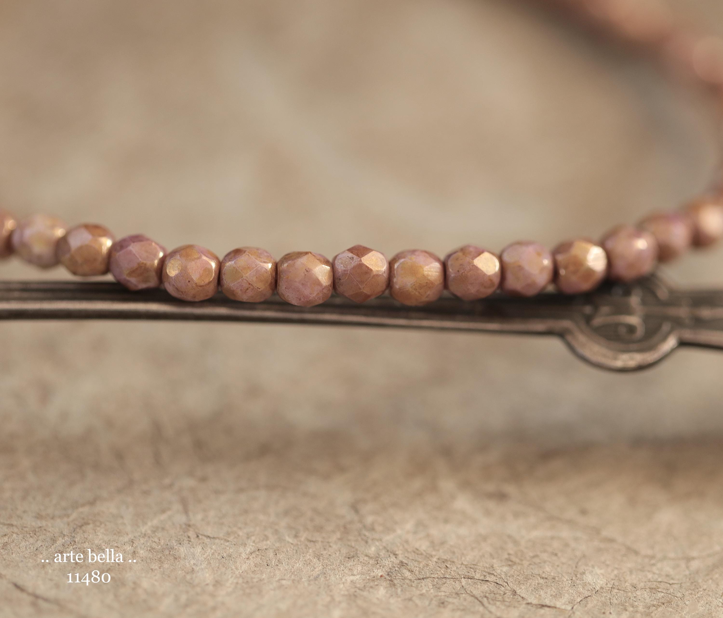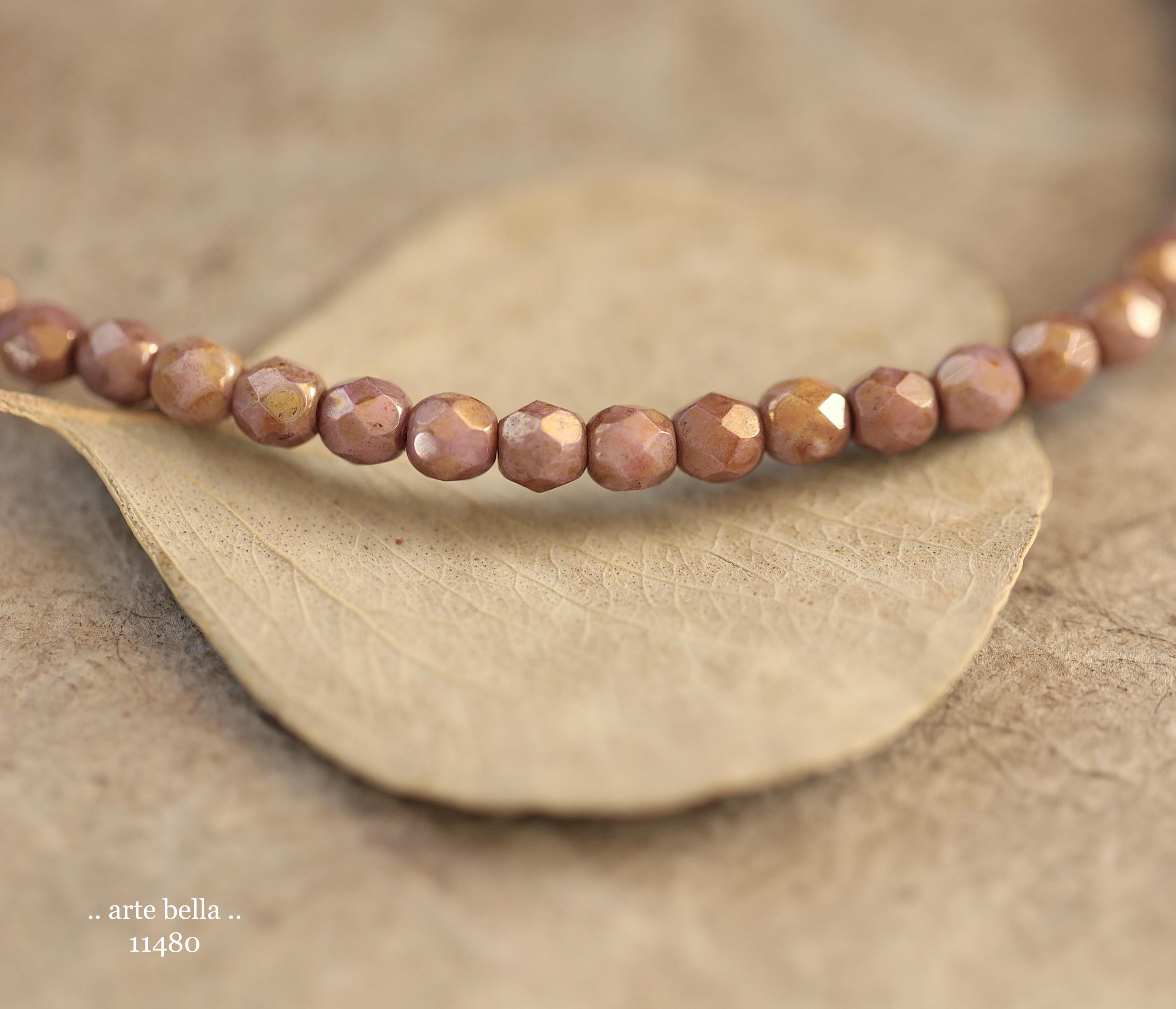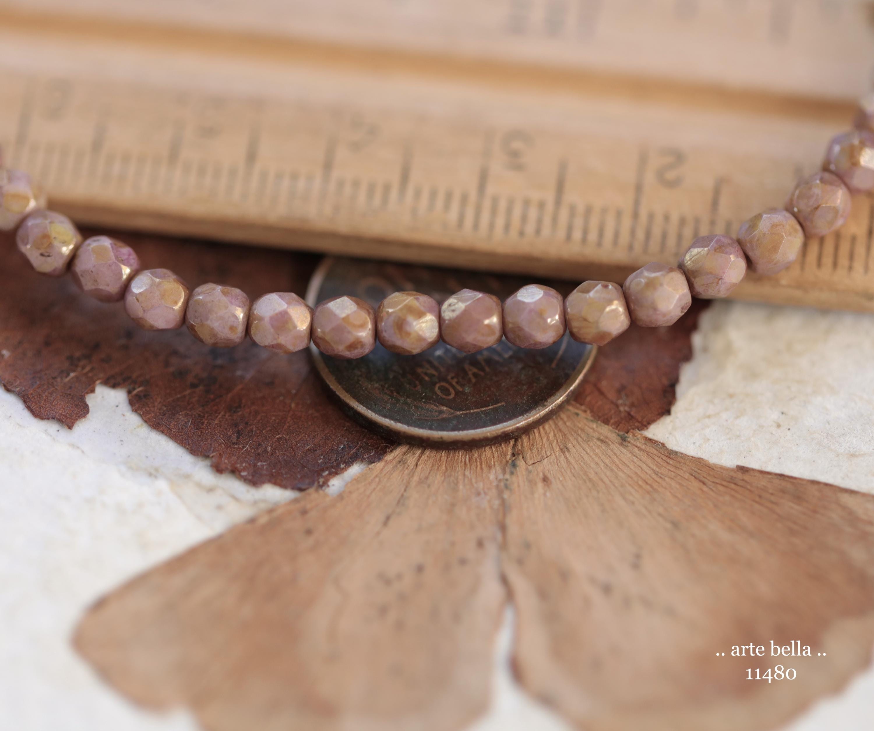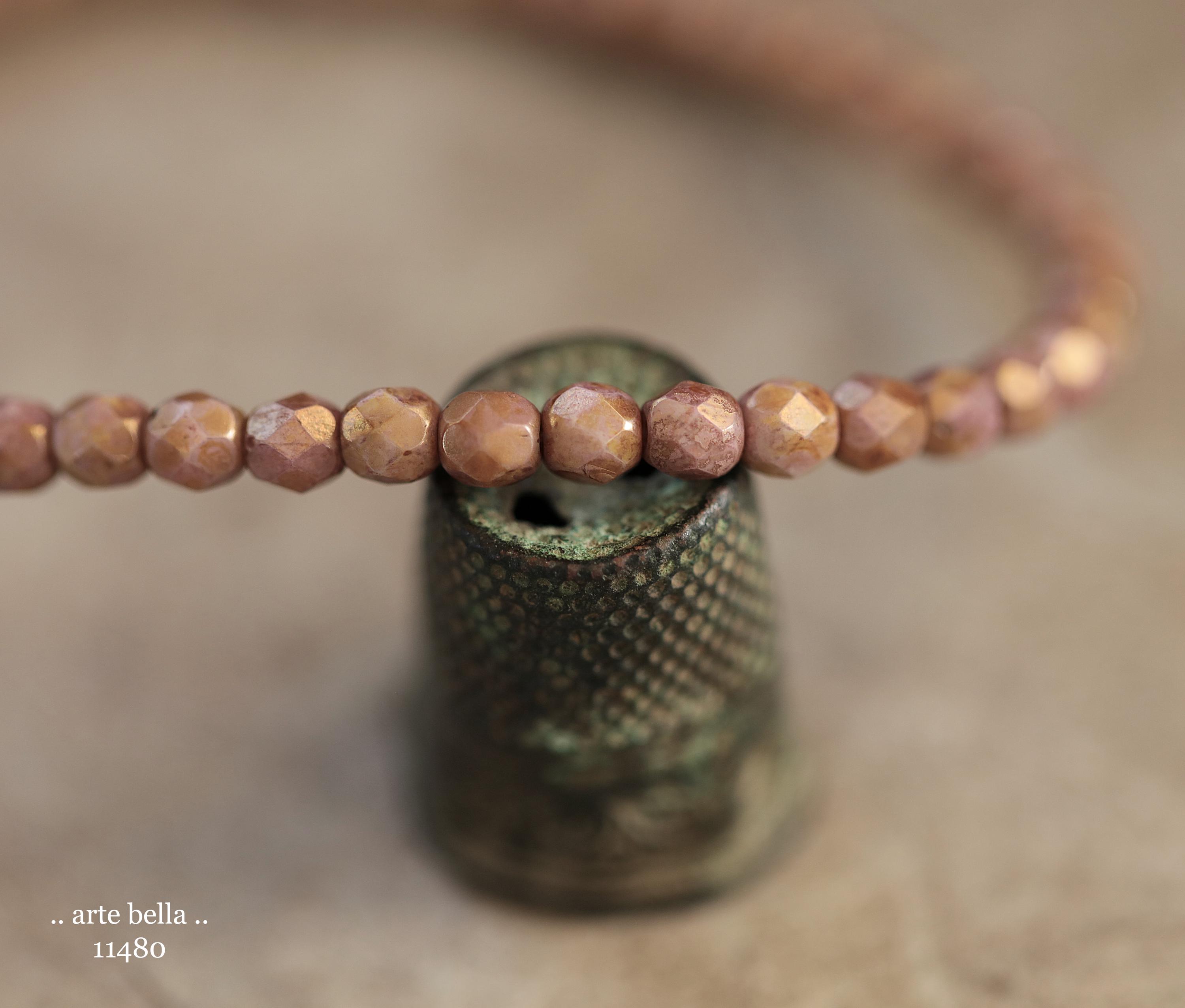 New .. GOLDEN ROSE TOTS .. 50 Luster Picasso Czech Glass Faceted Round Beads 4mm (11480-st) .. jewelry supplies