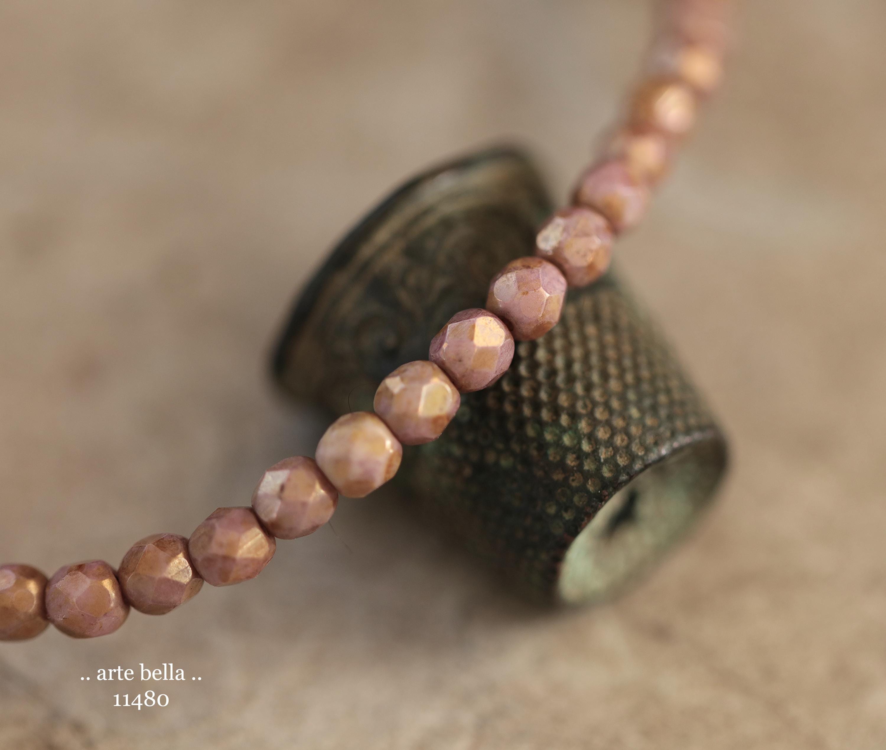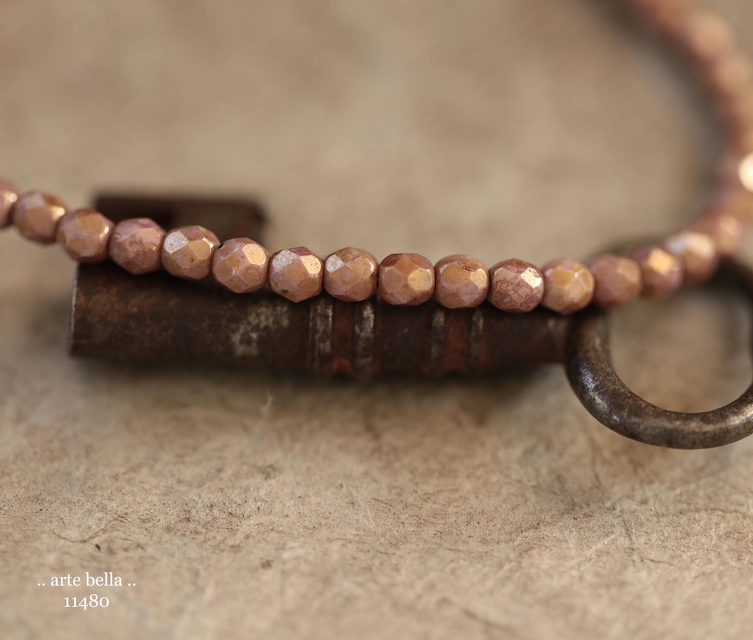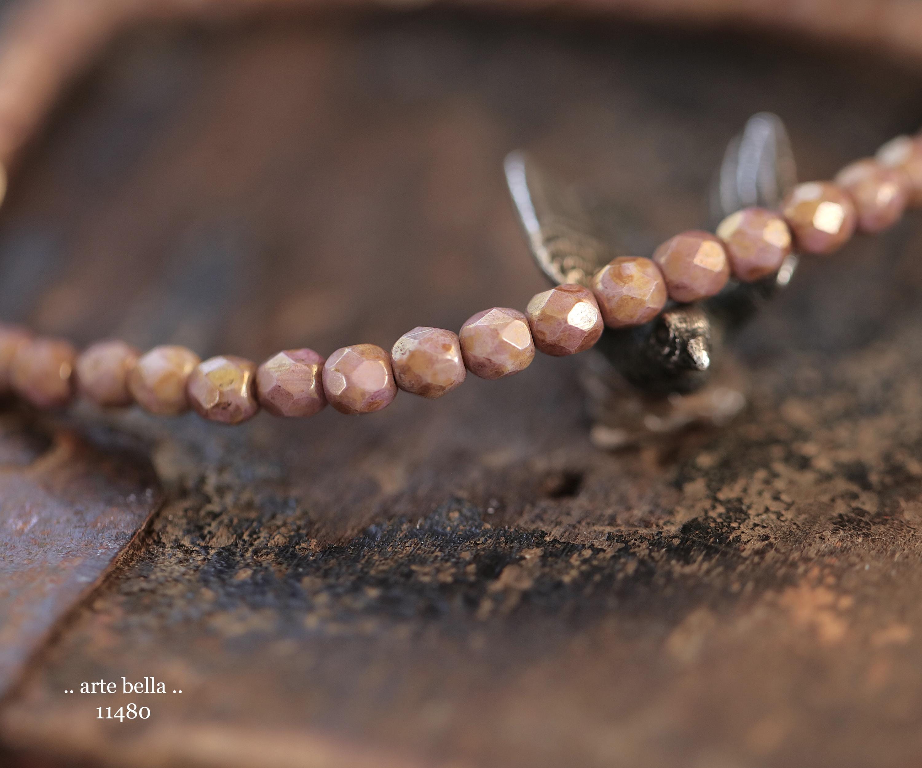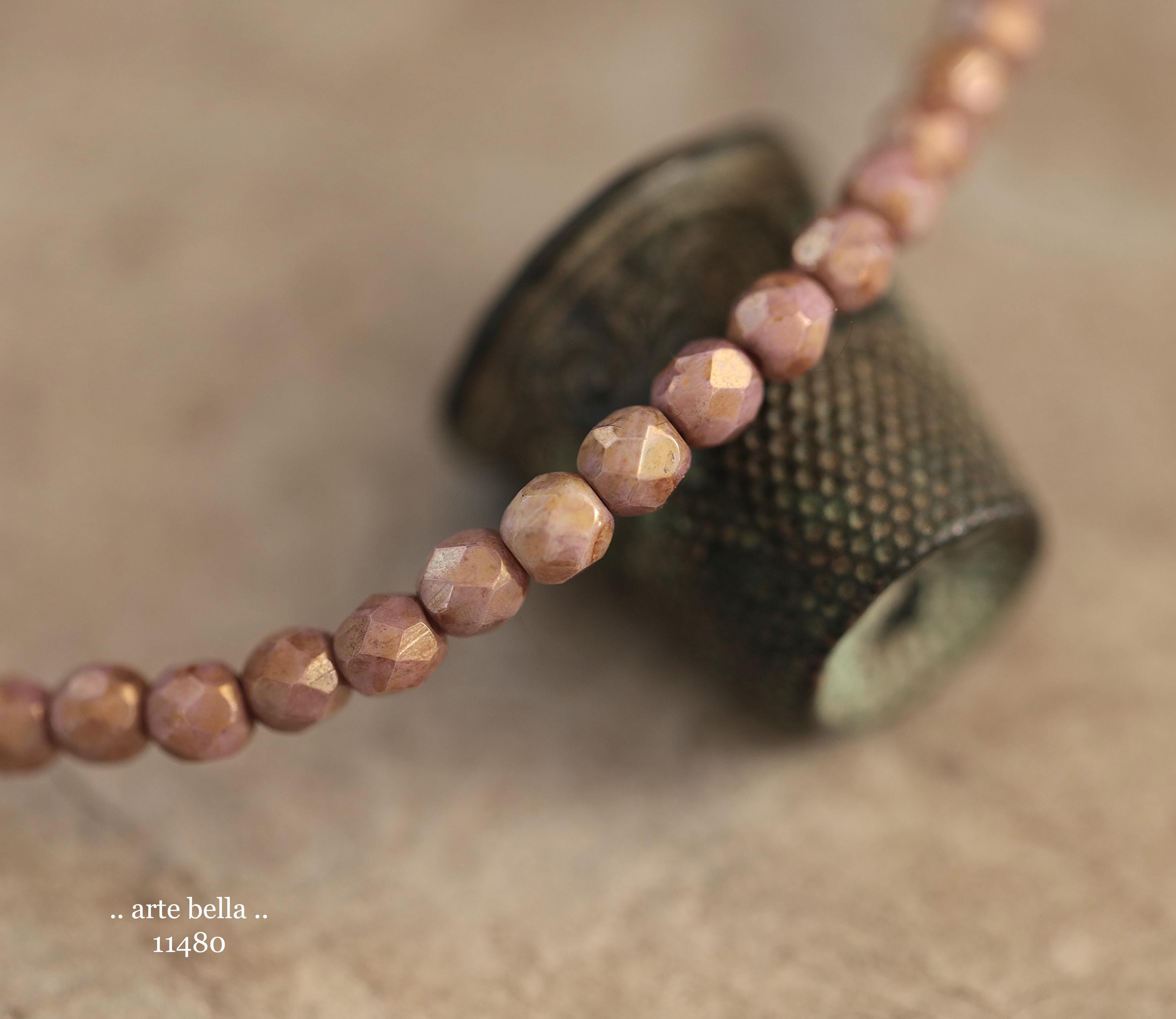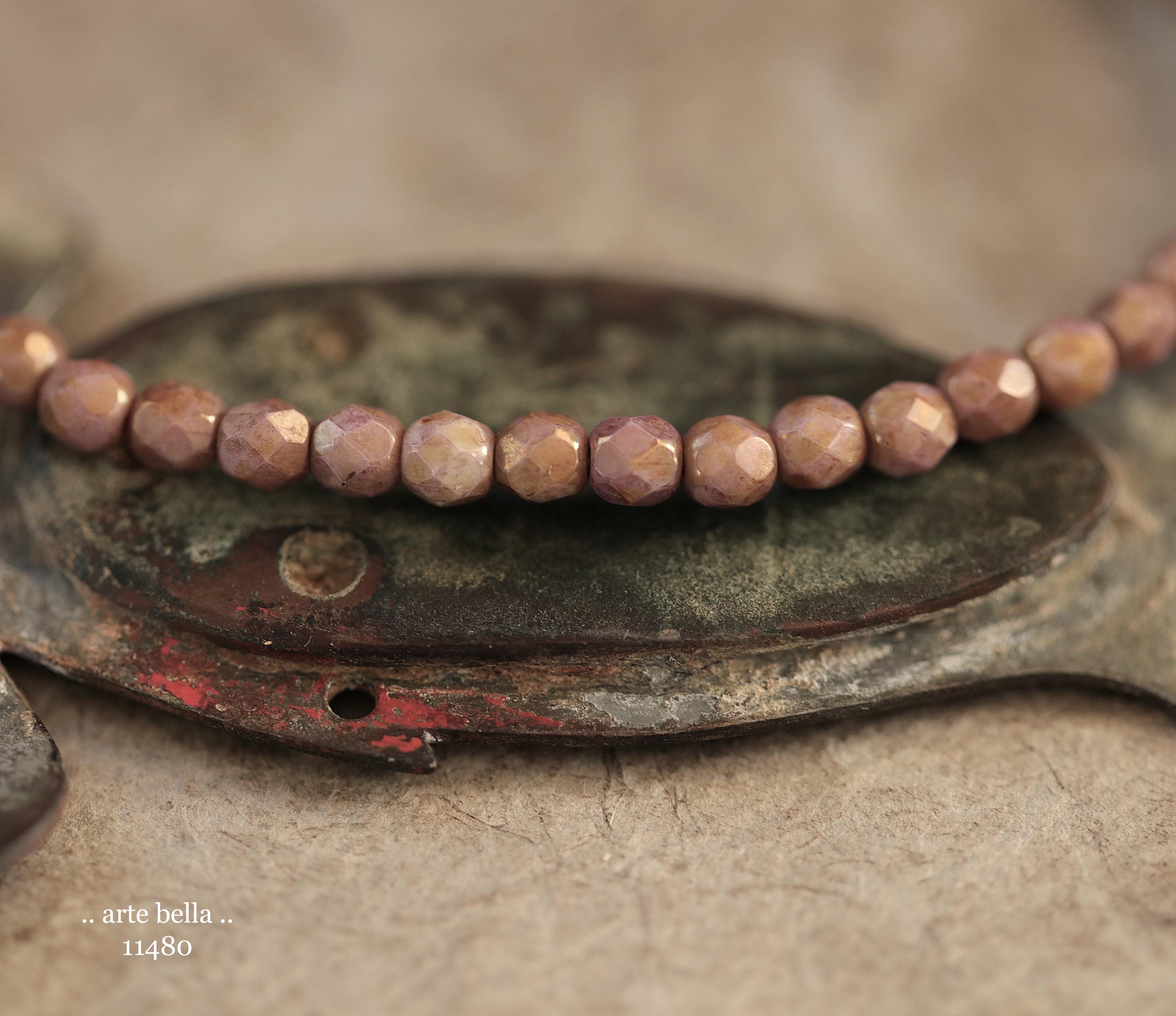 New .. GOLDEN ROSE TOTS .. 50 Luster Picasso Czech Glass Faceted Round Beads 4mm (11480-st) .. jewelry supplies
