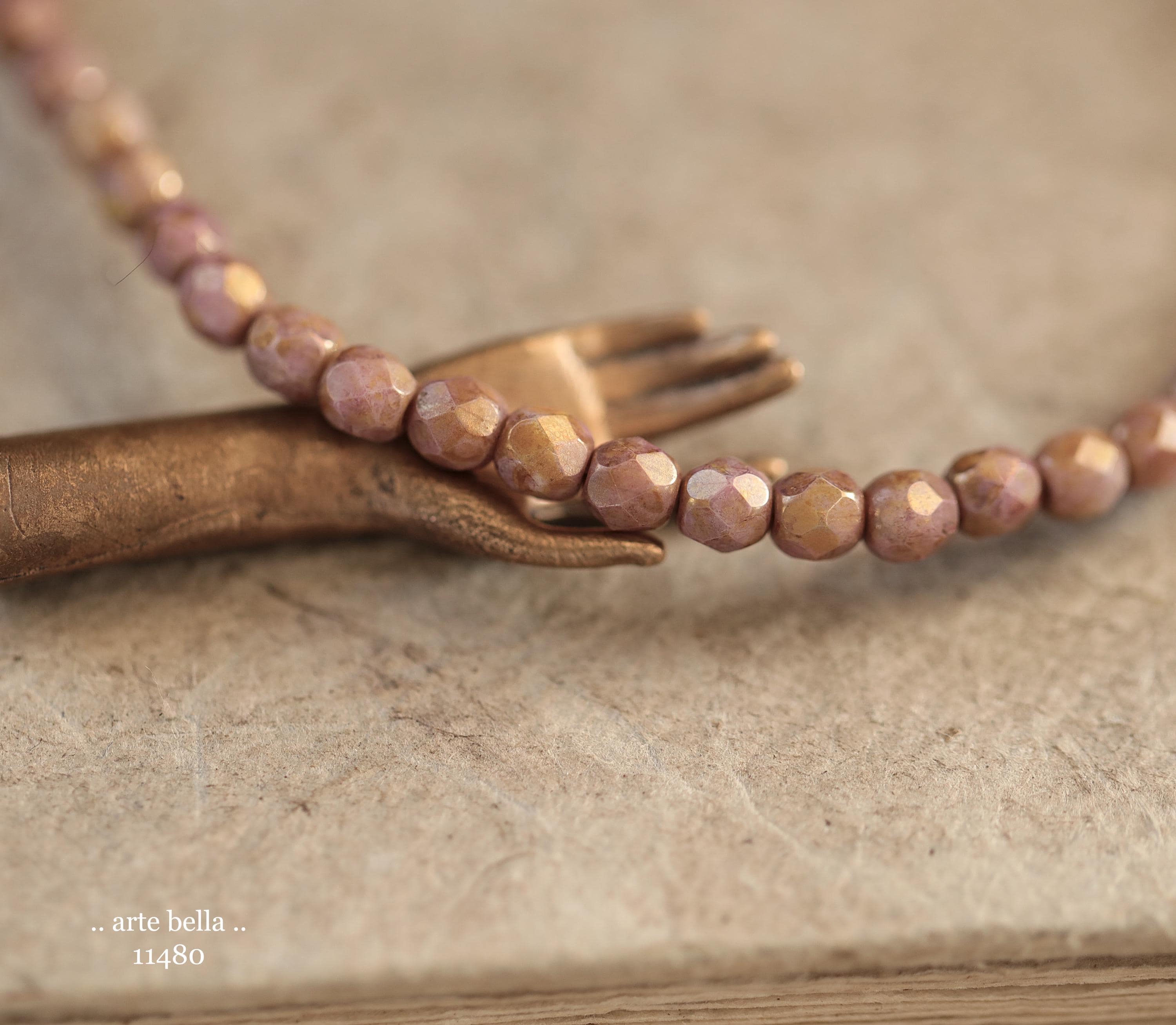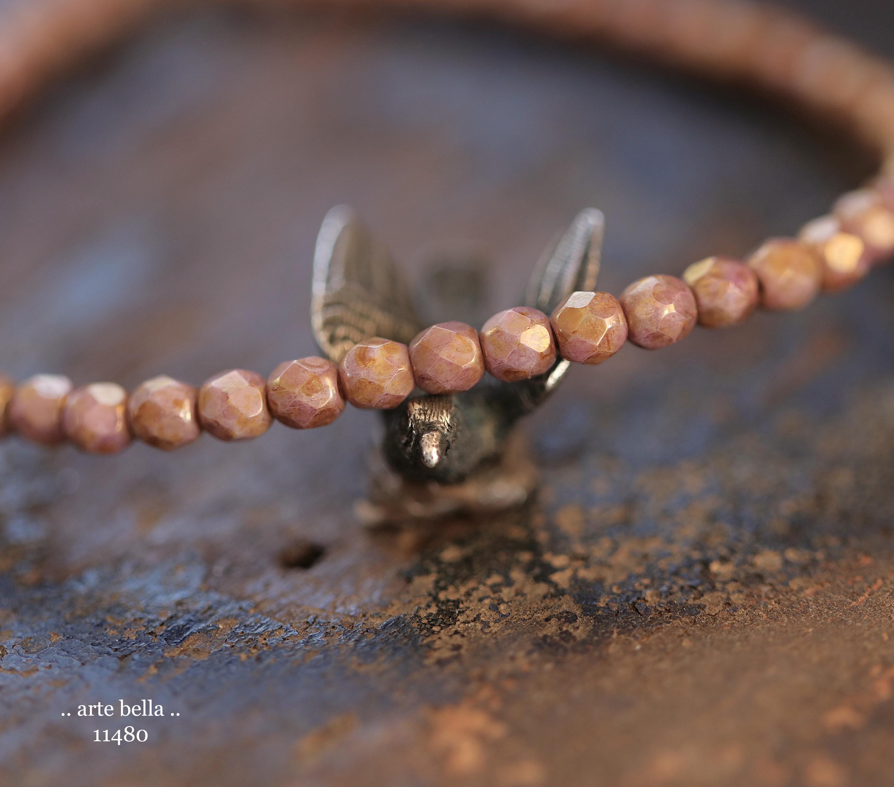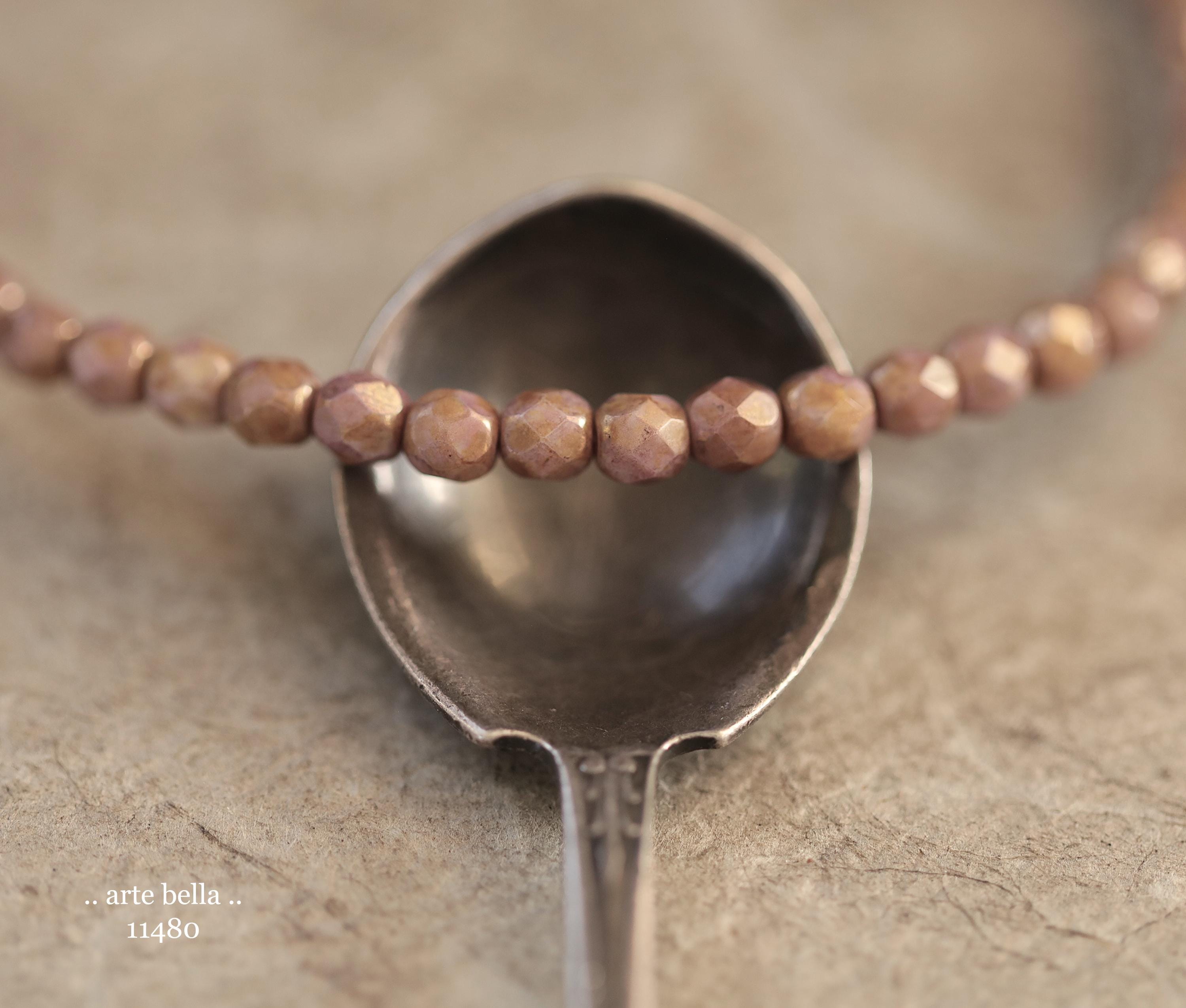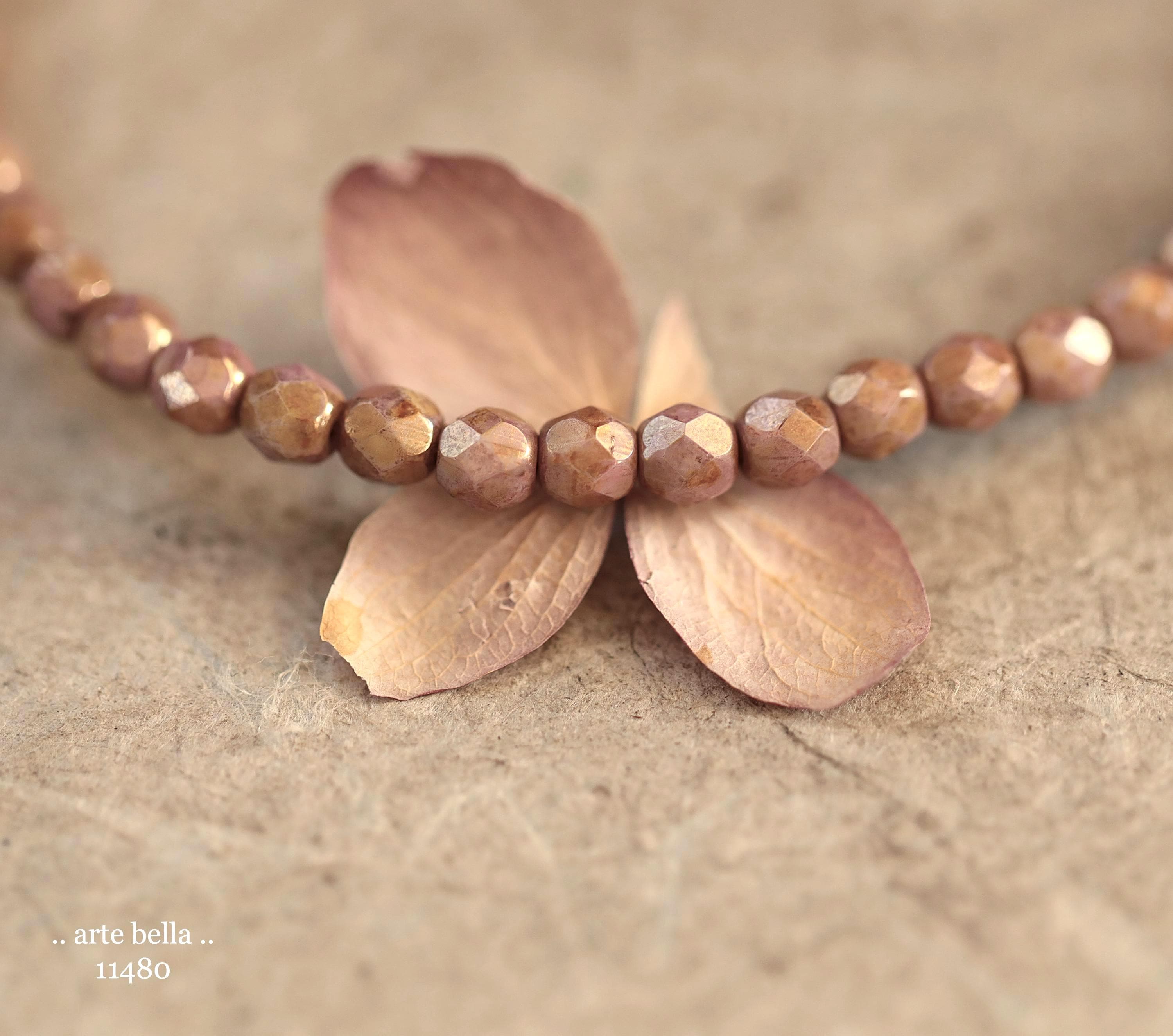 New .. GOLDEN ROSE TOTS .. 50 Luster Picasso Czech Glass Faceted Round Beads 4mm (11480-st) .. jewelry supplies