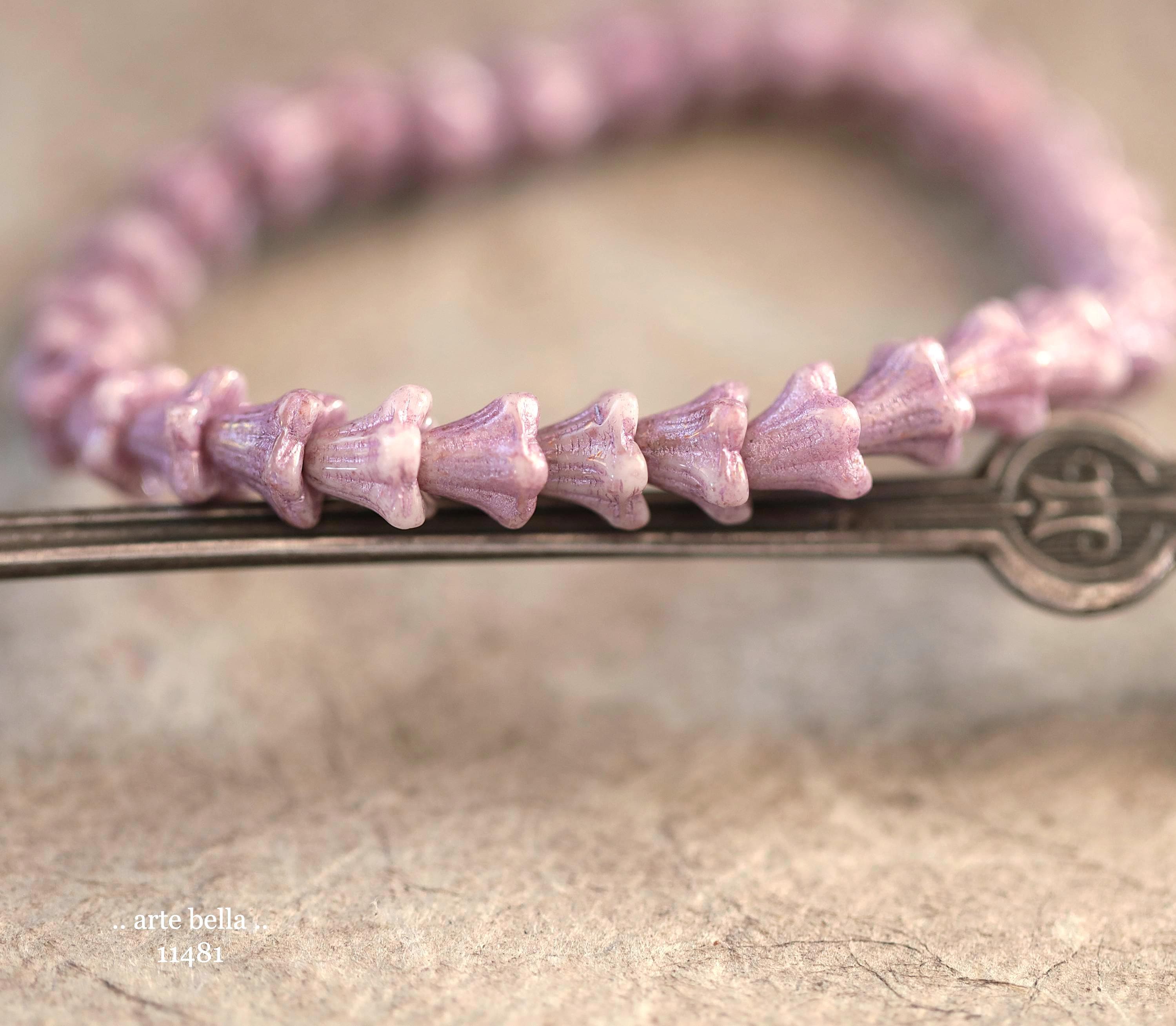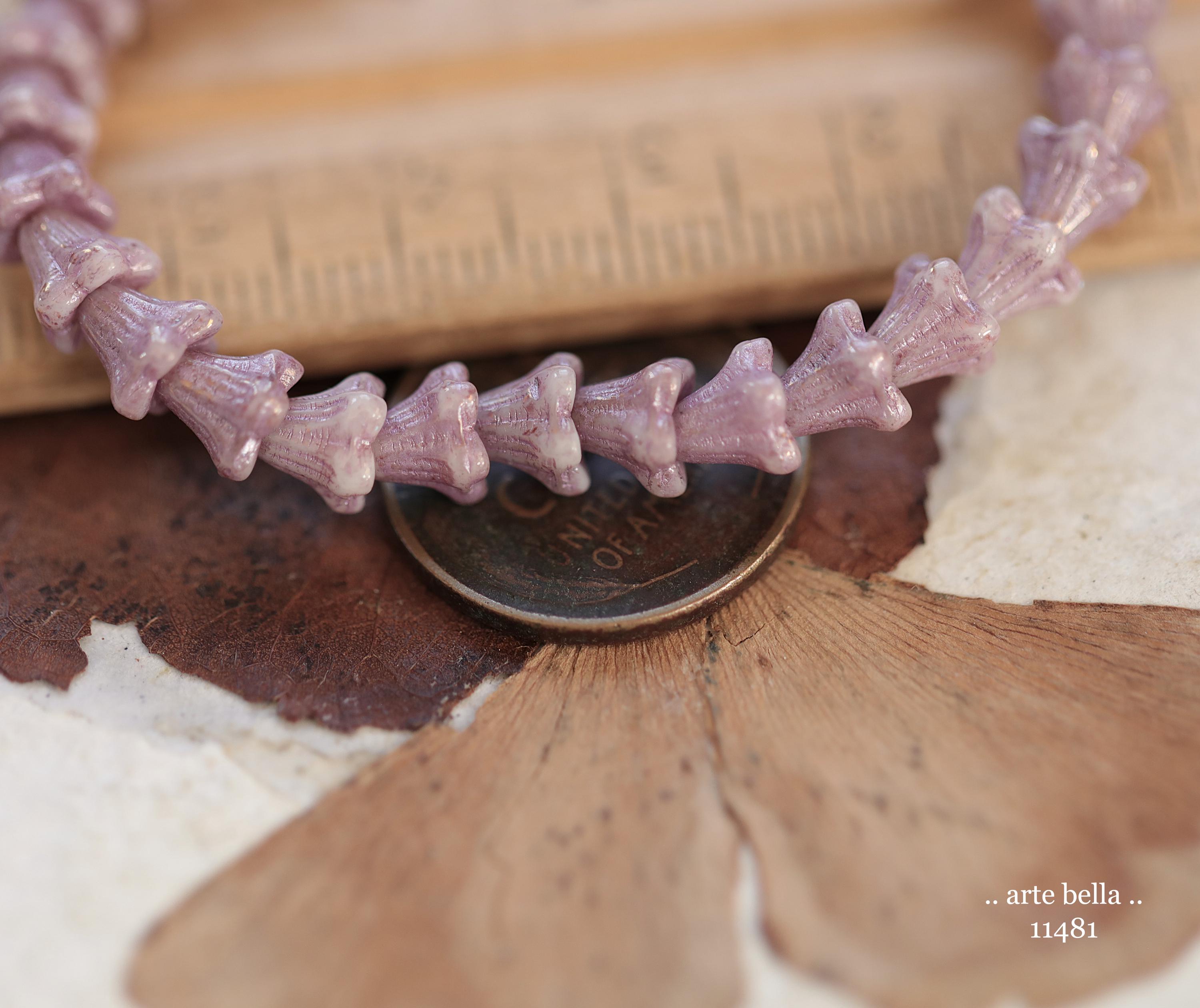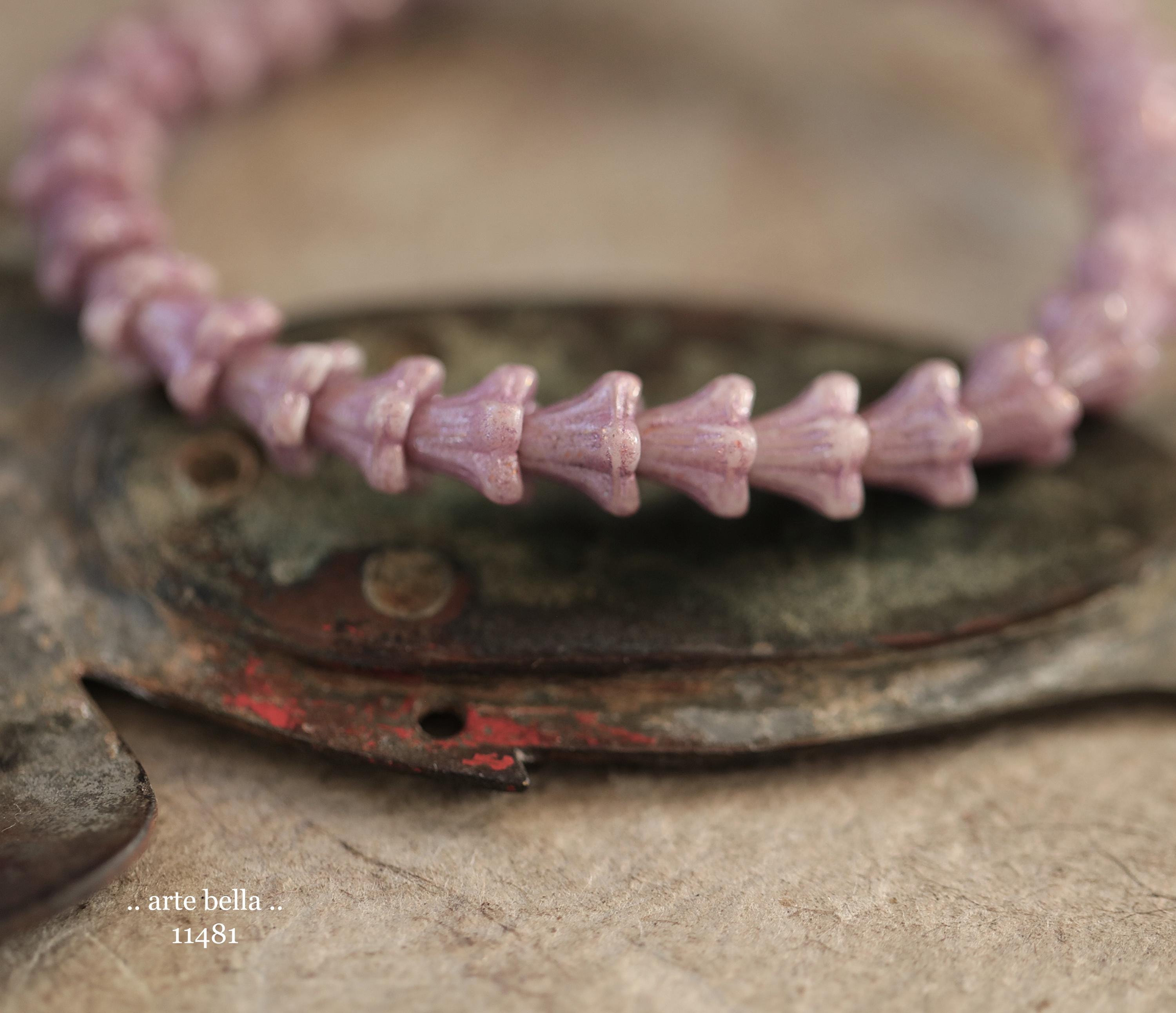 New .. THISTLE BABY BELLS .. 30 Metallic Luster Czech Glass Baby Bell Flower Bead 5x6mm (11481-st) .. jewelry supplies