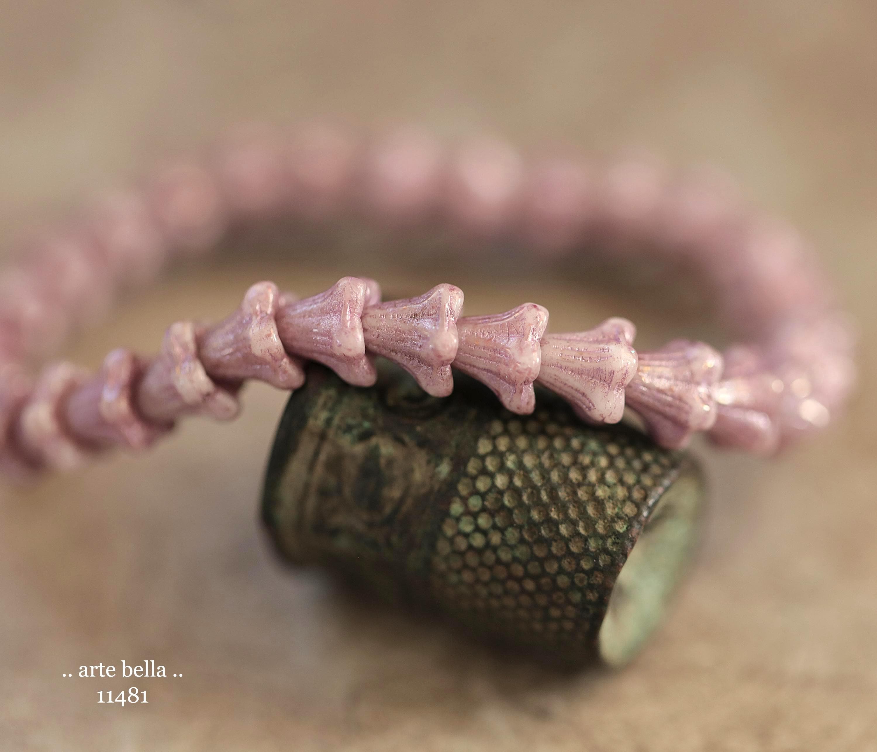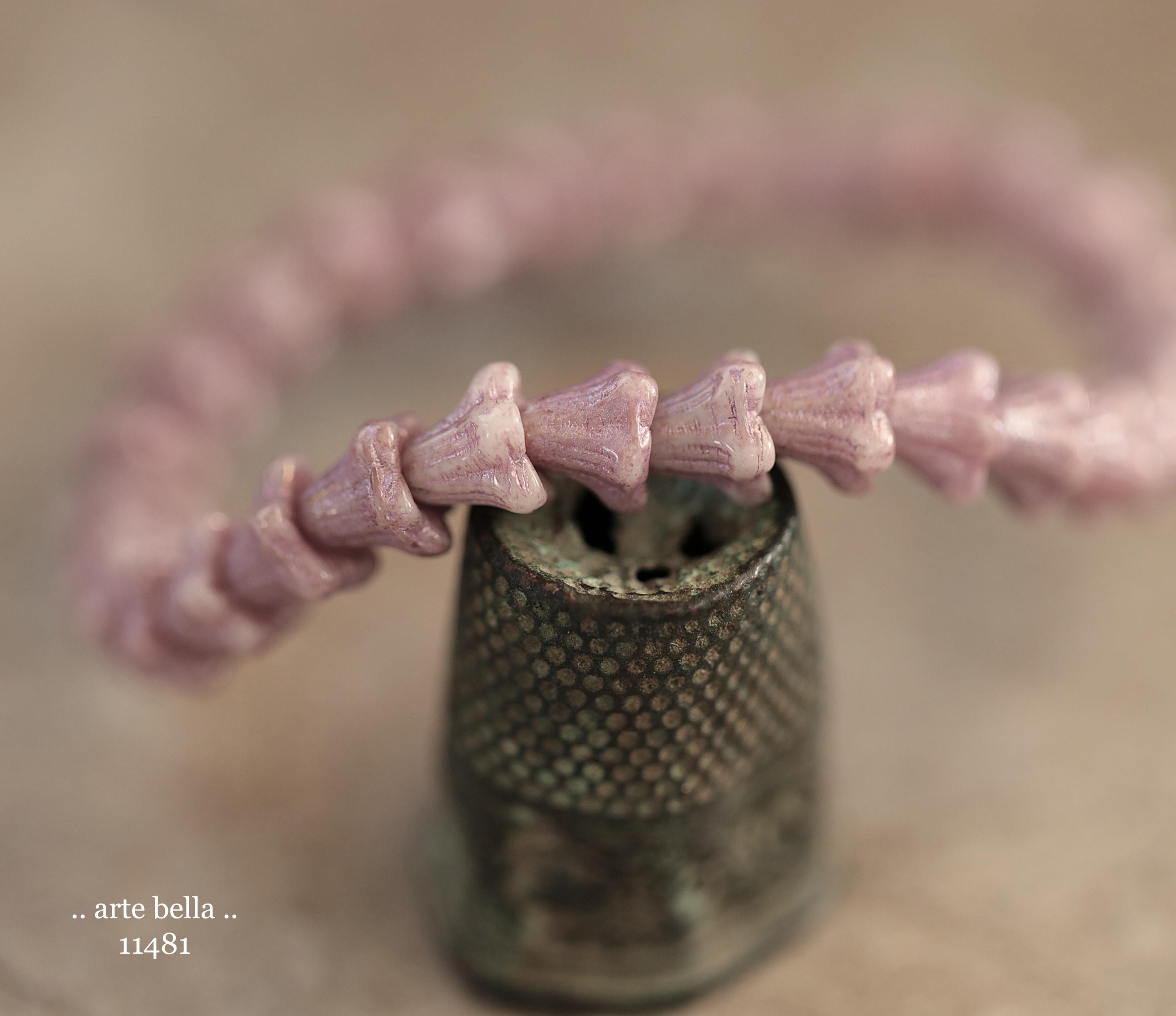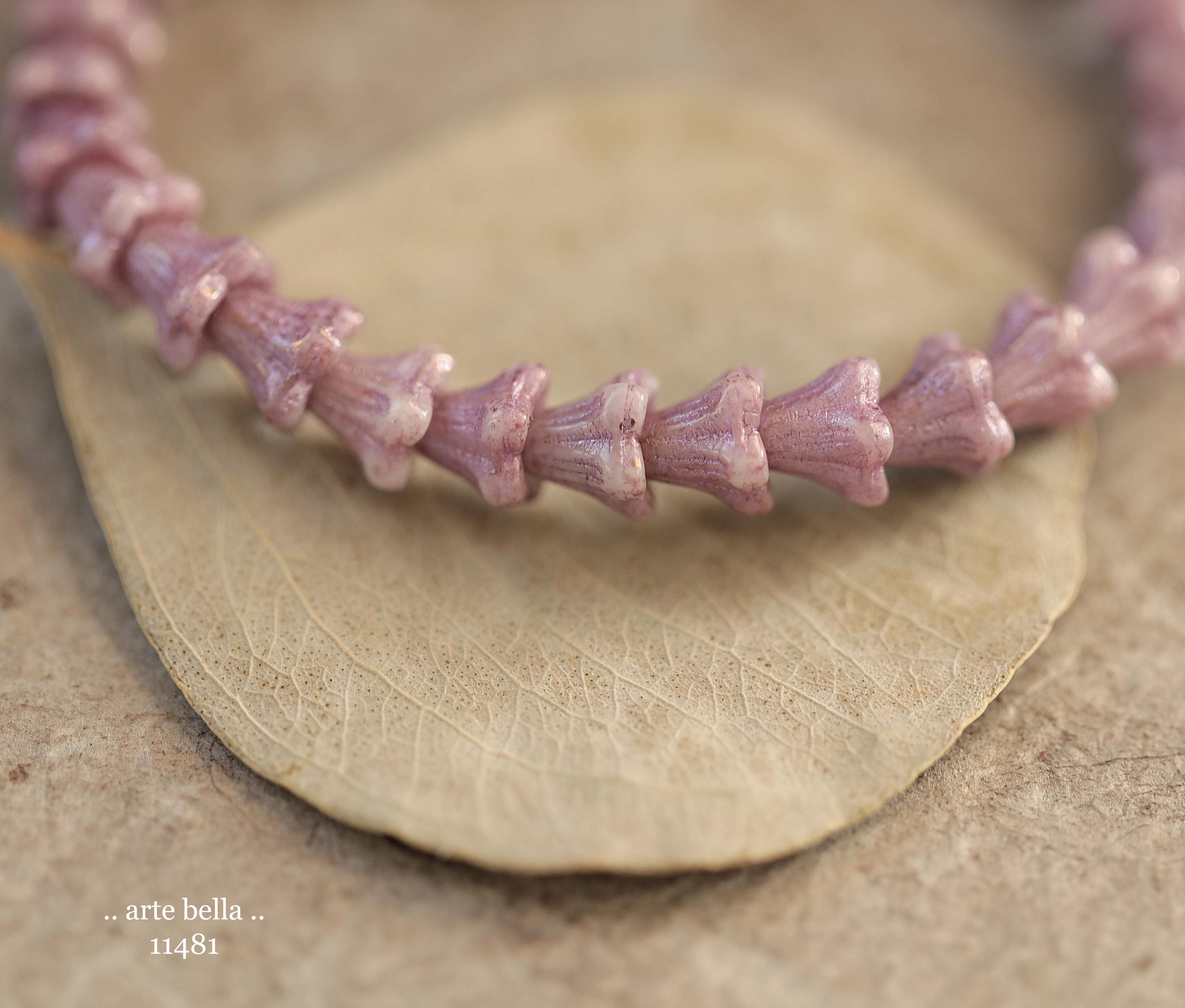 New .. THISTLE BABY BELLS .. 30 Metallic Luster Czech Glass Baby Bell Flower Bead 5x6mm (11481-st) .. jewelry supplies