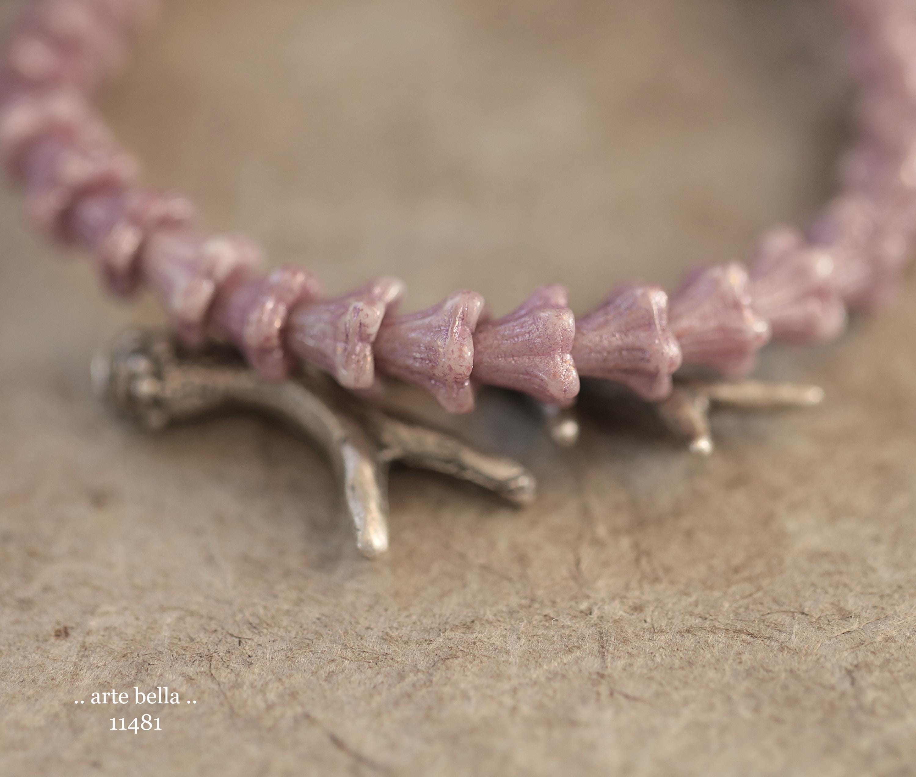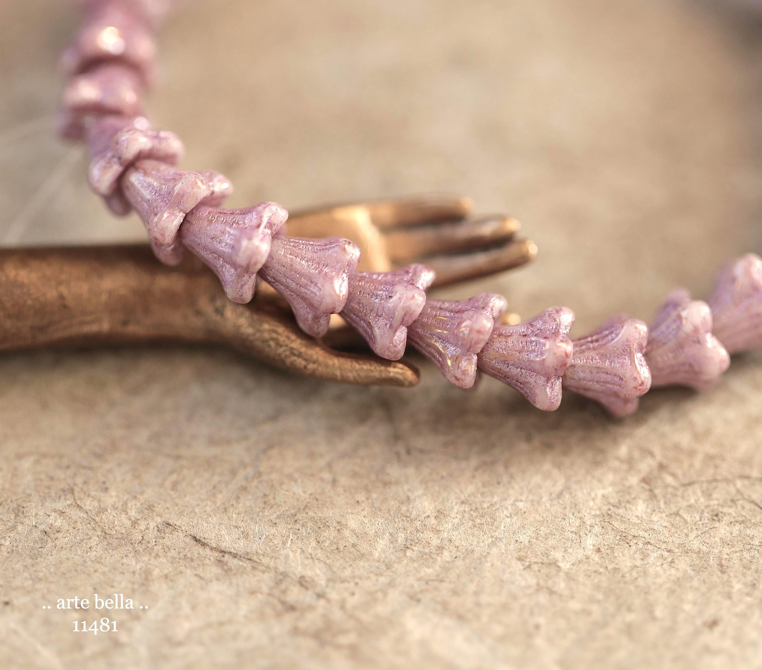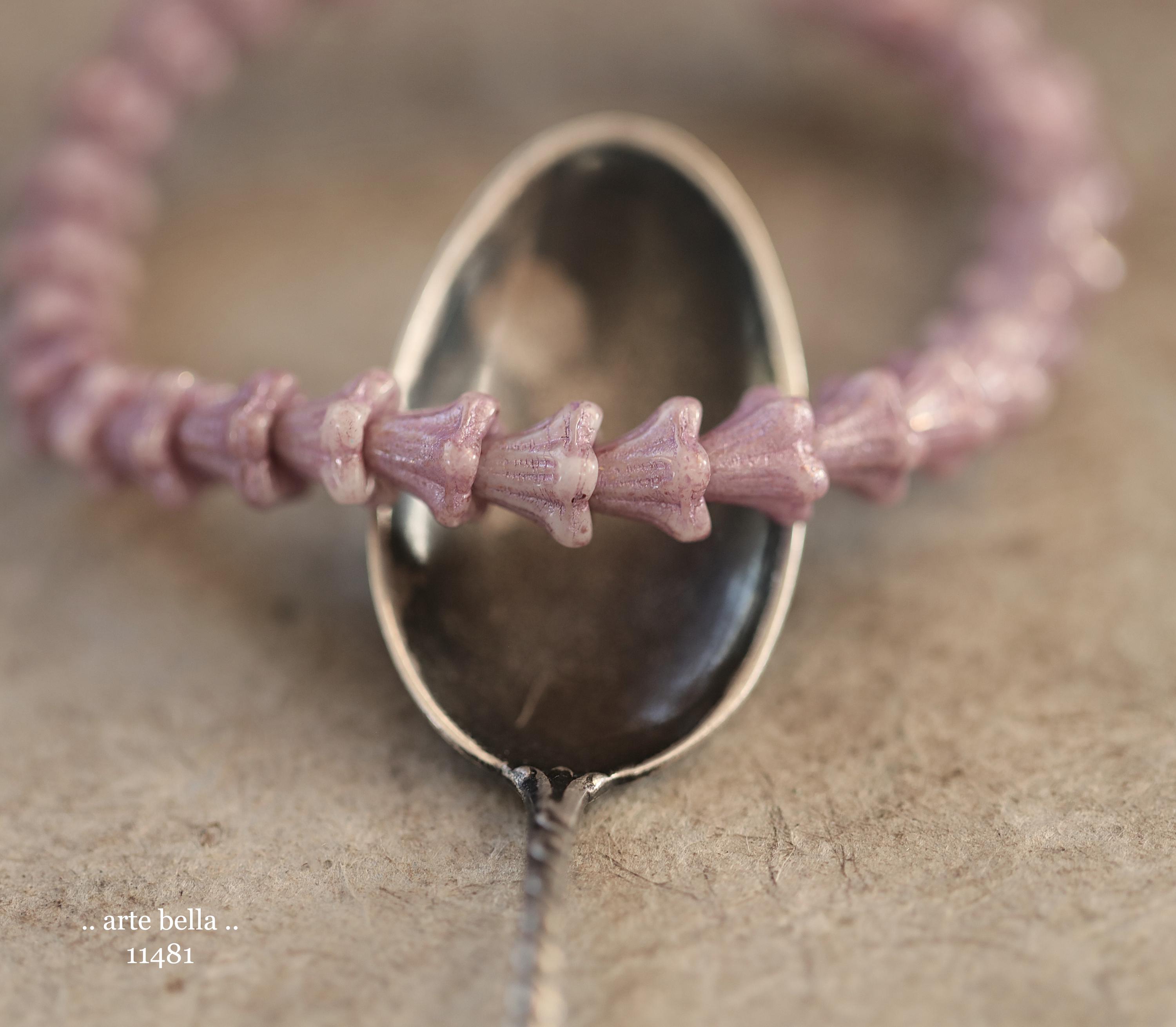 Super cute baby bell flowers in light thistle purple glass with a pink metallic wash.