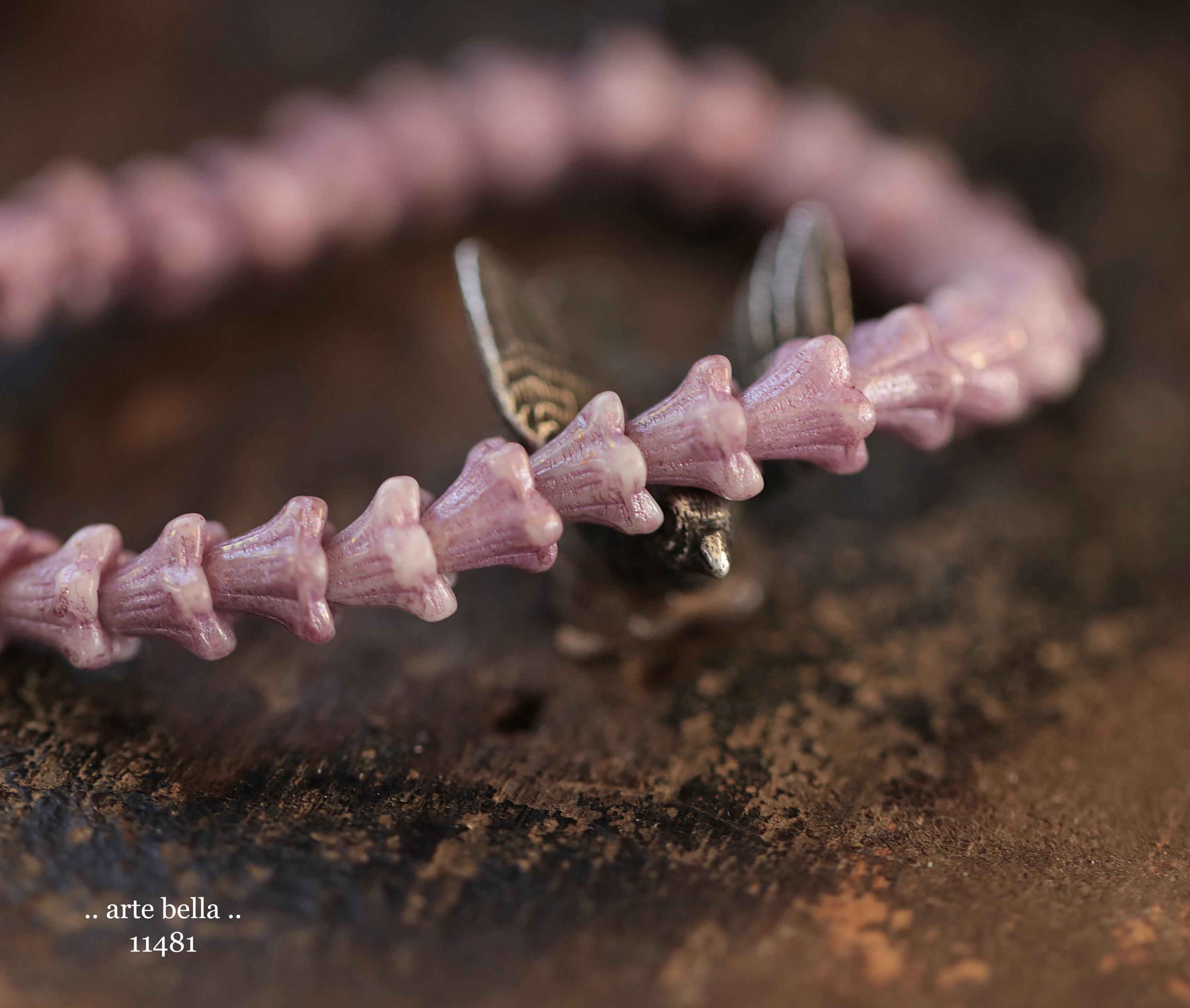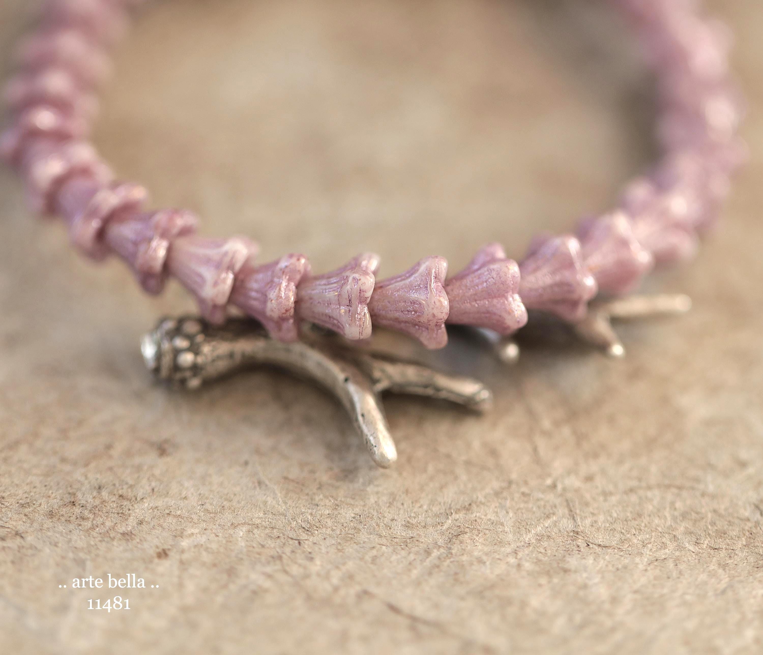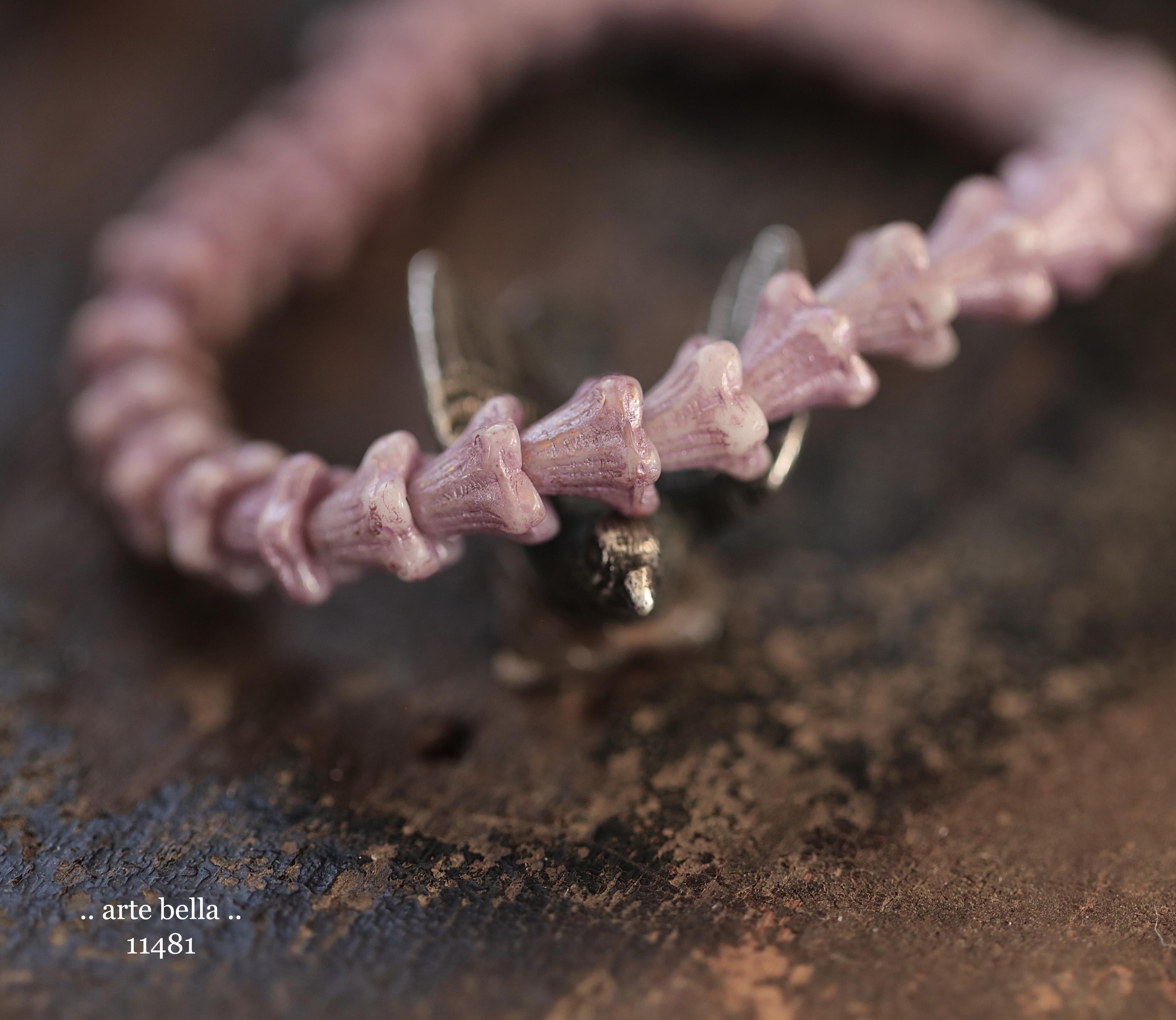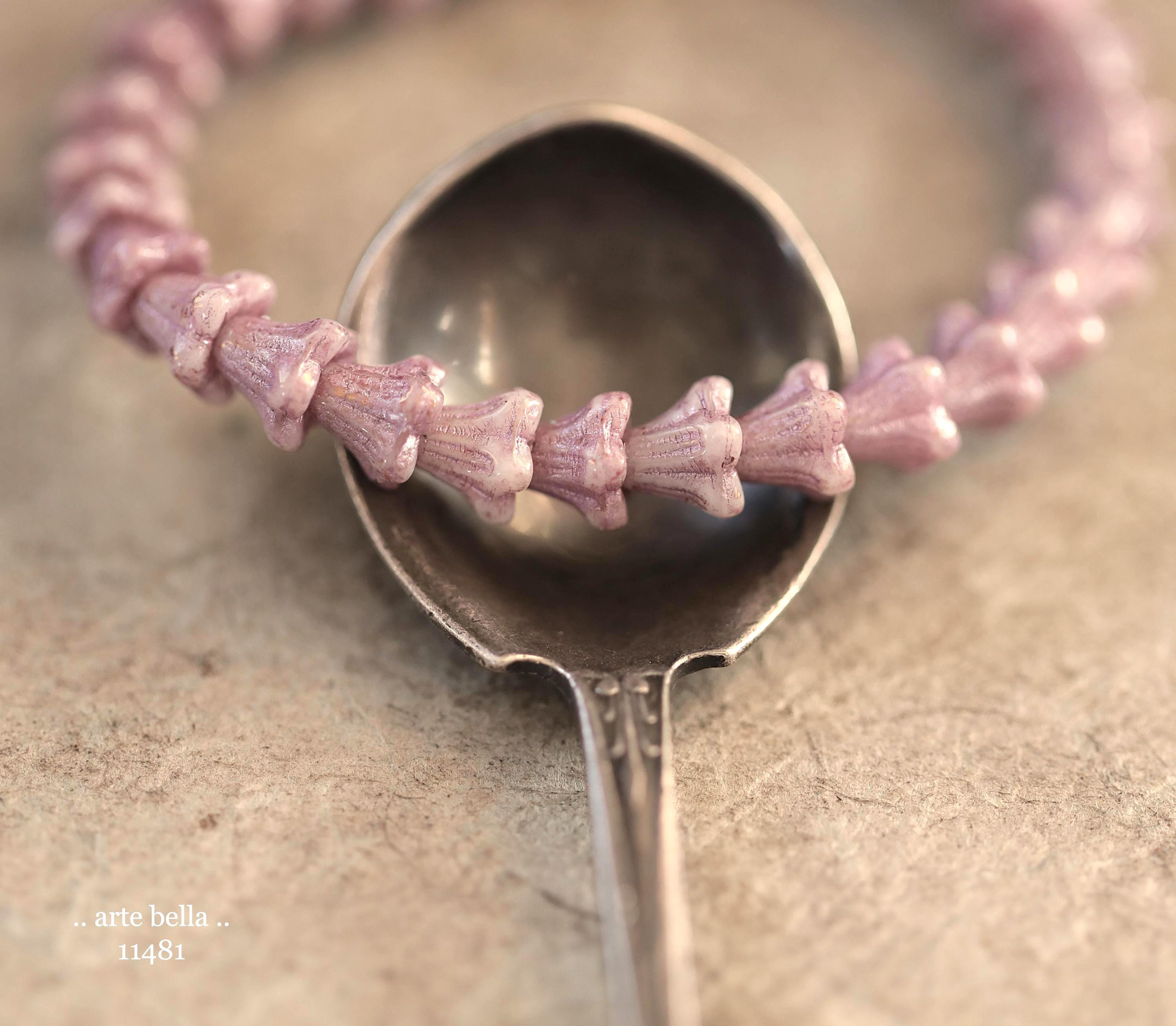 Super cute baby bell flowers in light thistle purple glass with a pink metallic wash.