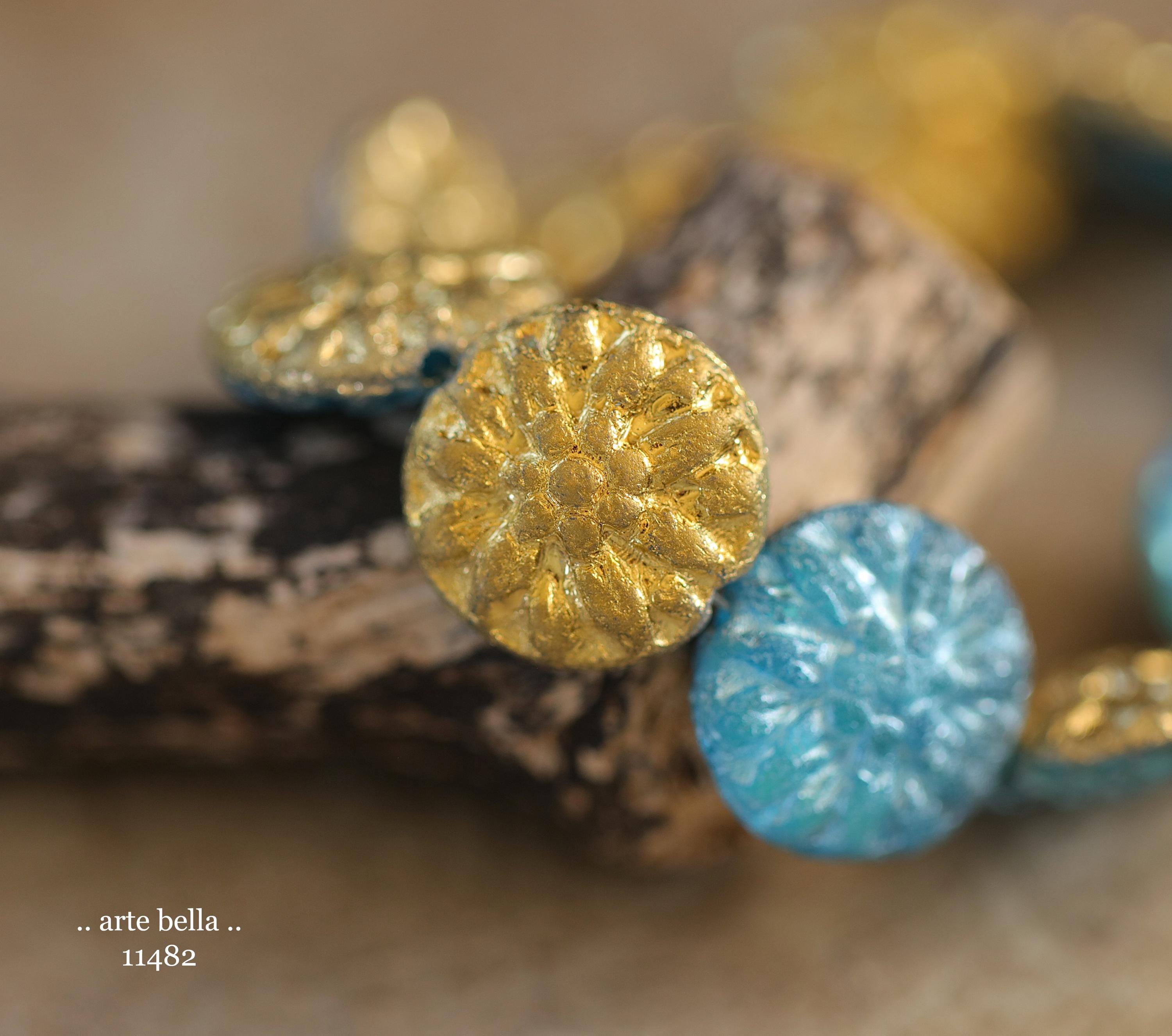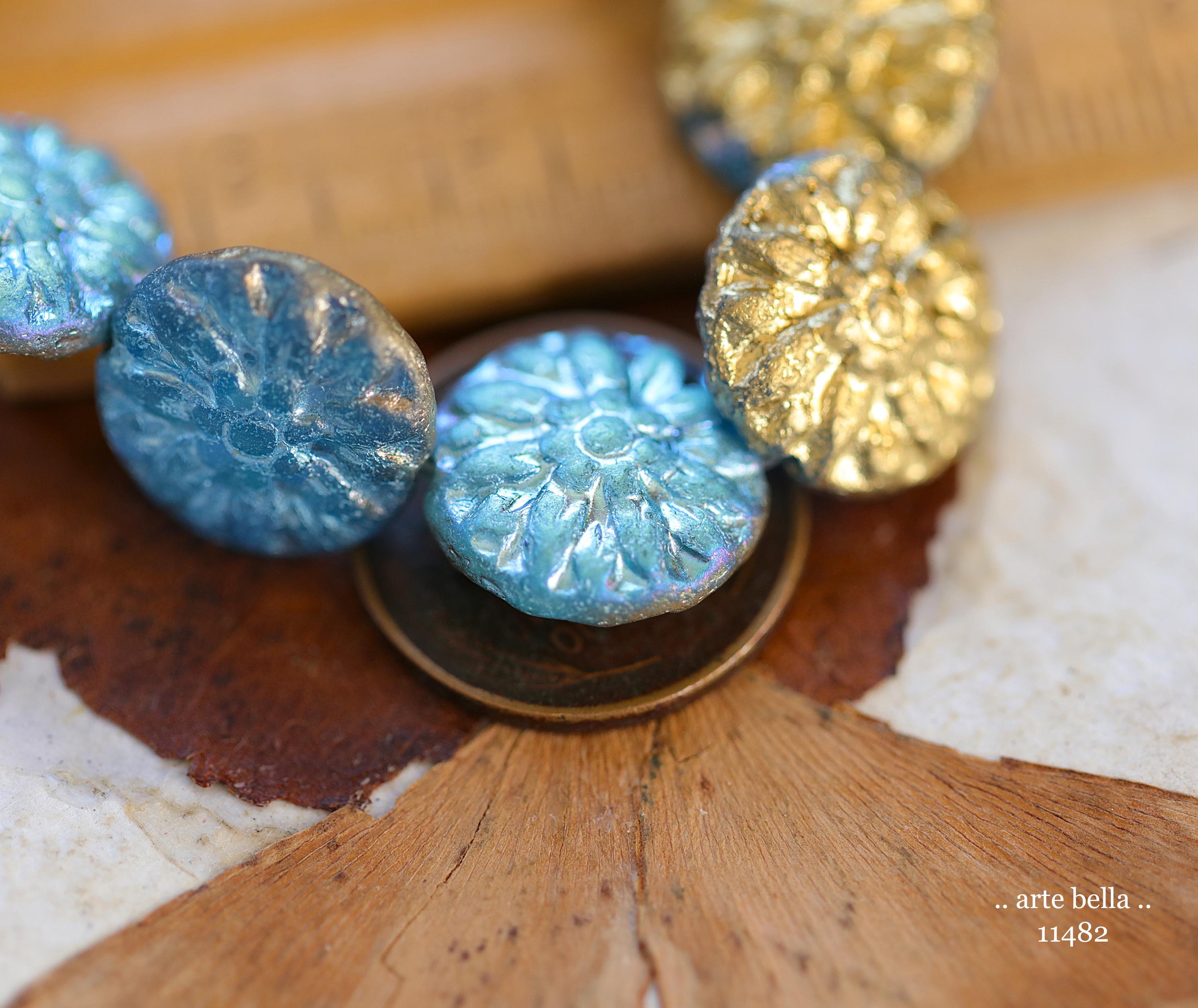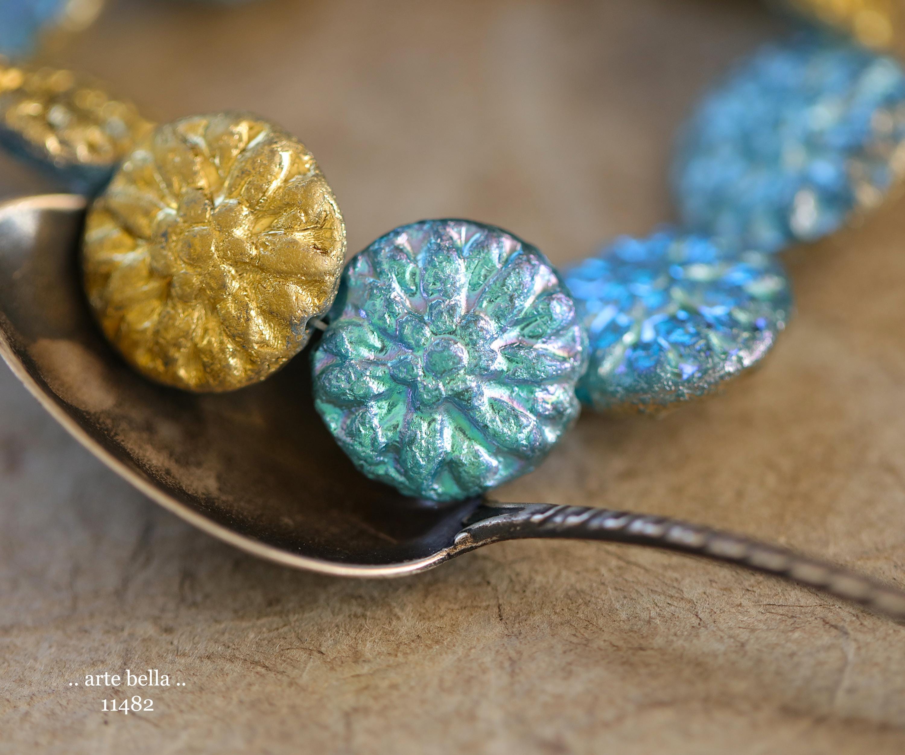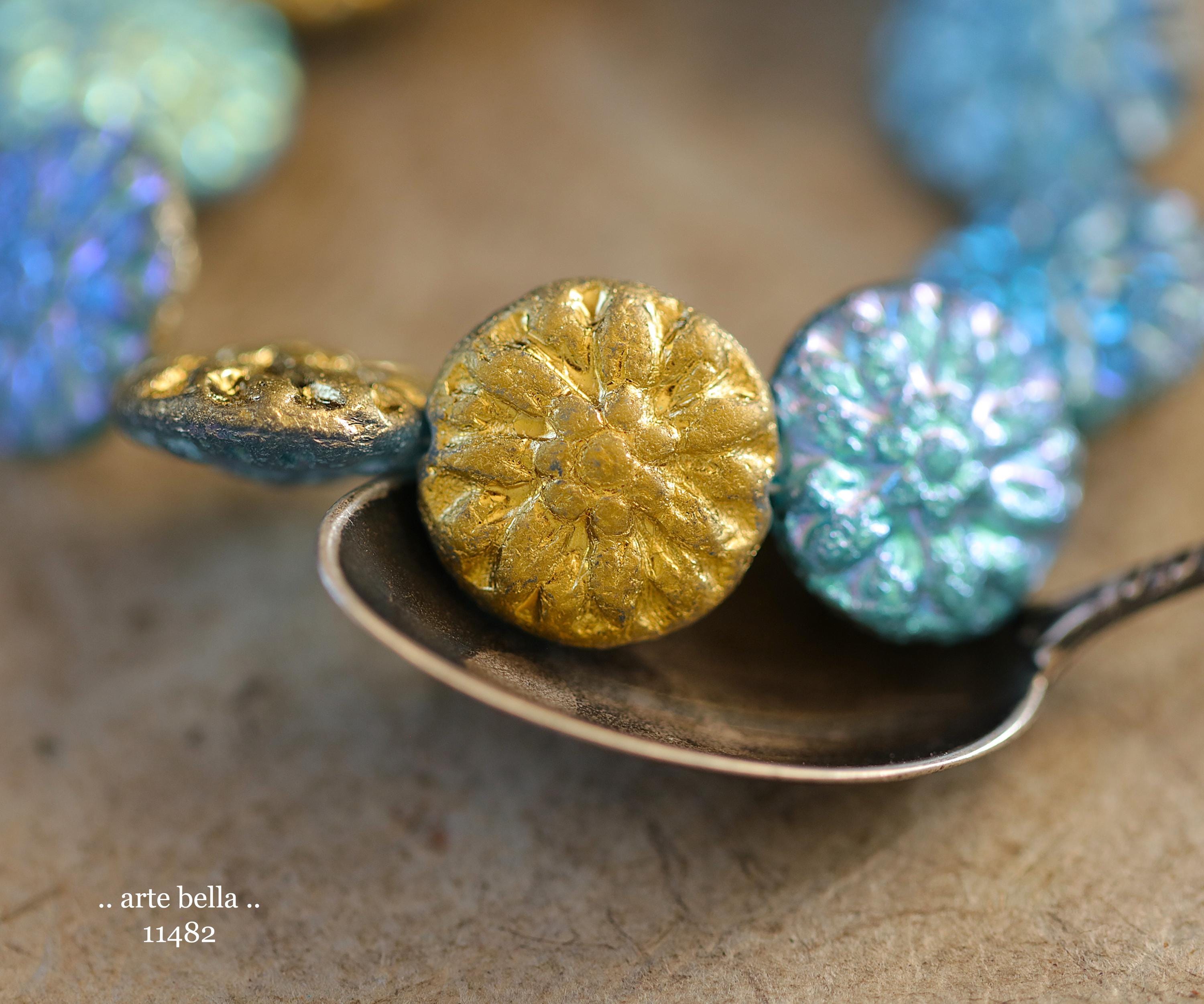 New .. GOLDEN SKY DAHLIAS .. 10 Premium Etched Czech Glass Dahlia Flower Beads 14mm (11482-st) .. jewelry supplies