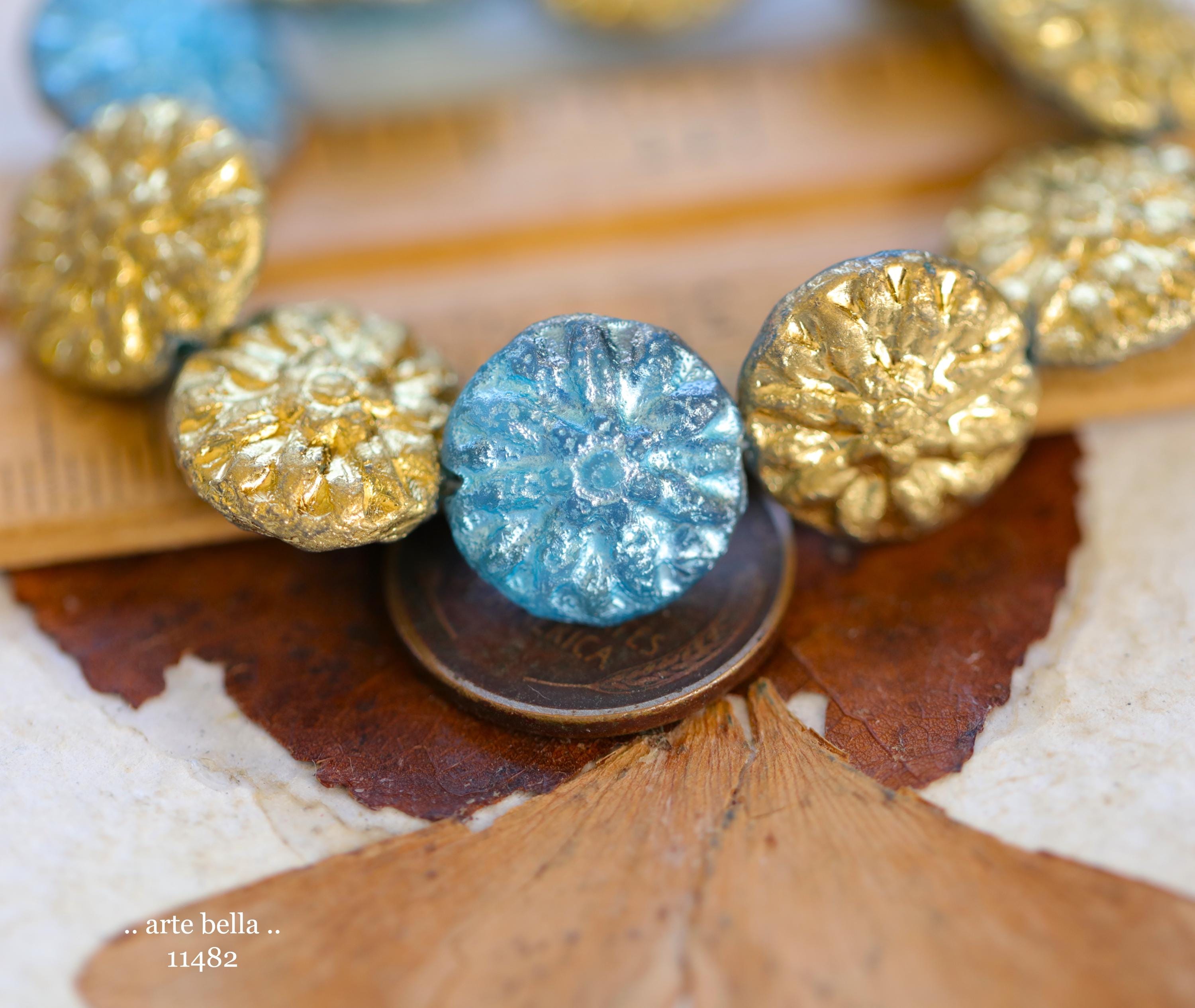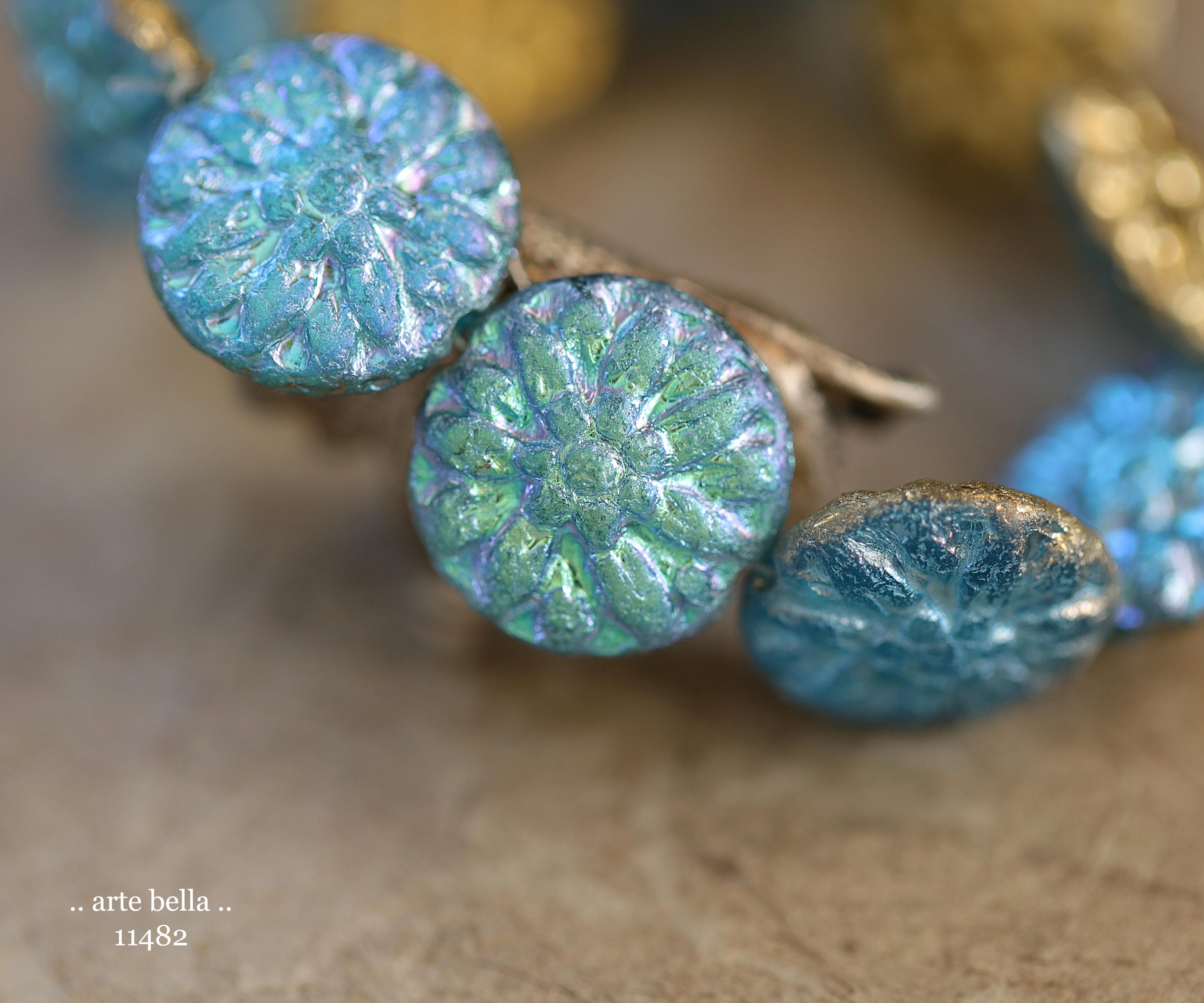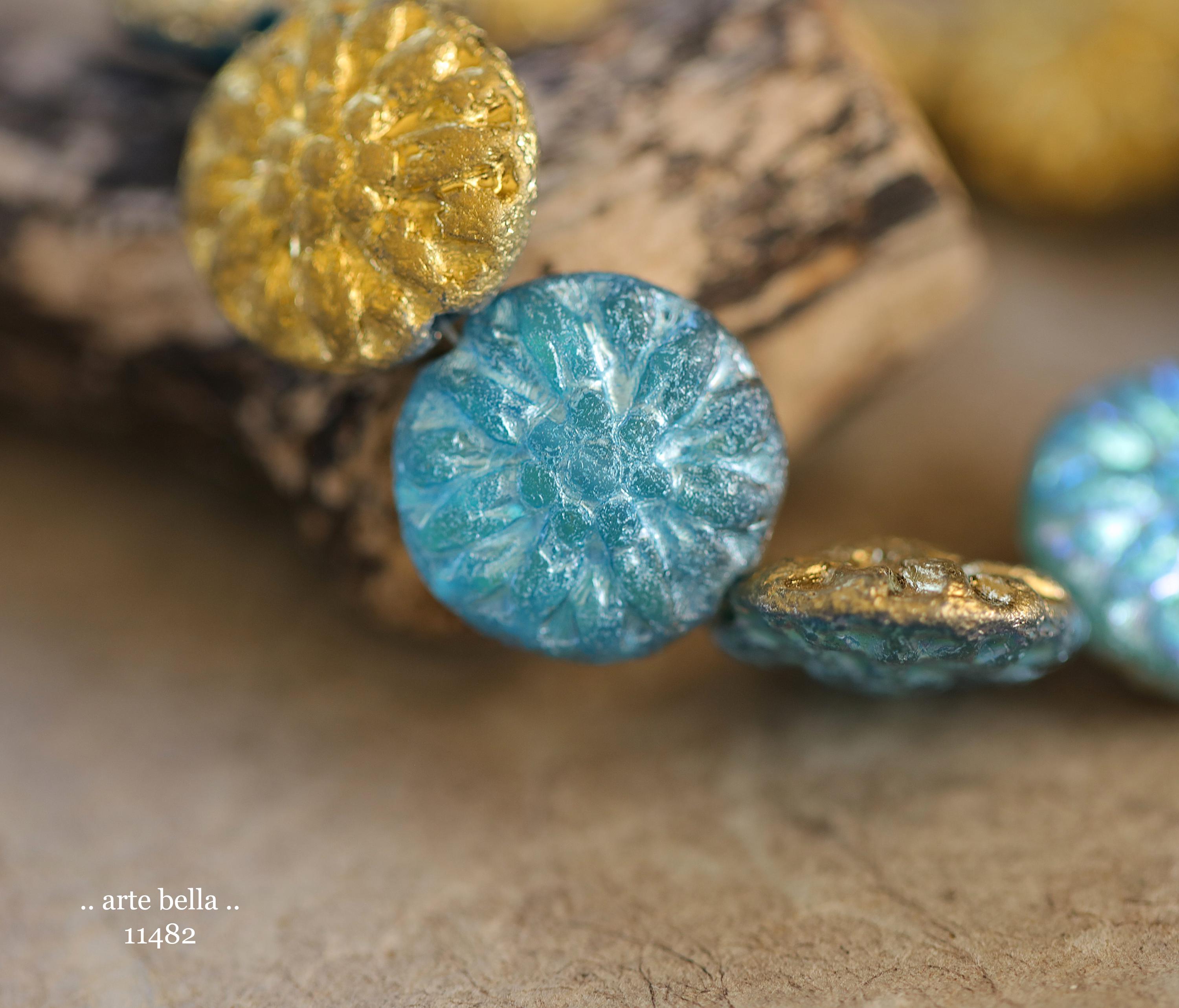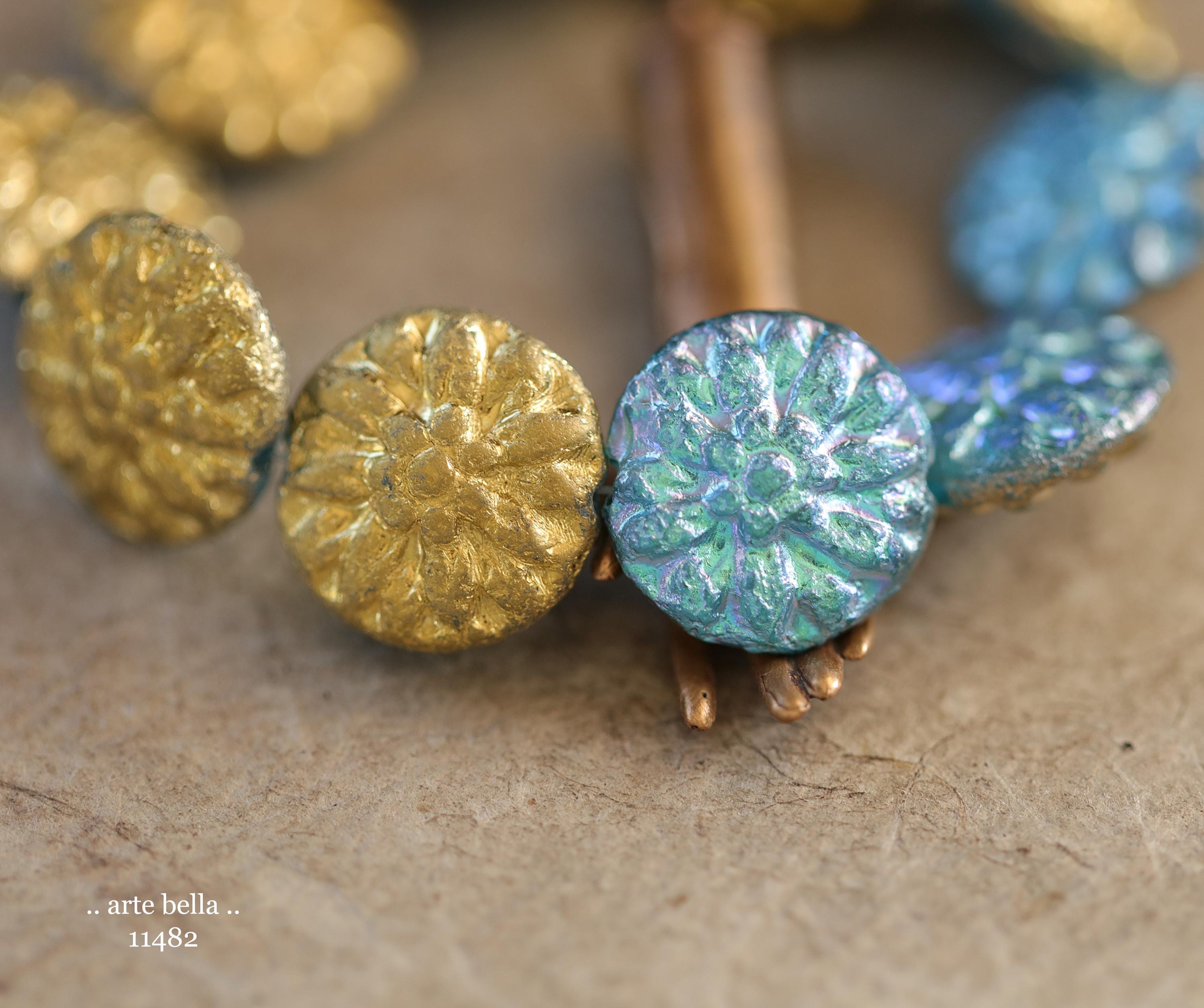 New .. GOLDEN SKY DAHLIAS .. 10 Premium Etched Czech Glass Dahlia Flower Beads 14mm (11482-st) .. jewelry supplies