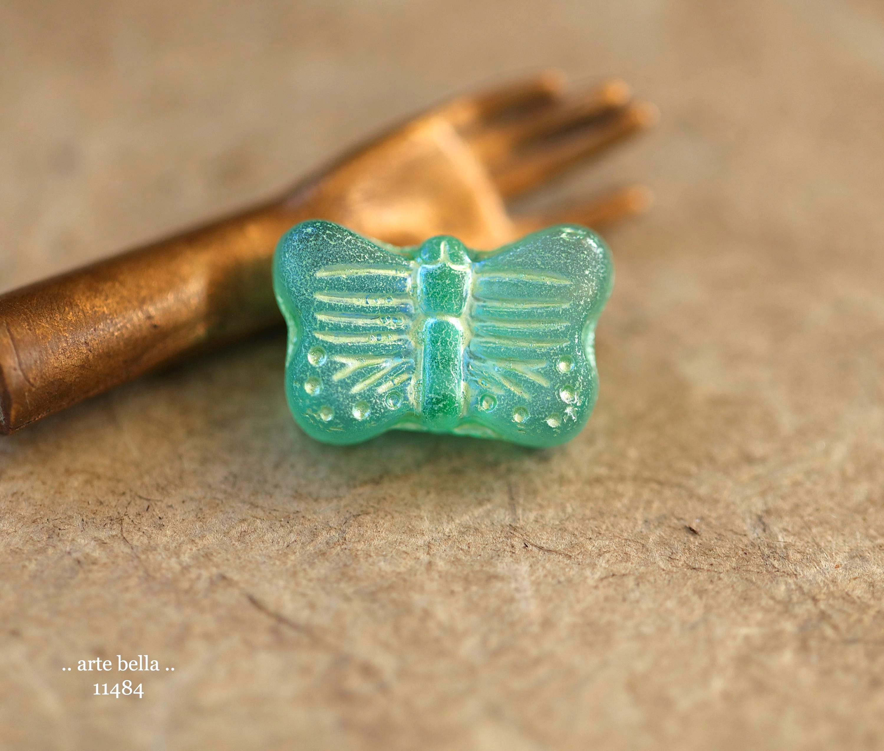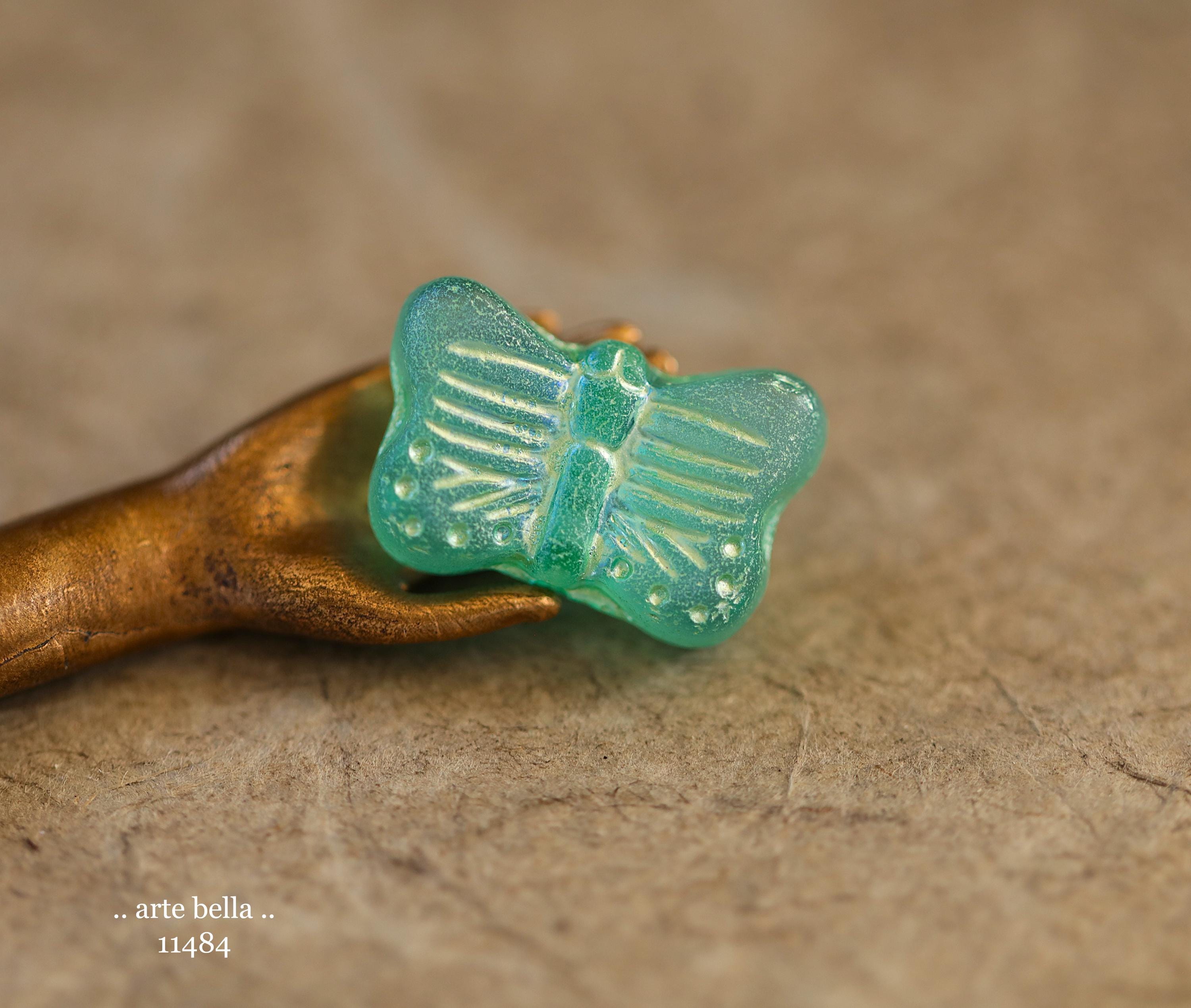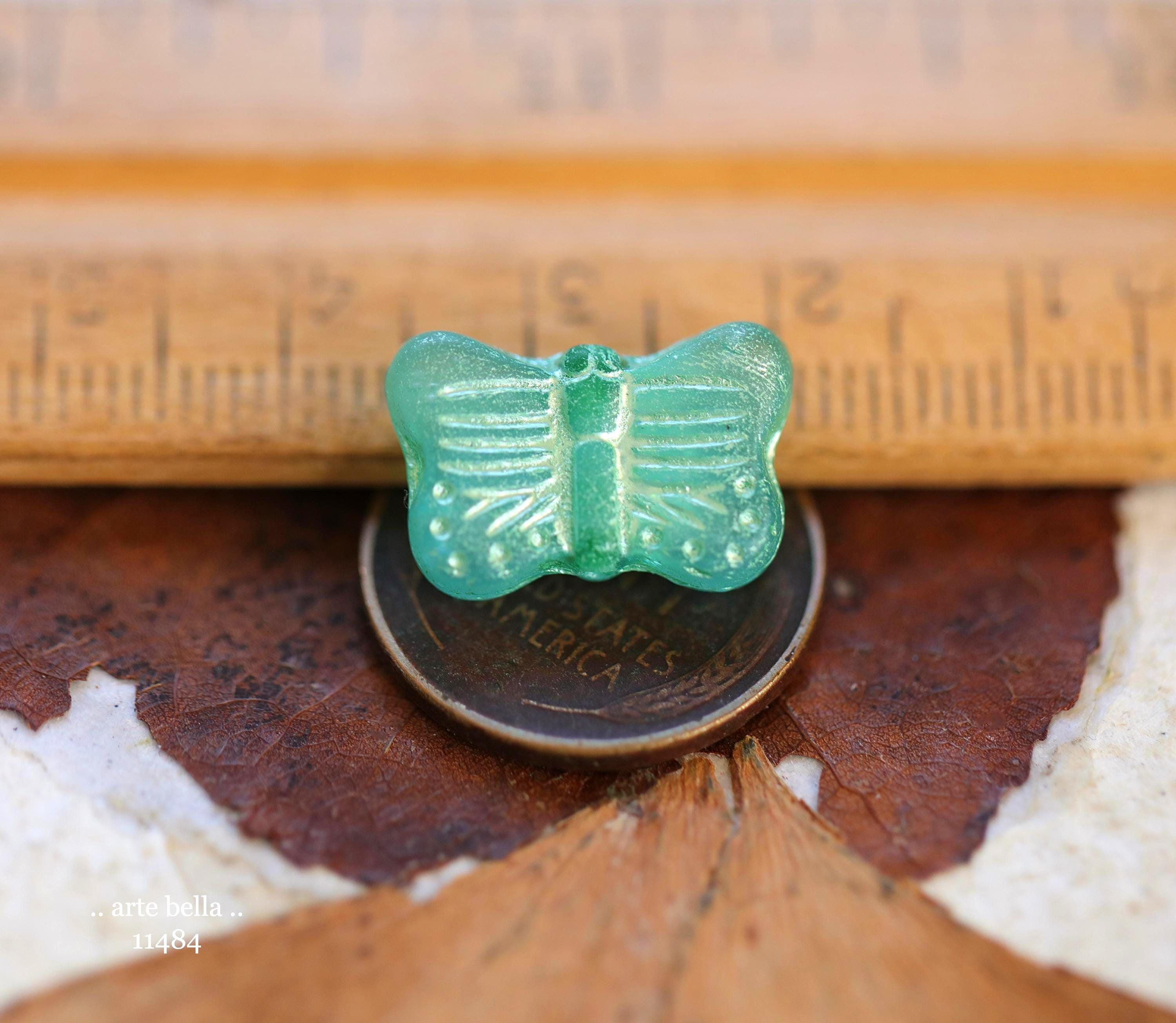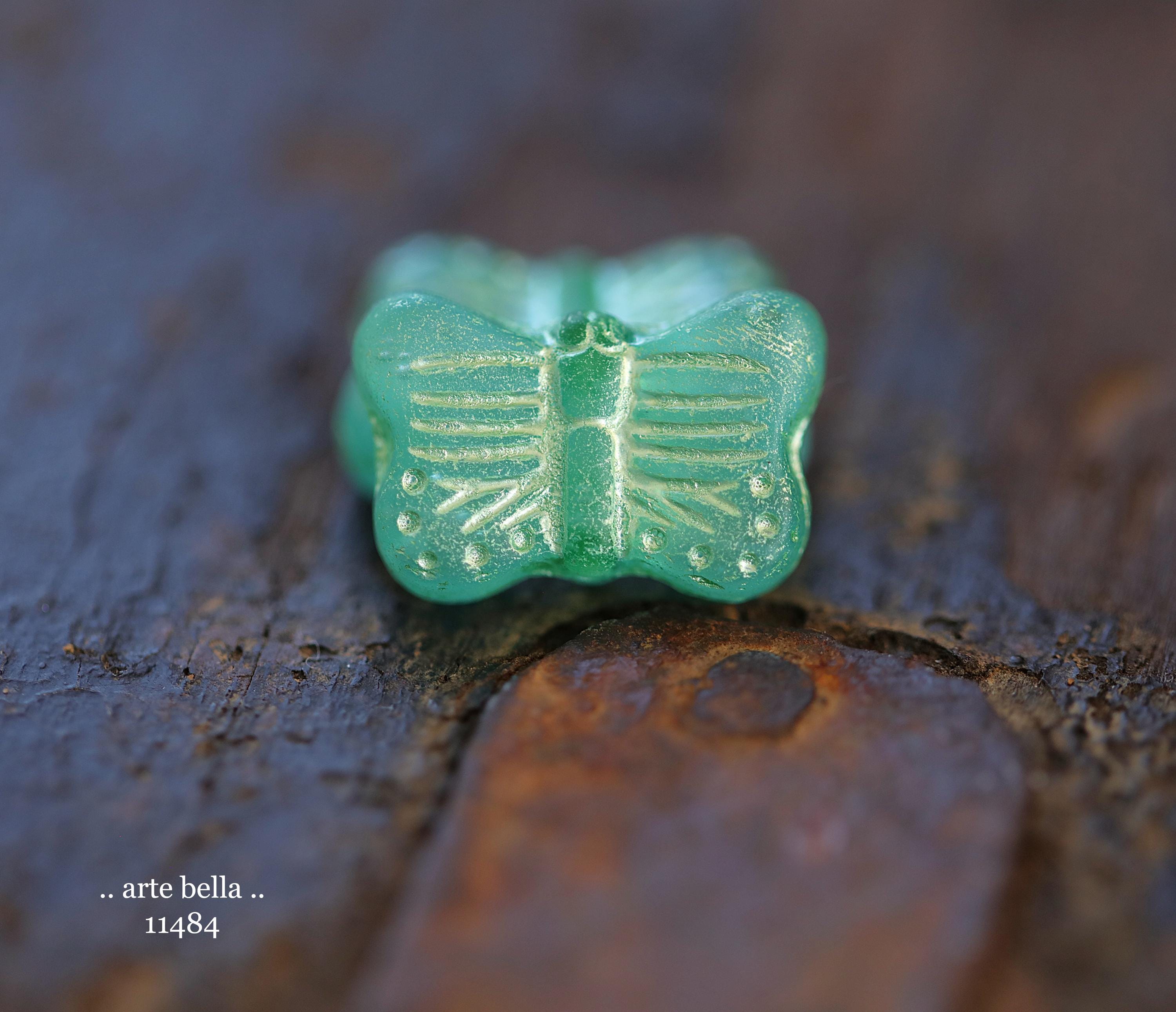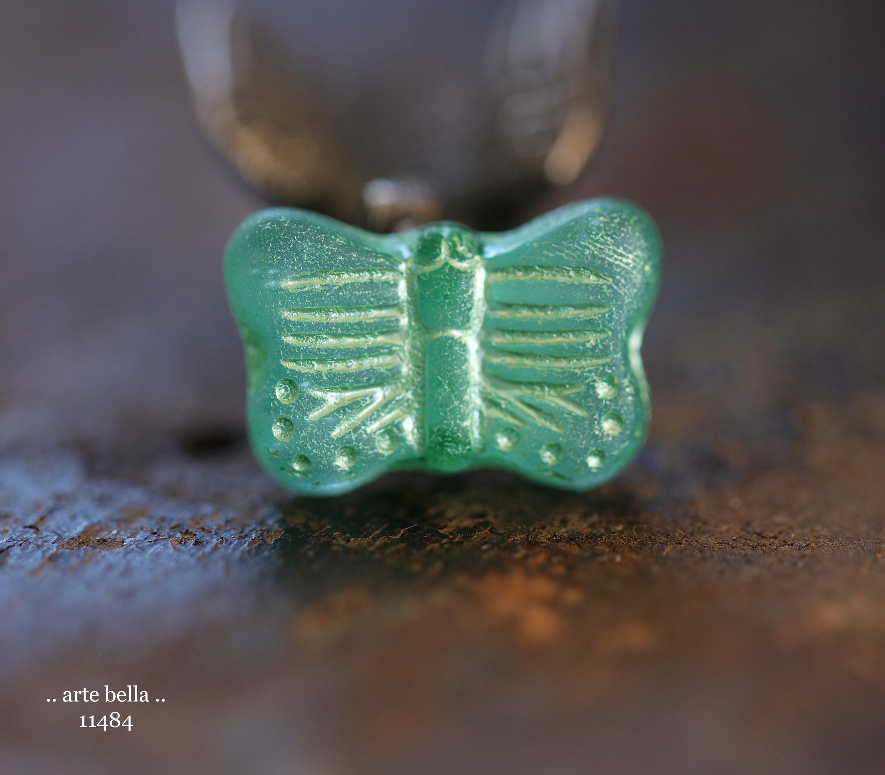 New .. GREEN SWALLOWTAIL FLUTTERS .. 10 Matte Czech Glass Butterfly Beads 11x16mm (11484-st) .. jewelry supplies