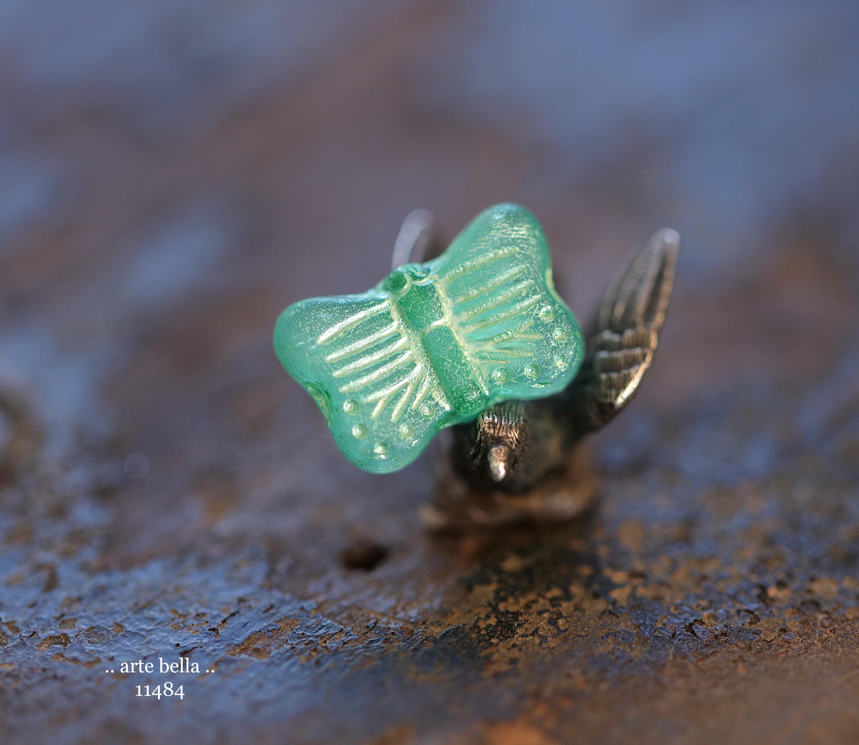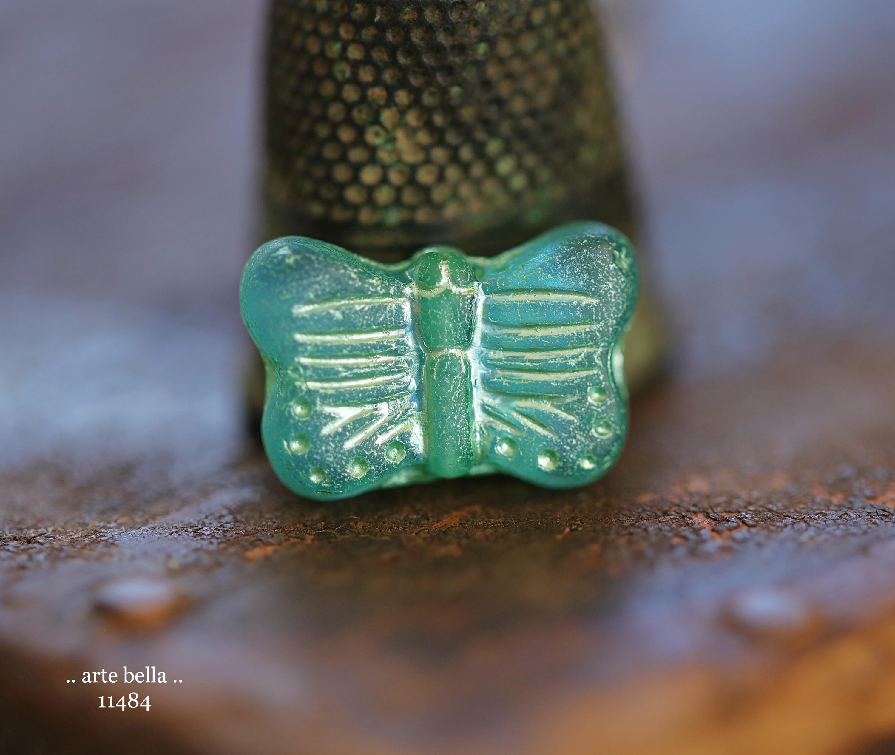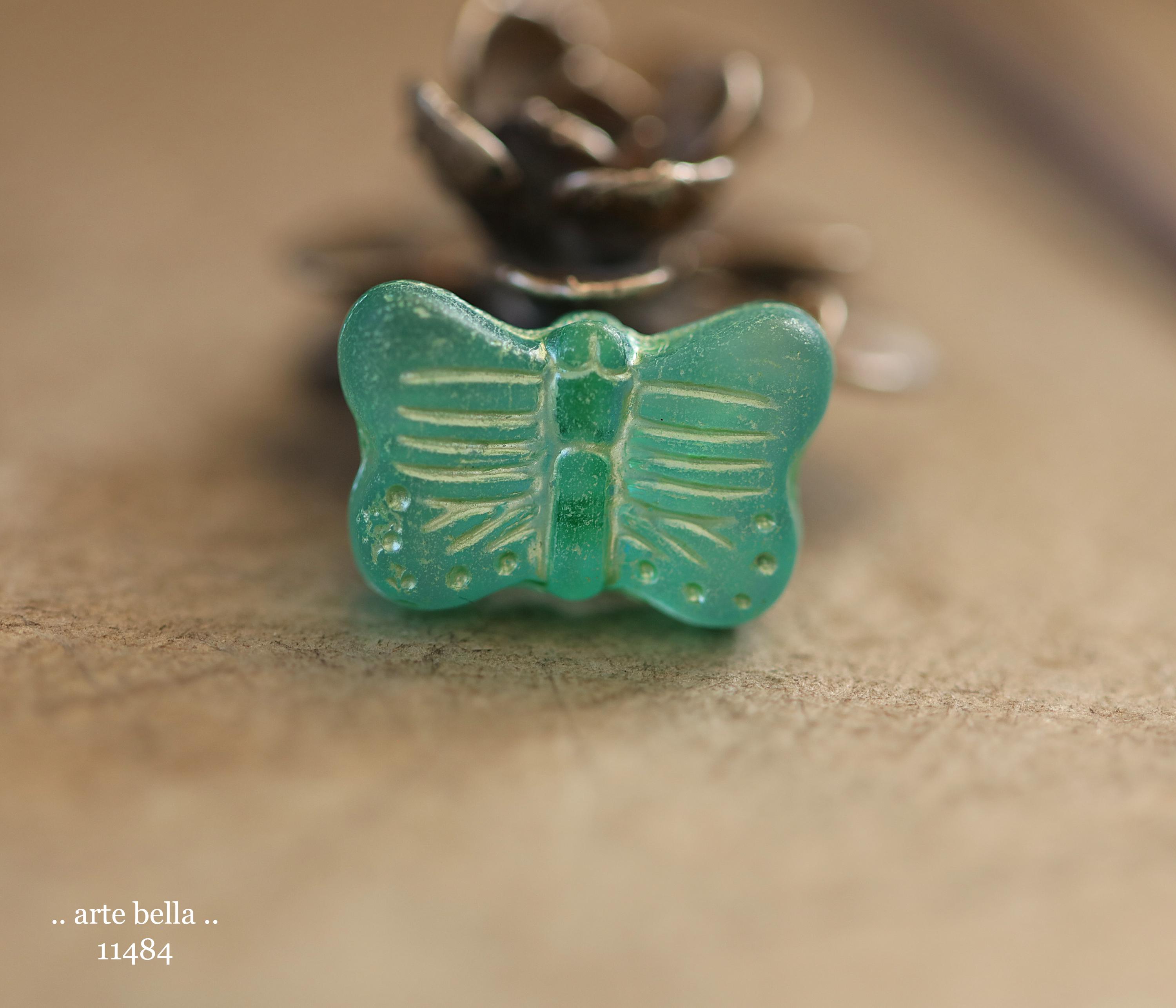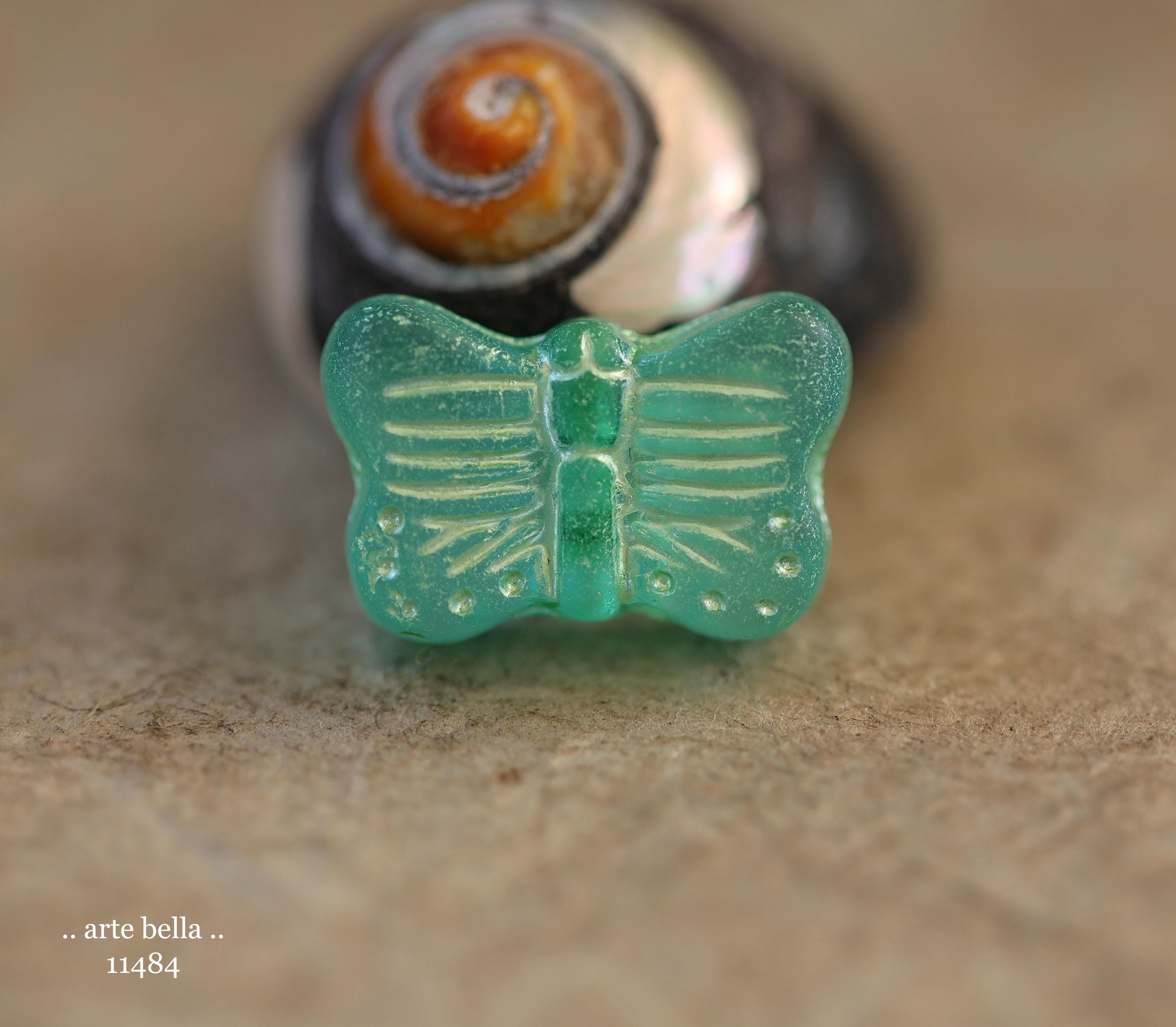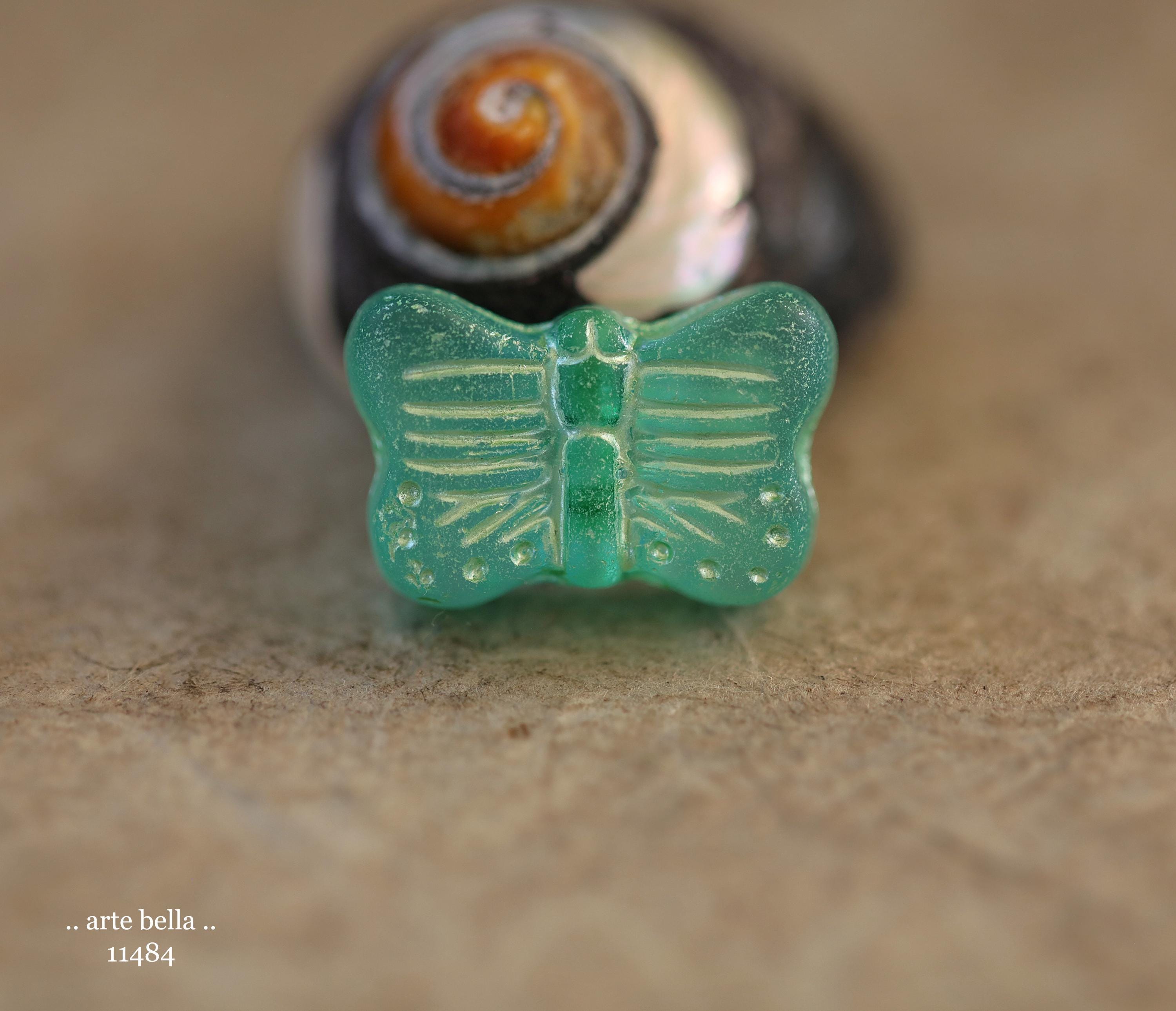 New .. GREEN SWALLOWTAIL FLUTTERS .. 10 Matte Czech Glass Butterfly Beads 11x16mm (11484-st) .. jewelry supplies