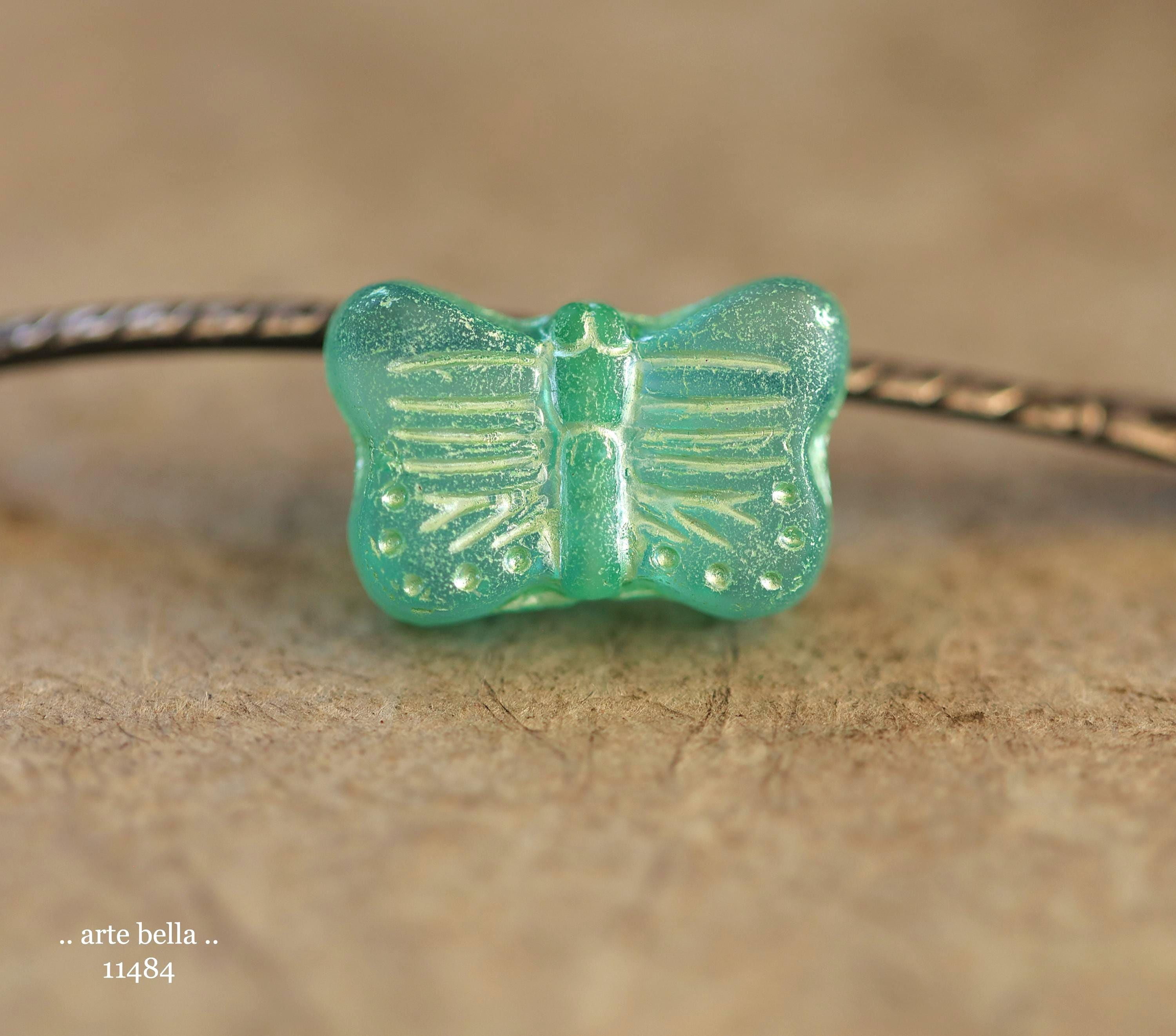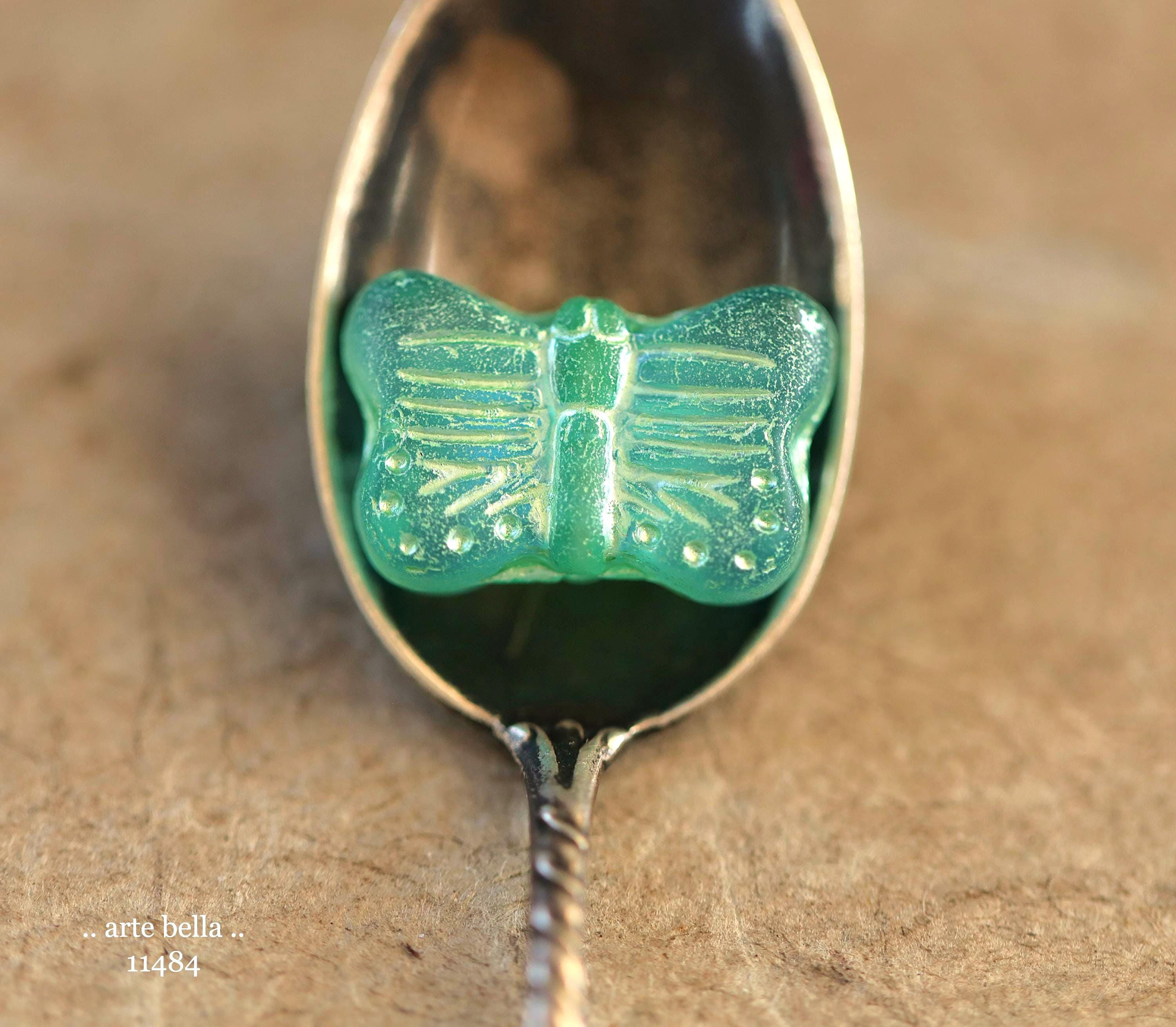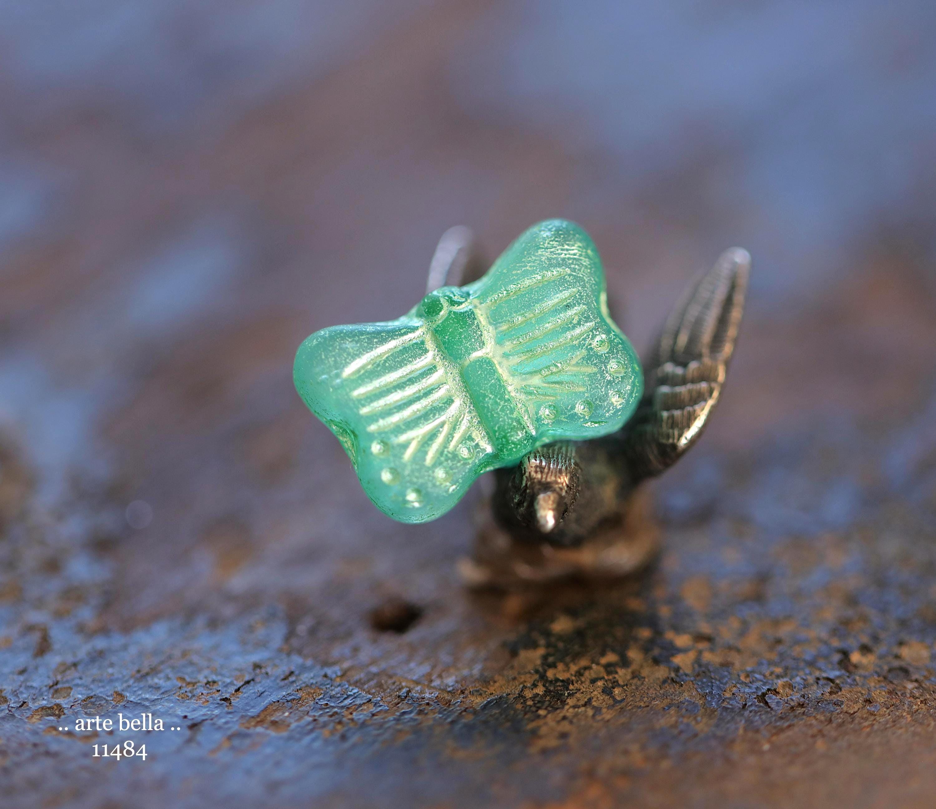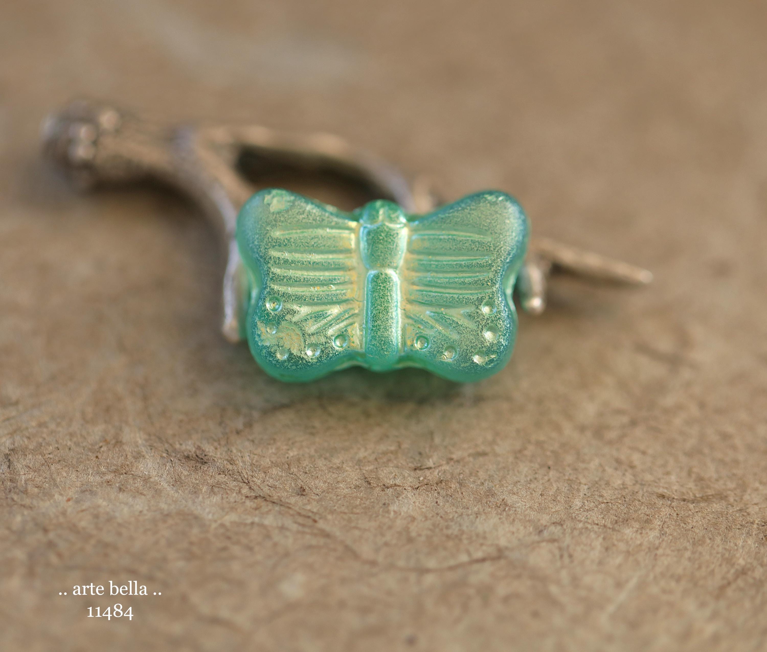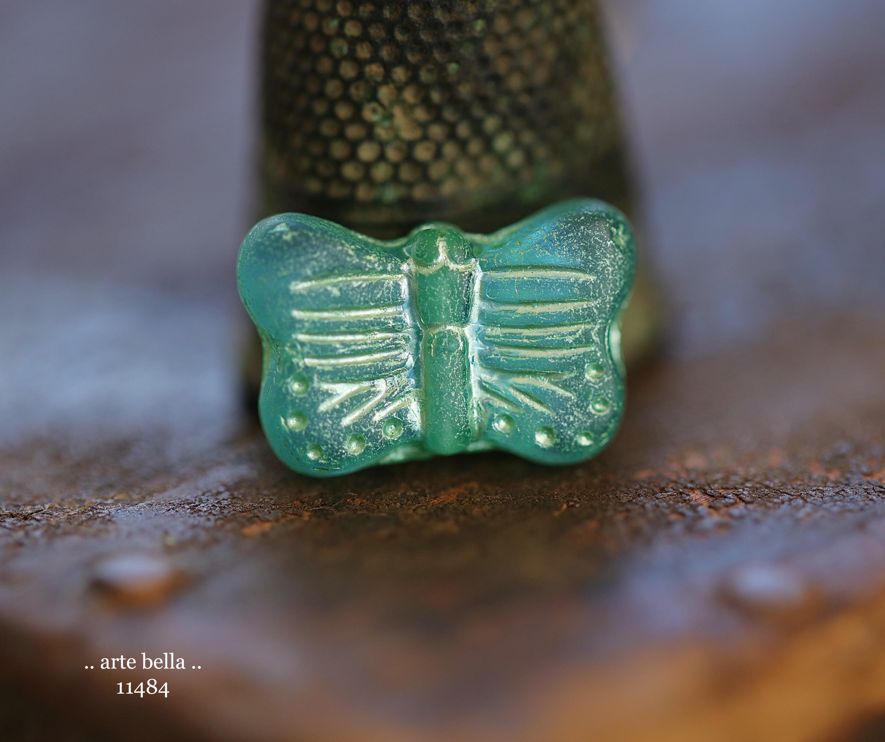 New .. GREEN SWALLOWTAIL FLUTTERS .. 10 Matte Czech Glass Butterfly Beads 11x16mm (11484-st) .. jewelry supplies
