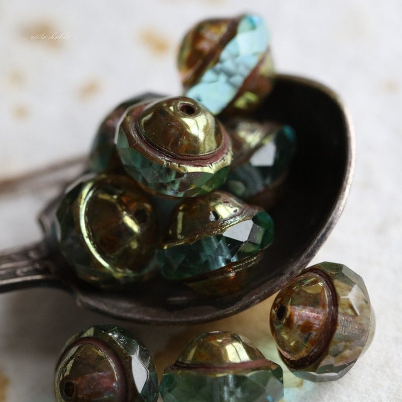 back in stock .. BRONZED AQUA BLISS .. 15 Premium Luster Picasso Czech Glass Saturn Beads 8x10mm (5446-st) .. jewelry supplies