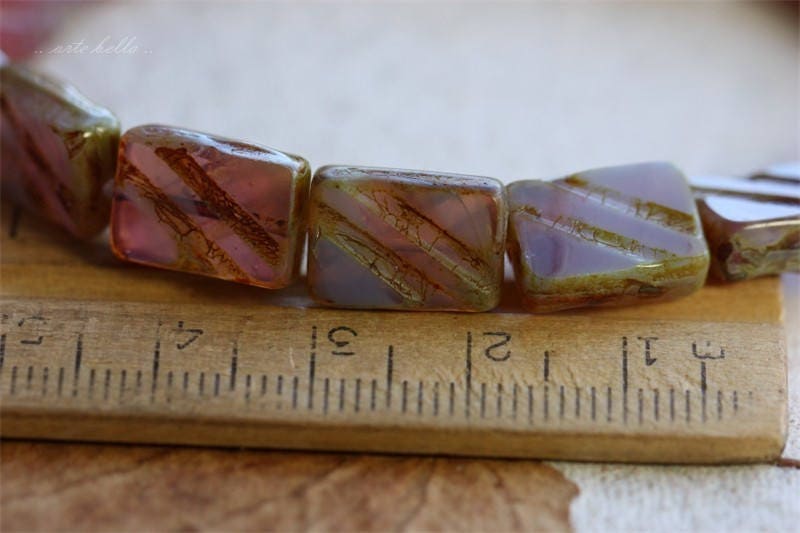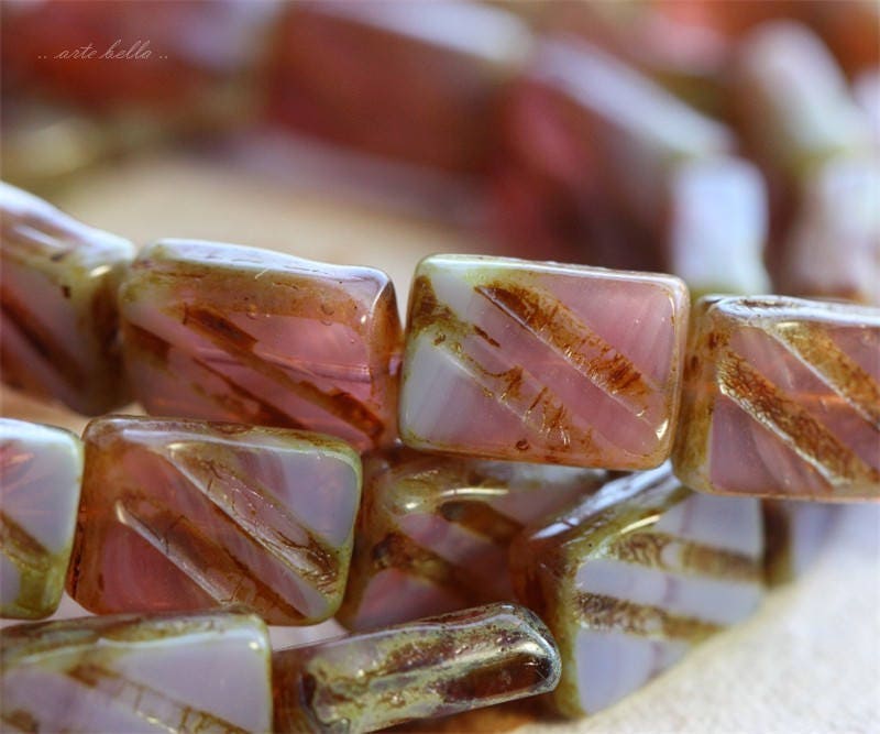 back in stock .. SWEET PEA REX .. 15 Picasso Czech Glass Carved Rectangle Beads 9x13mm (B1055-st) .. jewelry supplies