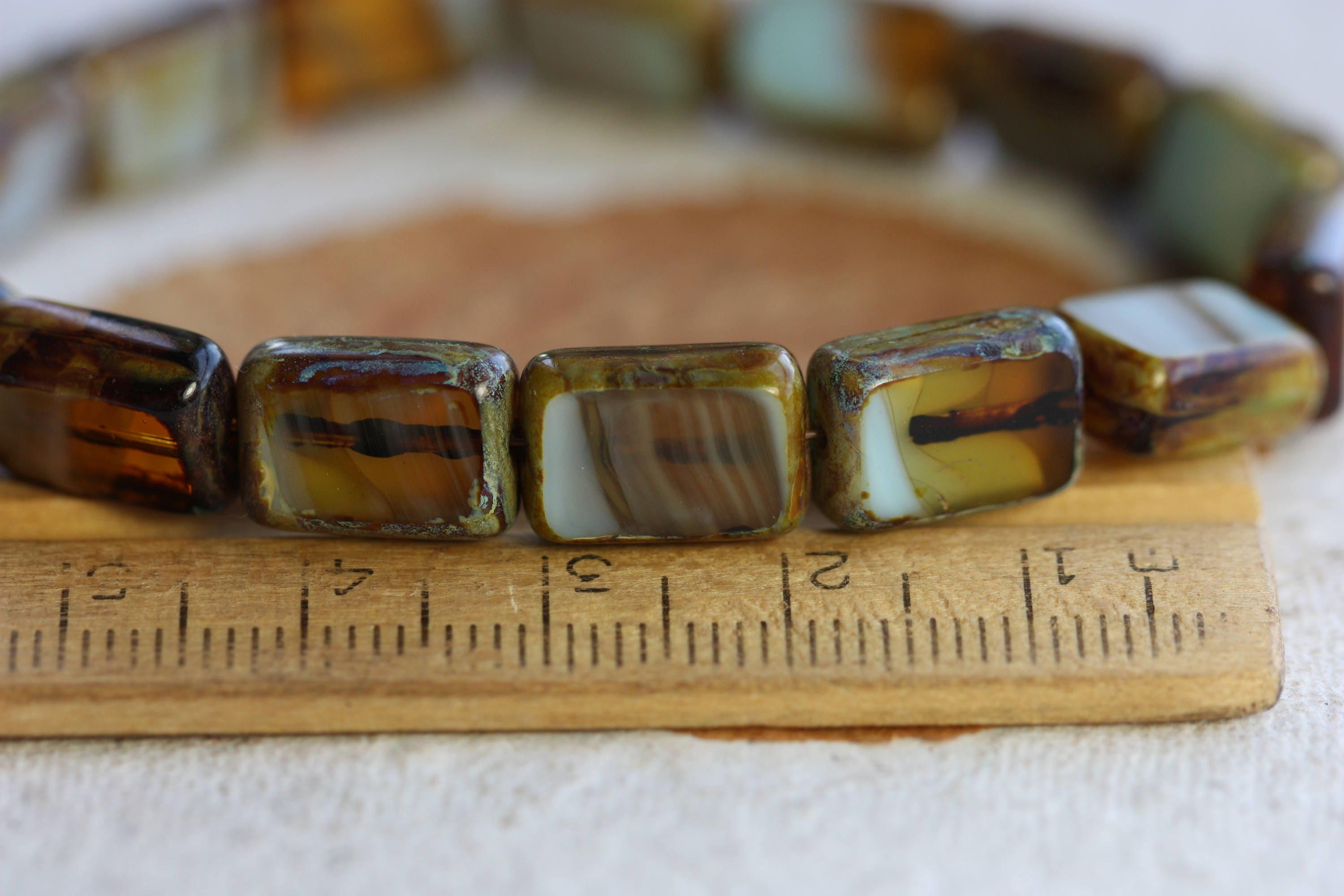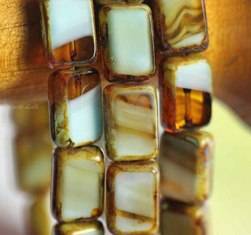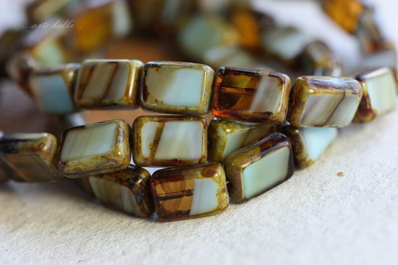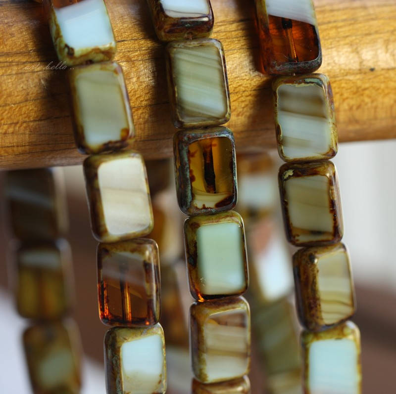 back in stock .. AMBER SKY REX .. 15 Premium Picasso Czech Glass Rectangle Beads 12x8.5mm (B1025-st) .. jewelry supplies