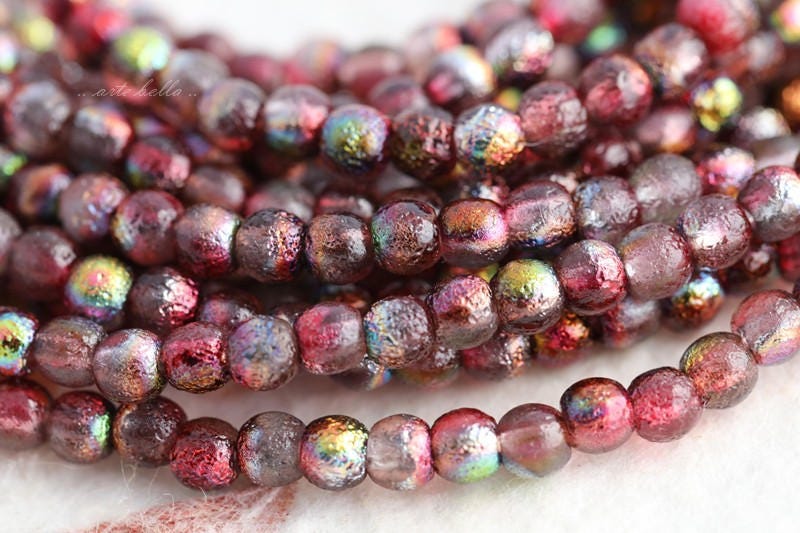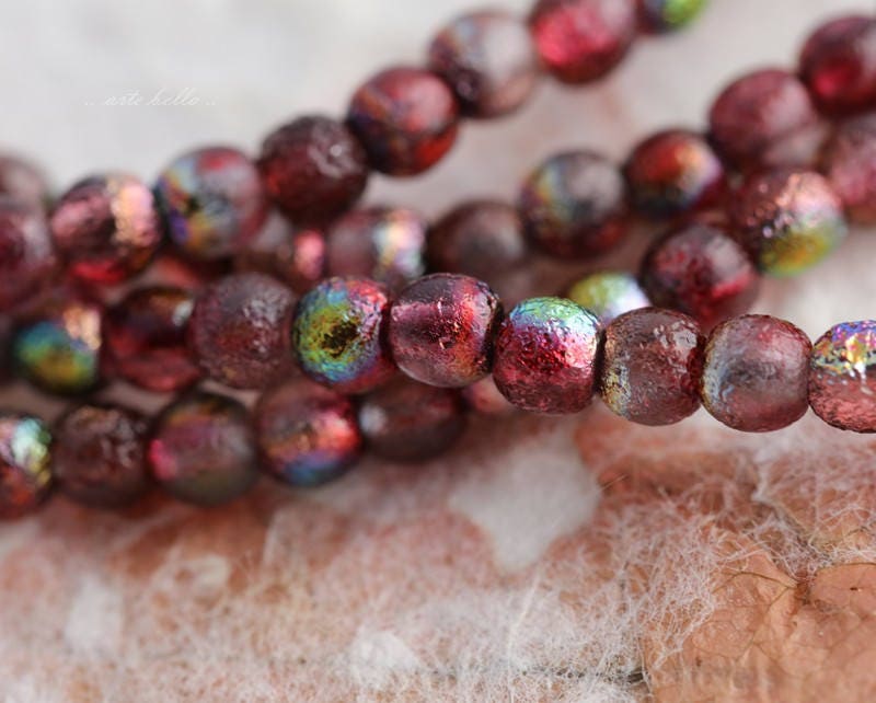 back in stock .. RASPBERRY DRUKS 4mm .. 50 Premium Etched Czech Glass Druk Beads (5849-st) .. jewelry supplies