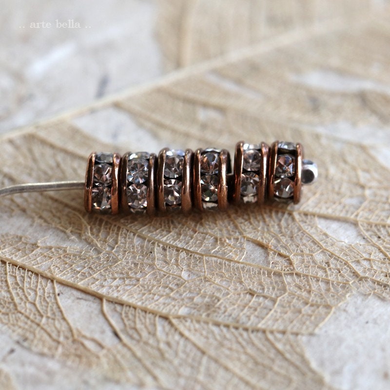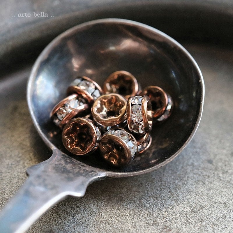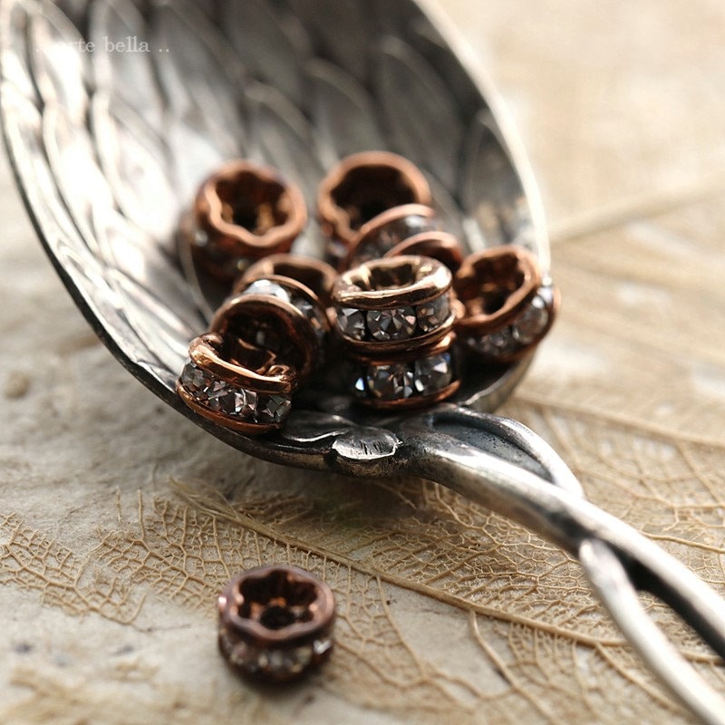 back in stock .. 10 Czech Preciosa 4.5mm Antique Copper Crystal Rhinestone Rondelles (rhi-02) .. jewelry supplies