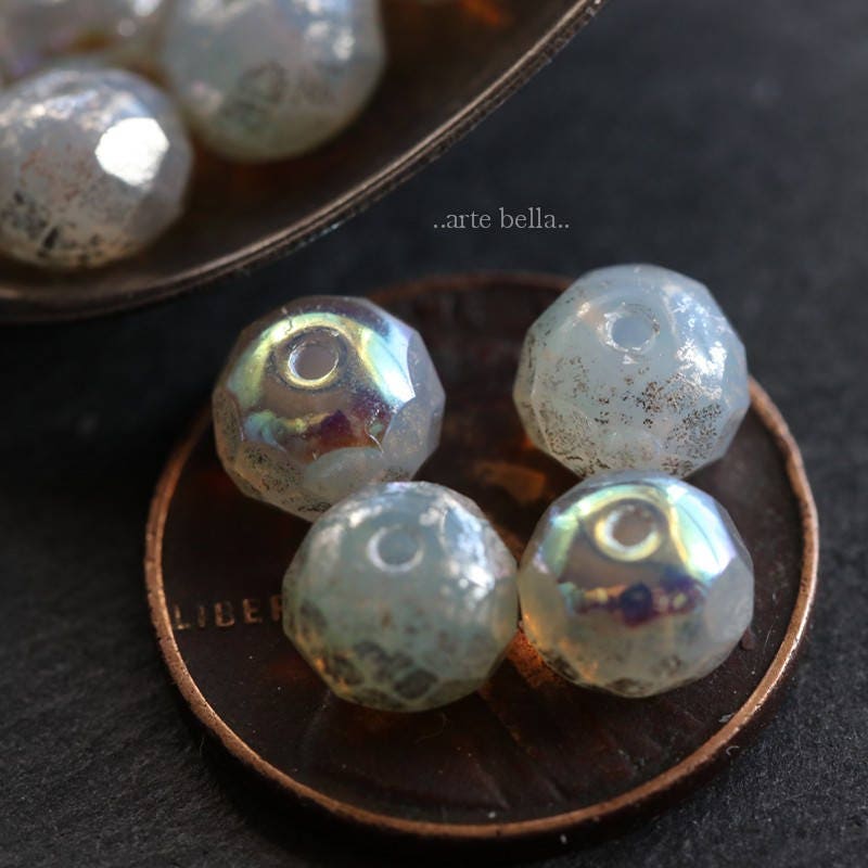 back in stock .. MYSTIC OPAL PEBBLES .. 25 Luster Picasso Czech Glass Faceted Rondelle Beads 5x7mm (6146-st) .. jewelry supplies