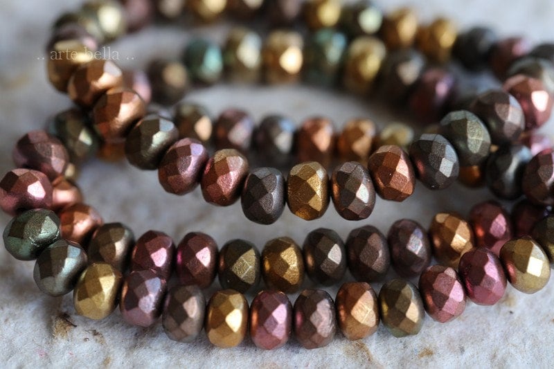 back in stock .. METALLIC MIX BABIES.. 30 Premium Matte Metallic Czech Glass Rondelle Bead Mix 3x5mm (6207-st) .. jewelry supplies