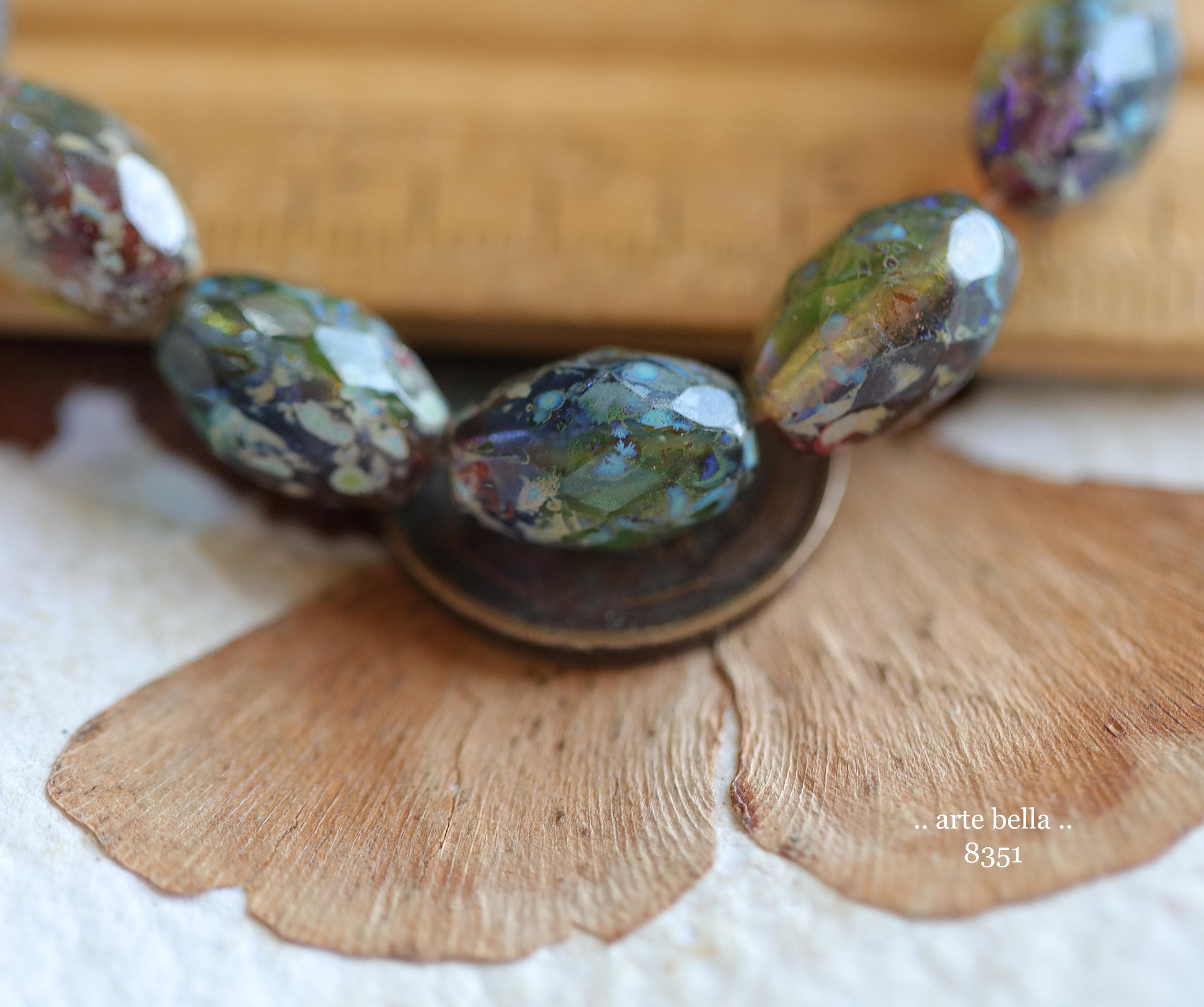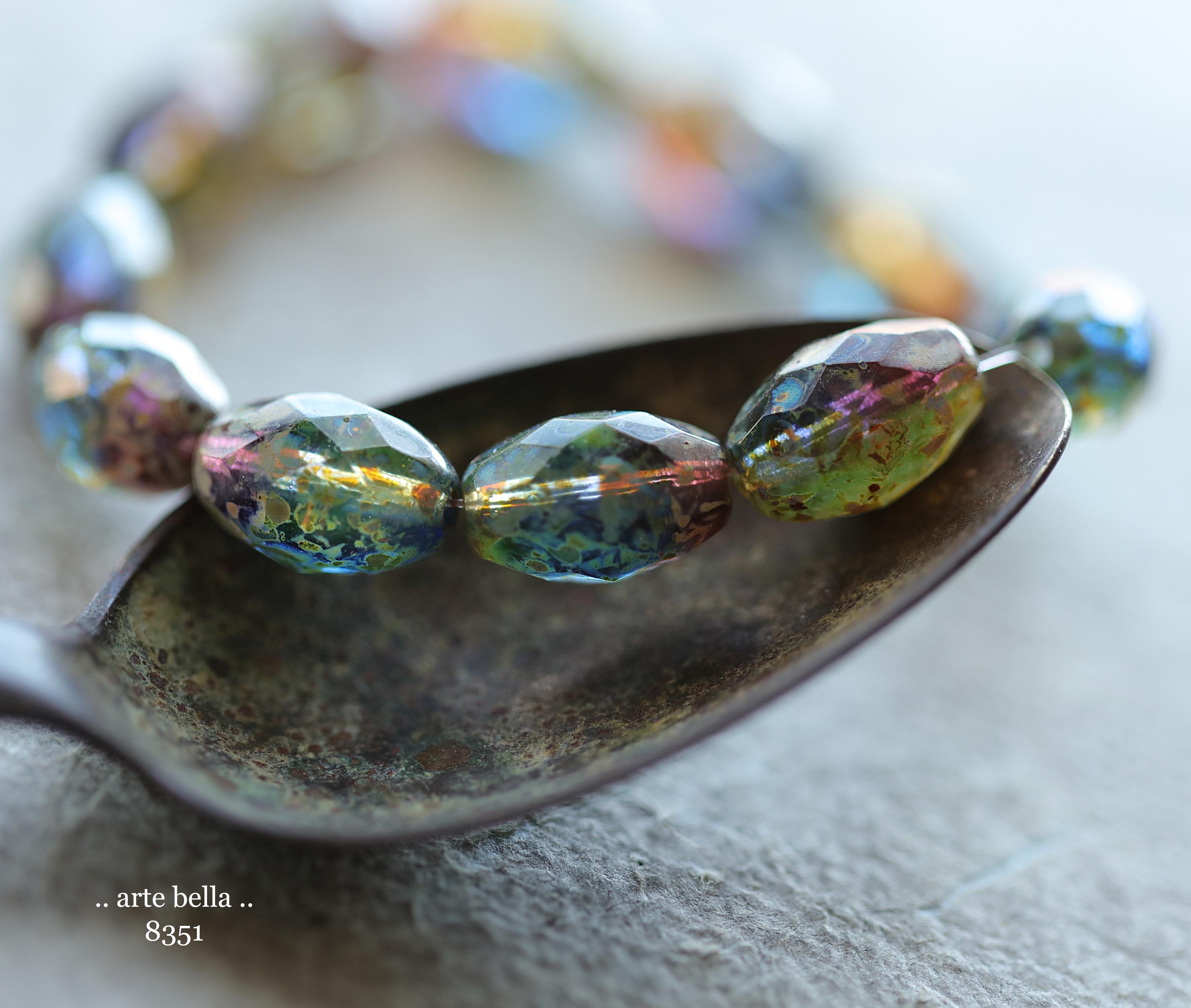 back in stock .. EARTHY ROYALTY OLIVES .. 12 Premium Picasso Czech Glass Faceted Oval Beads 12x8mm (8351-st) .. jewelry supplies