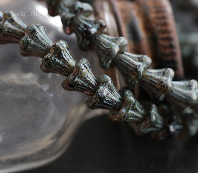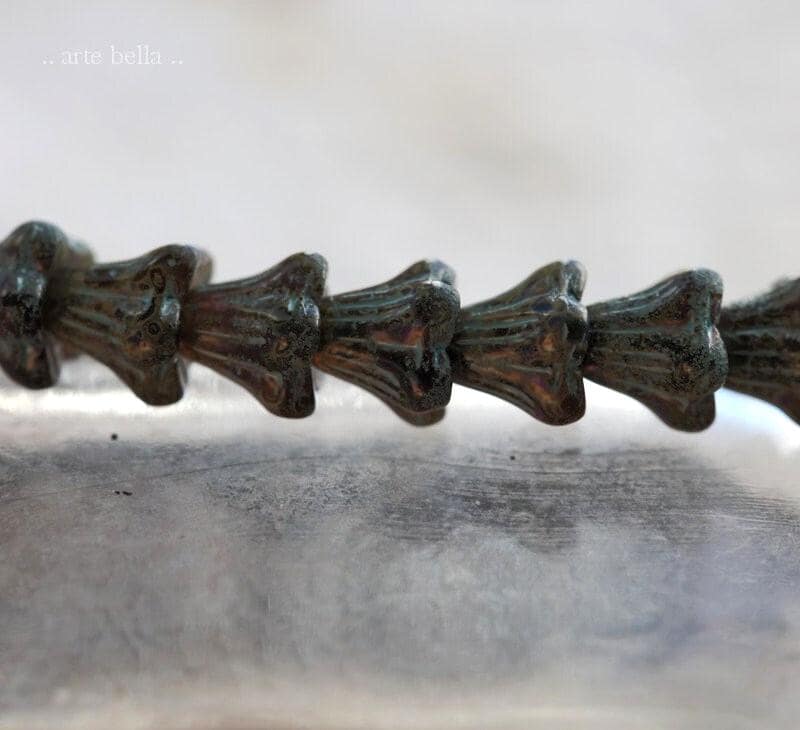 back in stock .. BLACKBERRY BLUE BELLS .. 30 Premium Picasso Czech Glass Baby Bell Flower Bead 5x6mm (6874-st) .. jewelry supplies