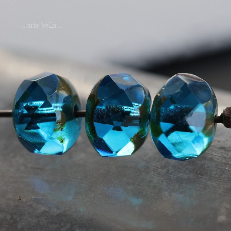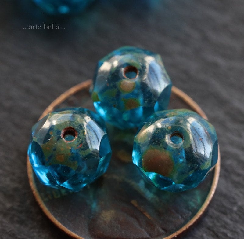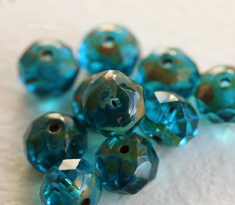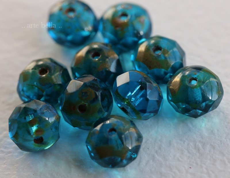 back in stock .. AQUA BLUE POND .. 10 Premium Picasso Czech Glass Rondelle Beads 6x8mm (6844-10) .. jewelry supplies