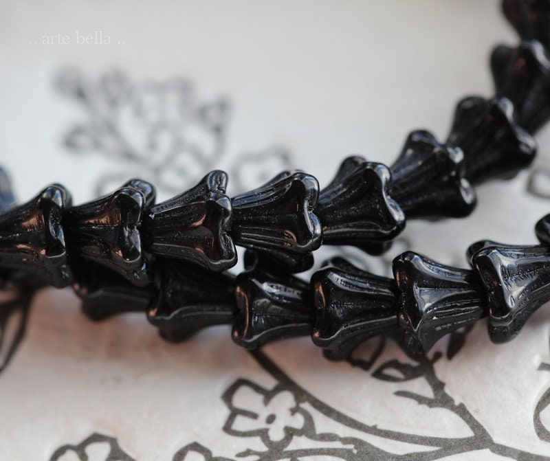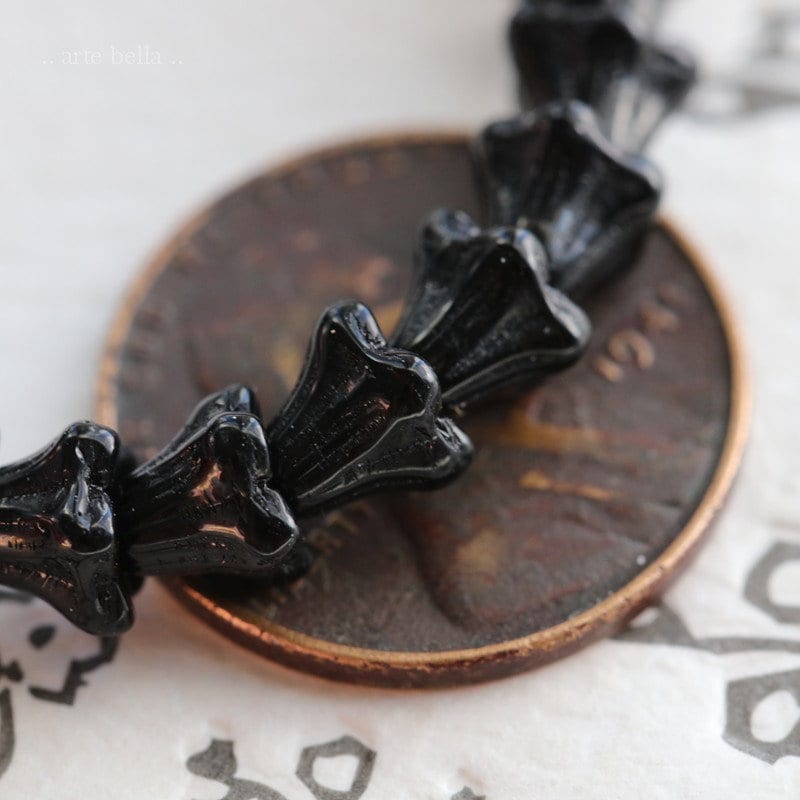 back in stock .. SIMPLY BLACK BELLS .. 30 Premium Czech Glass Baby Bell Flower Bead 5x6mm (6869-st) .. jewelry supplies