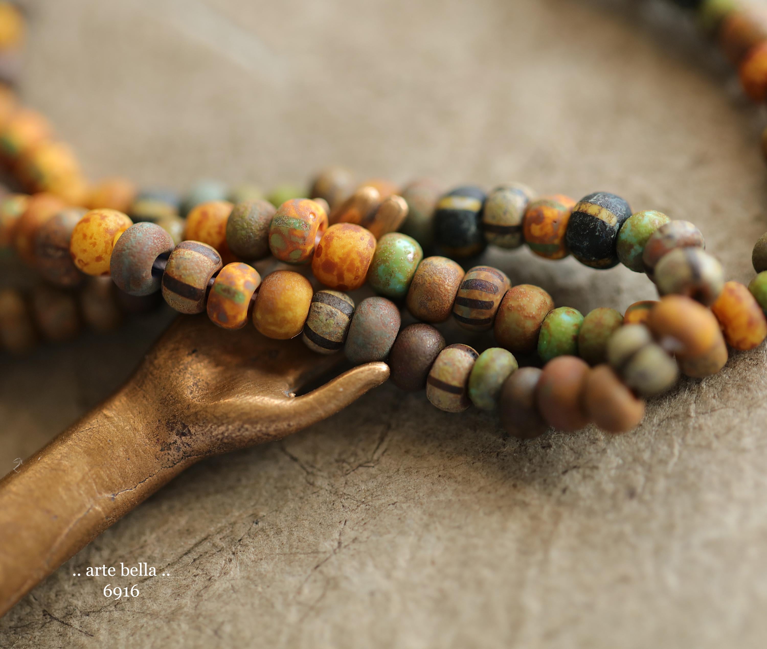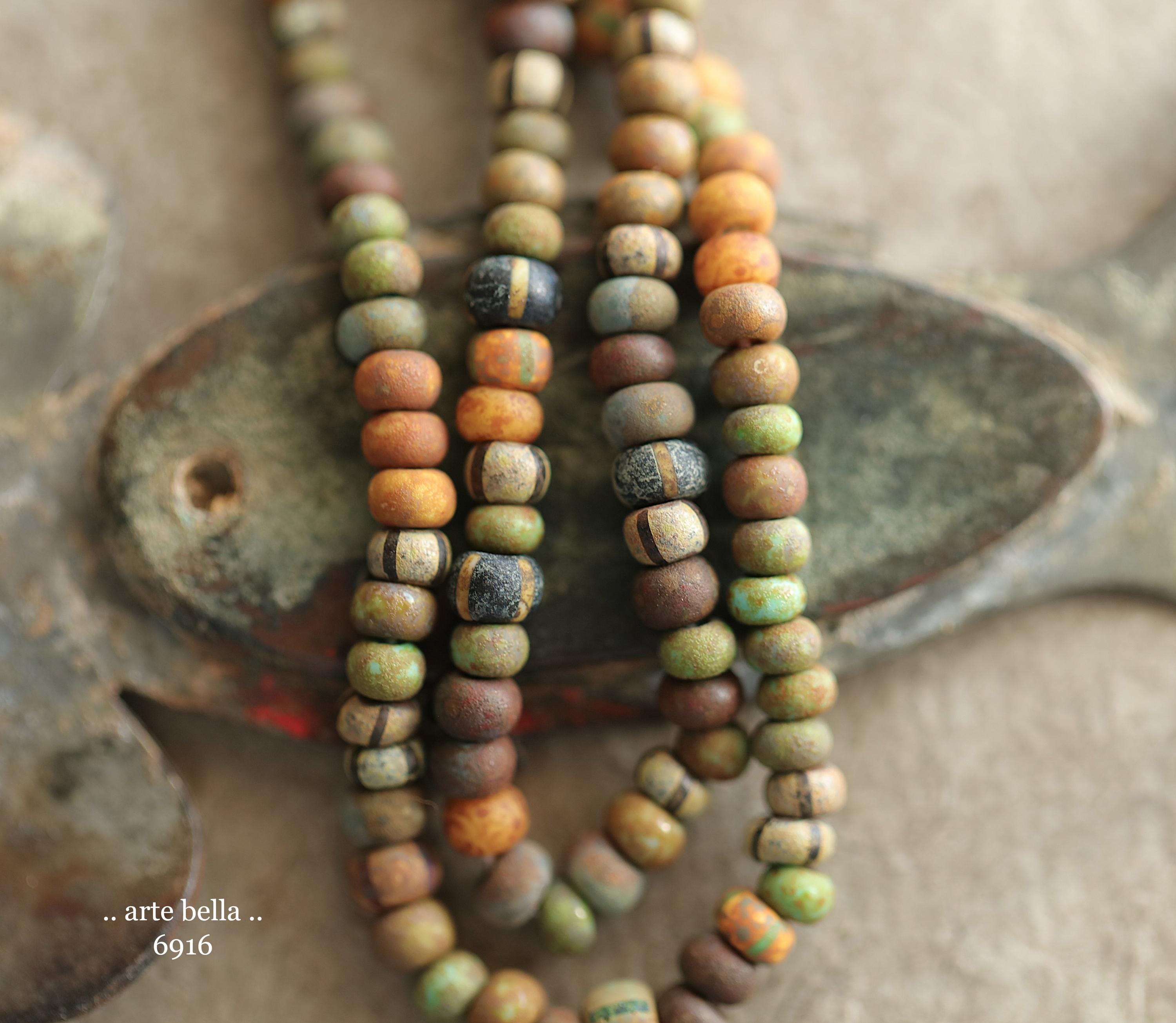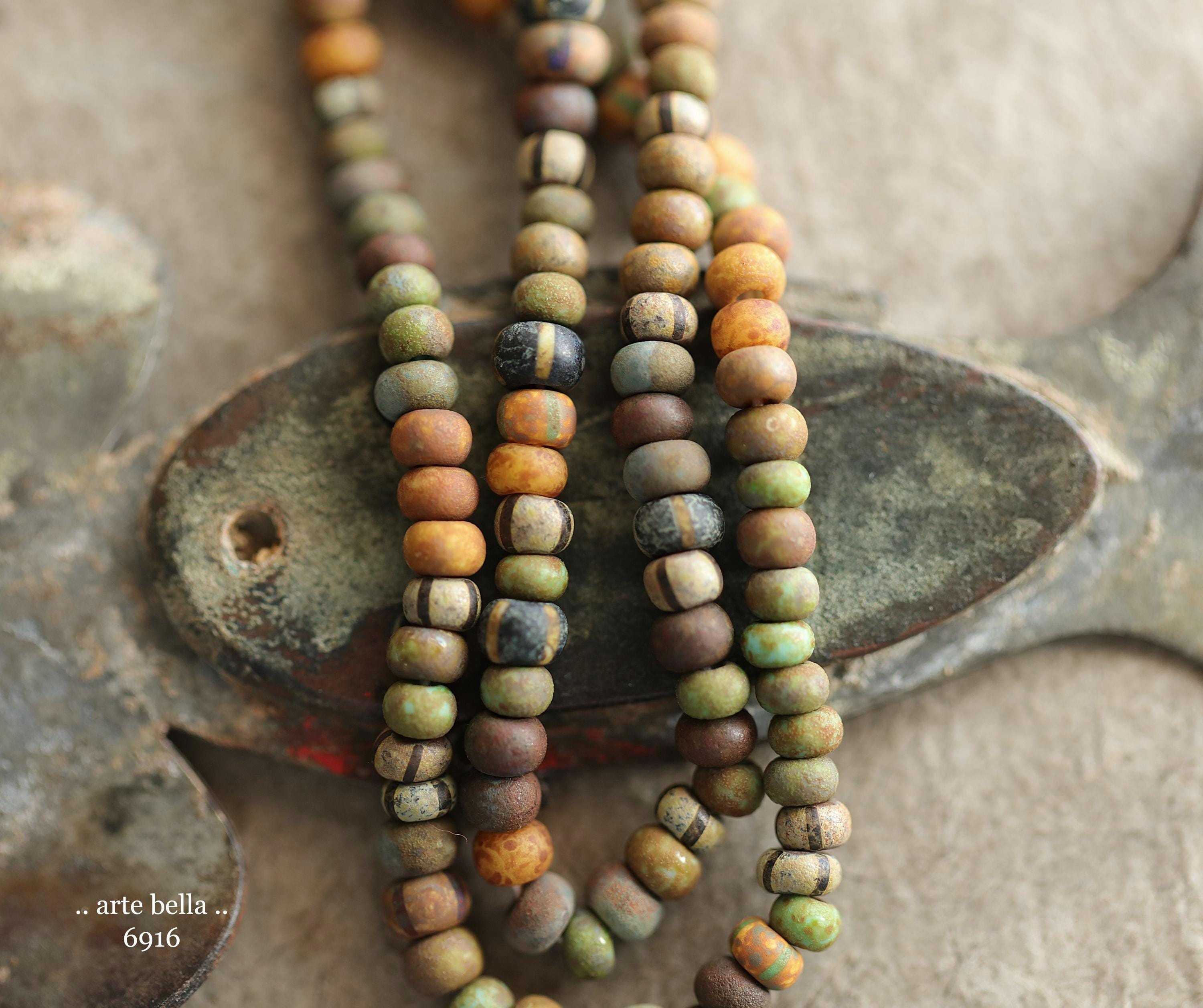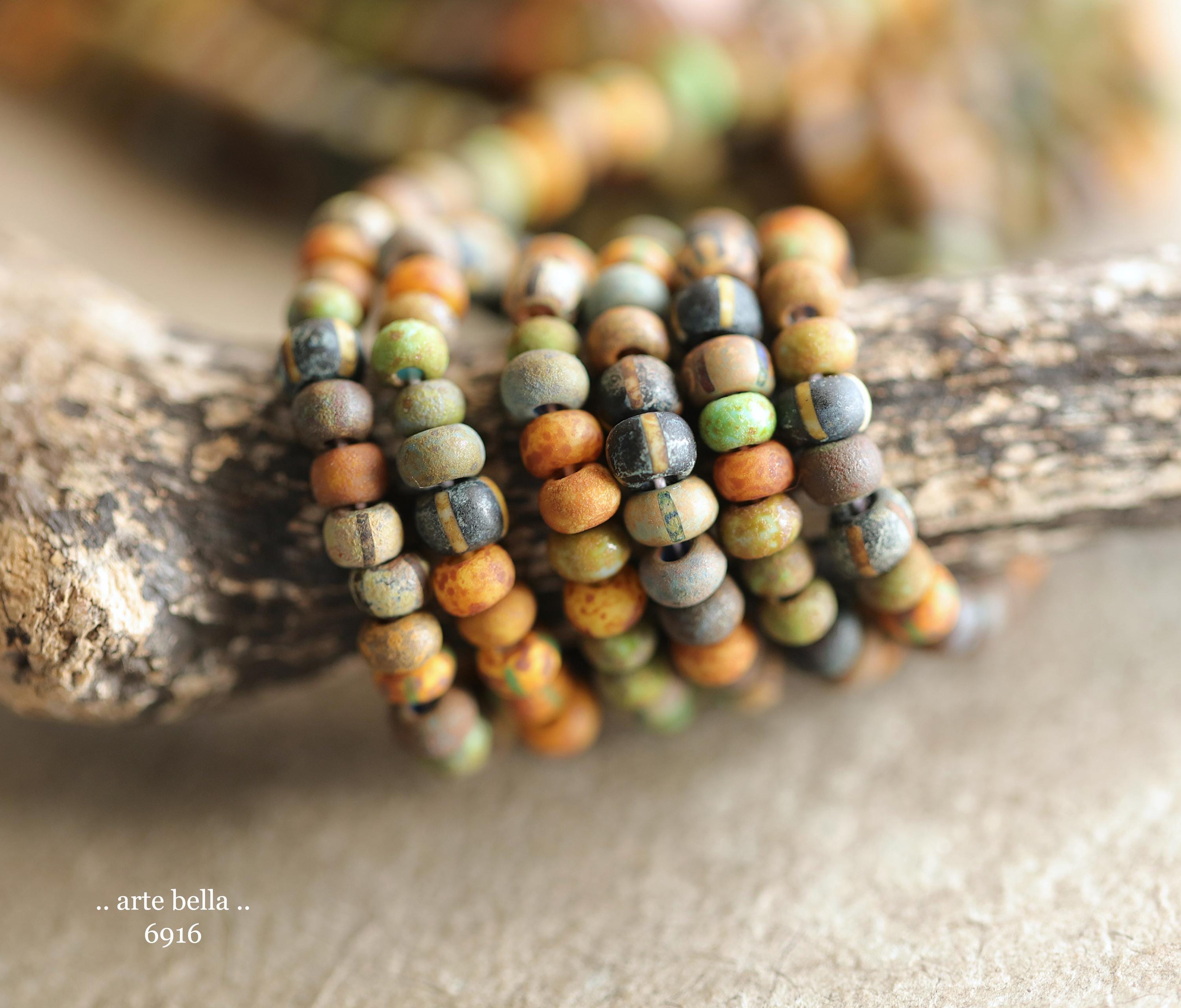 back in stock .. AGED DESERT SEEDS .. 20" Premium Matte Picasso Aged Stripe Czech Glass Seed Bead Mix Size 6/0 3x4mm (6916-st)
