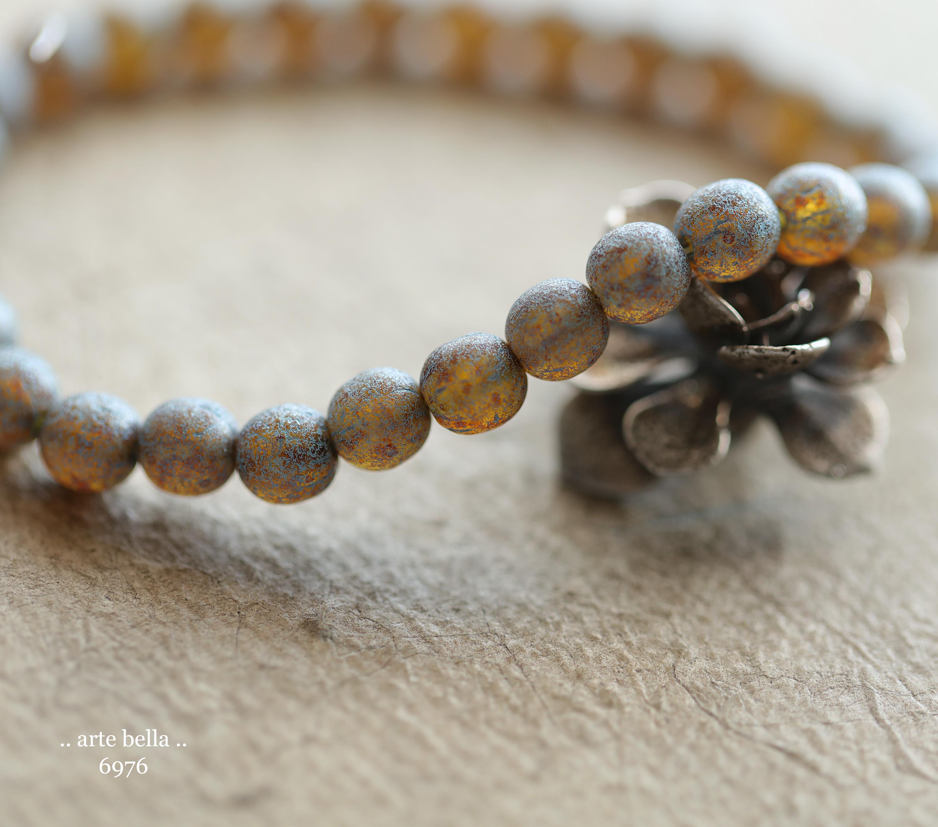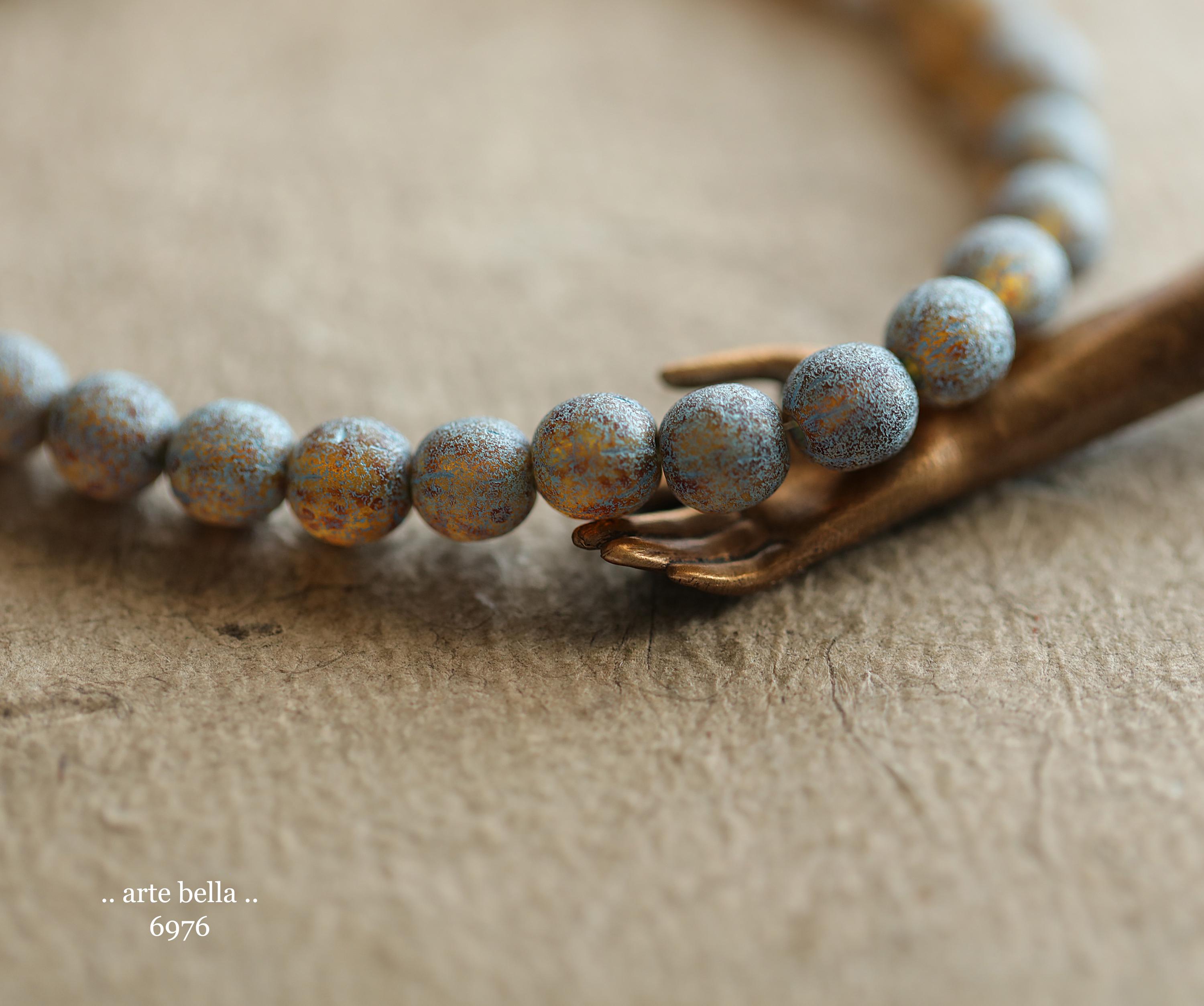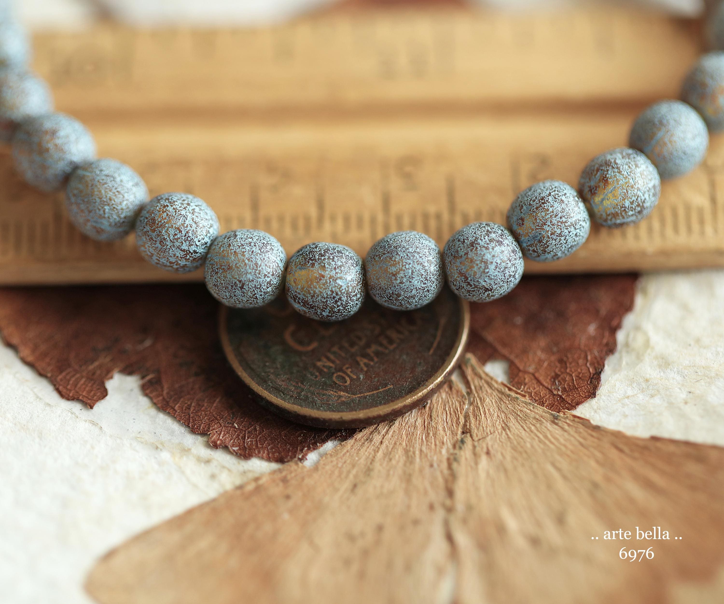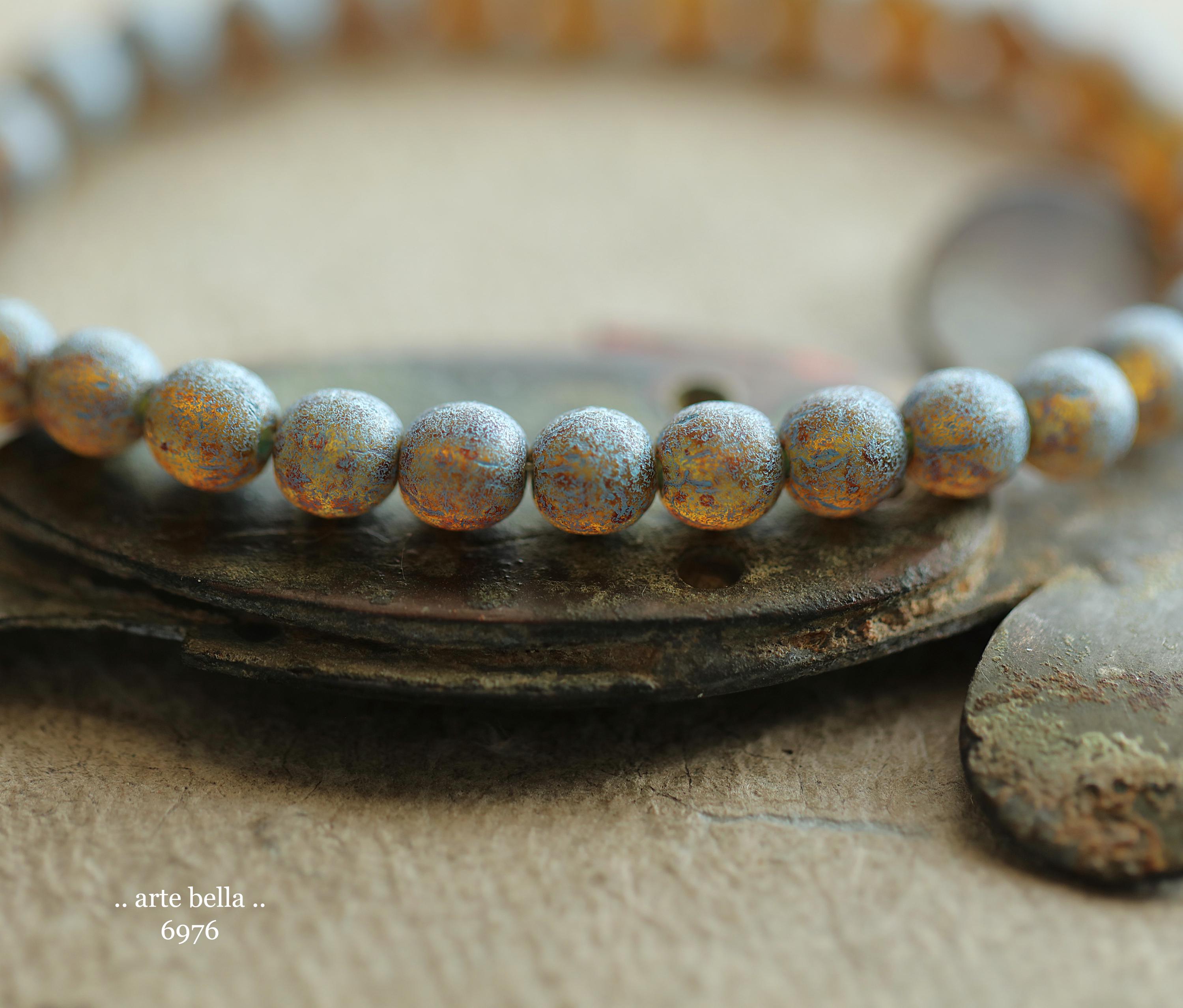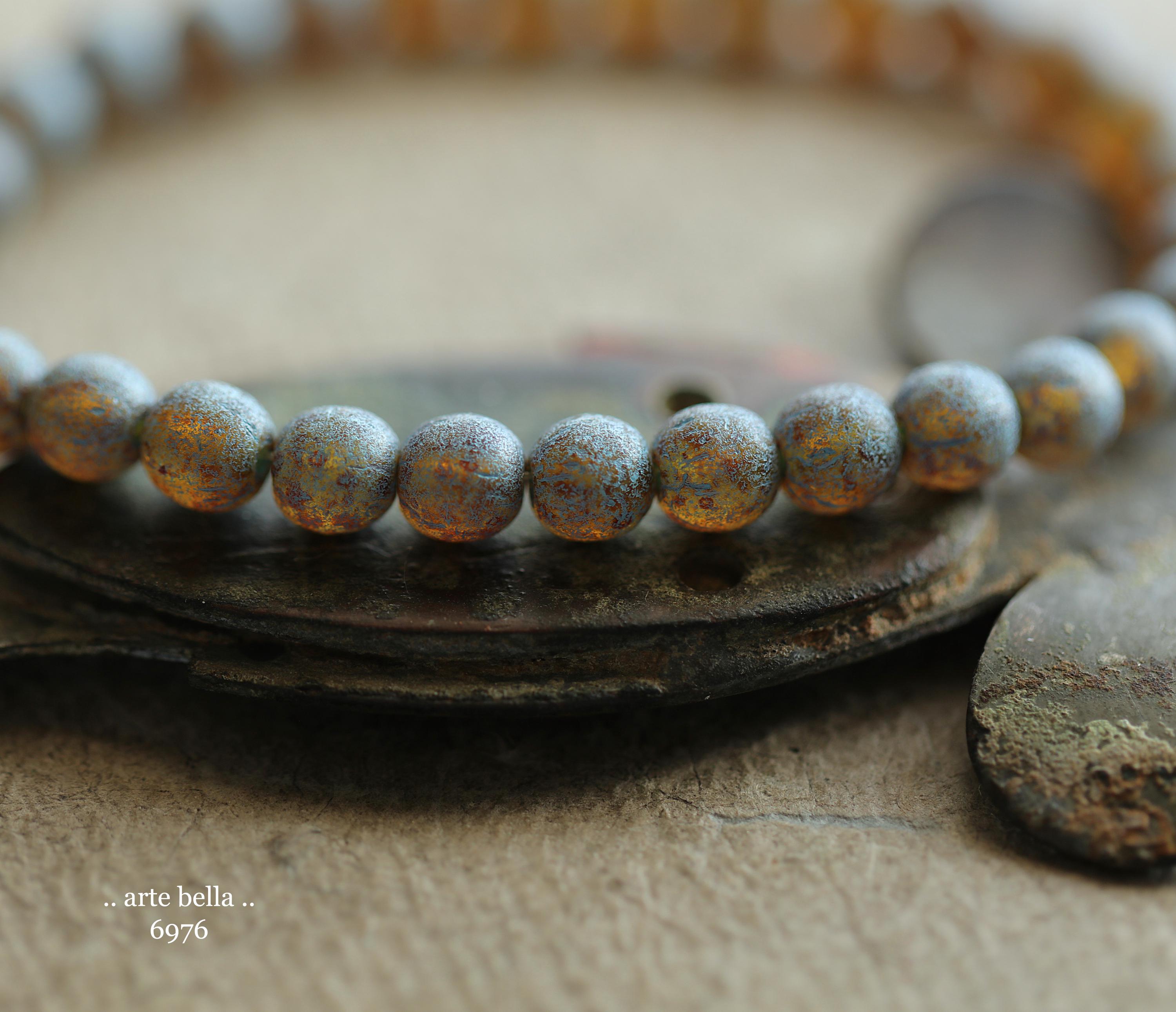 back in stock .. BLUE TOASTED ALMONDS .. 30 Premium Picasso Czech Etched Glass Druk Beads 6mm (6976-st) .. jewelry making supplies