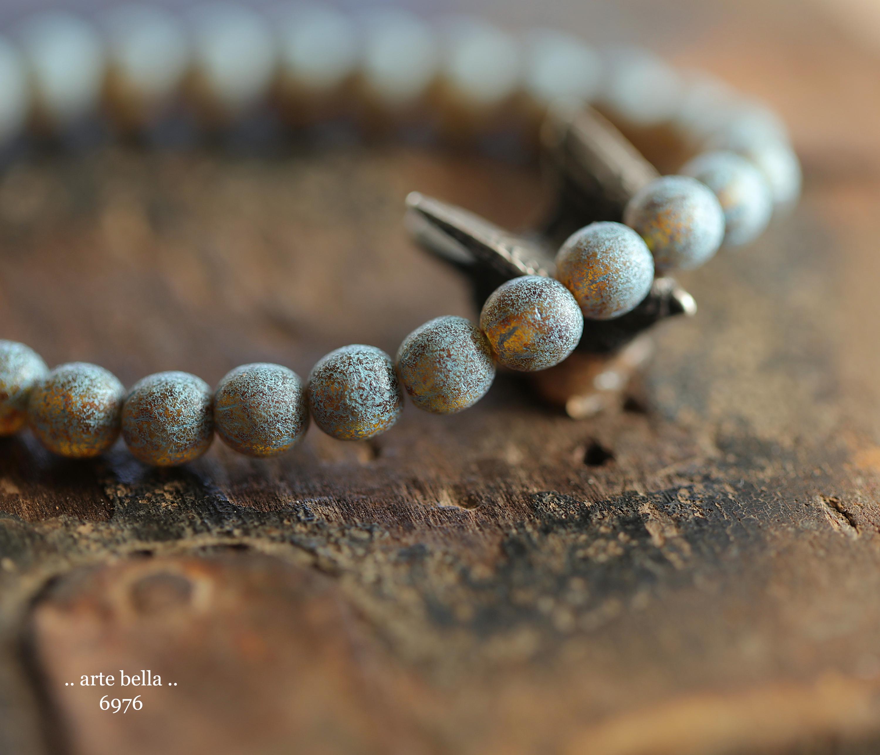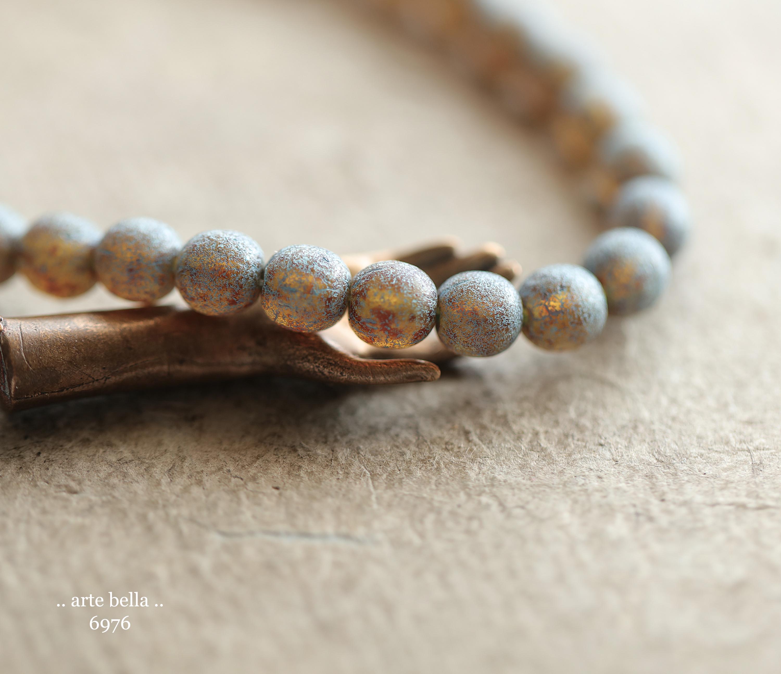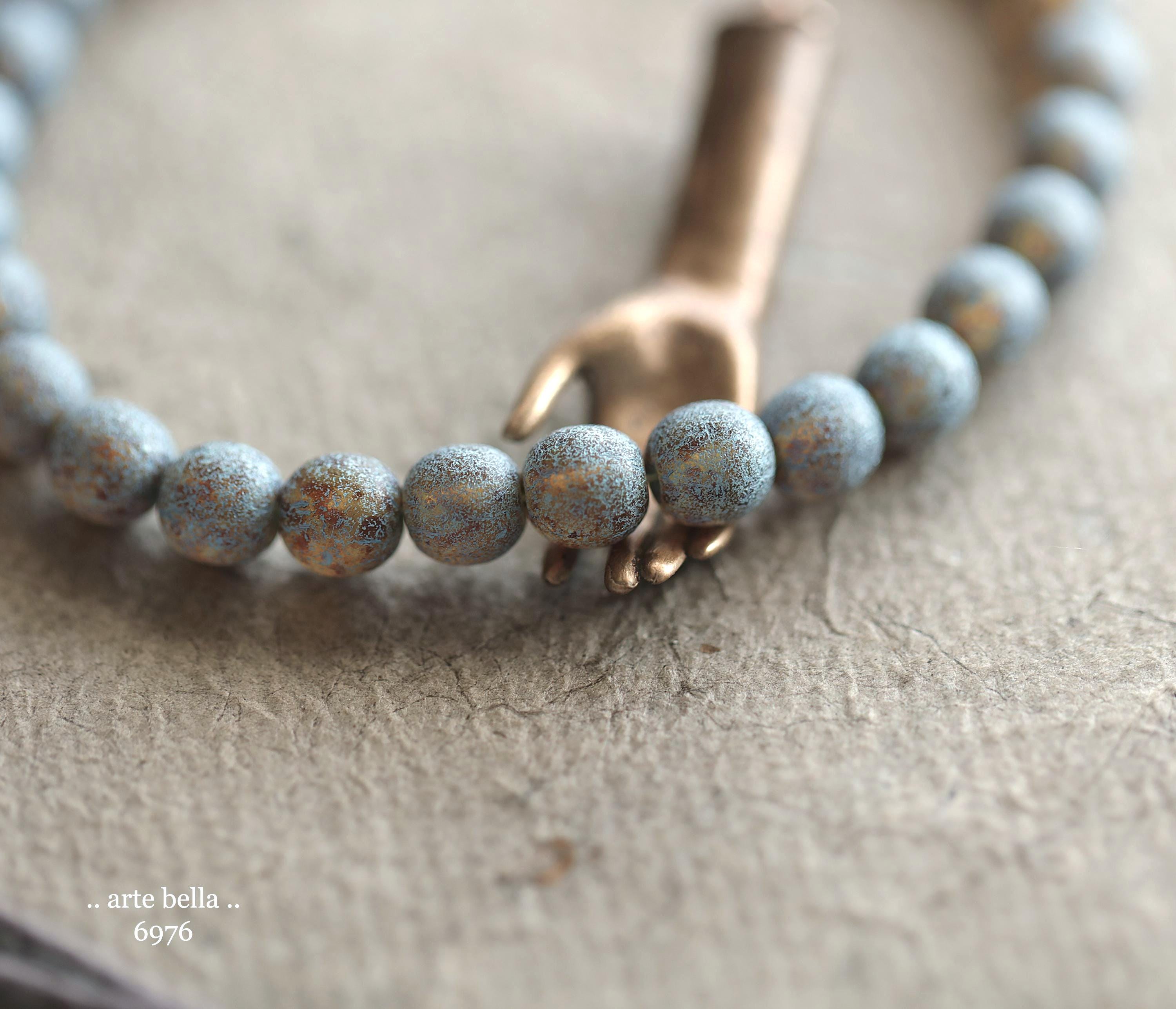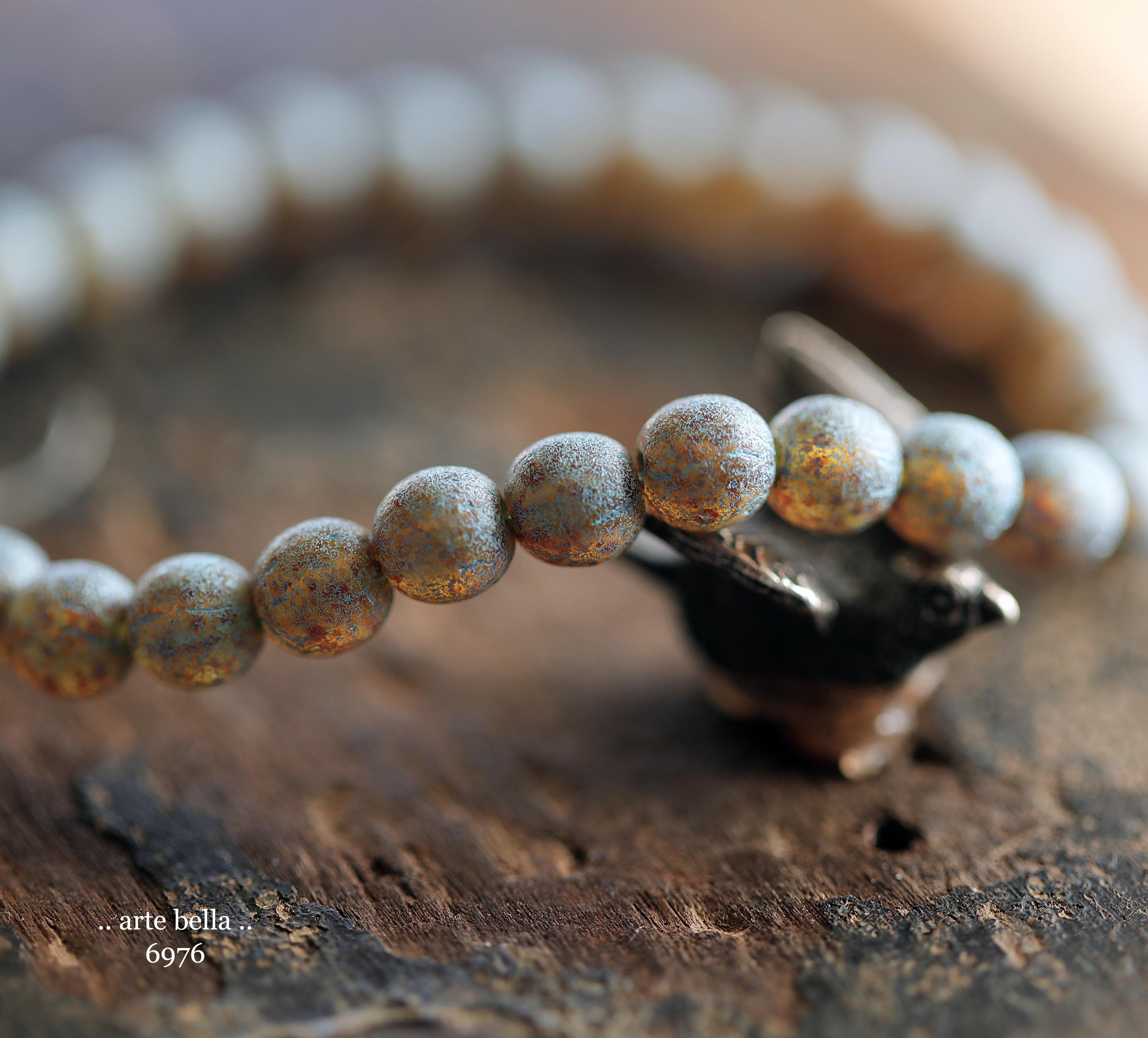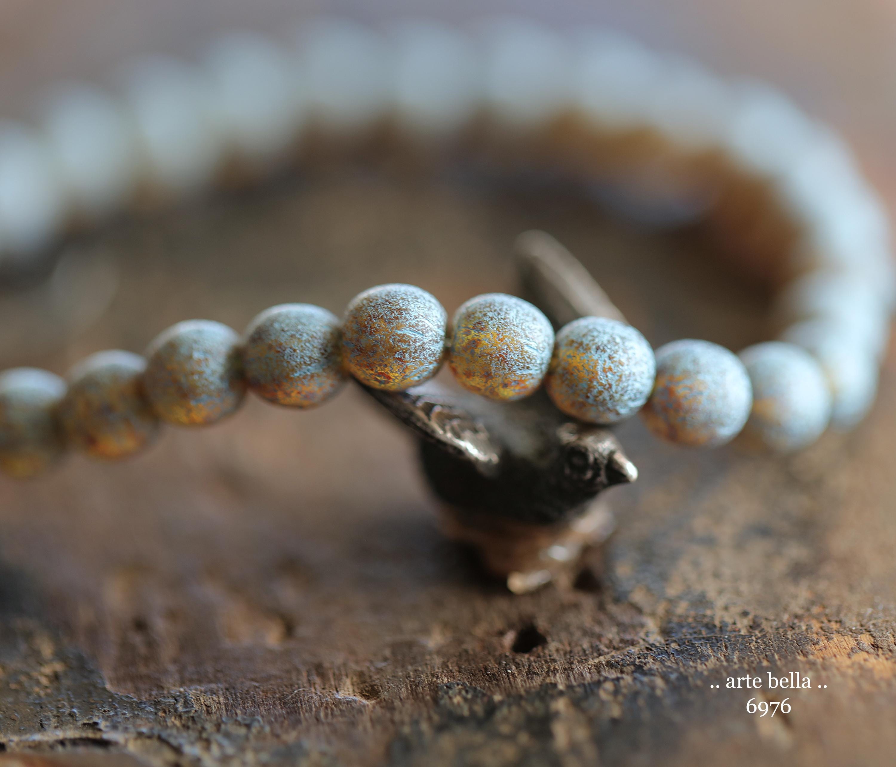 back in stock .. BLUE TOASTED ALMONDS .. 30 Premium Picasso Czech Etched Glass Druk Beads 6mm (6976-st) .. jewelry making supplies
