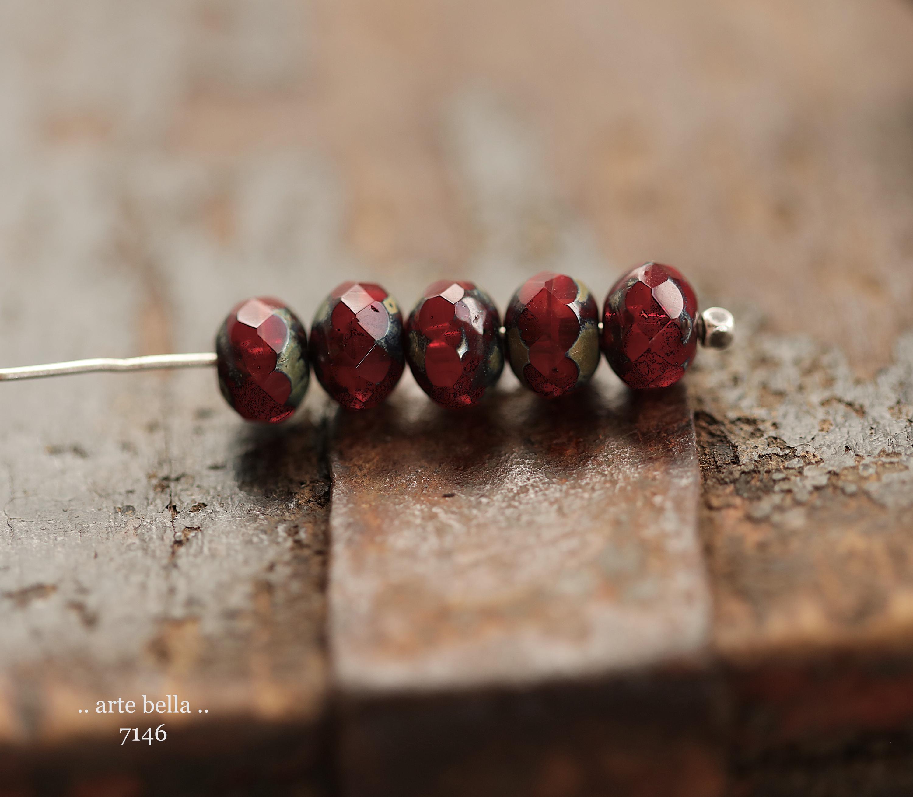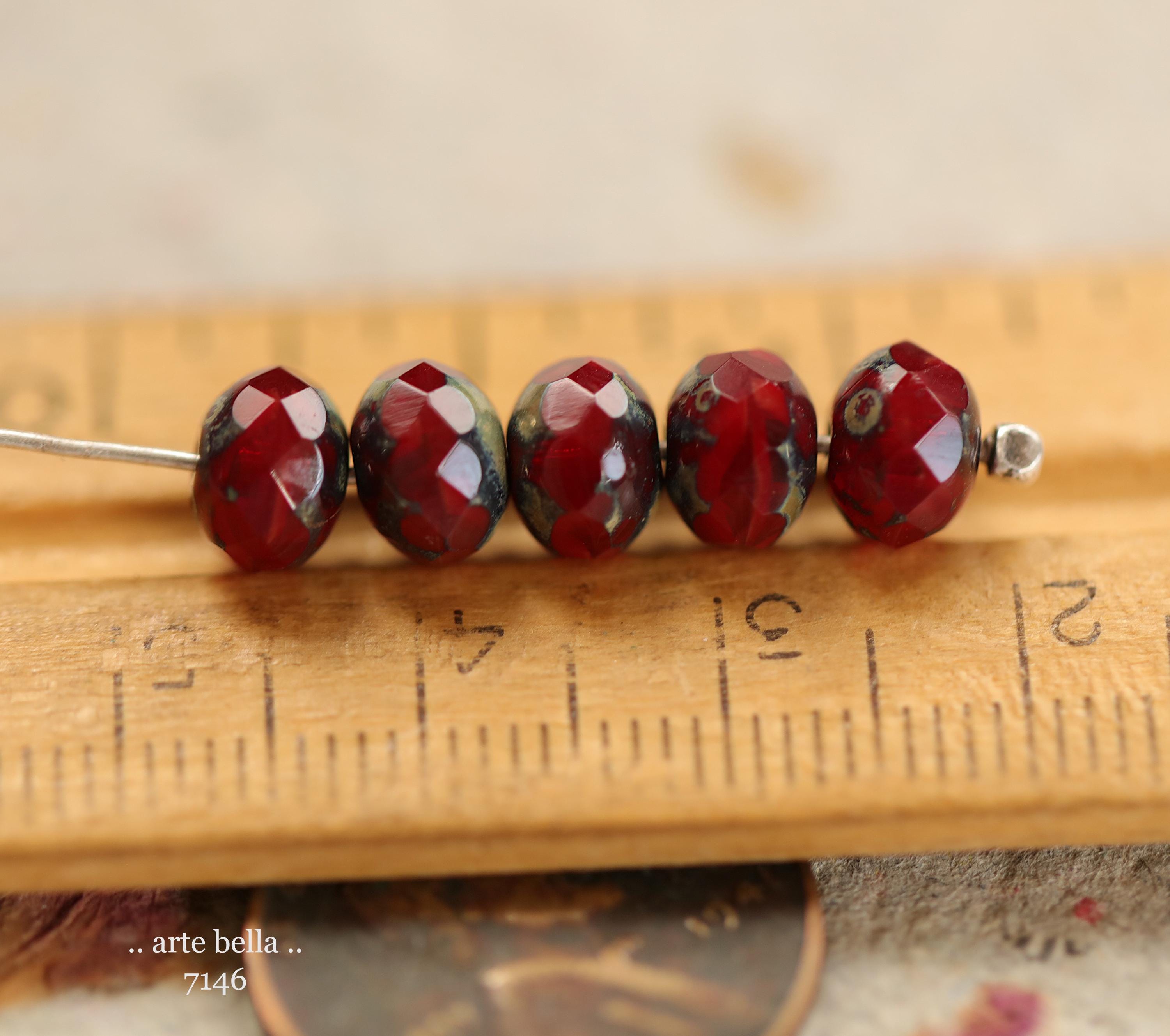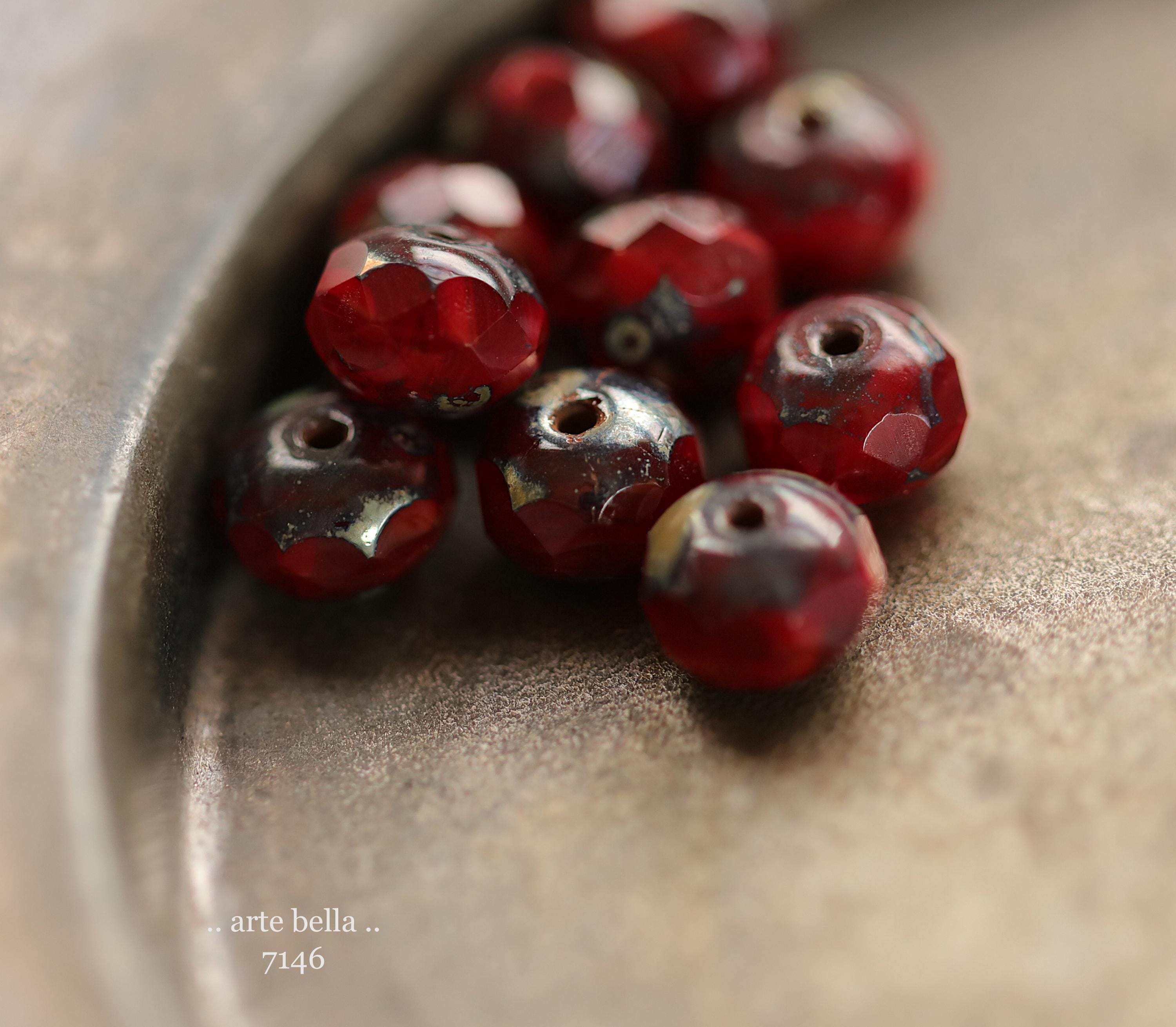 premium glass beads .. RED HOT POPS .. 25 Picasso Czech Glass Faceted Rondelle Beads 5x7mm (7146-25) .. jewelry supplies
