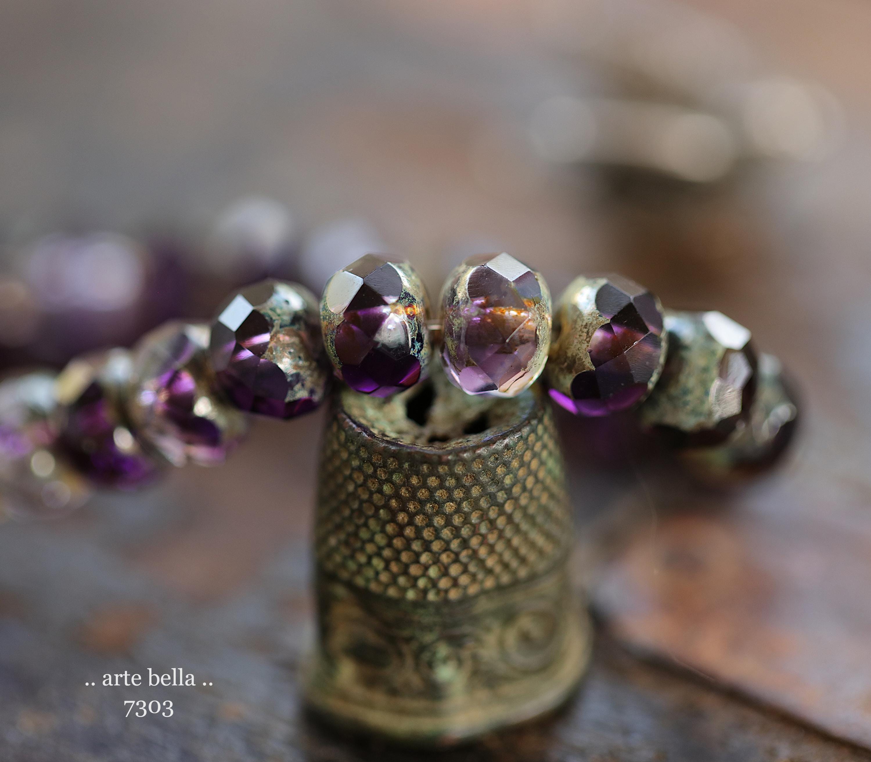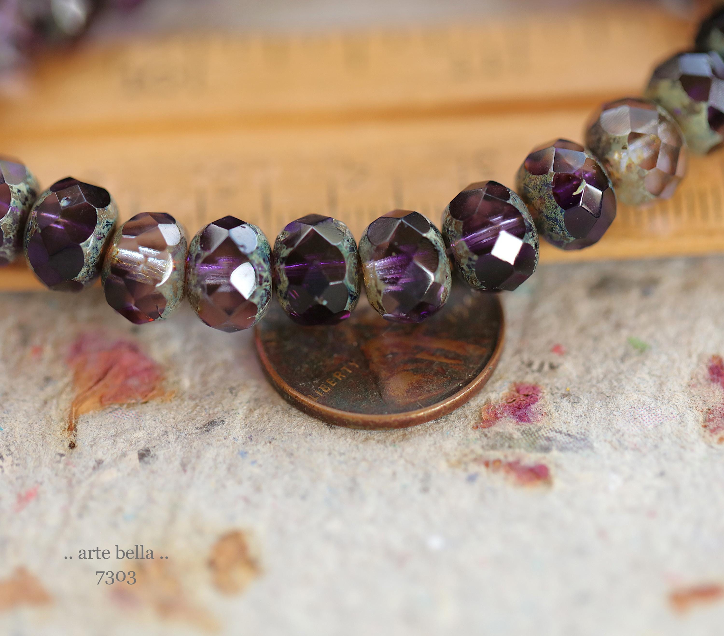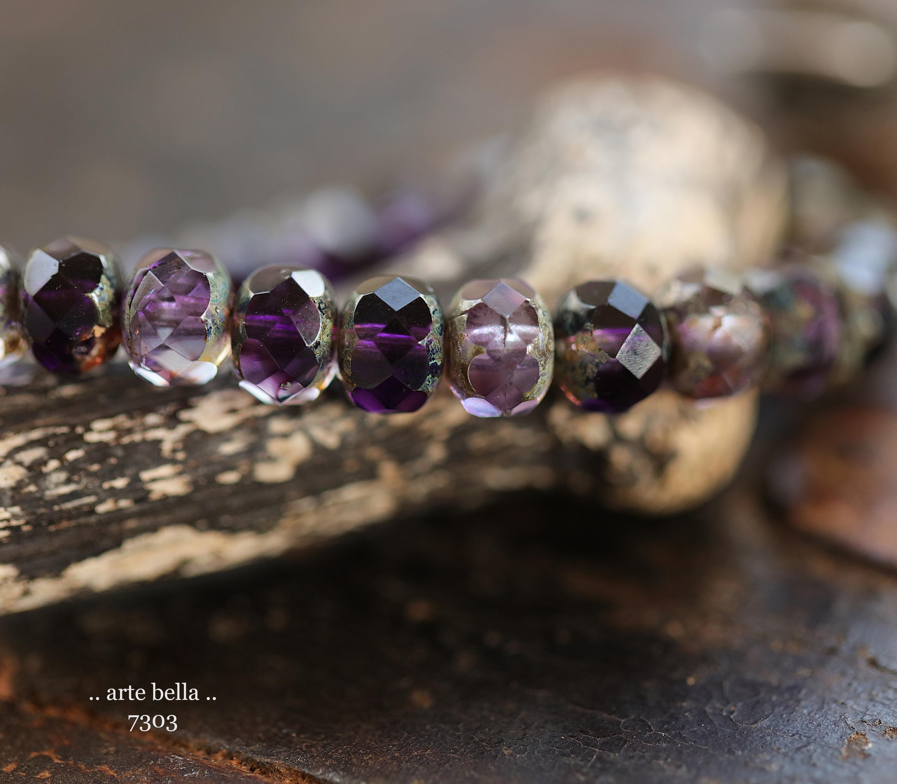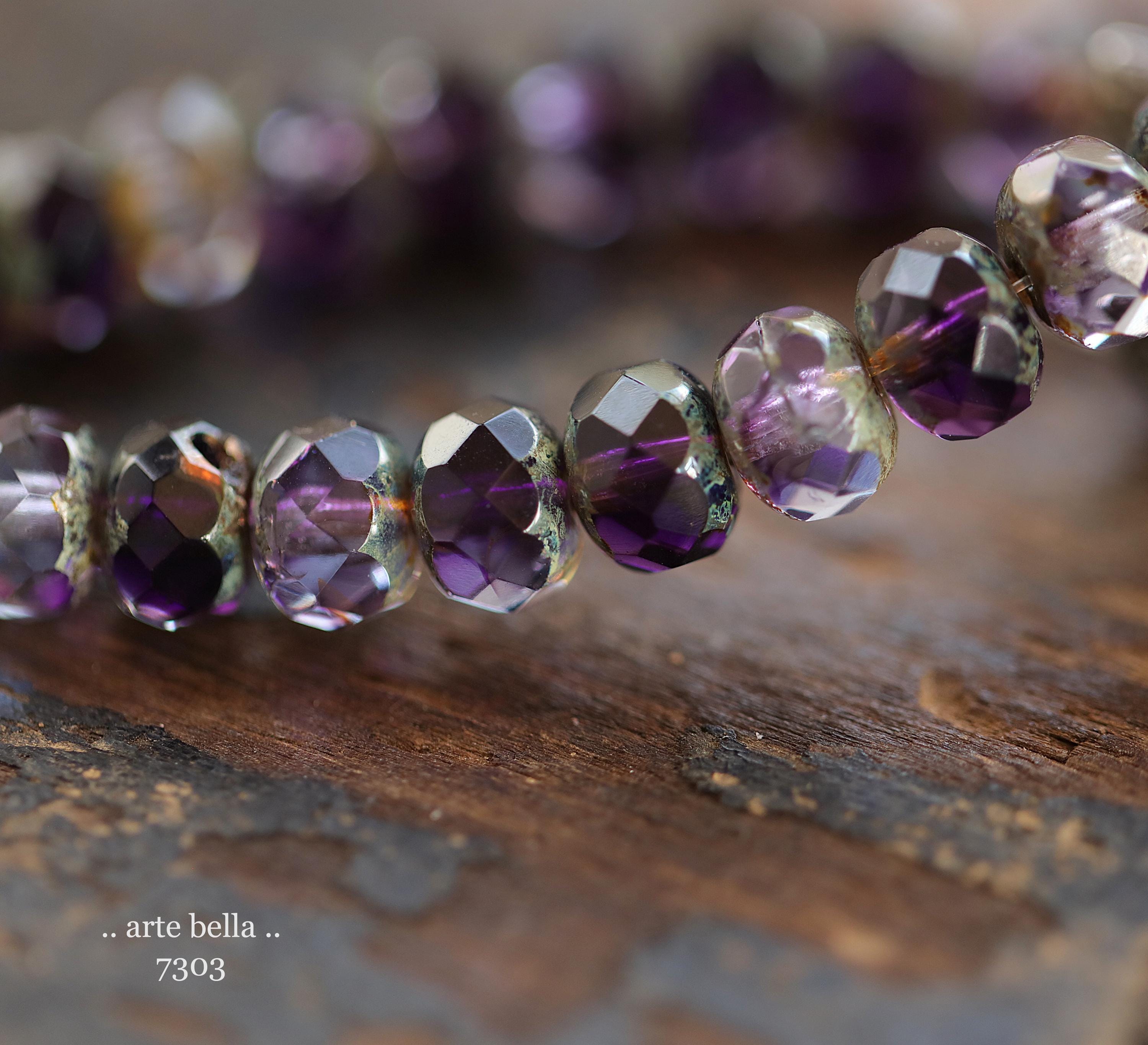 back in stock .. GRAPE VIOLETS .. 25 Premium Picasso Czech Glass Faceted Rondelle Beads 6x8mm (7303-st) .. jewelry supplies