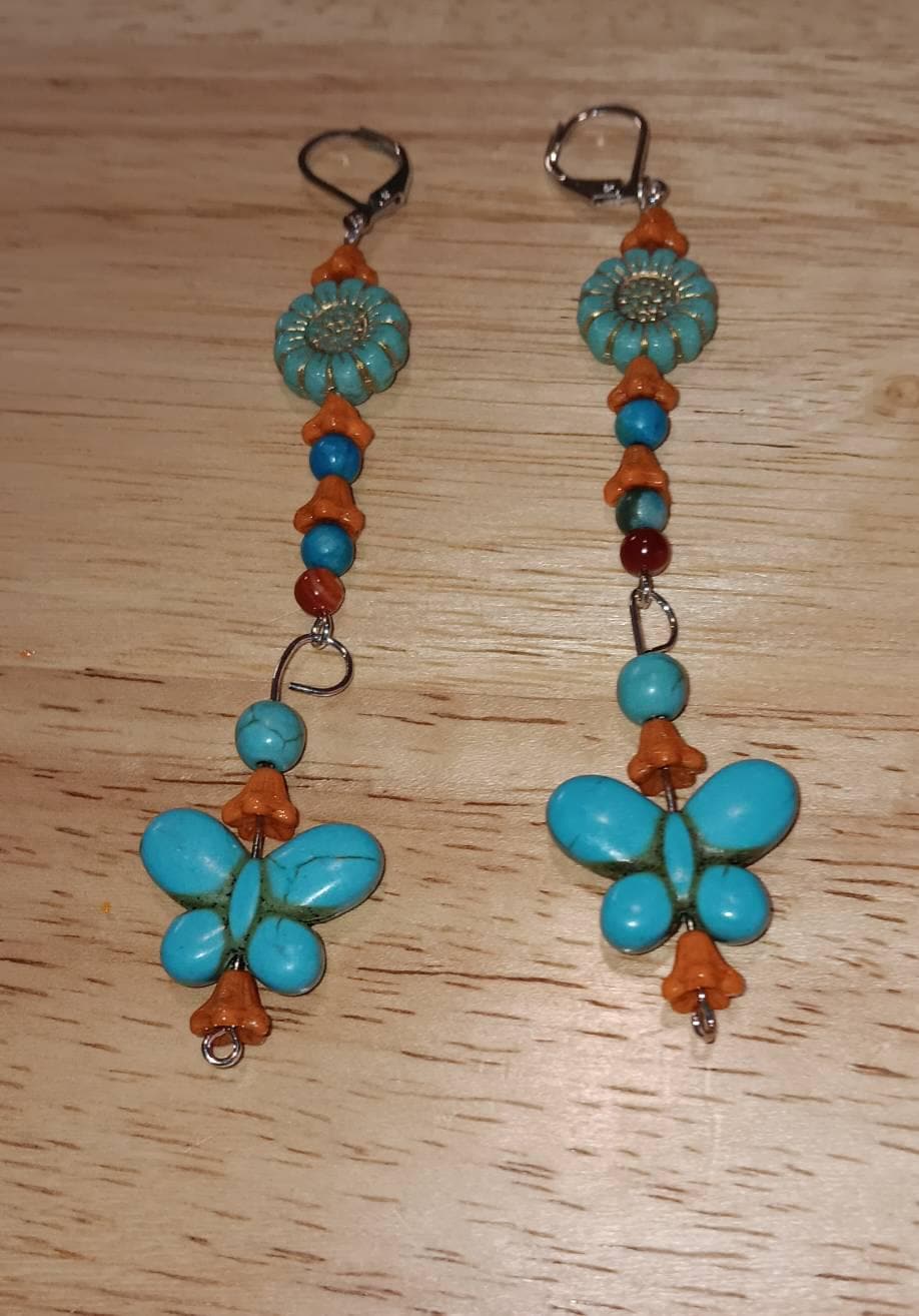 Super cute baby bell flowers in opaque orange base glass with a bronze metallic finish.