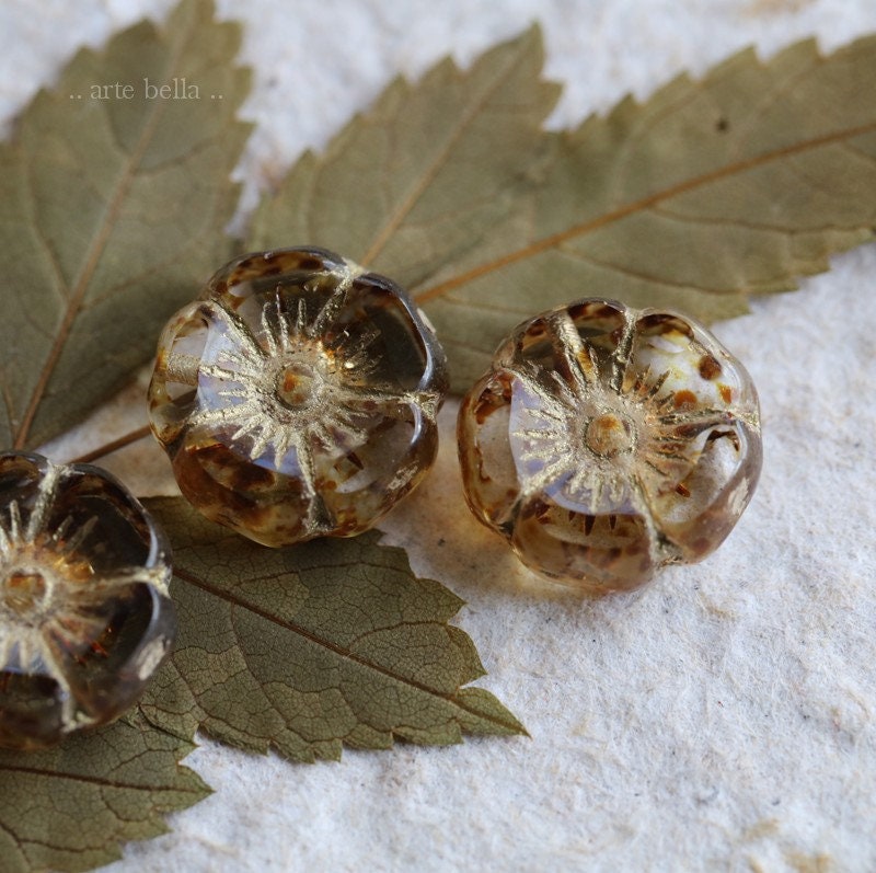 back in stock .. GOLDEN WHISPER PANSY .. 12 Premium Picasso Czech Glass Hibiscus Flower Beads 12mm (7704-st) .. jewelry supplies