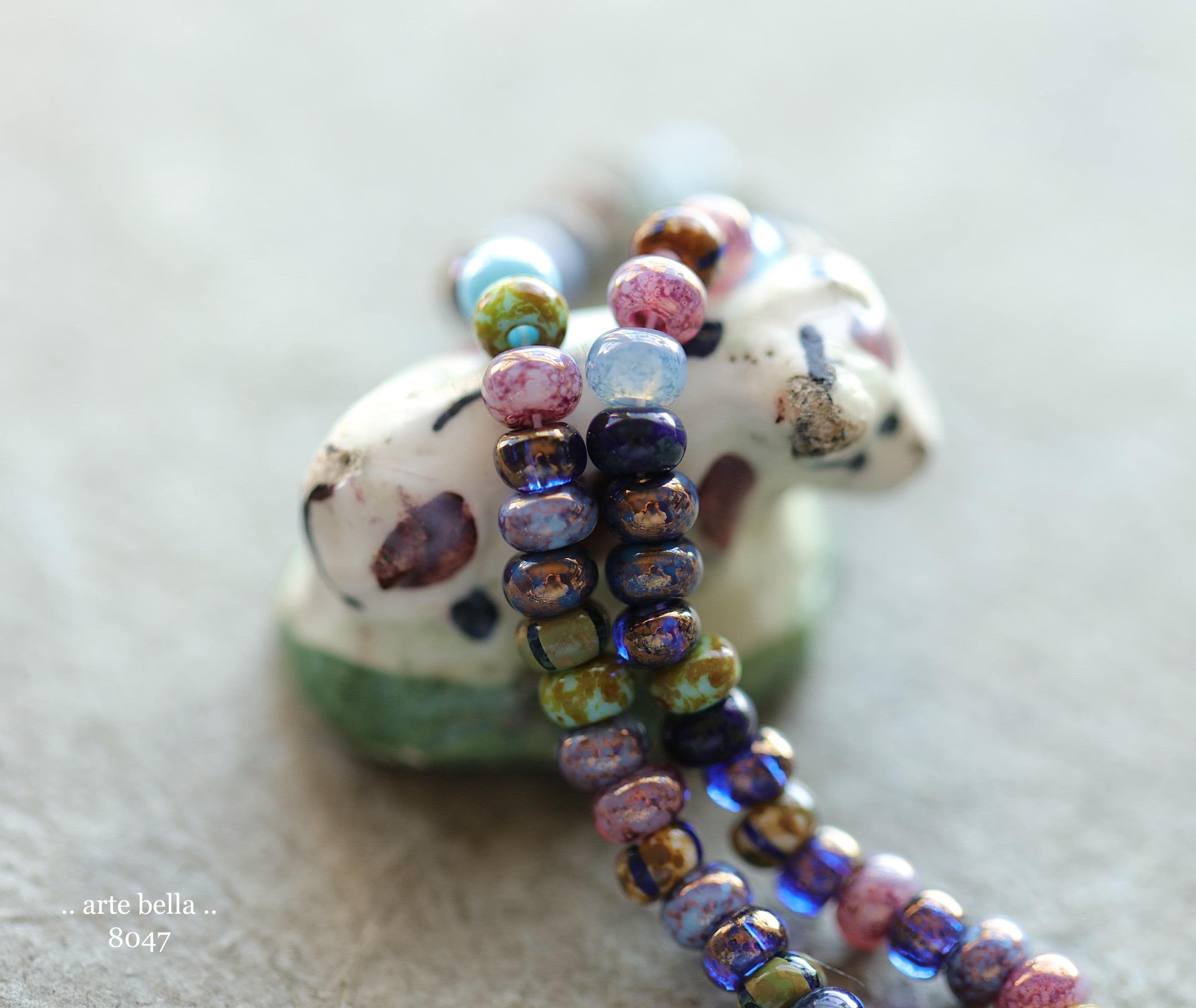 back in stock .. MAJESTIC SEED MIX No. 8047 .. 20" Premium Luster Picasso Czech Glass Striped Seed Bead Mix Size 6/0 3x4mm (8047-st)