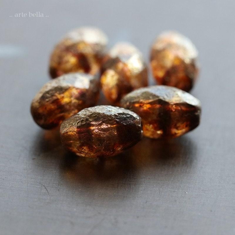 back in stock .. GOLDEN COFFEE OLIVES .. 12 Etched Picasso Czech Glass Faceted Oval Beads 12x8mm (8580-st) .. jewelry supplies